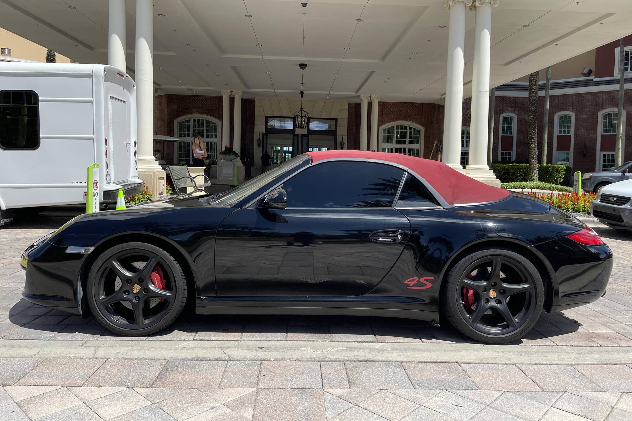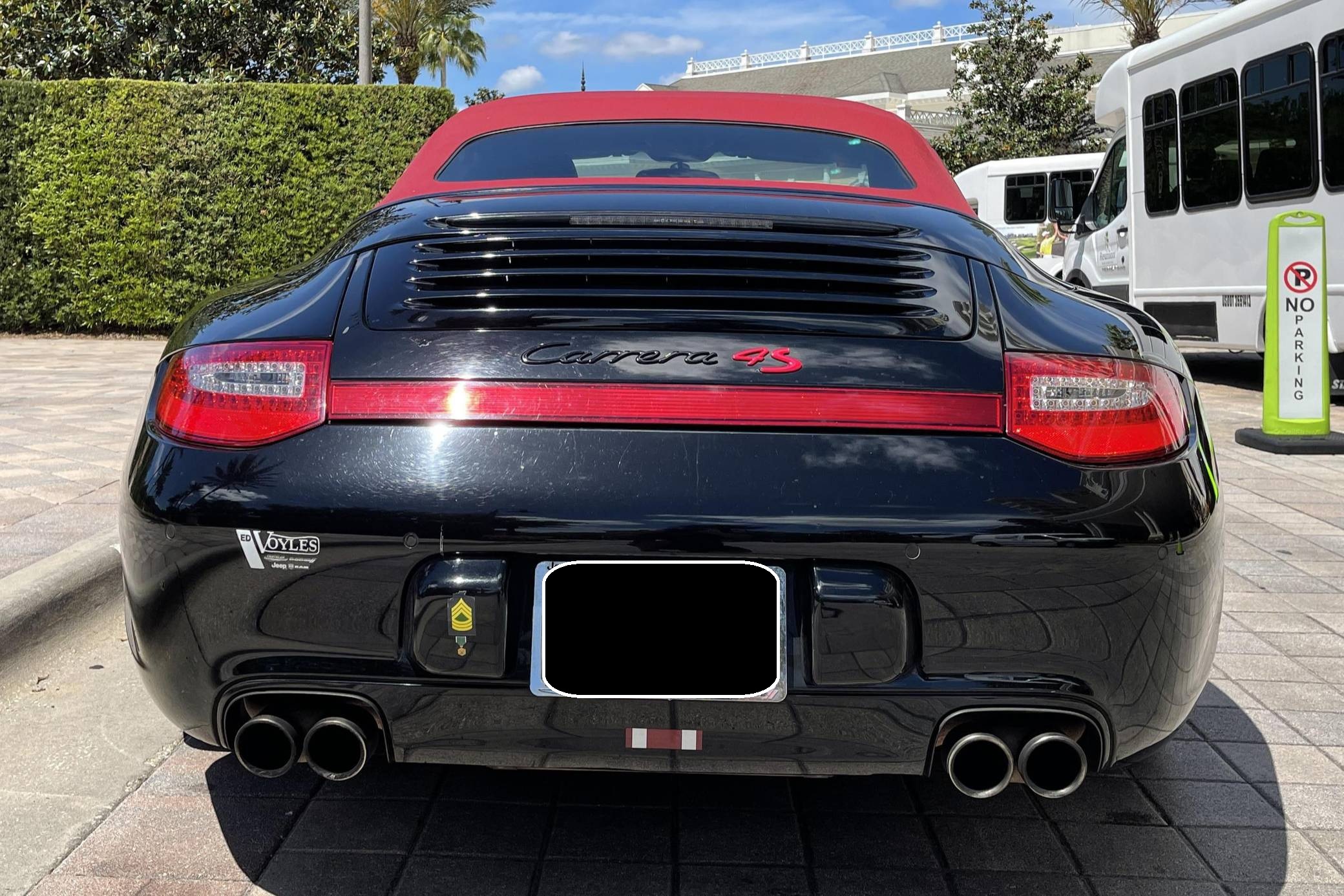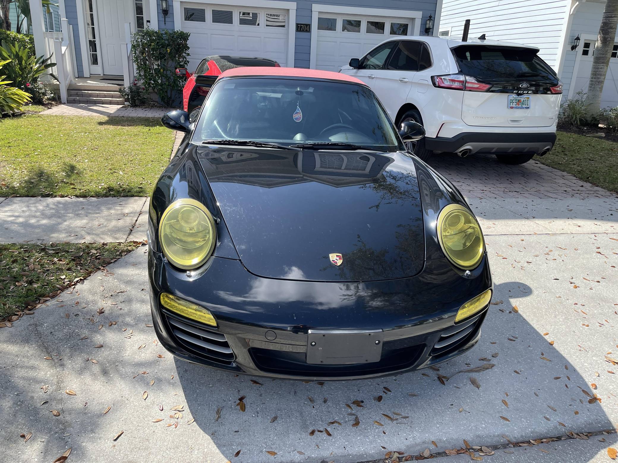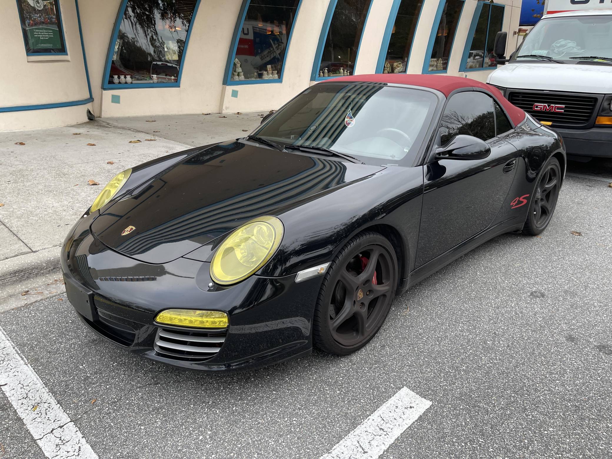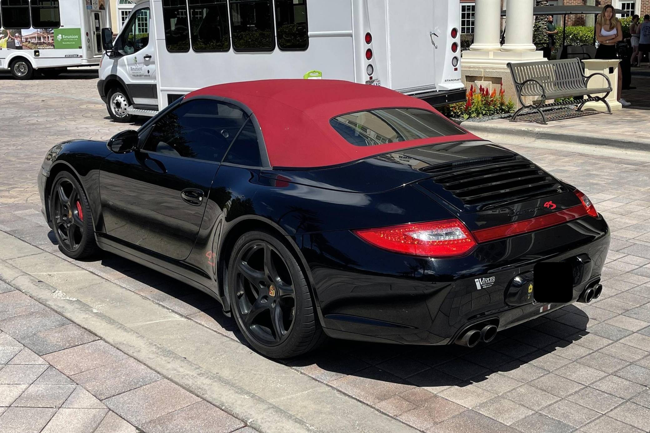 THIS. . . is a 2009 Porsche 911 Carrera 4S Convertible, finished in black with a red soft top and a black interior. Factory equipment includes the Sport Chrono Package Plus, 19-inch Carrera Classic wheels, full leather upholstery, heated, ventilated, and power-adjustable front comfort seats, a heated carbon fiber steering wheel, a Bose high-end sound system, and rear parking sensors. This car's build sheet is shown in the gallery. Modifications reported by the seller include a black finish on the wheels, yellow headlights and front turn signals, and a red soft top. More details about the aftermarket parts installed on this 911 are provided below. Porsche released the 997-generation 911 for 2005 with a more powerful engine than the outgoing model, oval headlights, and a redesigned interior. Engineers made the front and rear tracks wider for better stability and interior designers paid more attention to the build quality. The end result was a more refined 911 that nonetheless remained true to its roots. Production of the 997 ended in 2013. Power comes from a 3. 8-liter flat-6, rated at 385 horsepower and 310 lb-ft of torque. It spins the four wheels via a 7-speed automatic transmission.