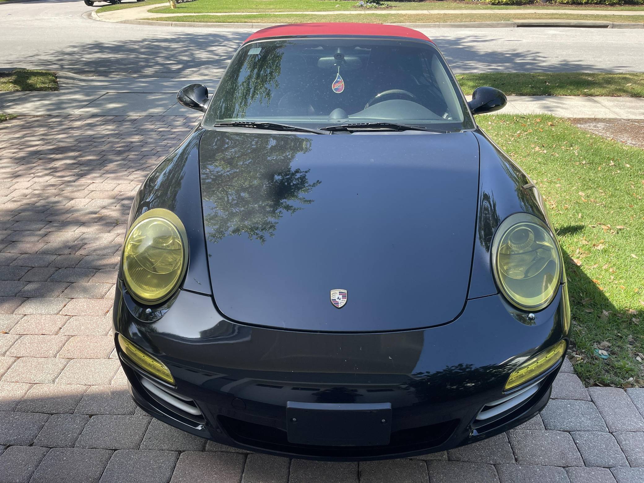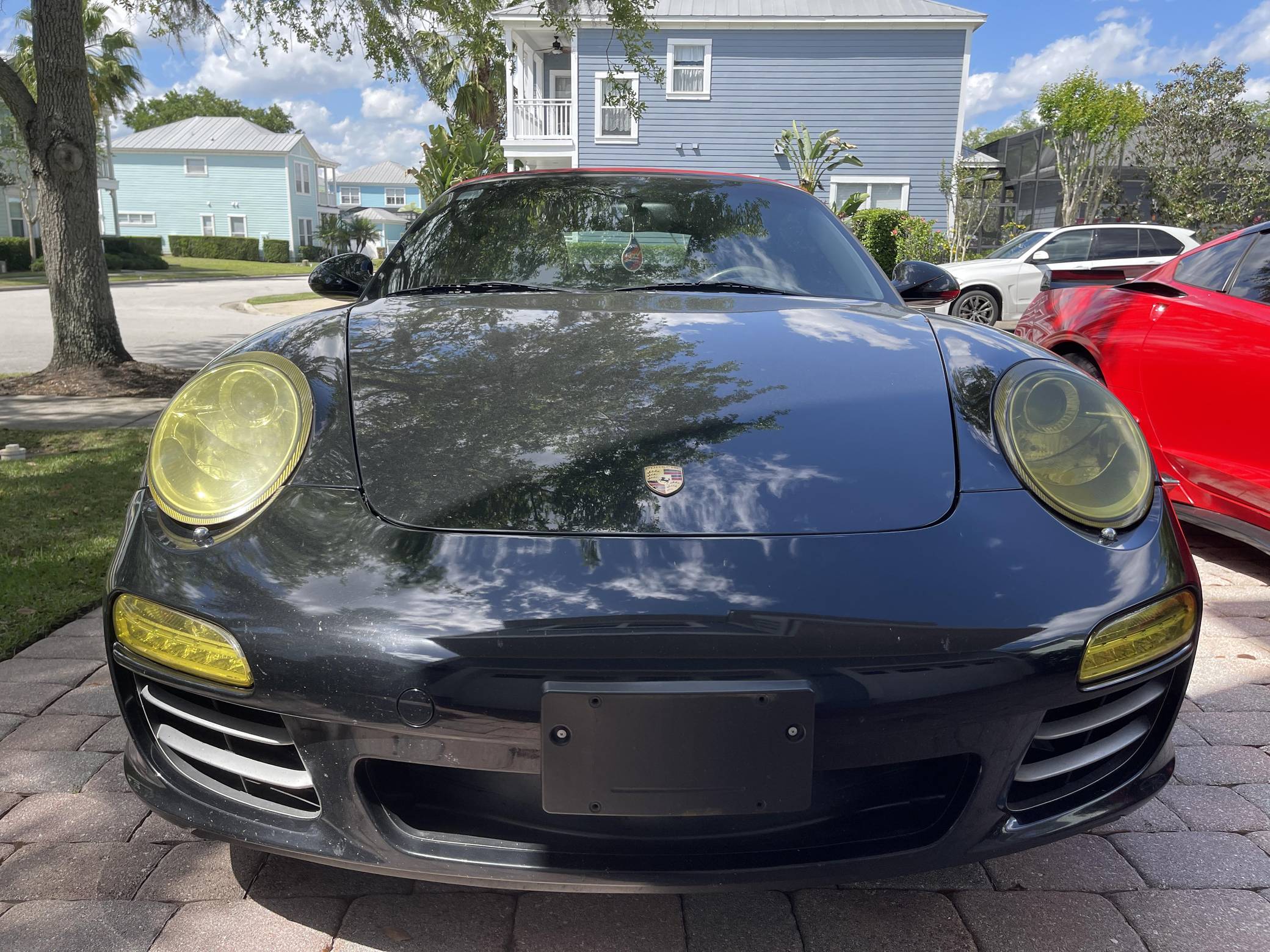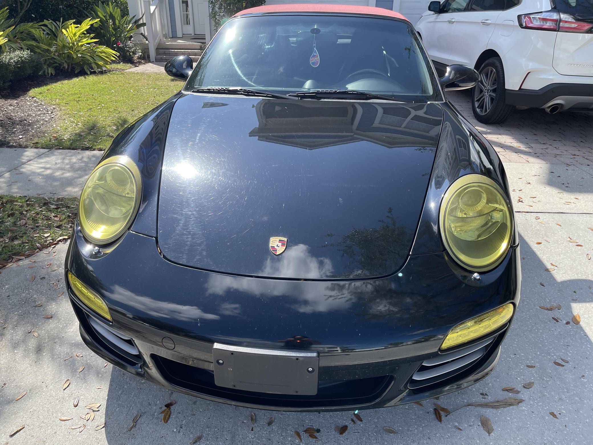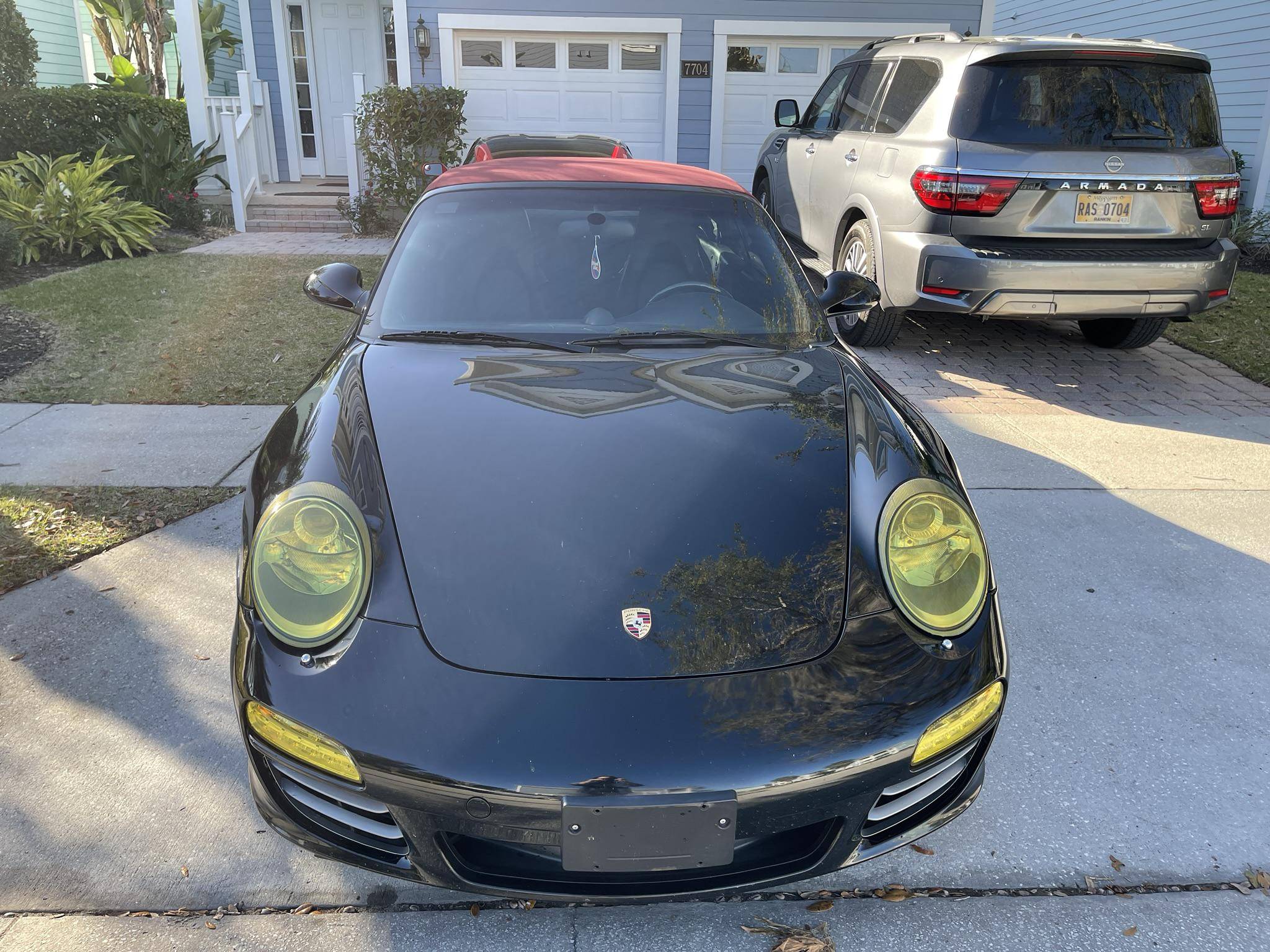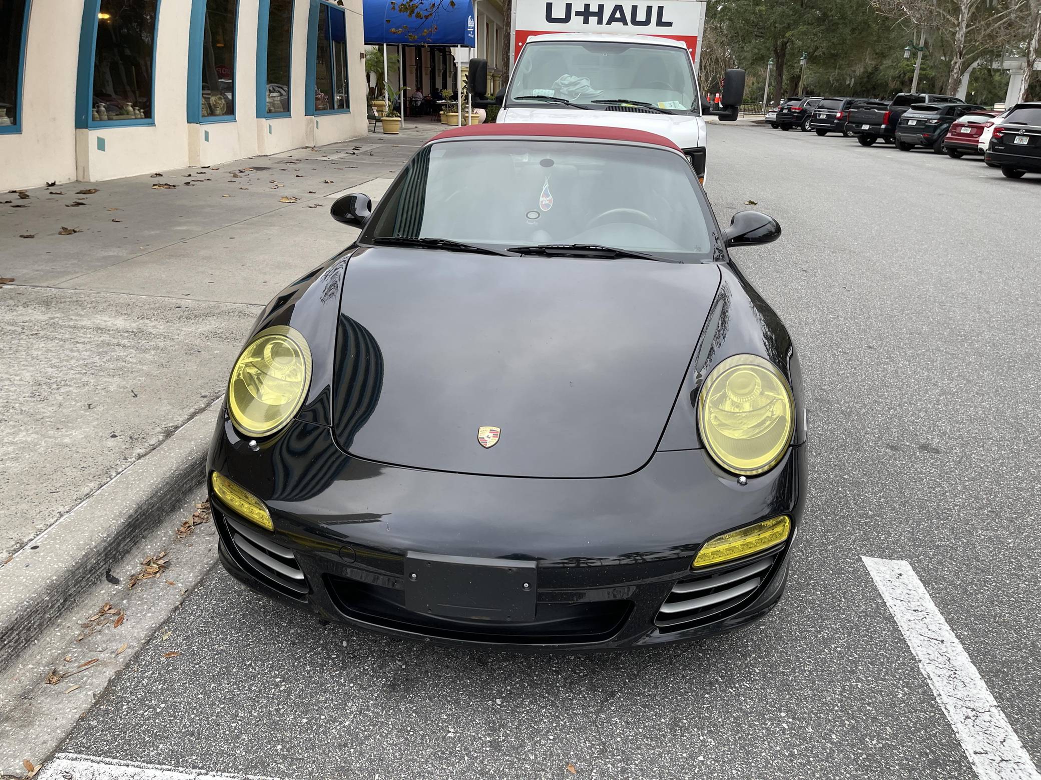 THIS. . . is a 2009 Porsche 911 Carrera 4S Convertible, finished in black with a red soft top and a black interior. Factory equipment includes the Sport Chrono Package Plus, 19-inch Carrera Classic wheels, full leather upholstery, heated, ventilated, and power-adjustable front comfort seats, a heated carbon fiber steering wheel, a Bose high-end sound system, and rear parking sensors. This car's build sheet is shown in the gallery. Modifications reported by the seller include a black finish on the wheels, yellow headlights and front turn signals, and a red soft top. More details about the aftermarket parts installed on this 911 are provided below. Porsche released the 997-generation 911 for 2005 with a more powerful engine than the outgoing model, oval headlights, and a redesigned interior. Engineers made the front and rear tracks wider for better stability and interior designers paid more attention to the build quality. The end result was a more refined 911 that nonetheless remained true to its roots. Production of the 997 ended in 2013. Power comes from a 3. 8-liter flat-6, rated at 385 horsepower and 310 lb-ft of torque. It spins the four wheels via a 7-speed automatic transmission.