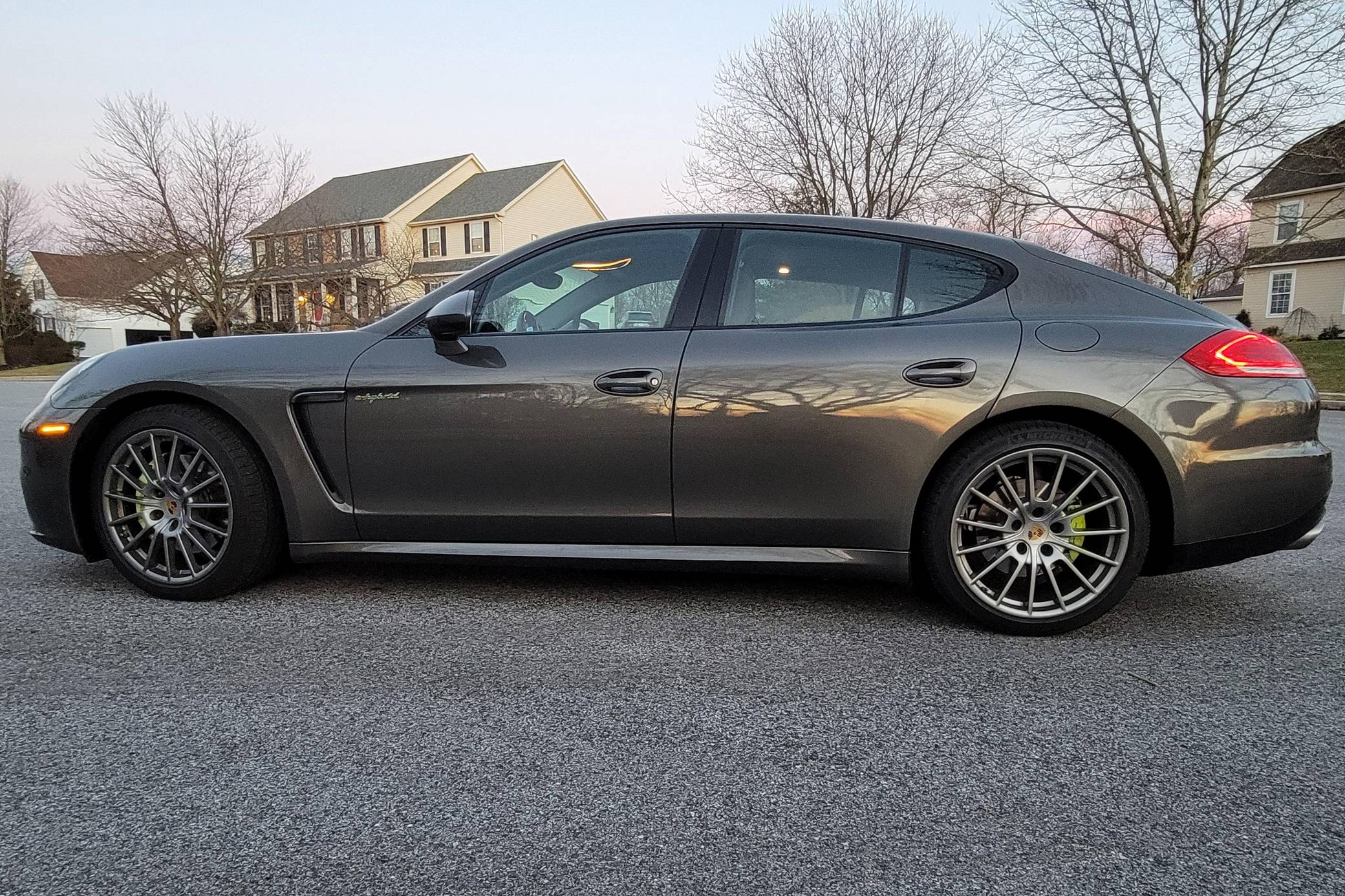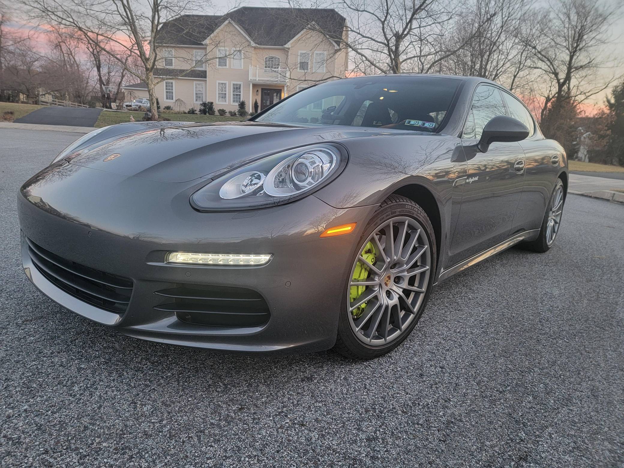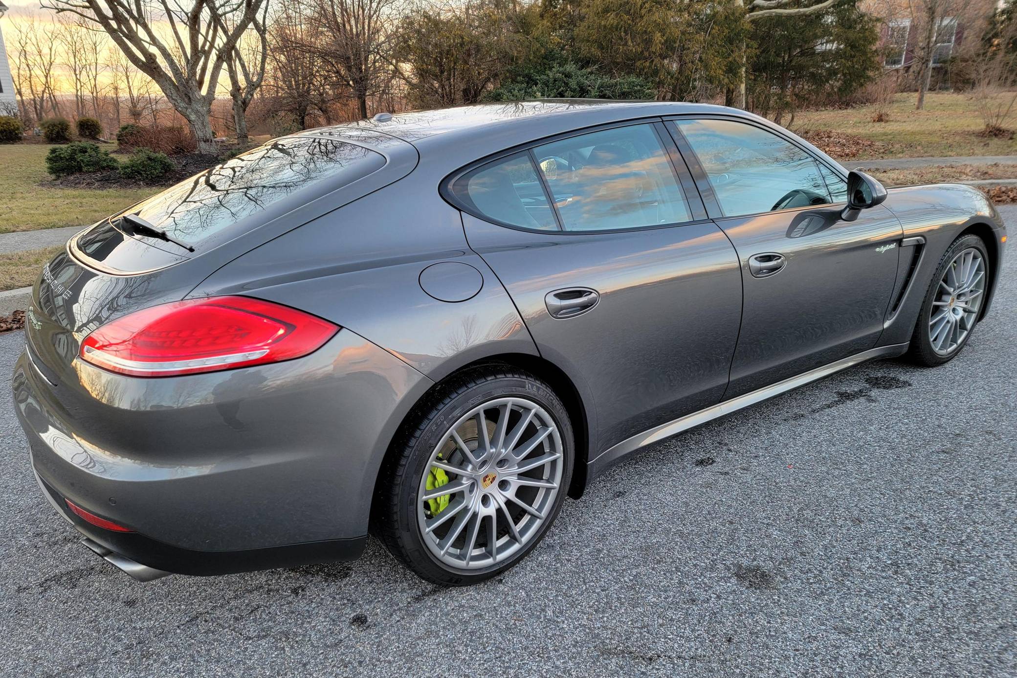 THIS. . . is a 2014 Porsche Panamera S E-Hybrid, finished in Agate Gray Metallic with a black interior. Factory equipment includes the Premium Package, 20-inch "Panamera Sport" wheels, high-gloss black exterior trim, soft-close doors, a sunroof, anthracite birch interior trim, ventilated and power-adjustable front seats, individual rear seats, a heated steering wheel, and a Bose sound system, according to a build sheet shown in the gallery. The only modification reported by the seller is wiring for a dashcam. After several false starts, Porsche entered the sedan segment for the first time when it launched the original Panamera for 2010. While its design and its very existence were controversial, the Panamera ultimately drew praise as the sportiest model in its segment and it achieved this distinction without sacrificing comfort or luxury. Production ended in 2016. Power comes from a gasoline-electric plug-in hybrid powertrain, which consists of a supercharged 3. 0-liter V6, an electric motor, and a 9. 4-kilowatt-hour lithium-ion battery pack. The system's total output checks in at 416 horsepower and 435 lb-ft of torque, and it spins the rear wheels via an 8-speed automatic transmission.