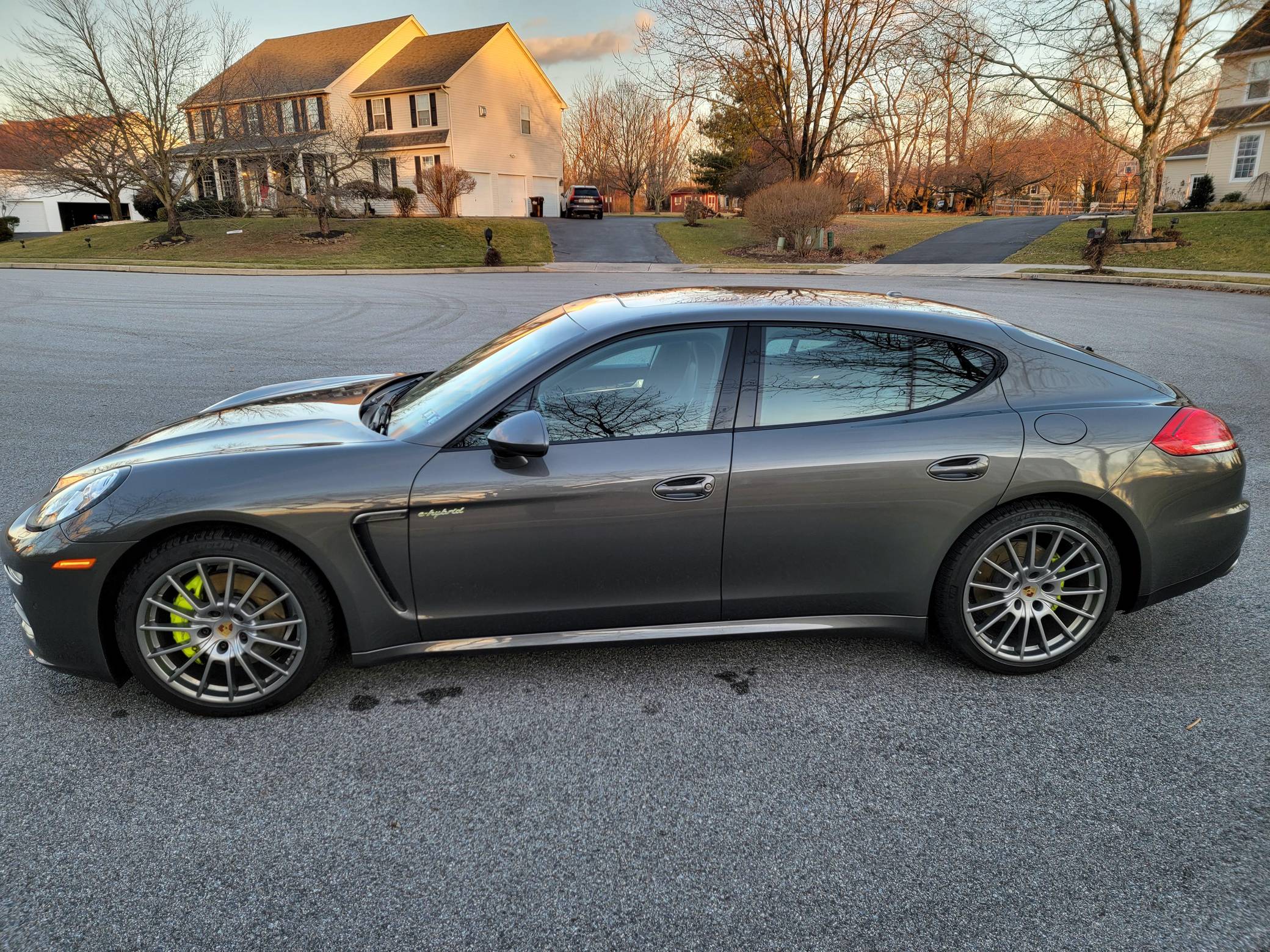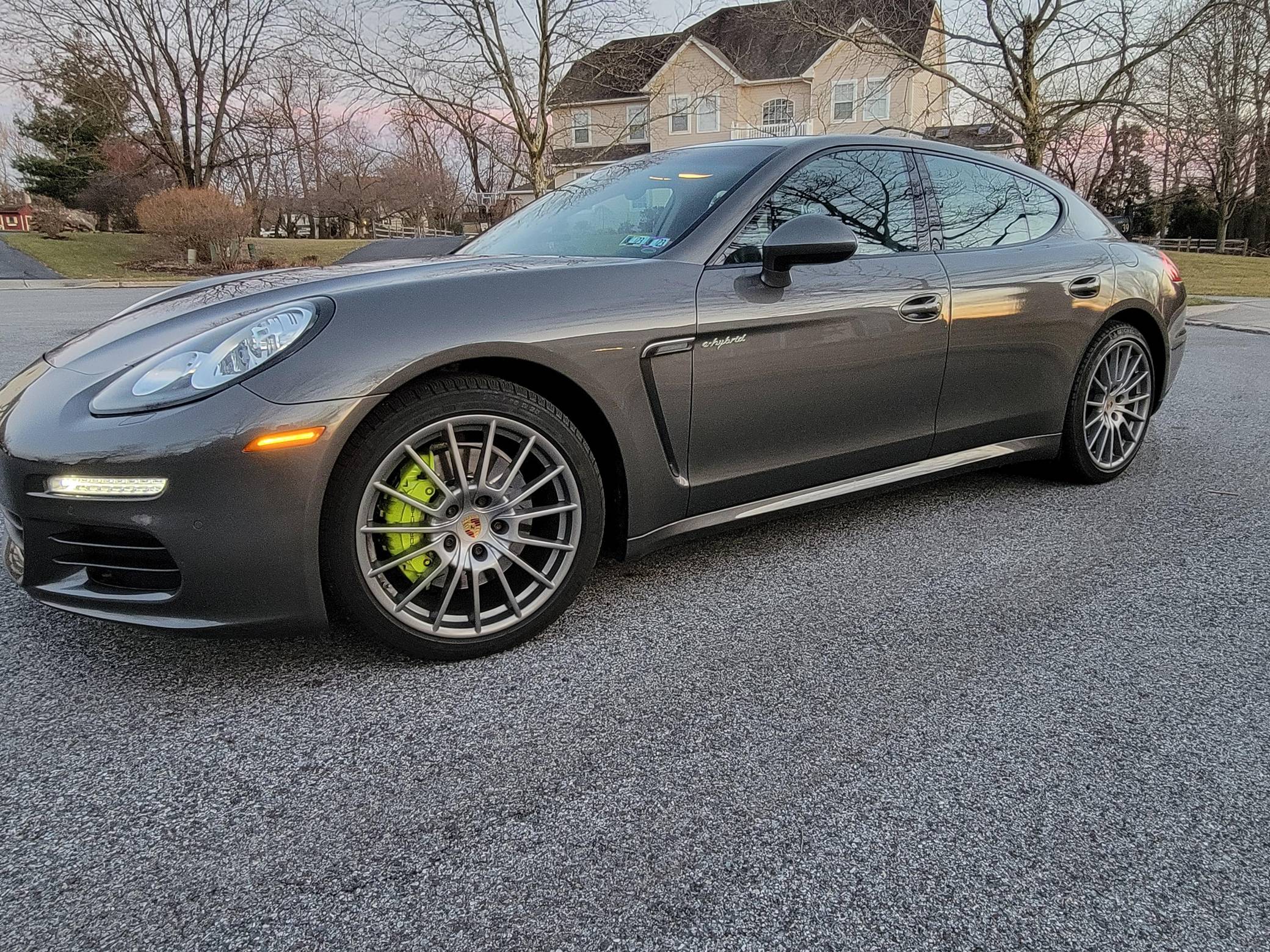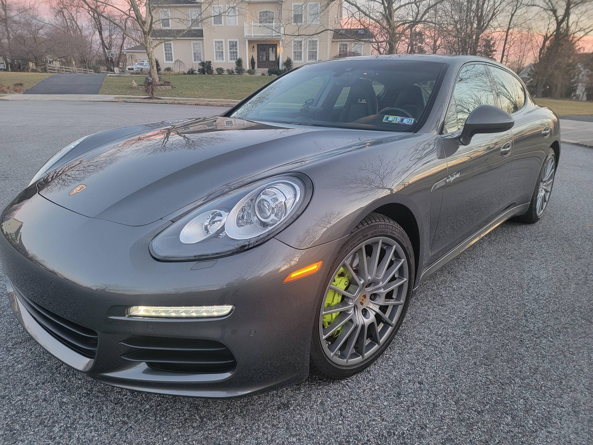 THIS. . . is a 2014 Porsche Panamera S E-Hybrid, finished in Agate Gray Metallic with a black interior. Factory equipment includes the Premium Package, 20-inch "Panamera Sport" wheels, high-gloss black exterior trim, soft-close doors, a sunroof, anthracite birch interior trim, ventilated and power-adjustable front seats, individual rear seats, a heated steering wheel, and a Bose sound system, according to a build sheet shown in the gallery. The only modification reported by the seller is wiring for a dashcam. After several false starts, Porsche entered the sedan segment for the first time when it launched the original Panamera for 2010. While its design and its very existence were controversial, the Panamera ultimately drew praise as the sportiest model in its segment and it achieved this distinction without sacrificing comfort or luxury. Production ended in 2016. Power comes from a gasoline-electric plug-in hybrid powertrain, which consists of a supercharged 3. 0-liter V6, an electric motor, and a 9. 4-kilowatt-hour lithium-ion battery pack. The system's total output checks in at 416 horsepower and 435 lb-ft of torque, and it spins the rear wheels via an 8-speed automatic transmission.