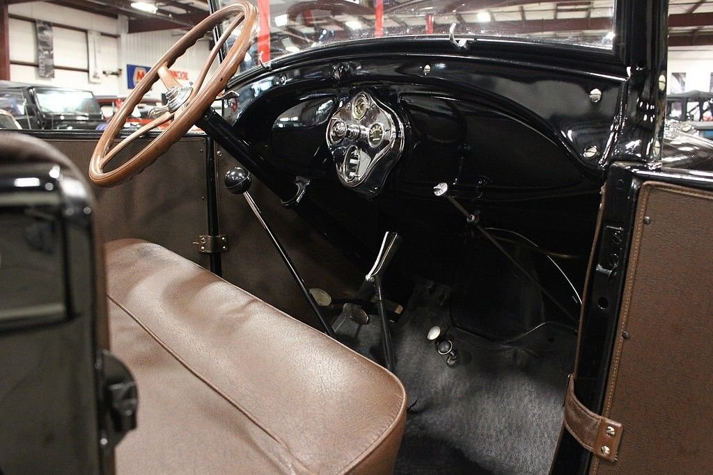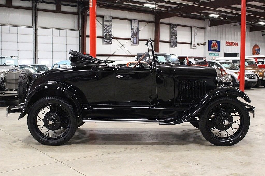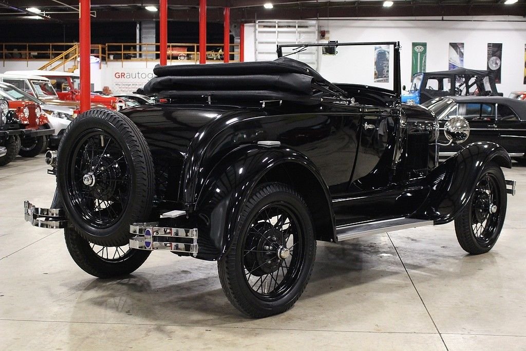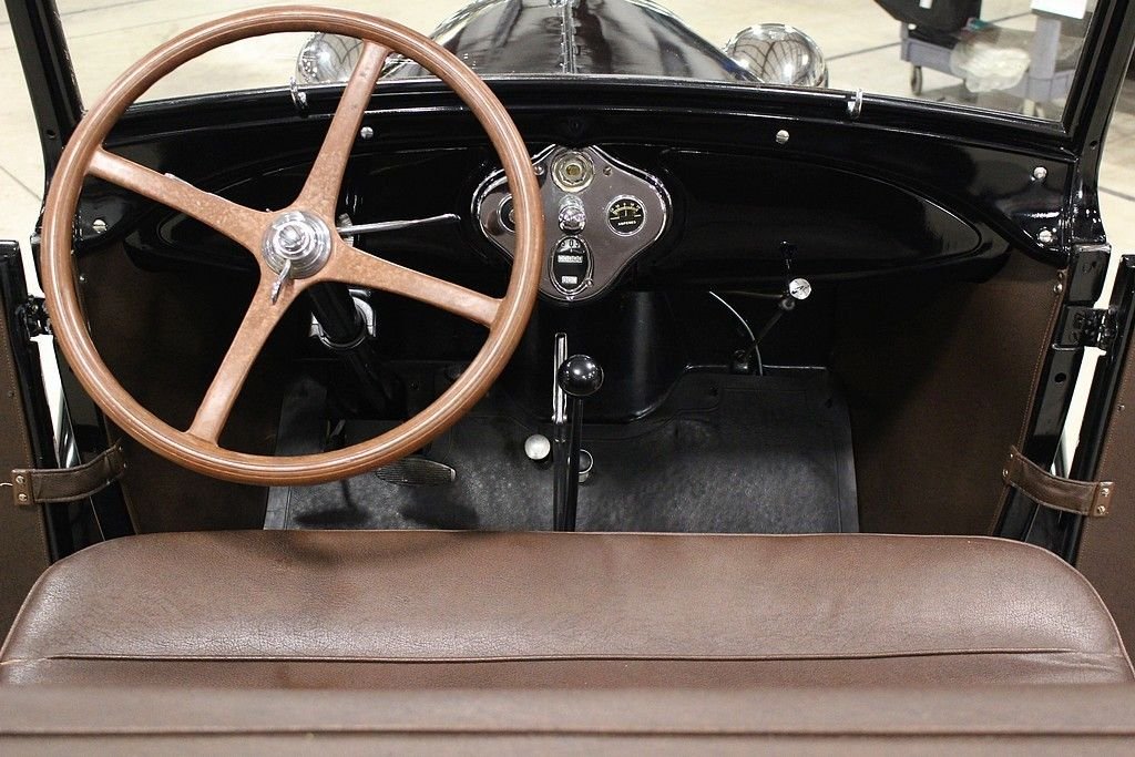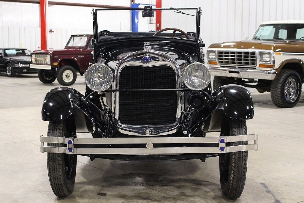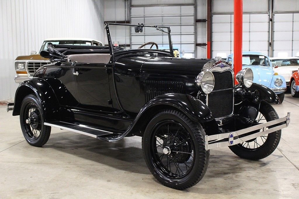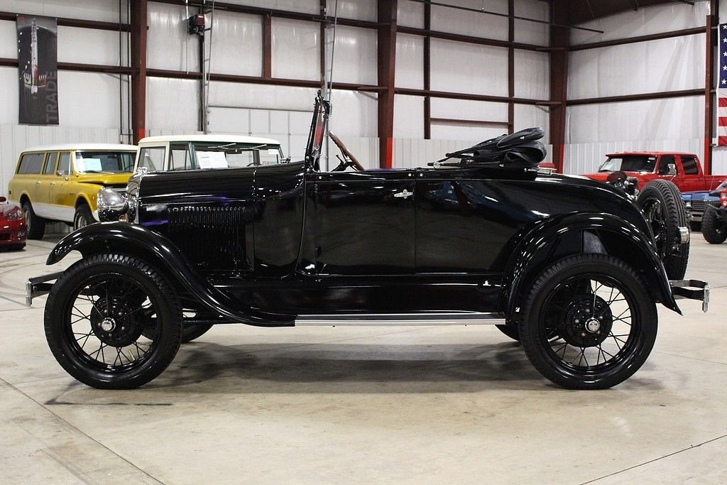 When Henry Ford brought the production of his successful T to a close, the whole world eagerly awaited the new version to the car that put America on wheels. This was no small task as the T was produced for almost two decades with Americans depending on the reliability and simplicity it offered. The Ford Motor Company worked hard to ensure that the T's replacement would live up to the expectations of millions and when the first 4,000 Model A's were built in December of 1927 they were all snatched up by eager customers by the end of the month. The beautifully restored 1928 Model A Rumble Seat Roadster offered here is just out of long term collection. It is dressed in a glossy black paint and shines well. The chrome is in great shape and accents the body well. There is a rear mounted spare wheel and tire. The lights and horn work as well. The brown leather interior appears to have been redone at the time of restoration and shows well. As you can see in the photos, this American classic was restored properly, even right down to the last nut and bolt. While we were inspecting the underbody we noticed that new grease zerks were installed as well as new castle nuts and new cotter pins. The Model A comes with side curtains. This Model A Runs and Handles as it should and goes down the road nicely. Hop in the rumble seat, or behind the wheel, and this car is sure to put a smile on your face.