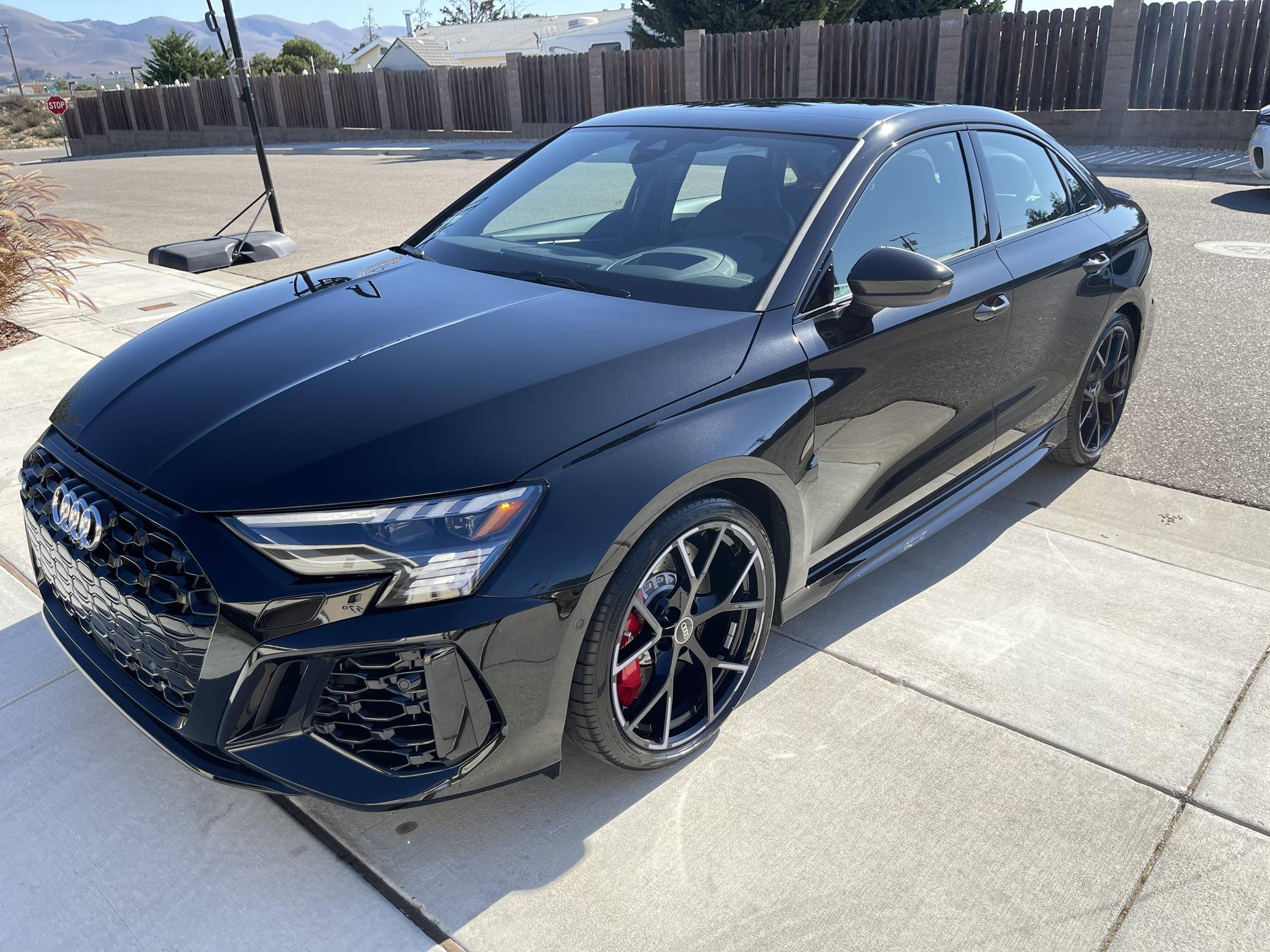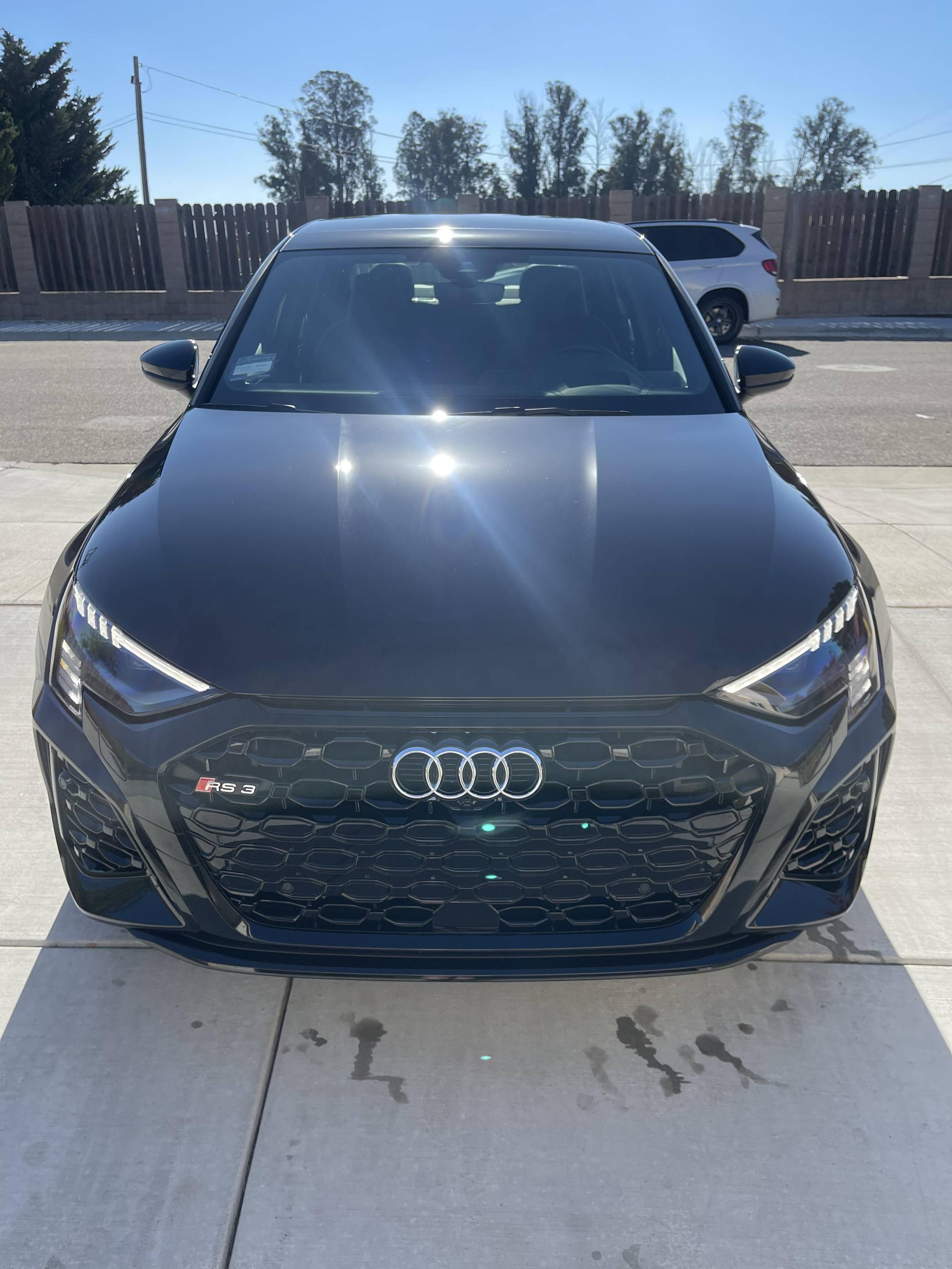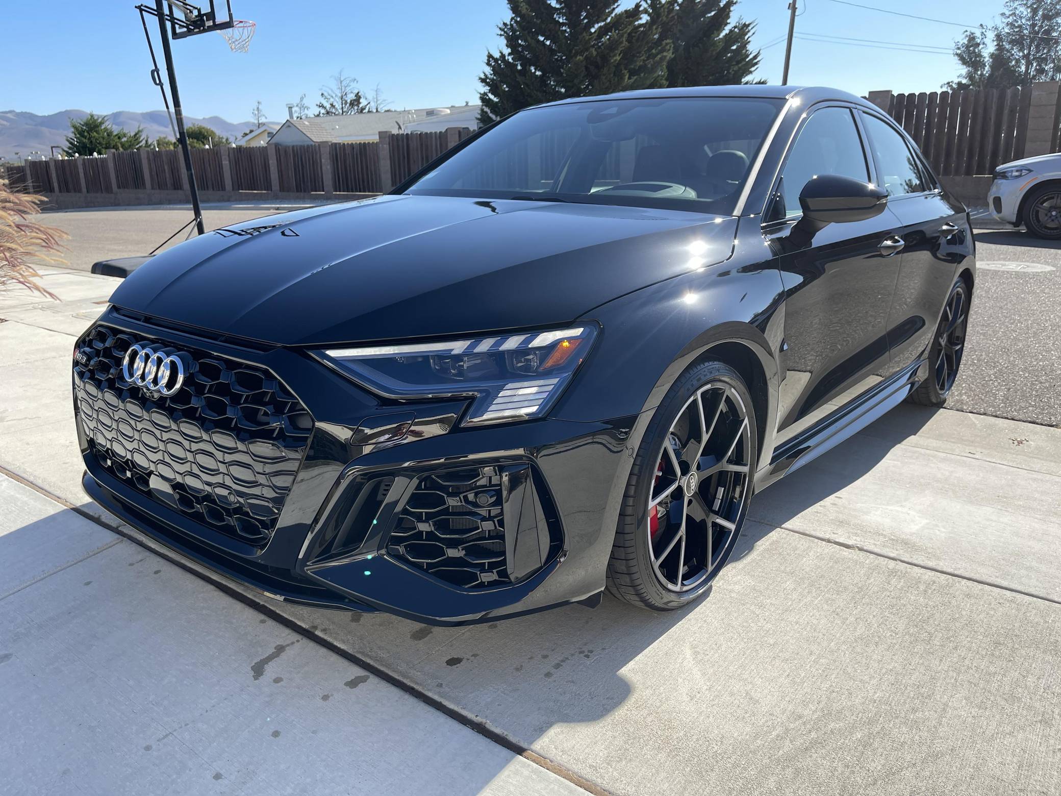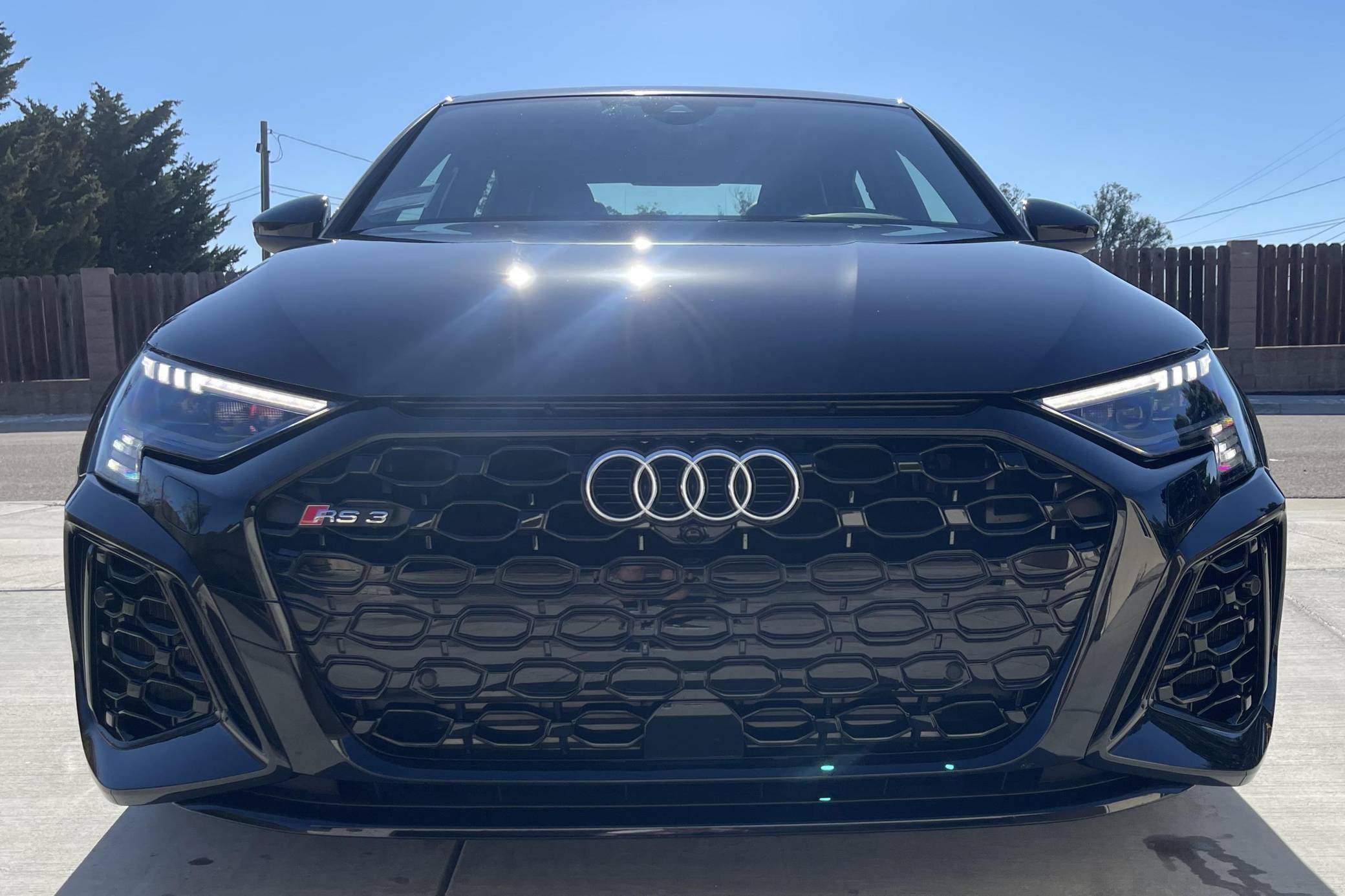 THIS. . . is a 2023 Audi RS3, finished in Mythos Black Metallic with a black interior. This RS3's odometer currently displays about 1,400 miles. The seller reports no modifications. Audi introduced the "8Y" RS3 for the 2022 model year, boasting wider bodywork and more power than its predecessor despite sharing the same basic turbocharged 5-cylinder as the outgoing model. Additional changes include more aggressive exterior styling, a more modern interior, and an electronic torque vectoring system called RS Torque Splitter that can be controlled with three selectable drive modes. Power comes from a 2. 5-liter turbocharged inline-5, rated at 401 horsepower and 369 lb-ft of torque. Output is sent to all four wheels via a 7-speed "S tronic" automatic transmission and Audi's Quattro permanent all-wheel drive system.