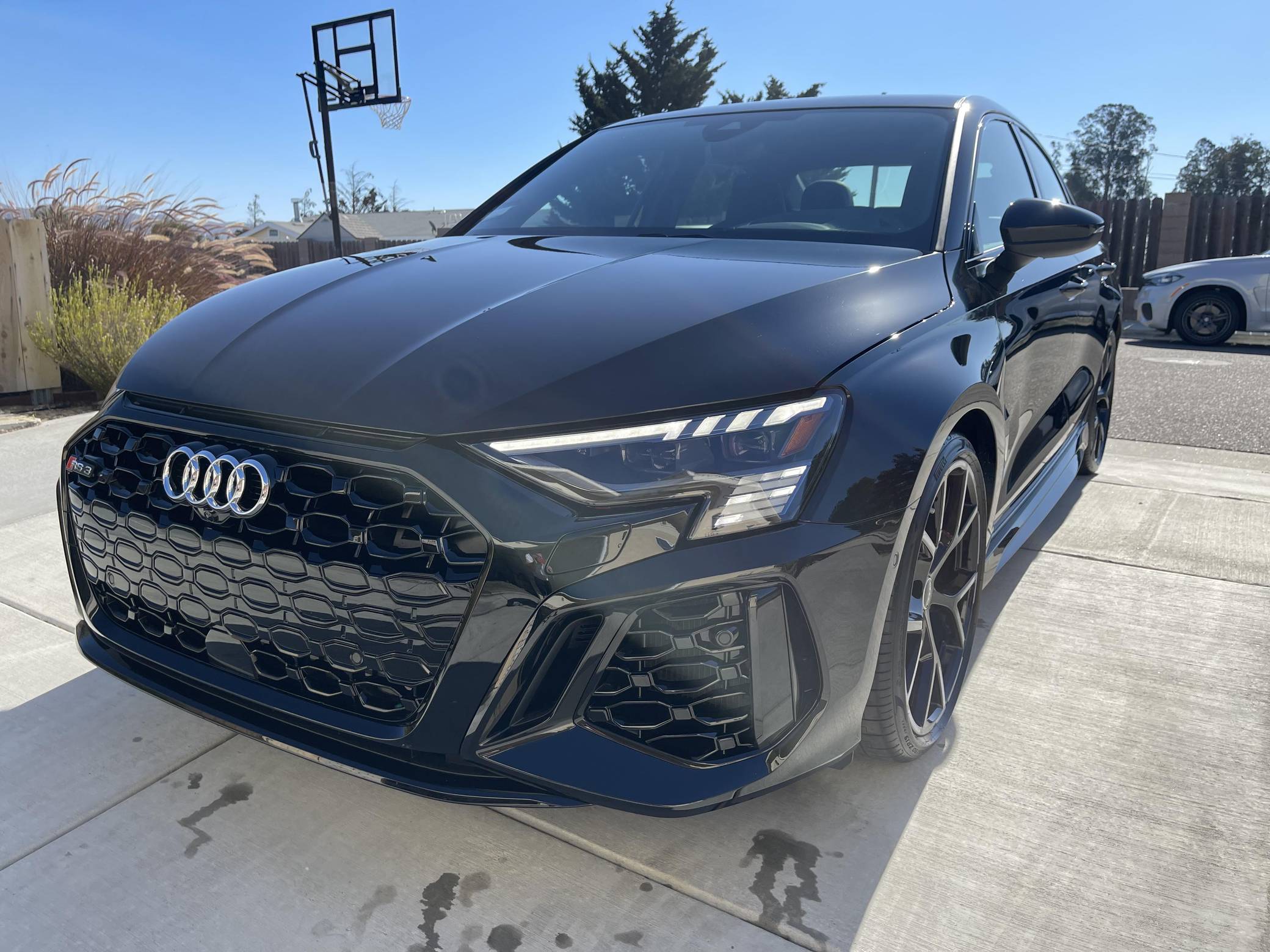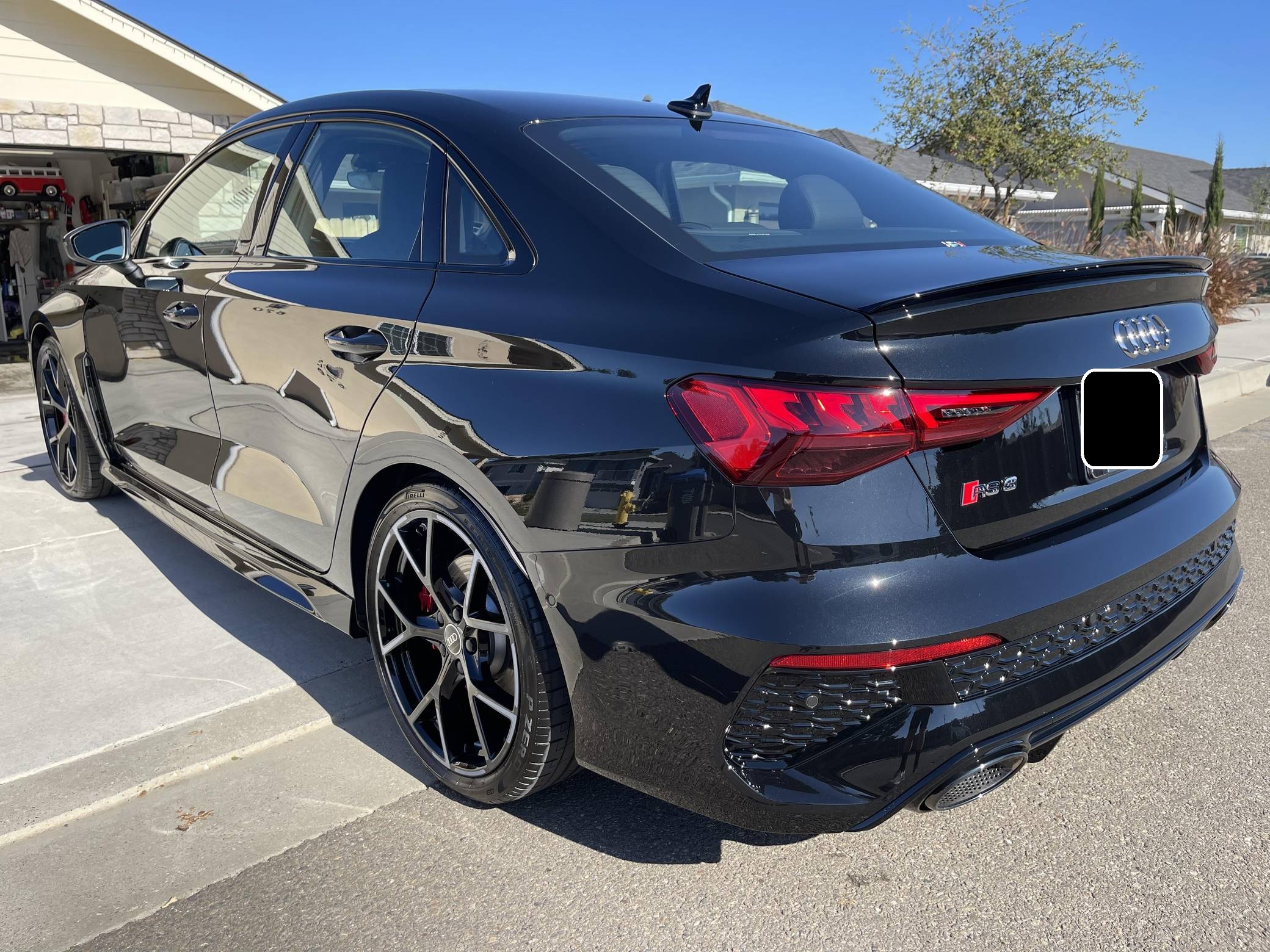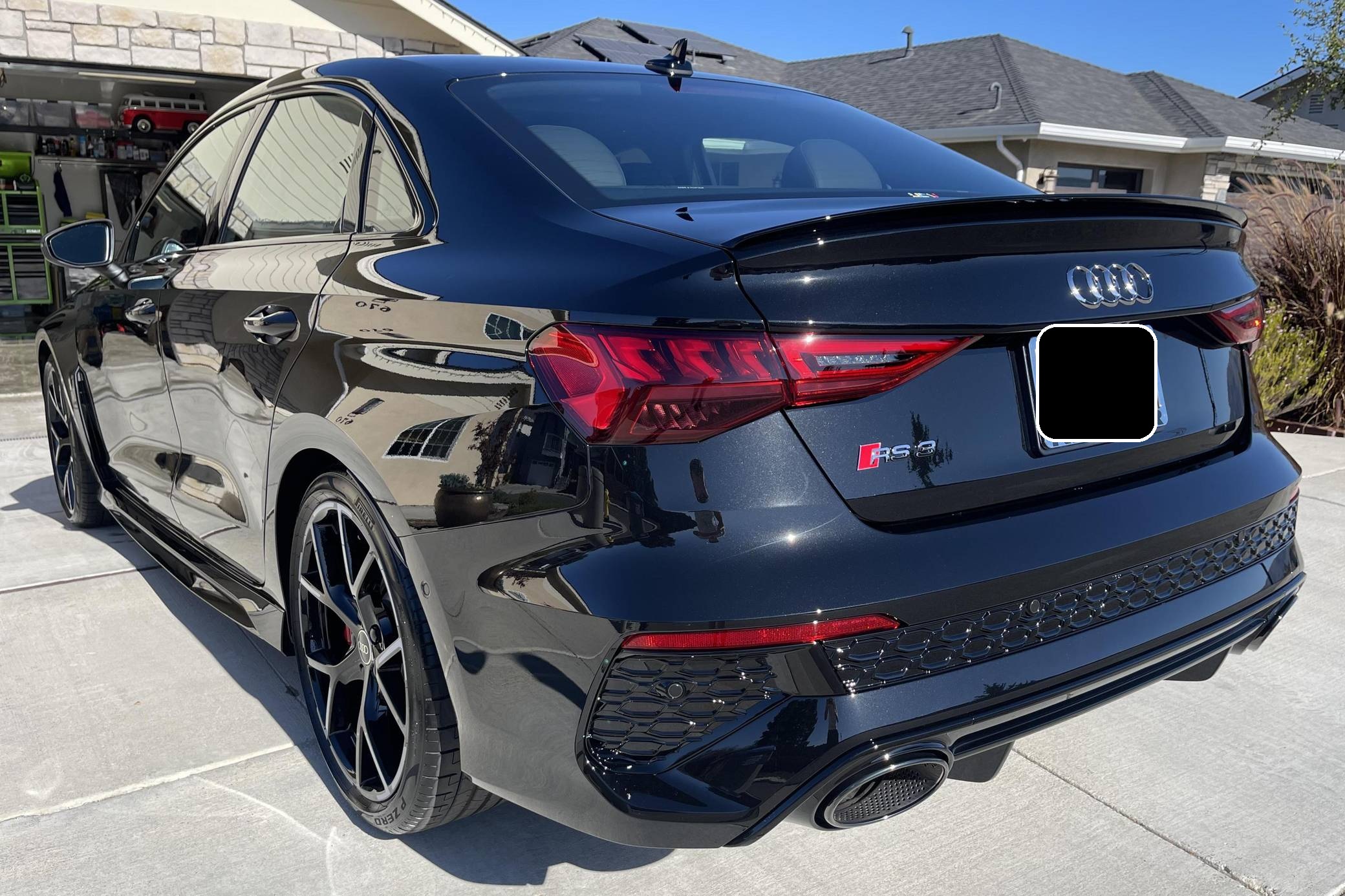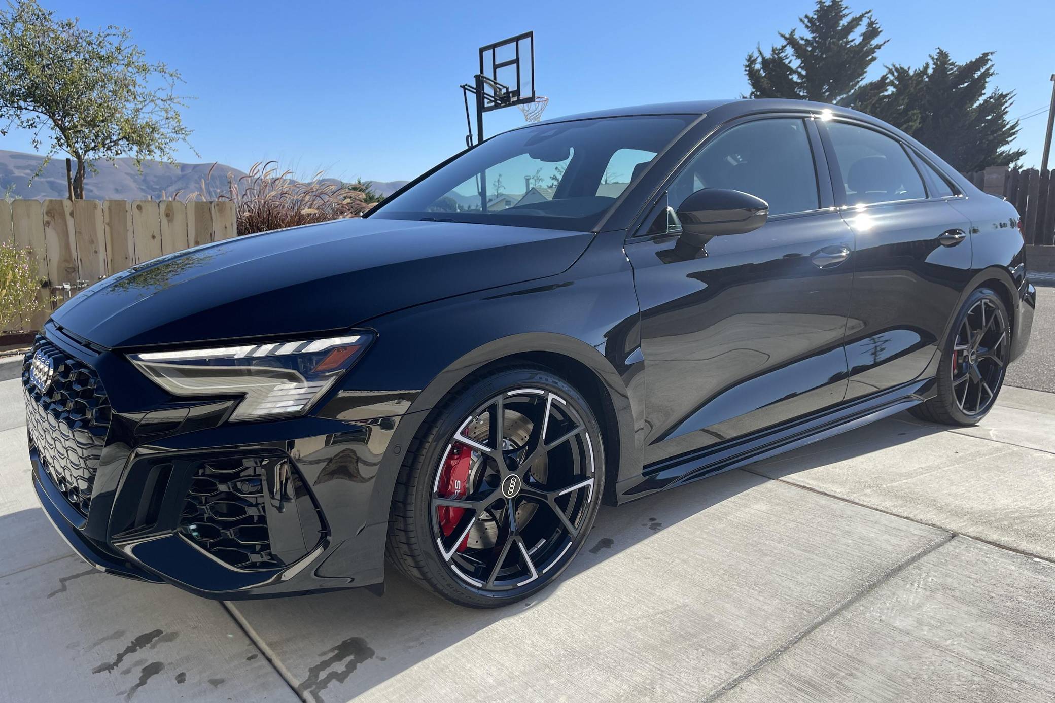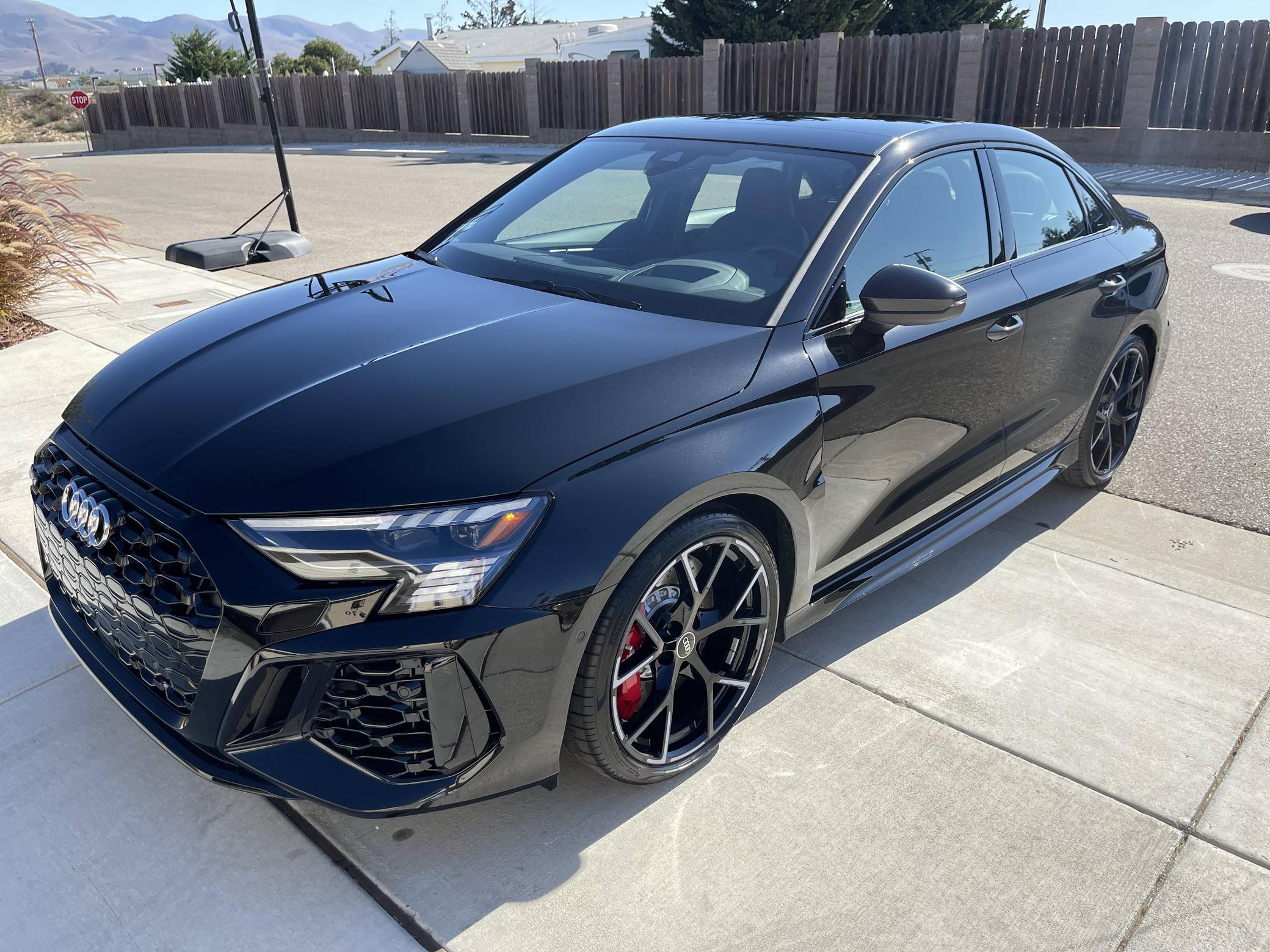 THIS. . . is a 2023 Audi RS3, finished in Mythos Black Metallic with a black interior. This RS3's odometer currently displays about 1,400 miles. The seller reports no modifications. Audi introduced the "8Y" RS3 for the 2022 model year, boasting wider bodywork and more power than its predecessor despite sharing the same basic turbocharged 5-cylinder as the outgoing model. Additional changes include more aggressive exterior styling, a more modern interior, and an electronic torque vectoring system called RS Torque Splitter that can be controlled with three selectable drive modes. Power comes from a 2. 5-liter turbocharged inline-5, rated at 401 horsepower and 369 lb-ft of torque. Output is sent to all four wheels via a 7-speed "S tronic" automatic transmission and Audi's Quattro permanent all-wheel drive system.