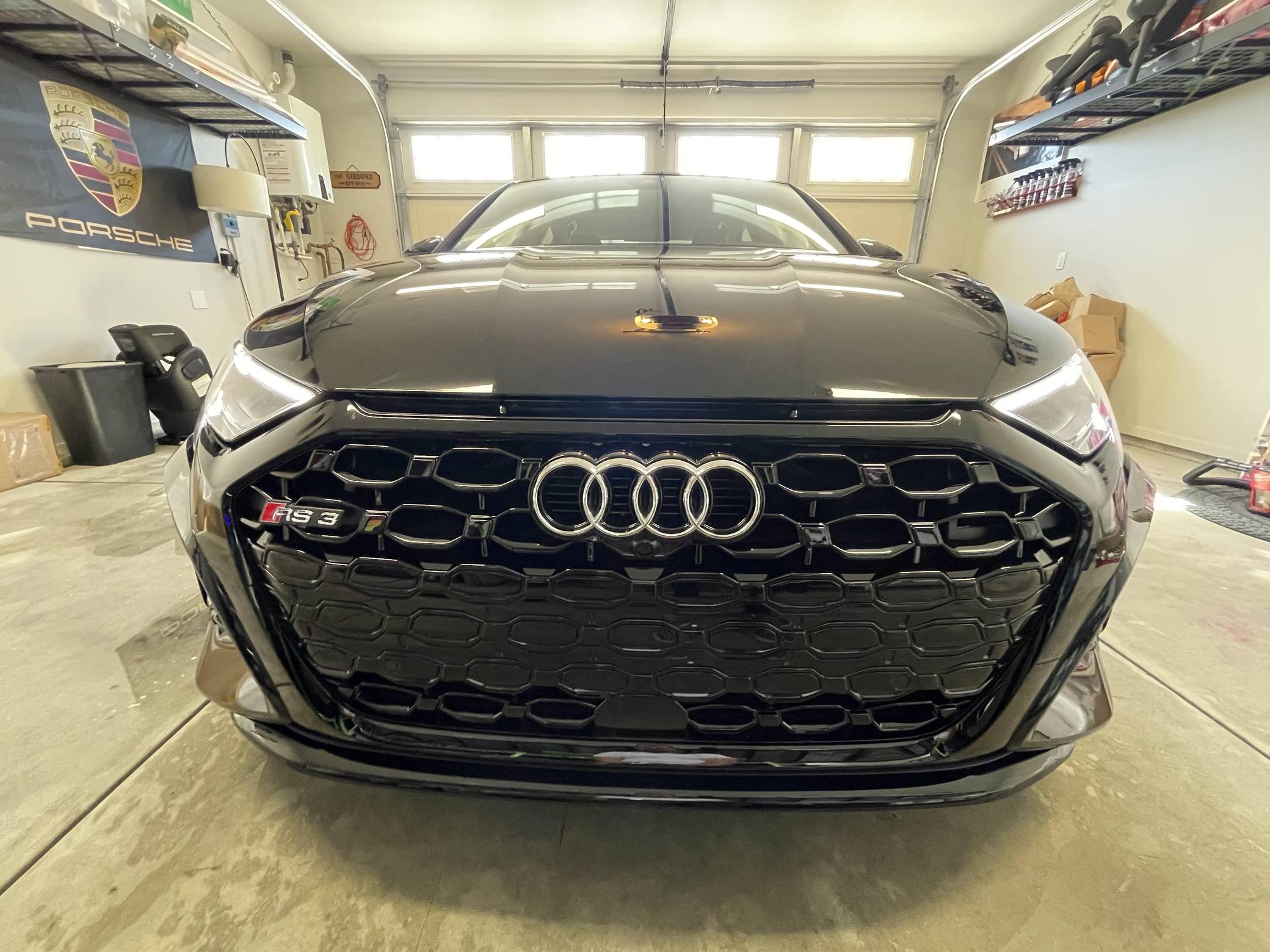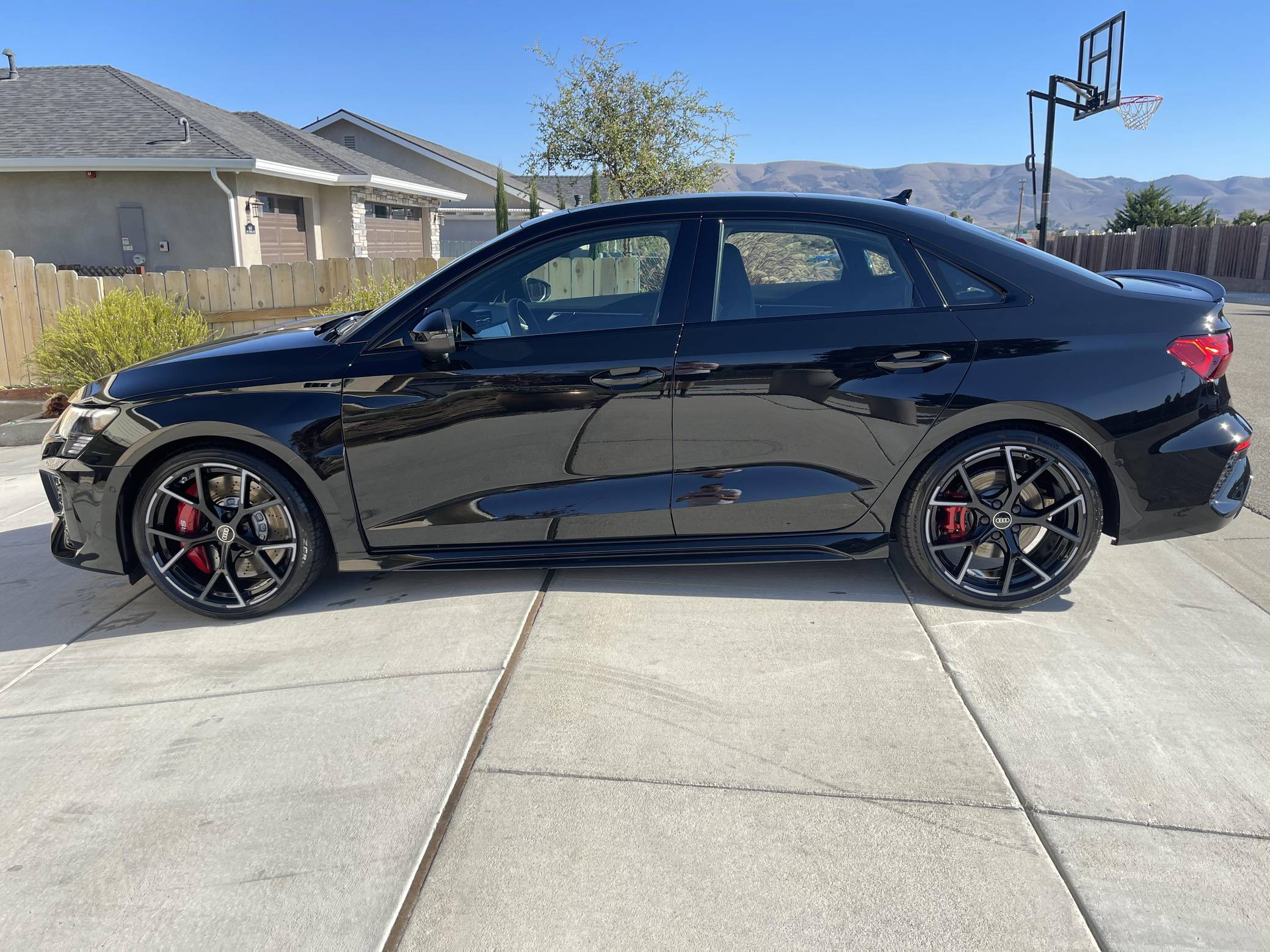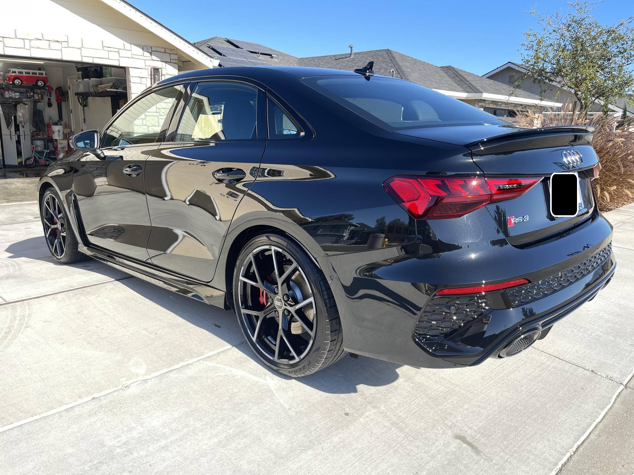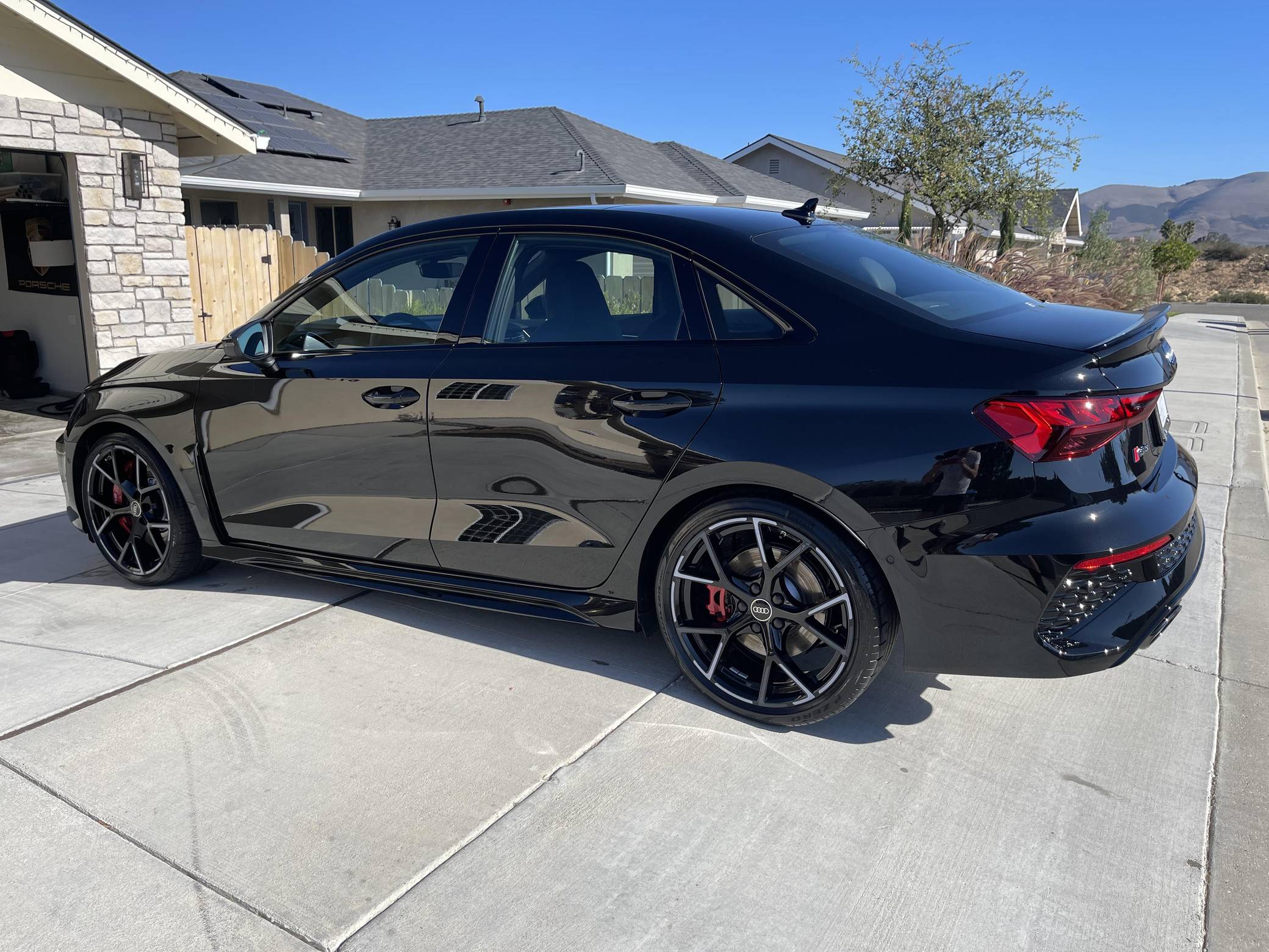THIS. . . is a 2023 Audi RS3, finished in Mythos Black Metallic with a black interior. This RS3's odometer currently displays about 1,400 miles. The seller reports no modifications. Audi introduced the "8Y" RS3 for the 2022 model year, boasting wider bodywork and more power than its predecessor despite sharing the same basic turbocharged 5-cylinder as the outgoing model. Additional changes include more aggressive exterior styling, a more modern interior, and an electronic torque vectoring system called RS Torque Splitter that can be controlled with three selectable drive modes. Power comes from a 2. 5-liter turbocharged inline-5, rated at 401 horsepower and 369 lb-ft of torque. Output is sent to all four wheels via a 7-speed "S tronic" automatic transmission and Audi's Quattro permanent all-wheel drive system.