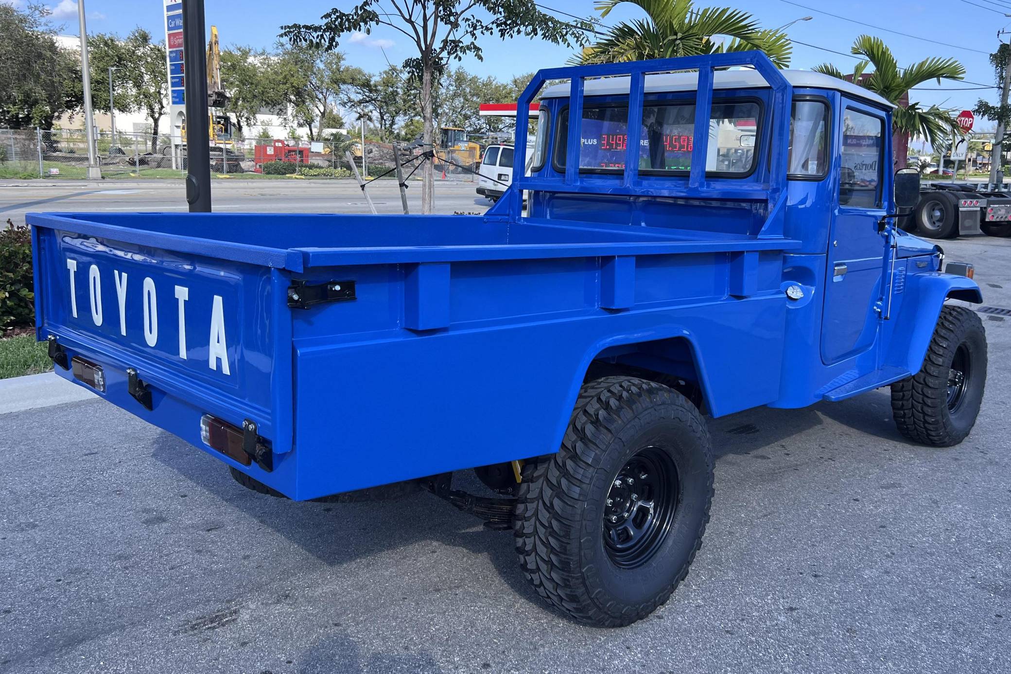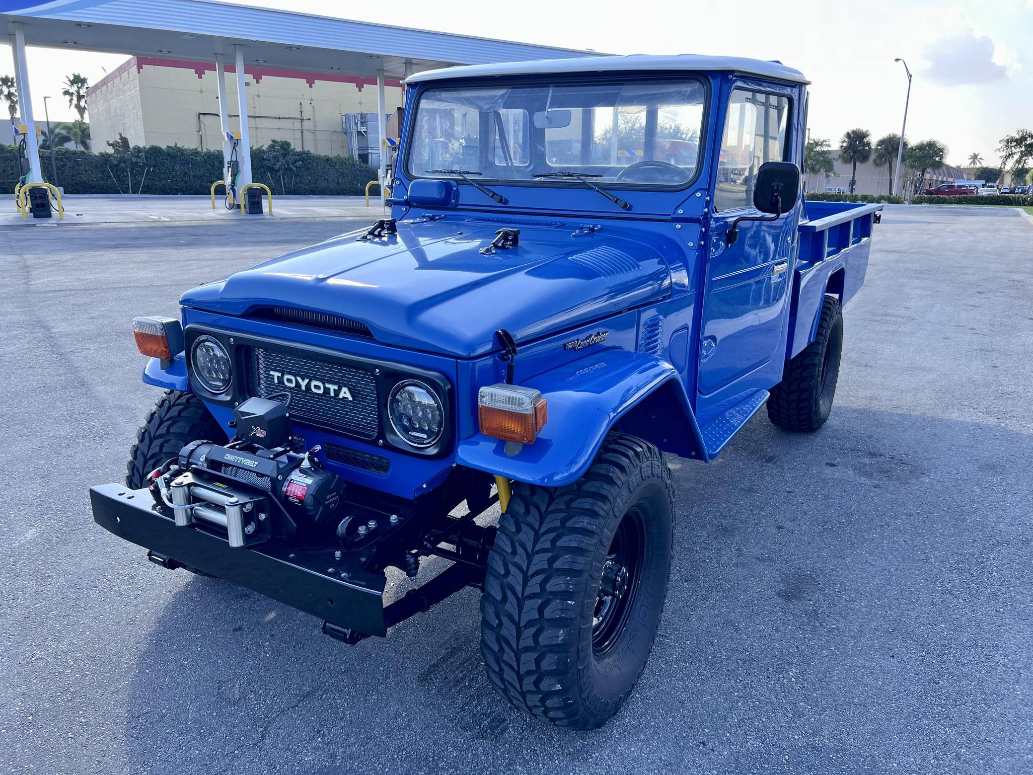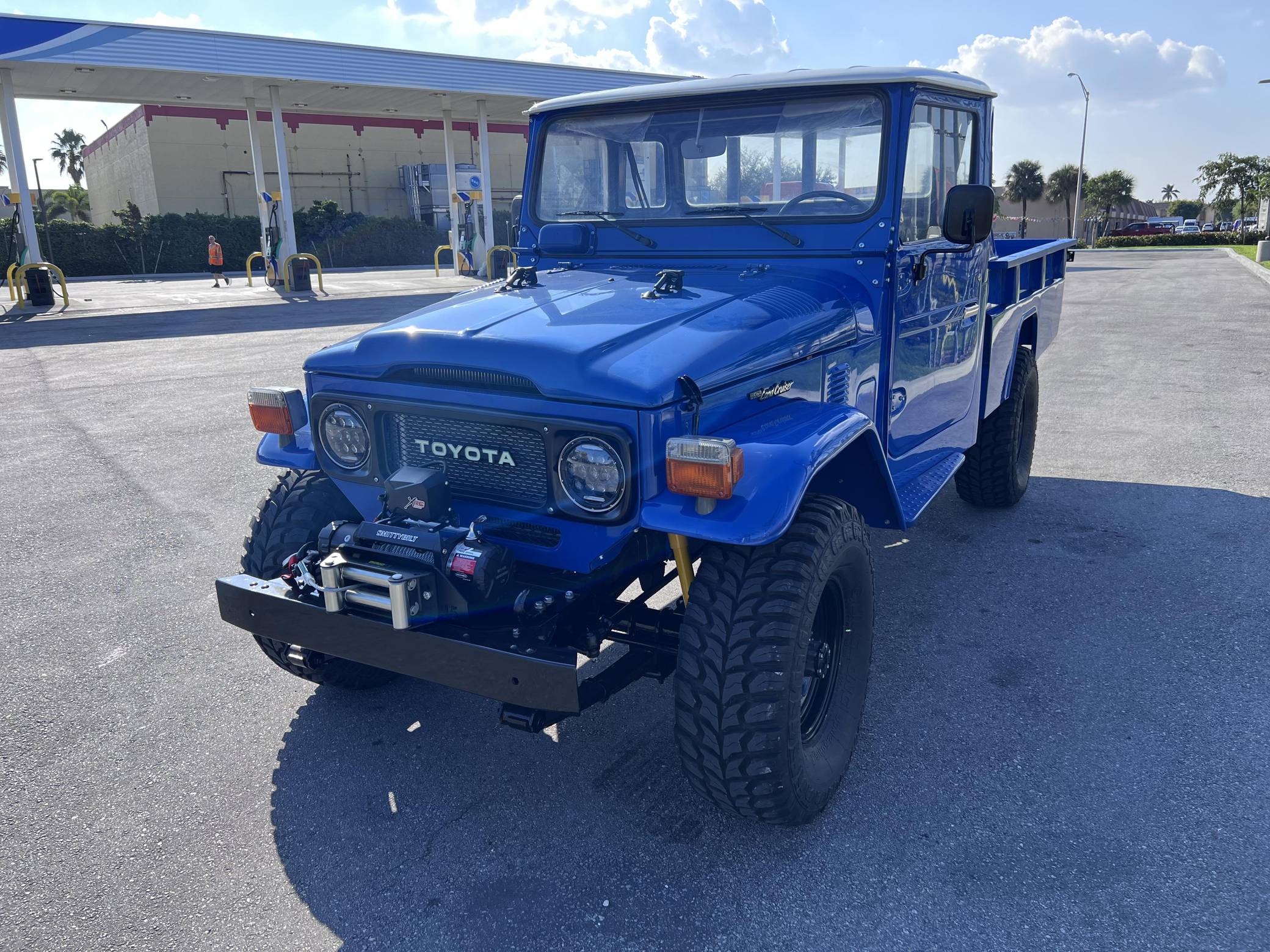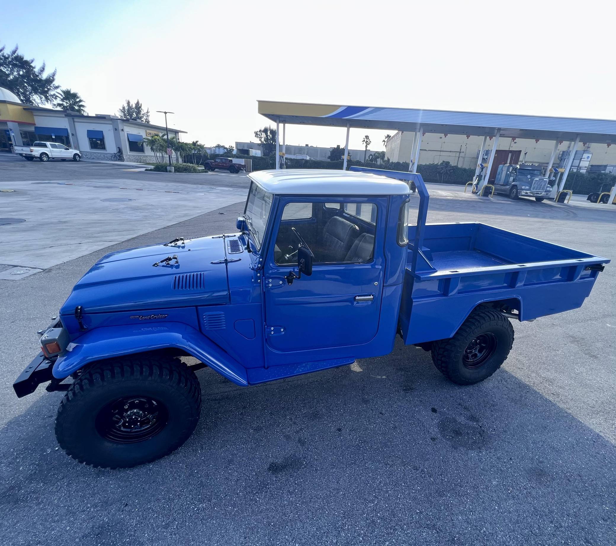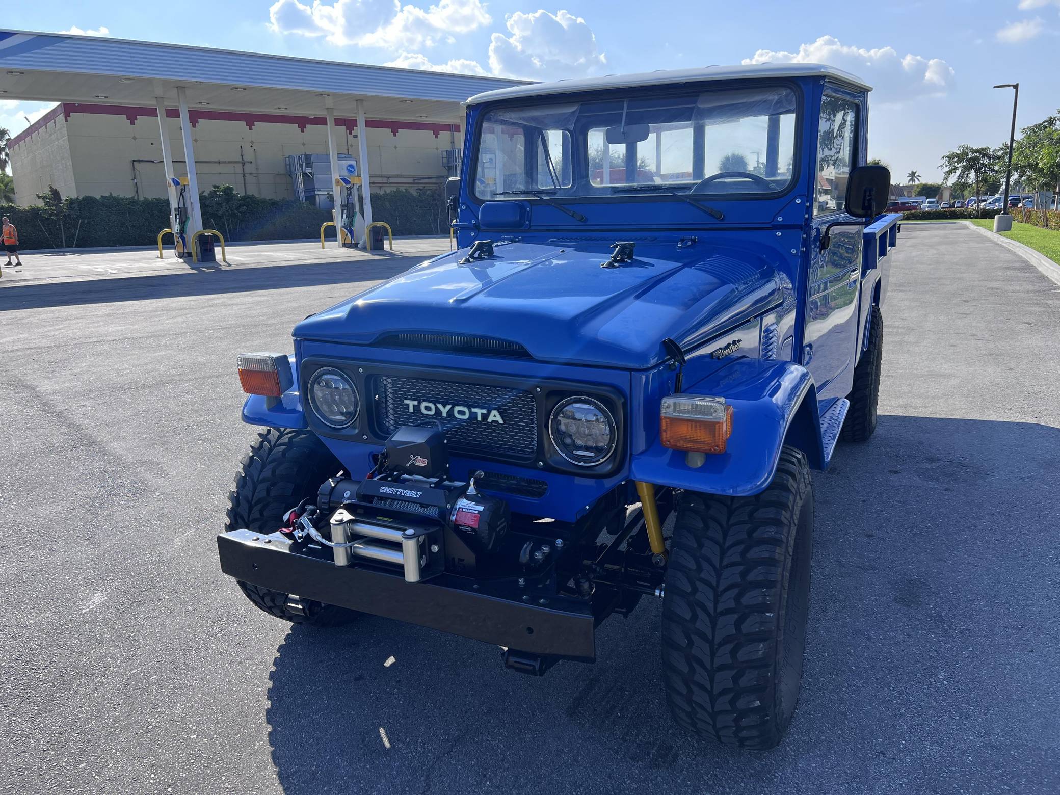 THIS. . . is a 1982 Toyota Land Cruiser Pickup 4x4, finished in blue with a black interior. This is a left-hand drive truck that was reportedly imported from Venezuela in 2022. Refurbished in 2022, this Land Cruiser was modified with an aluminum radiator, 15-inch wheels, LED headlights, a Smittybilt XRC 9500 winch, seatbelts, a climate control system retrofit kit, and an aftermarket head unit, among other parts. More details about the modifications performed on this truck are provided below and detailed in an invoice pictured in the gallery. Toyota released the 40-Series Land Cruiser in 1960. Designed to replace the 20-Series model, the 40-Series played a significant role in establishing the Land Cruiser's reputation as a tough, go-anywhere off-roader. It was available in numerous configurations, including short- and long-wheelbase models, and it sold spectacularly well: Toyota built the millionth Land Cruiser in 1980. FJ40 sales in the United States ended in 1983, but the model remained in production abroad until 2001, most notably as the Bandeirante model in Brazil. The FJ45 models were the long wheelbase variants of the 40-Series offered in long and short bed pickup forms as well as a 4-door wagon. The FJ45 was only sold in the U. S for the 1963 to 1967 model years, but production continued for other markets until June 1986. Power comes from a 4. 2-liter "2F" straight-6, rated at about 135 horsepower and 210 lb-ft of torque. It spins the rear or the four wheels via a 4-speed manual transmission and a 2-speed transfer case.