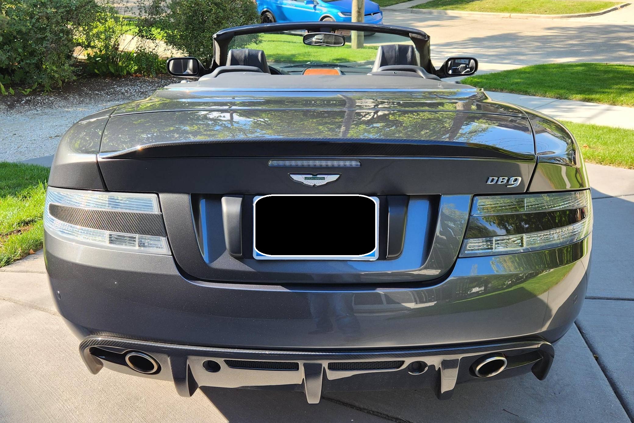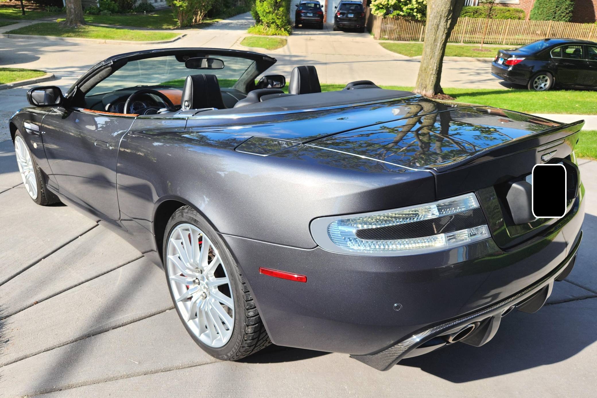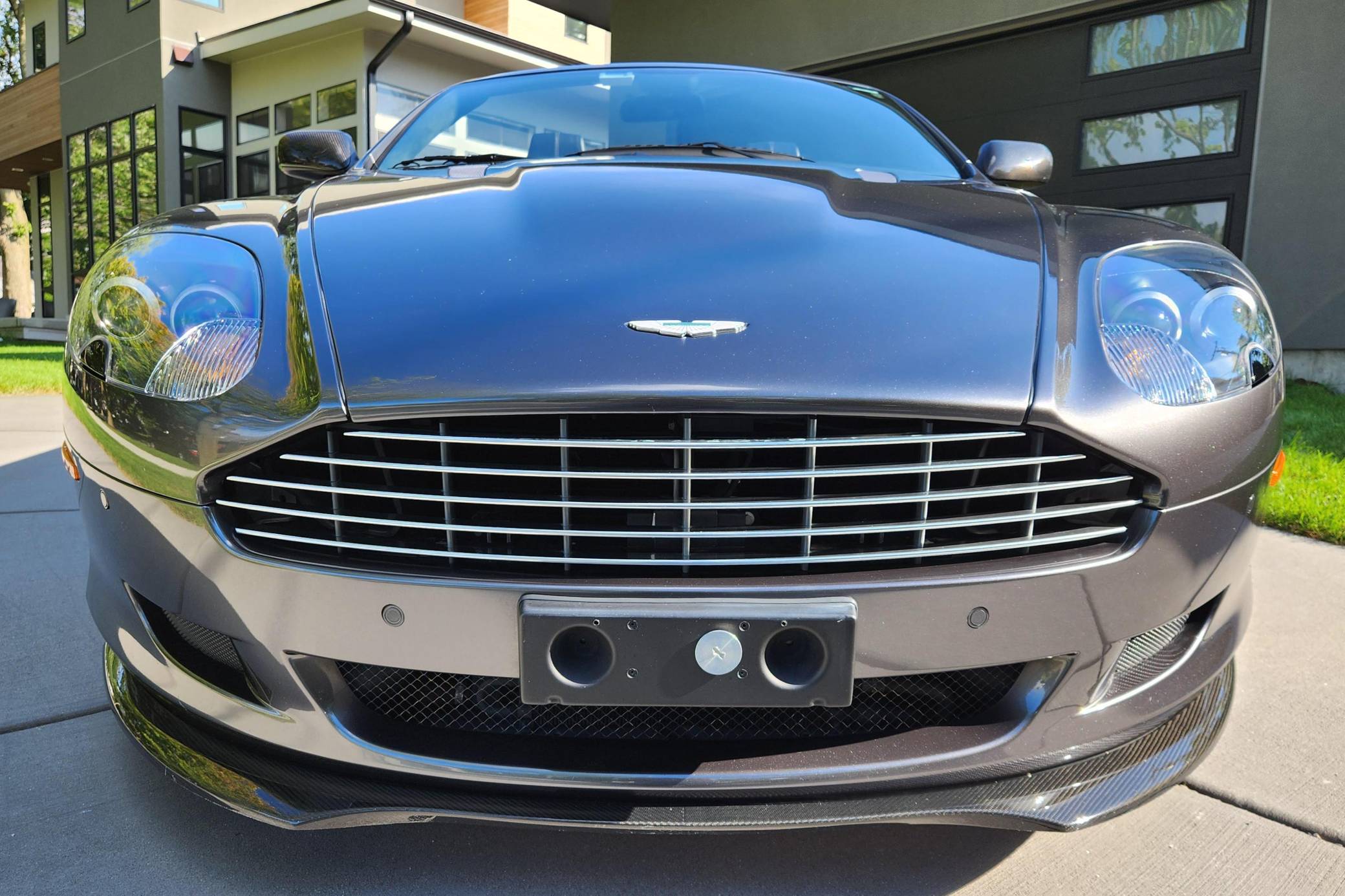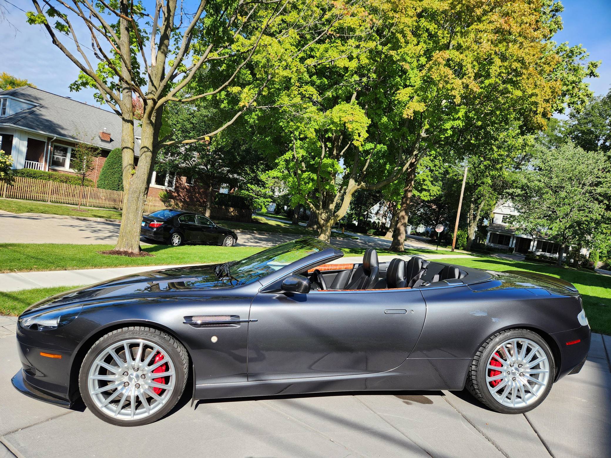 THIS… is a 2008 Aston Martin DB9 Volante, finished in Meteorite Silver with an Obsidian Black interior. The odometer on this DB9 currently displays approximately 26,000 miles. A partial list of notable equipment includes 19-inch 15-spoke wheels, a power-operated soft top, Obsidian Black leather upholstery with Falcon Grey contrast stitching, Mahogany wood veneer interior trim, power-adjustable front seats, and more as detailed below. Modifications reported by the seller are limited to a carbon fiber front lip, side mirrors, rear diffuser, and rear wing, and clear taillight lenses. Designed by Ian Callum and Henrik Fisker, the DB9 made its debut for 2005 to replace the DB7. It was built on a new aluminum-intensive platform and it inaugurated a thoroughly revised version of the firm's 5. 9-liter V12. It was available as both a 2+2 coupe or convertible, and handled markedly better than its predecessor thanks in part to a 50/50 weight distribution achieved by moving the V12 back in the engine bay and fitting a rear-mounted transaxle. Power comes from a 5. 9-liter V12, rated at 450 horsepower and 420 lb-ft of torque. Output is sent to the rear wheels via a 6-speed automatic transmission.