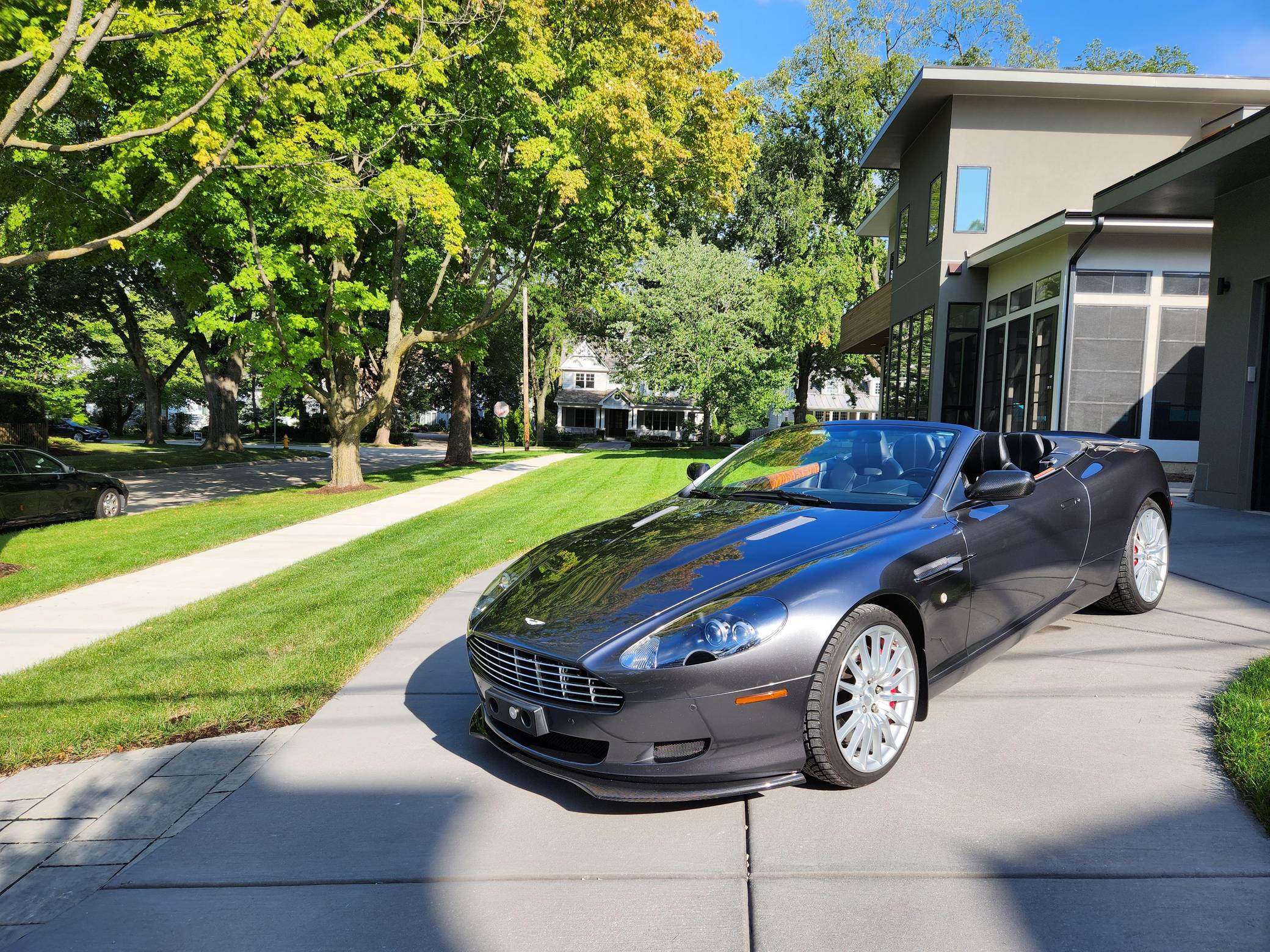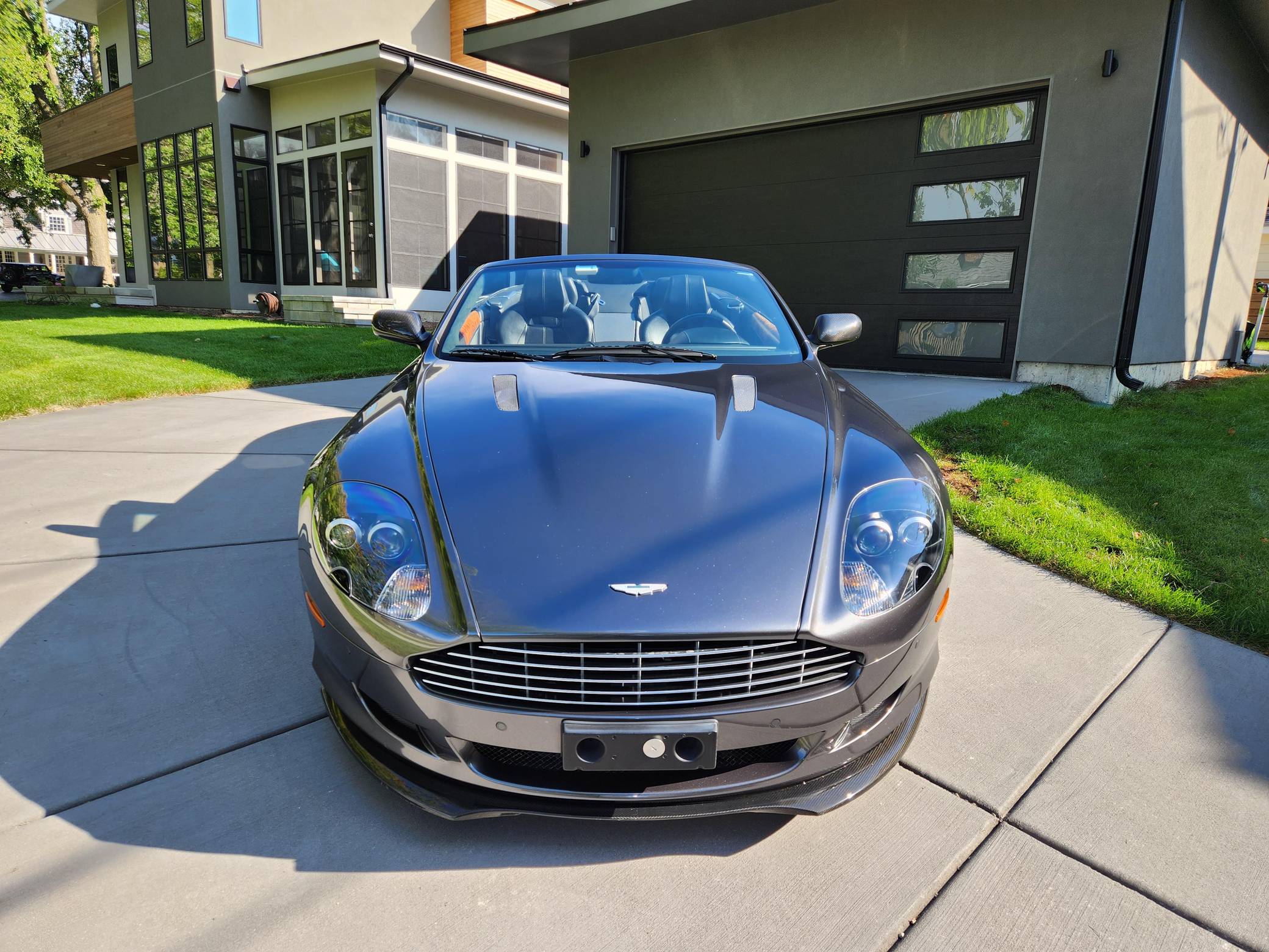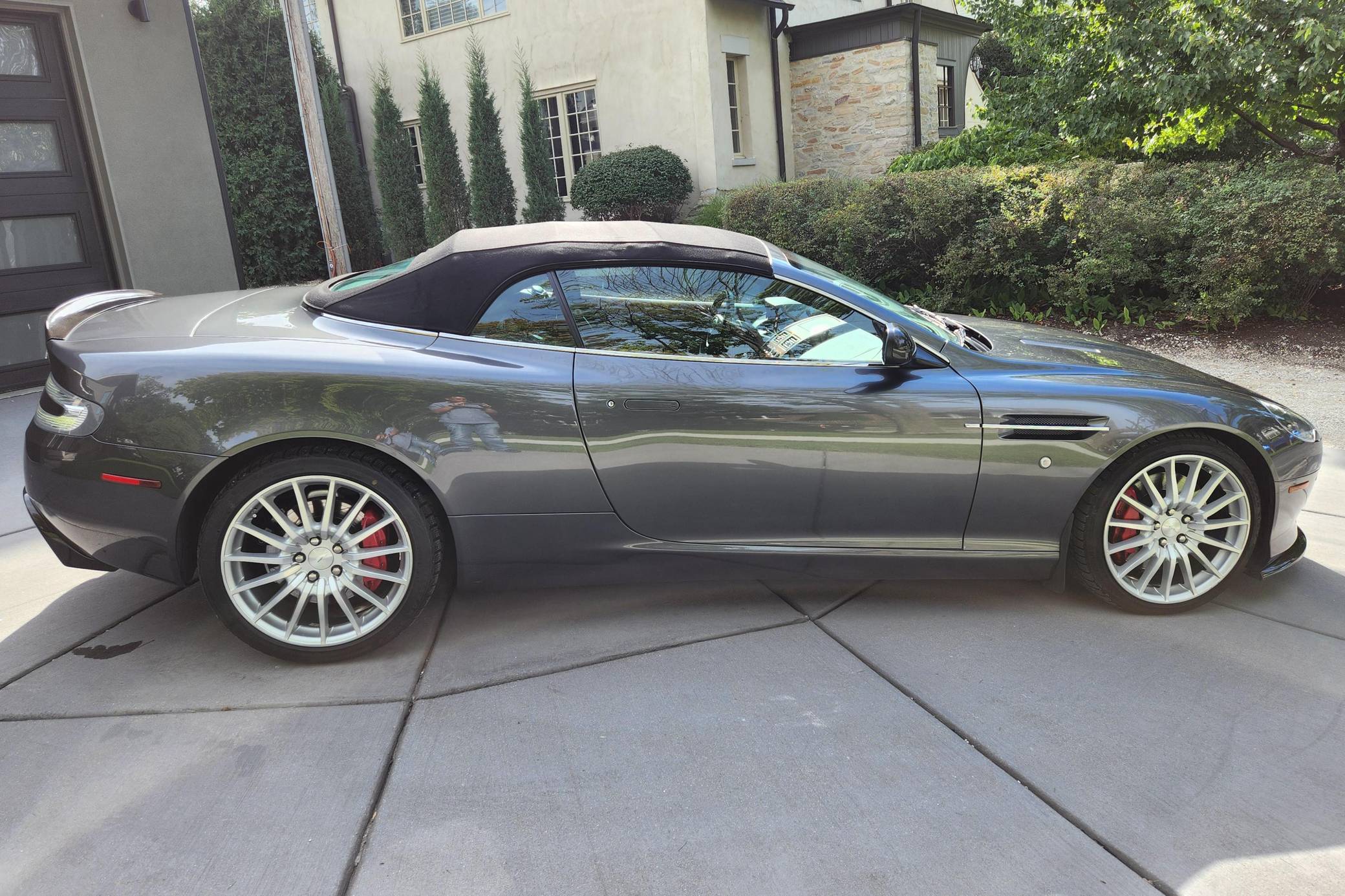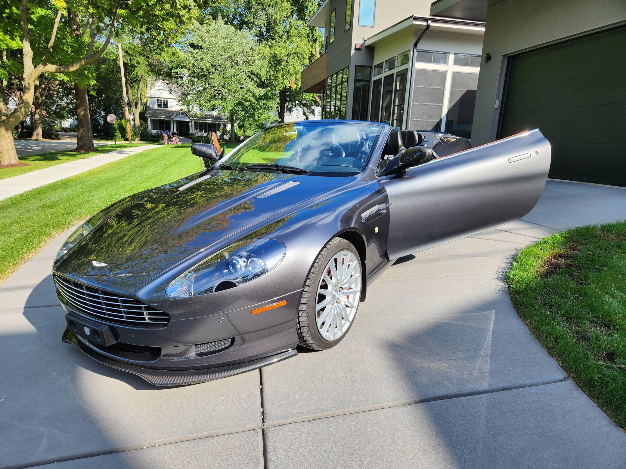 THIS… is a 2008 Aston Martin DB9 Volante, finished in Meteorite Silver with an Obsidian Black interior. The odometer on this DB9 currently displays approximately 26,000 miles. A partial list of notable equipment includes 19-inch 15-spoke wheels, a power-operated soft top, Obsidian Black leather upholstery with Falcon Grey contrast stitching, Mahogany wood veneer interior trim, power-adjustable front seats, and more as detailed below. Modifications reported by the seller are limited to a carbon fiber front lip, side mirrors, rear diffuser, and rear wing, and clear taillight lenses. Designed by Ian Callum and Henrik Fisker, the DB9 made its debut for 2005 to replace the DB7. It was built on a new aluminum-intensive platform and it inaugurated a thoroughly revised version of the firm's 5. 9-liter V12. It was available as both a 2+2 coupe or convertible, and handled markedly better than its predecessor thanks in part to a 50/50 weight distribution achieved by moving the V12 back in the engine bay and fitting a rear-mounted transaxle. Power comes from a 5. 9-liter V12, rated at 450 horsepower and 420 lb-ft of torque. Output is sent to the rear wheels via a 6-speed automatic transmission.