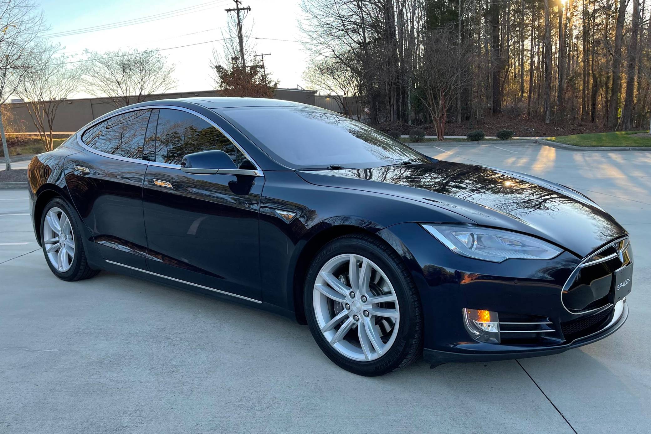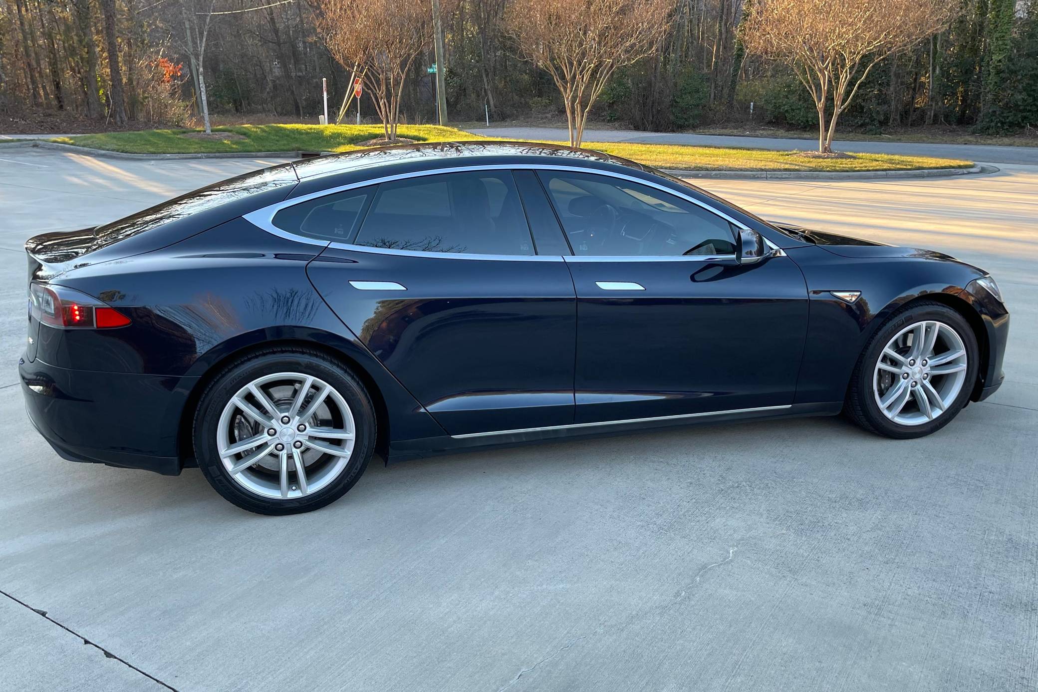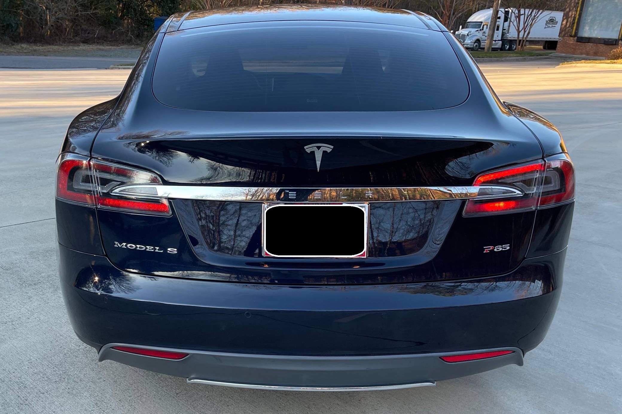 2013 Tesla Model S P85, finished in Metallic Blue with a tan interior. Factory equipment reported by the seller includes the Technology Package (navigation system, back-up camera, power liftgate, keyless entry), 19-inch wheels, air suspension, a panoramic glass roof, heated front seats, a 17-inch touchscreen, Premium Connectivity for life, and more as detailed below. Modifications are limited to tinted windows. When the now-iconic Tesla Model S was introduced in 2012, it set a new standard in electric luxury cars with advanced technology, a sleek aesthetic, and outstanding range. The 2013 Tesla Model S was offered in four different trims: 40 (with a 40 kWh battery pack), 60 (with a 60 kWh pack), 85 (with an 85 kWh pack), and P85, with the same 85 kWh battery pack with performance improvements. Power comes from a rear-mounted electric motor, which draws electricity from an 85-kWh lithium-ion battery pack to zap the rear wheels with 416 horsepower and 443 lb-ft of torque. The EPA estimated range for this model is 265 miles, but the seller notes that a full charge gives this car an estimated 229 miles of range.