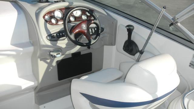 Head, Forward Cabin, Bimini Top, Stainless Steel Swim Ladder, Lots of Storage, In-Deck Storage Compartments, Swim Platforms, Courtesy Lights, Cockpit Lights, Windshield, Heavy Duty Rubrail, Inboard/Outboard Engine, Fuel Filters on Engines, Bilge Pump(s), Anchor Locker, Trailer, 12V Power Outlet, Battery Switch(es), Full Instrumentation, AM/FM/CD, Plotter/GPS, Depth Sounder.