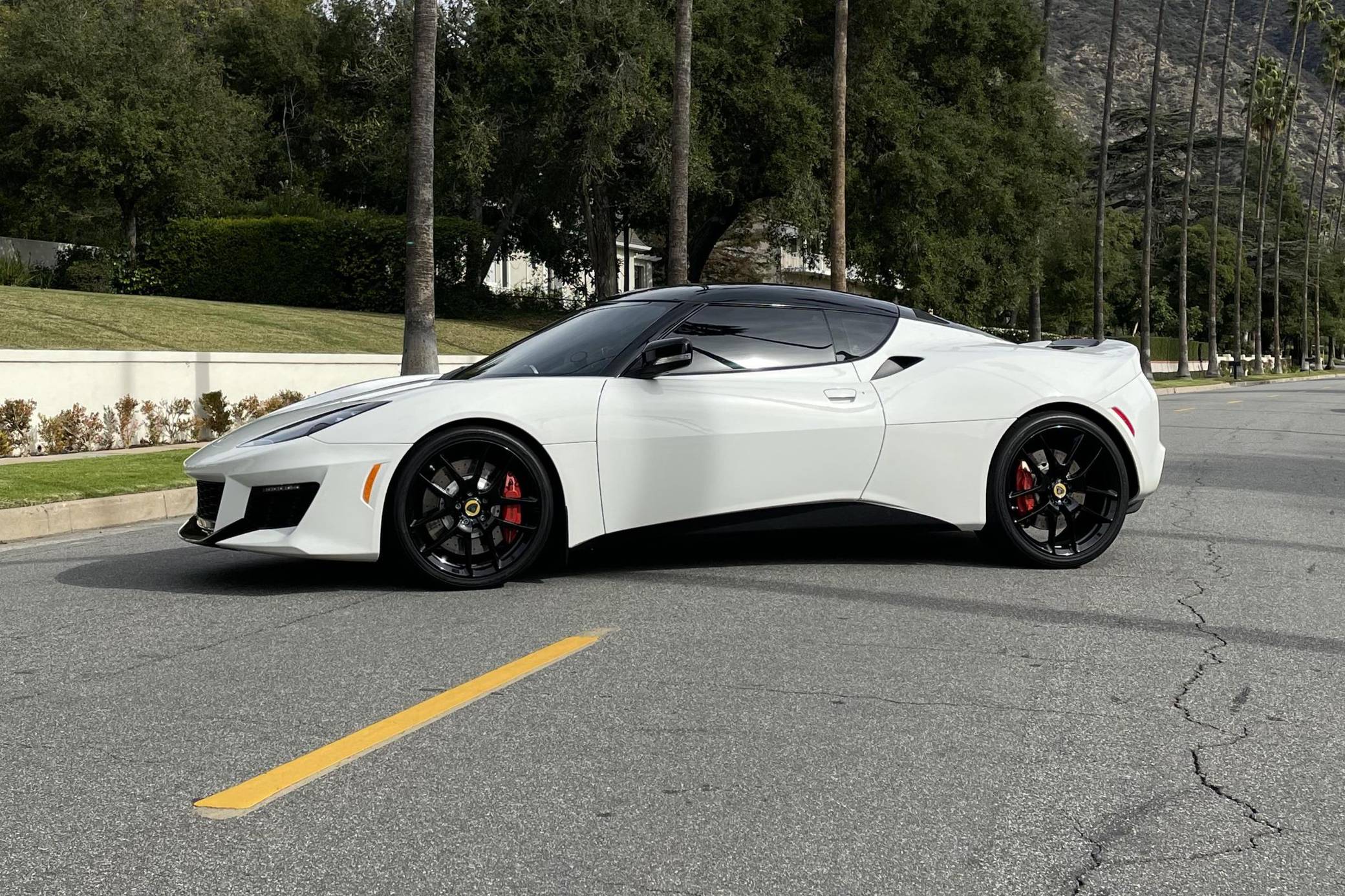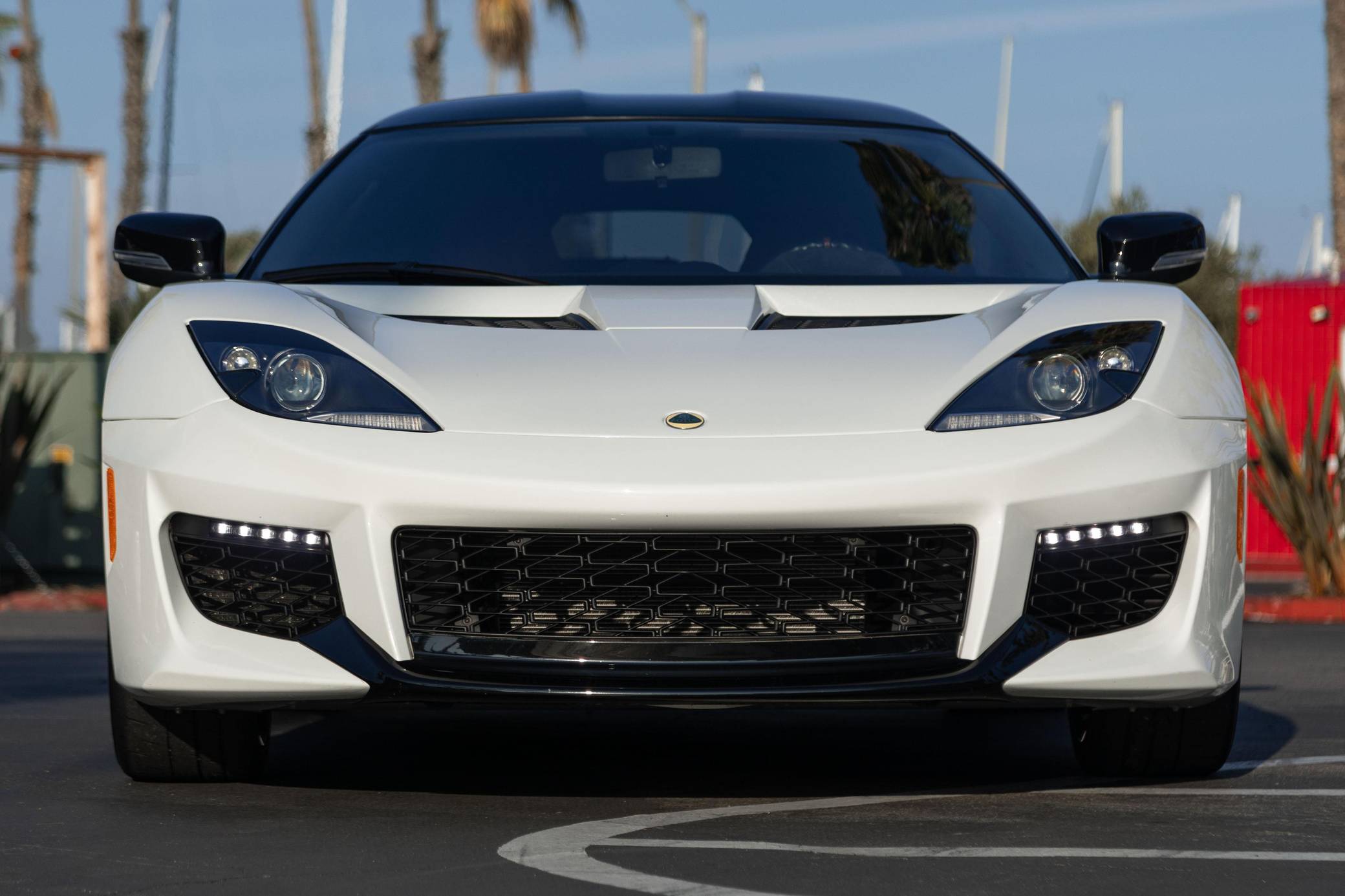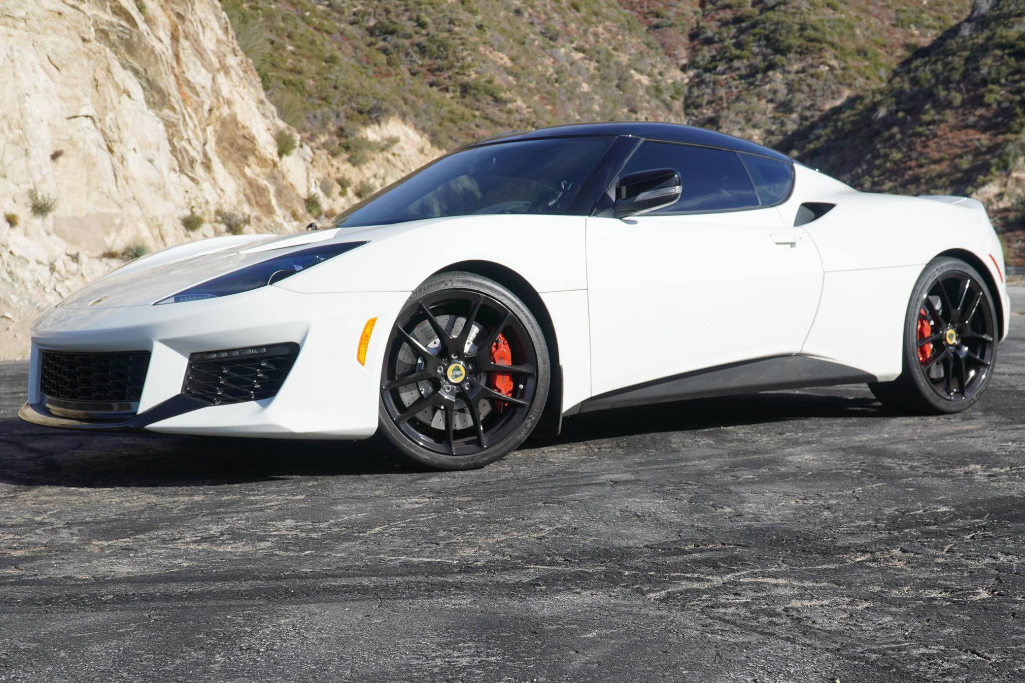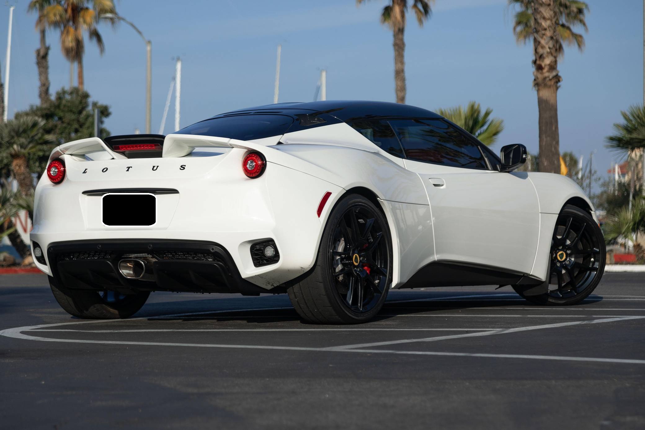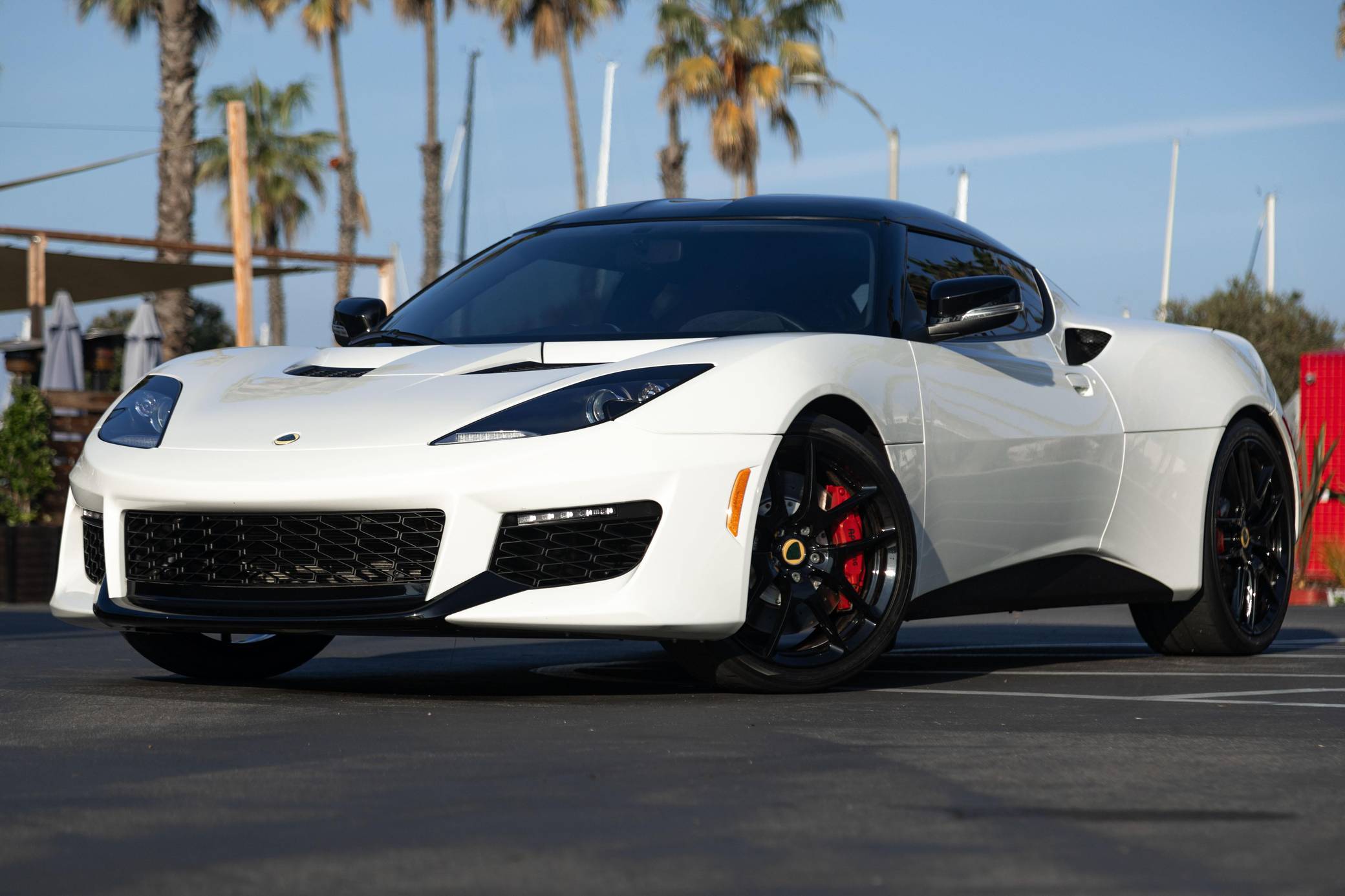 2017 Lotus Evora 400, finished in Metallic White with a red interior. This Evora is equipped with the desirable 6-speed manual transmission. Equipment includes the Black Pack, Alcantara Pack, cruise control, 19-inch front and 20-inch rear forged alloy wheels, and Bluetooth connectivity. The seller reports that the third catalytic converter has been removed. When the mid-engine Lotus Evora came out for the 2010 model year, it was the first all-new vehicle platform for a Lotus since the Elise debuted in 1995. The intent was to create a straightforward design that emphasizes a pure driving experience with agile handling in a stylish, lightweight road car. Power comes from a Toyota-derived supercharged 3. 5-liter Toyota "2GR-FE" V6, rated at 400 horsepower and 302 lb-ft of torque. Power is sent to the rear wheels via a 6-speed manual transmission and rear limited-slip differential.