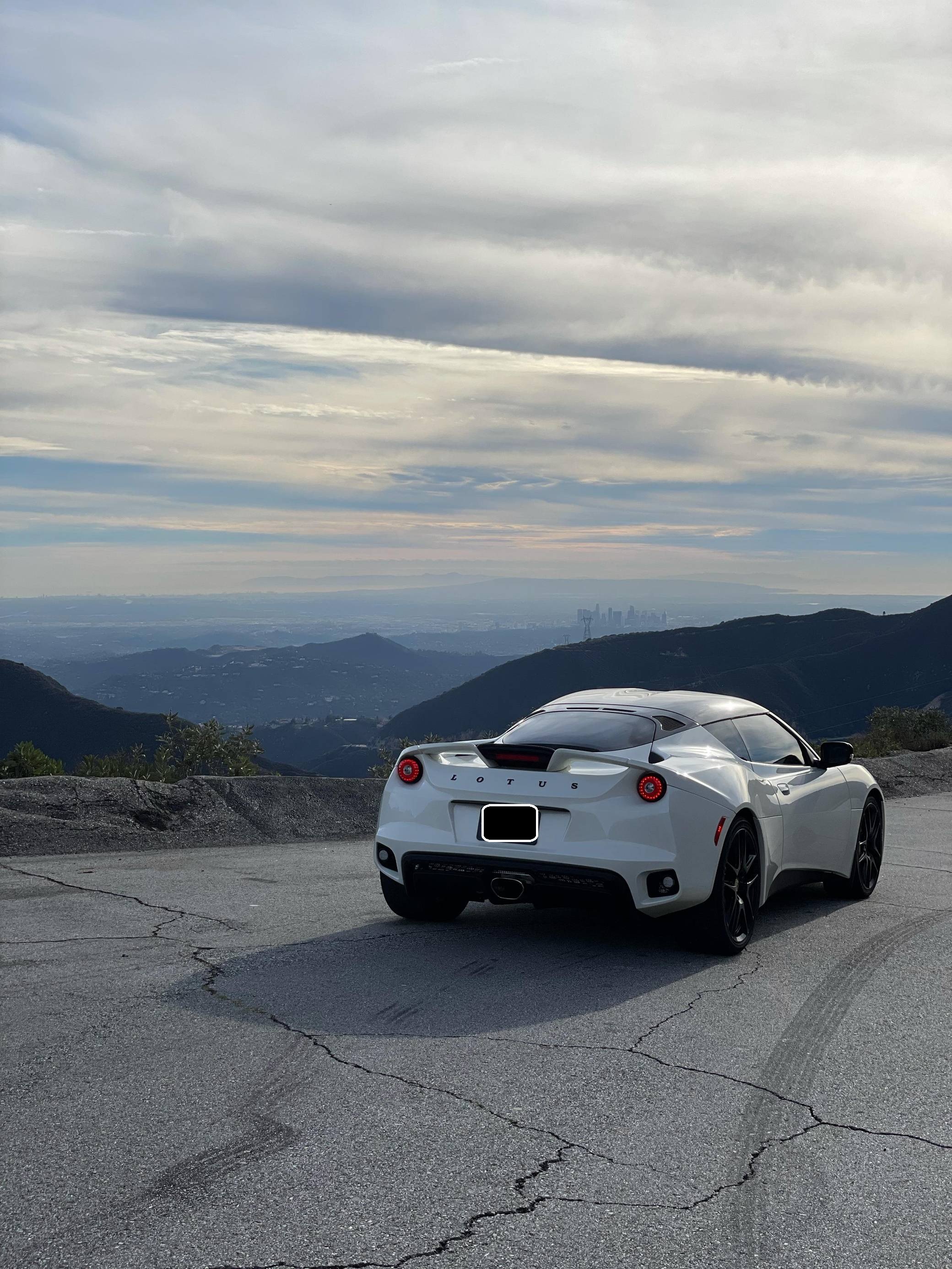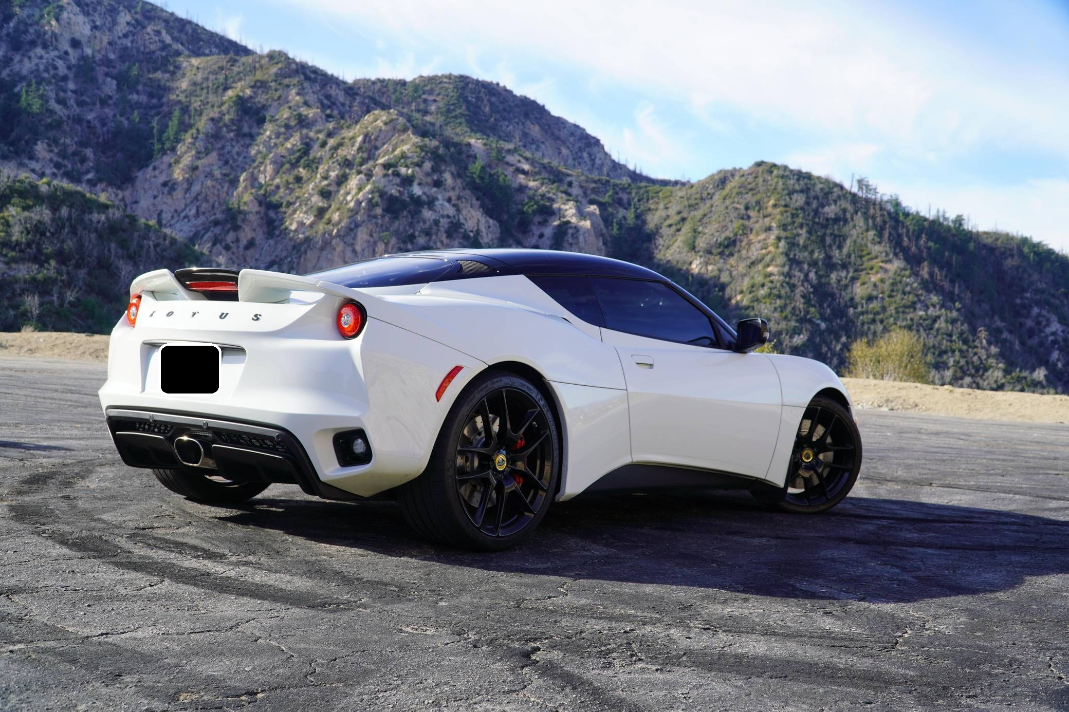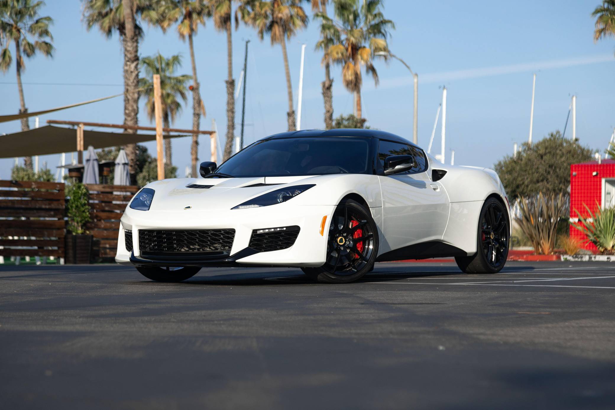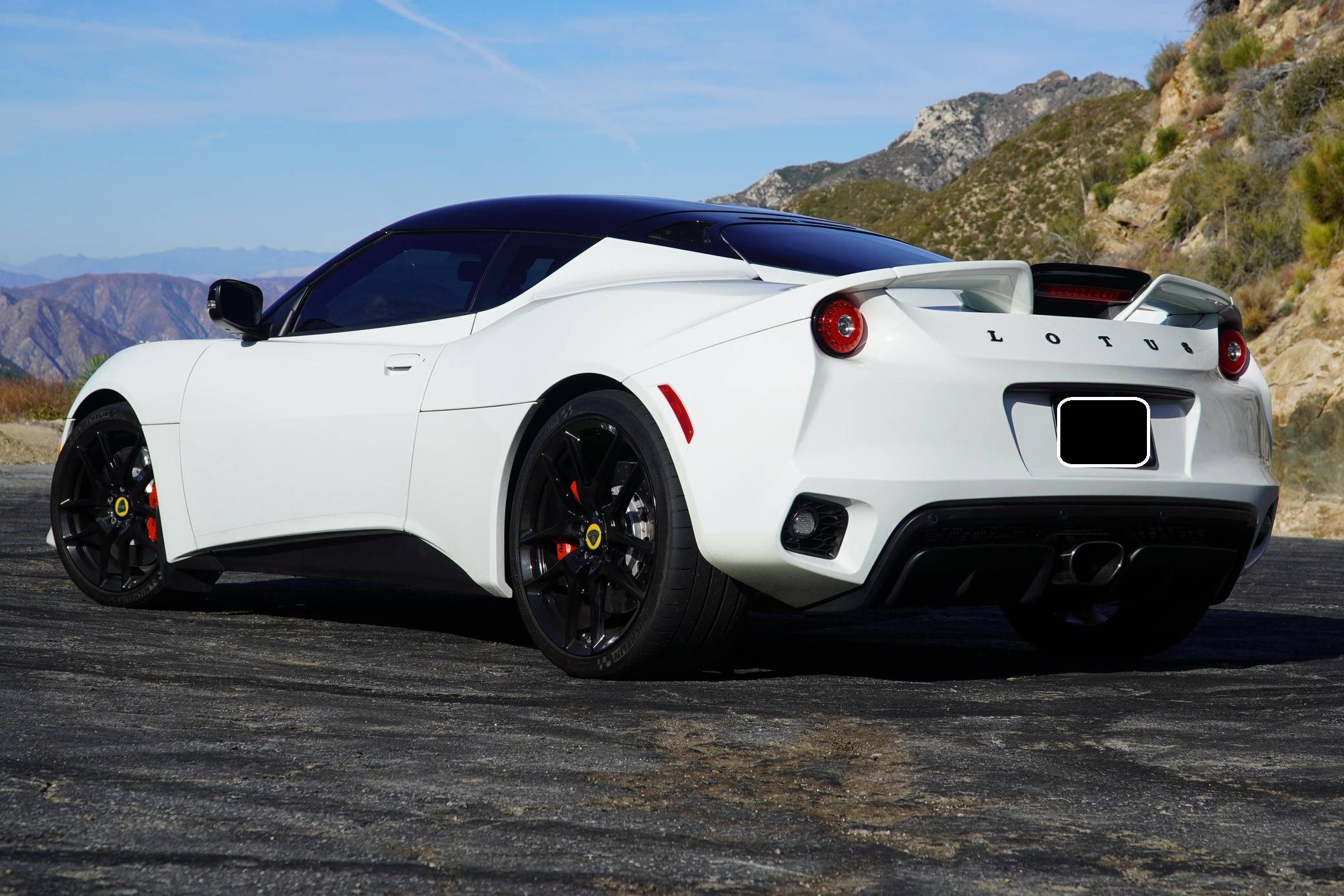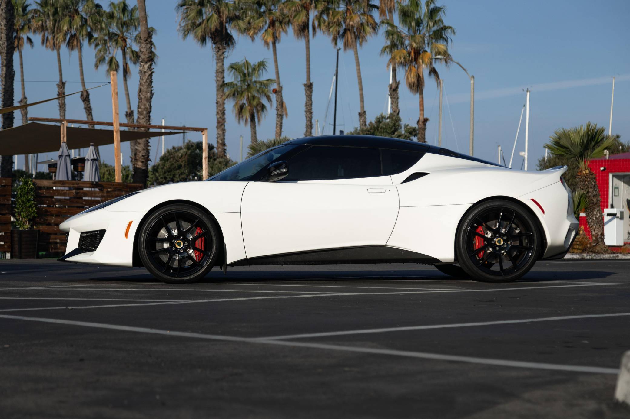 2017 Lotus Evora 400, finished in Metallic White with a red interior. This Evora is equipped with the desirable 6-speed manual transmission. Equipment includes the Black Pack, Alcantara Pack, cruise control, 19-inch front and 20-inch rear forged alloy wheels, and Bluetooth connectivity. The seller reports that the third catalytic converter has been removed. When the mid-engine Lotus Evora came out for the 2010 model year, it was the first all-new vehicle platform for a Lotus since the Elise debuted in 1995. The intent was to create a straightforward design that emphasizes a pure driving experience with agile handling in a stylish, lightweight road car. Power comes from a Toyota-derived supercharged 3. 5-liter Toyota "2GR-FE" V6, rated at 400 horsepower and 302 lb-ft of torque. Power is sent to the rear wheels via a 6-speed manual transmission and rear limited-slip differential.