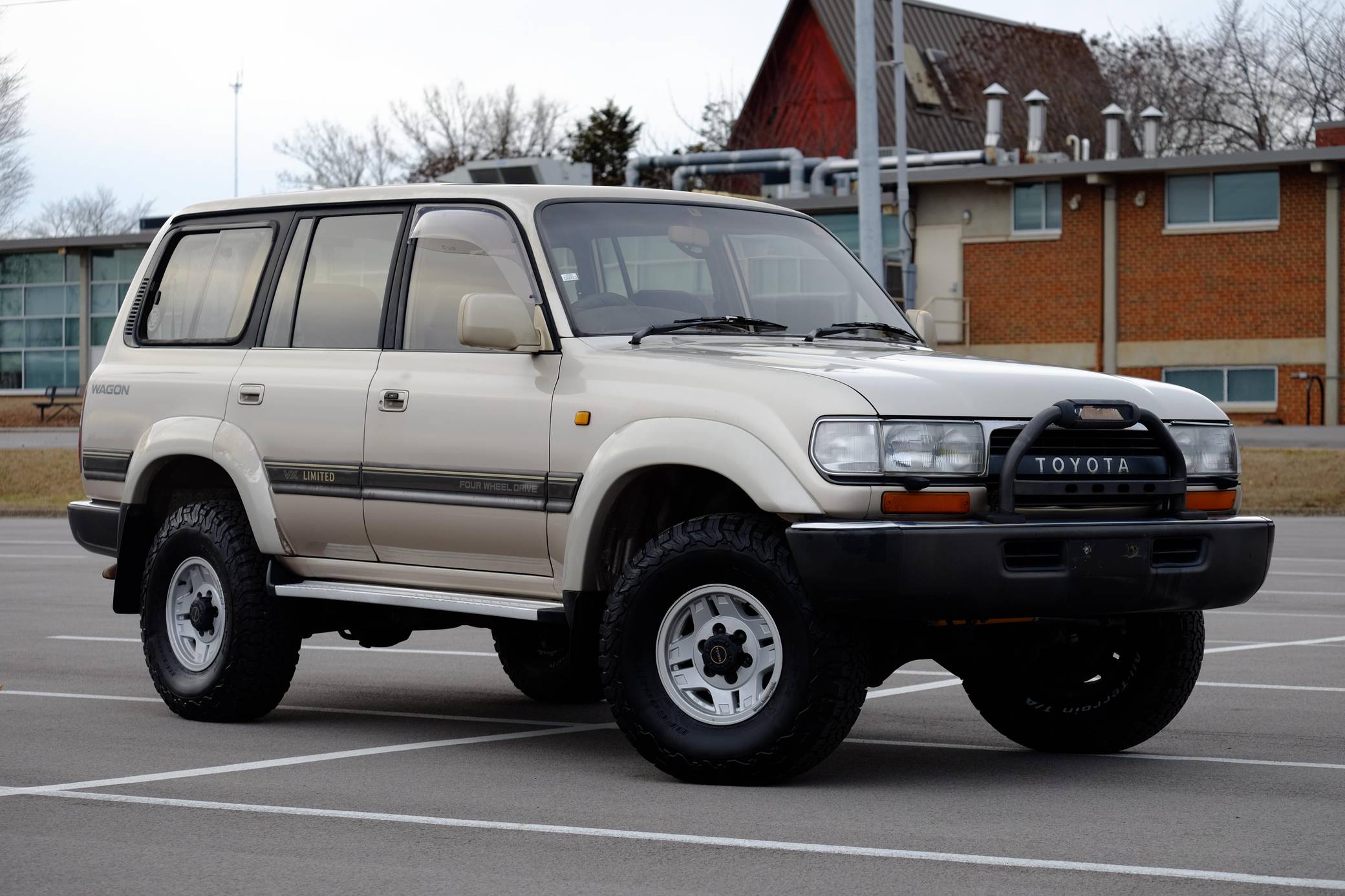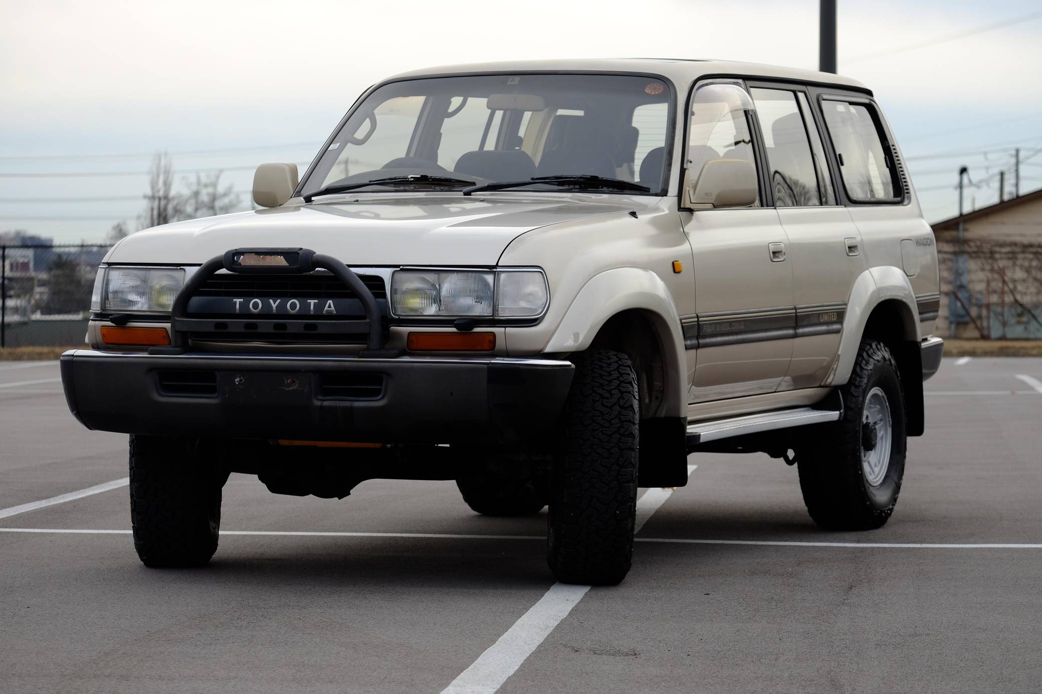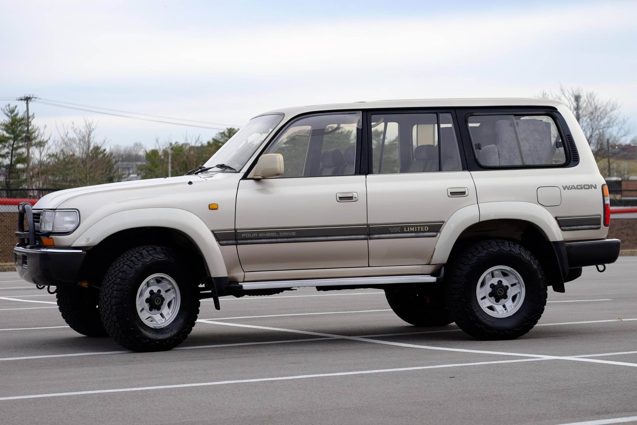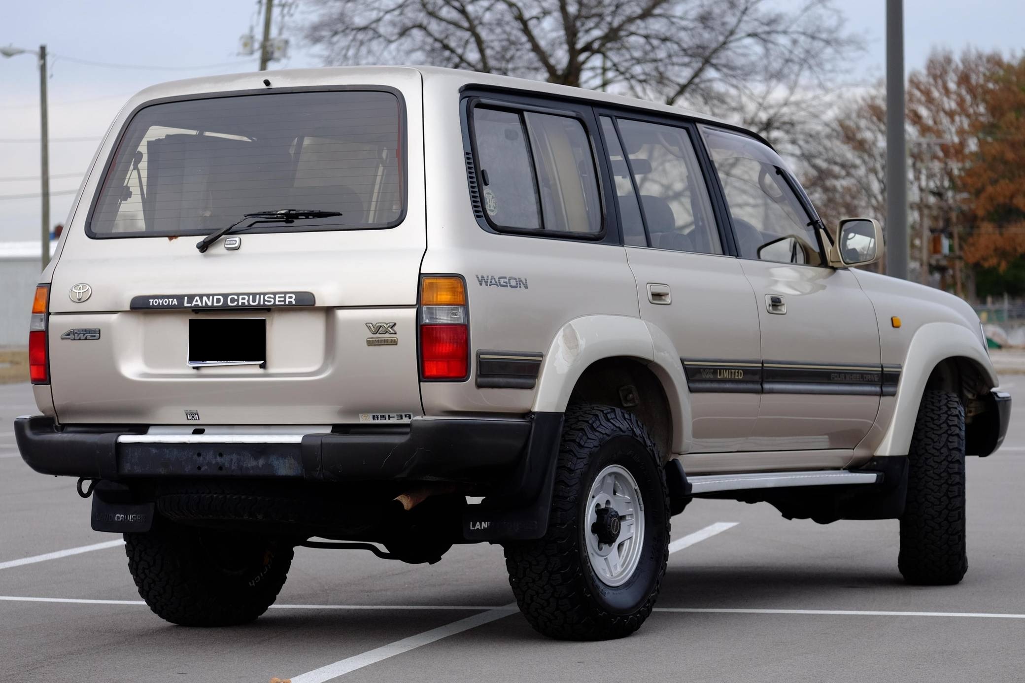 THIS. . . is a 1992 Toyota Land Cruiser VX Limited, finished in Beige Metallic with a brown interior. Imported from Japan in November 2022, it's equipped with a metric instrument cluster, and the odometer shows about 140,500 kilometers, which represents approximately 87,400 miles. Equipment includes 15-inch wheels, a locking center differential, headlight washers, a power sunroof, cloth upholstery, overhead compass and altimeter, center console ice box, automatic climate control, rear climate control system, and more as detailed below. Modifications reported by the seller include an Old Man Emu 2-inch suspension lift kit, oversized BFGoodrich tires, a grille guard, and front window rain guards. The 80-Series Land Cruiser was built for the Japanese and North American markets between 1990 and 1997. The Japanese-market VX Limited was the range-topping version, and it included features not offered on the contemporary North American Land Cruiser including automatic front and rear climate control, adjustable shock absorbers, and a center console cooling box. Power comes from a 4. 0-liter inline-6, rated at approximately 155 horsepower and 220 lb-ft of torque. Output is sent to all four wheels through a 4-speed automatic transmission and a 2-speed transfer case.