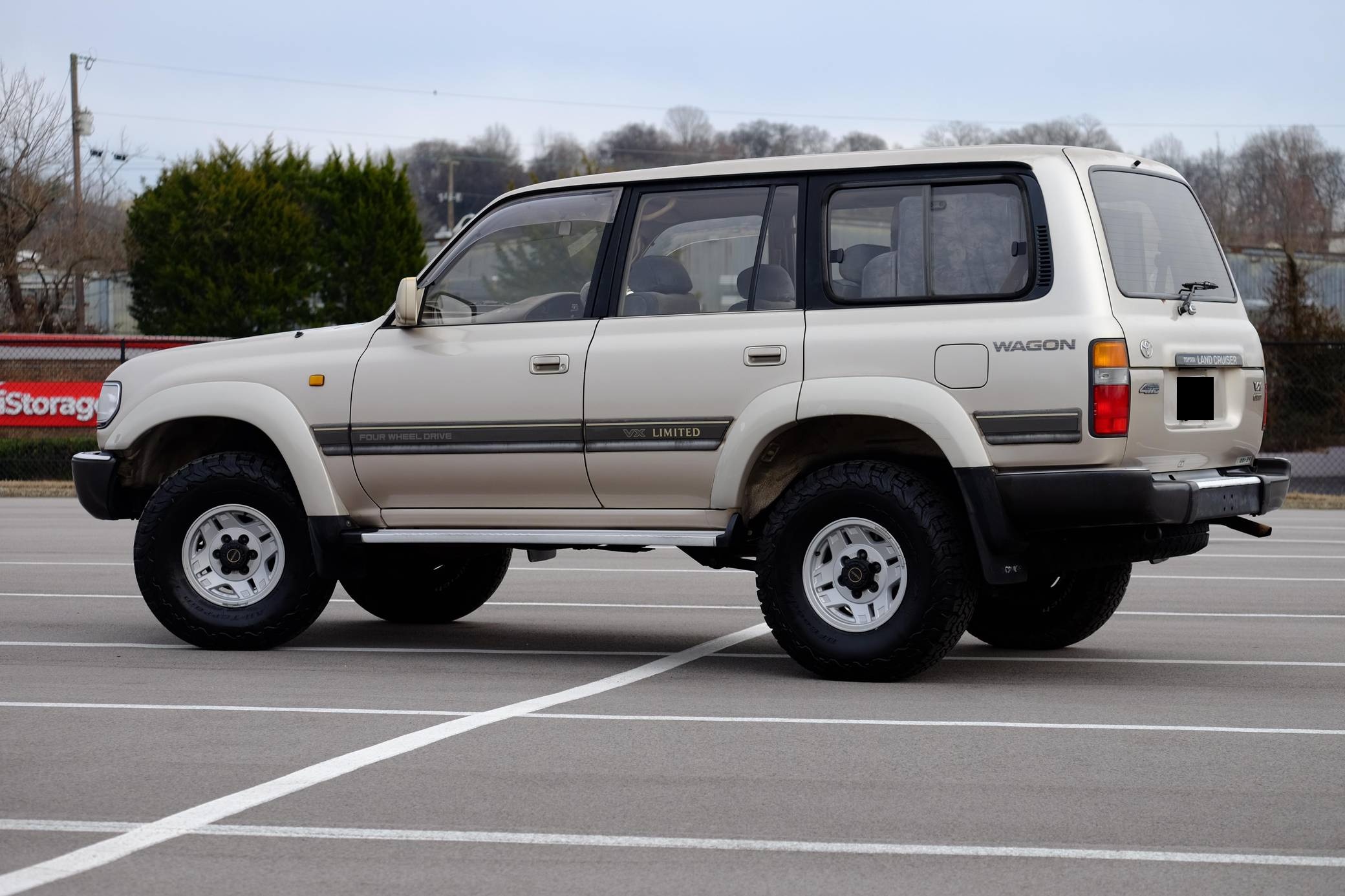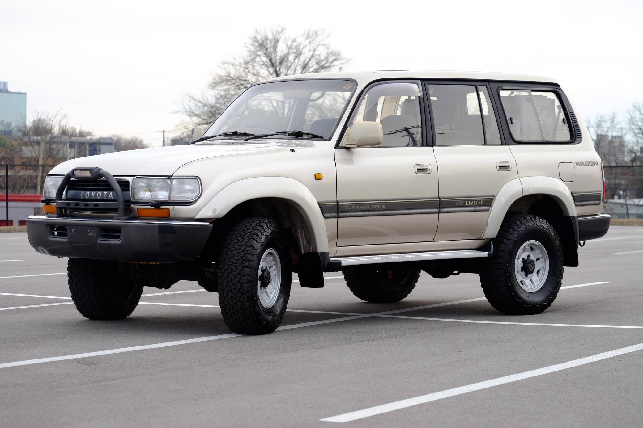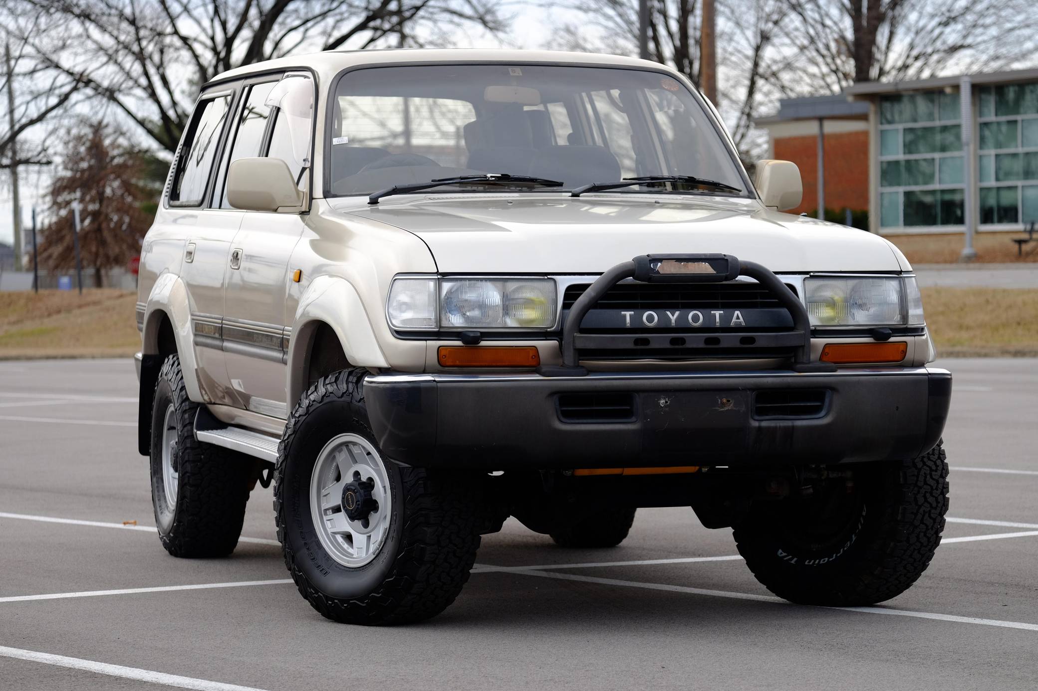 THIS. . . is a 1992 Toyota Land Cruiser VX Limited, finished in Beige Metallic with a brown interior. Imported from Japan in November 2022, it's equipped with a metric instrument cluster, and the odometer shows about 140,500 kilometers, which represents approximately 87,400 miles. Equipment includes 15-inch wheels, a locking center differential, headlight washers, a power sunroof, cloth upholstery, overhead compass and altimeter, center console ice box, automatic climate control, rear climate control system, and more as detailed below. Modifications reported by the seller include an Old Man Emu 2-inch suspension lift kit, oversized BFGoodrich tires, a grille guard, and front window rain guards. The 80-Series Land Cruiser was built for the Japanese and North American markets between 1990 and 1997. The Japanese-market VX Limited was the range-topping version, and it included features not offered on the contemporary North American Land Cruiser including automatic front and rear climate control, adjustable shock absorbers, and a center console cooling box. Power comes from a 4. 0-liter inline-6, rated at approximately 155 horsepower and 220 lb-ft of torque. Output is sent to all four wheels through a 4-speed automatic transmission and a 2-speed transfer case.