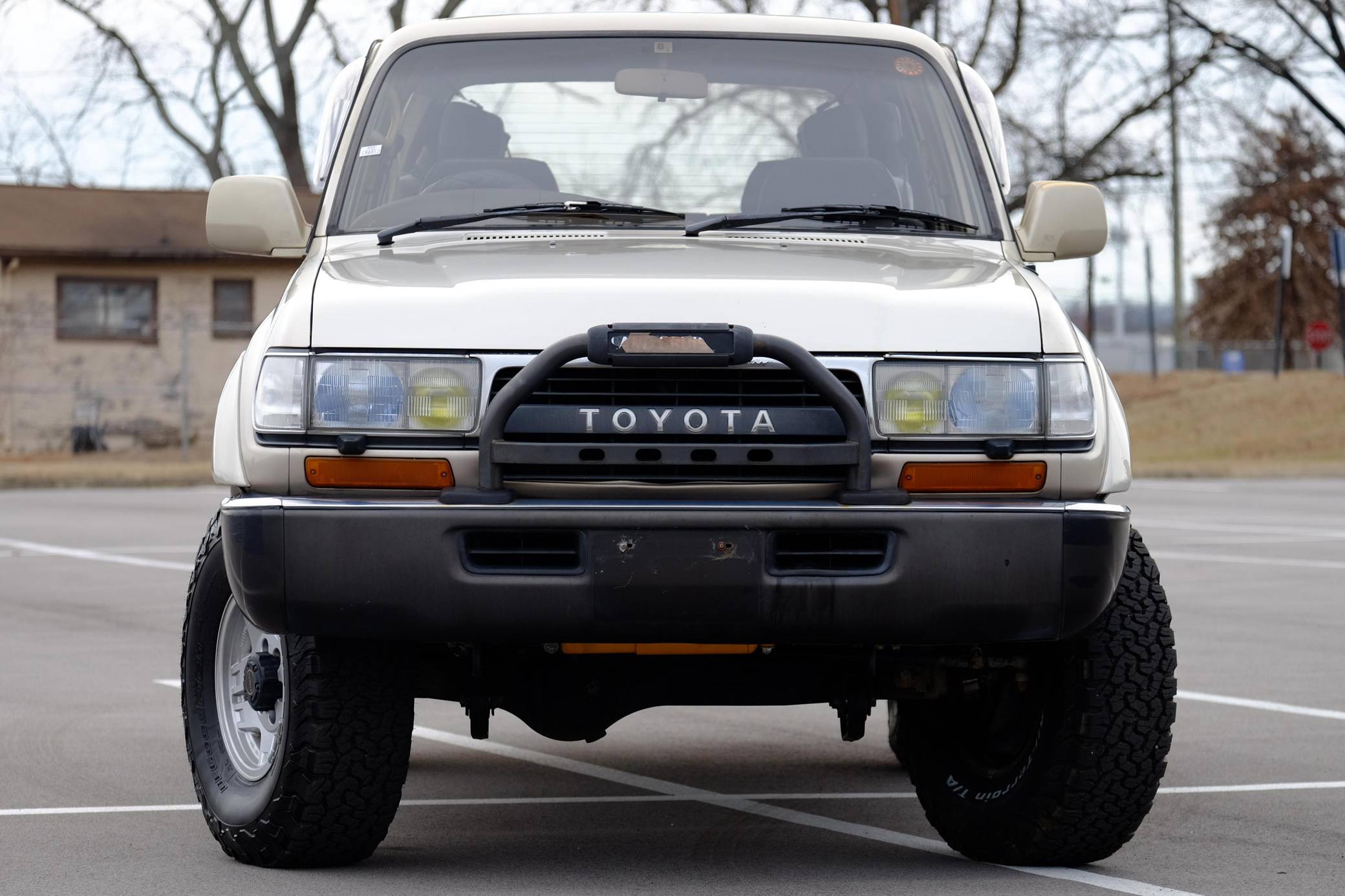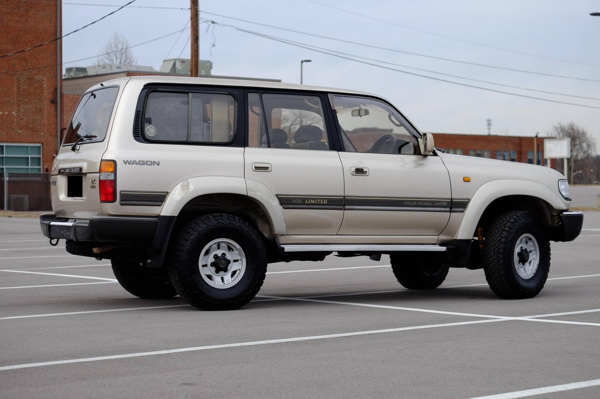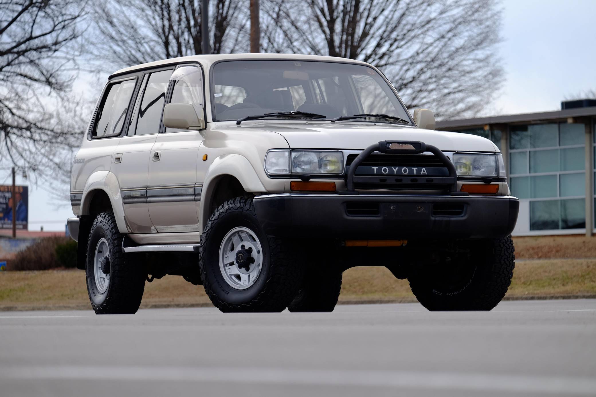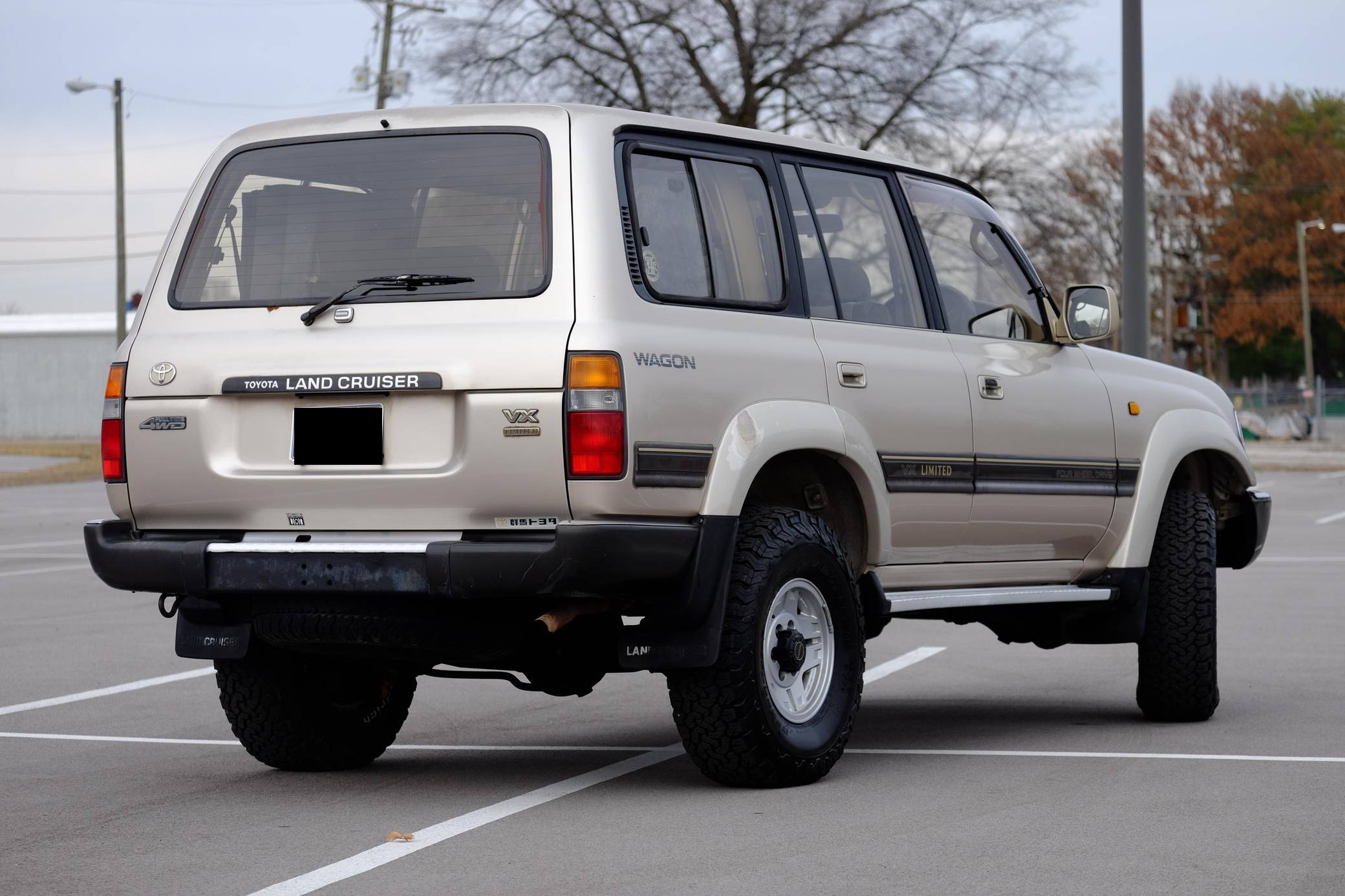 THIS. . . is a 1992 Toyota Land Cruiser VX Limited, finished in Beige Metallic with a brown interior. Imported from Japan in November 2022, it's equipped with a metric instrument cluster, and the odometer shows about 140,500 kilometers, which represents approximately 87,400 miles. Equipment includes 15-inch wheels, a locking center differential, headlight washers, a power sunroof, cloth upholstery, overhead compass and altimeter, center console ice box, automatic climate control, rear climate control system, and more as detailed below. Modifications reported by the seller include an Old Man Emu 2-inch suspension lift kit, oversized BFGoodrich tires, a grille guard, and front window rain guards. The 80-Series Land Cruiser was built for the Japanese and North American markets between 1990 and 1997. The Japanese-market VX Limited was the range-topping version, and it included features not offered on the contemporary North American Land Cruiser including automatic front and rear climate control, adjustable shock absorbers, and a center console cooling box. Power comes from a 4. 0-liter inline-6, rated at approximately 155 horsepower and 220 lb-ft of torque. Output is sent to all four wheels through a 4-speed automatic transmission and a 2-speed transfer case.