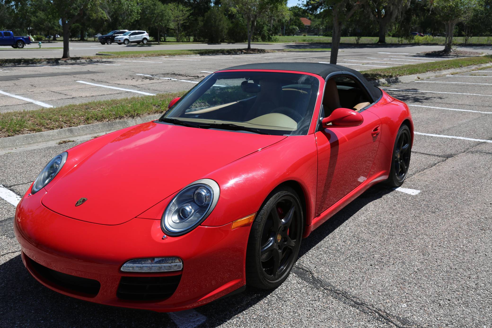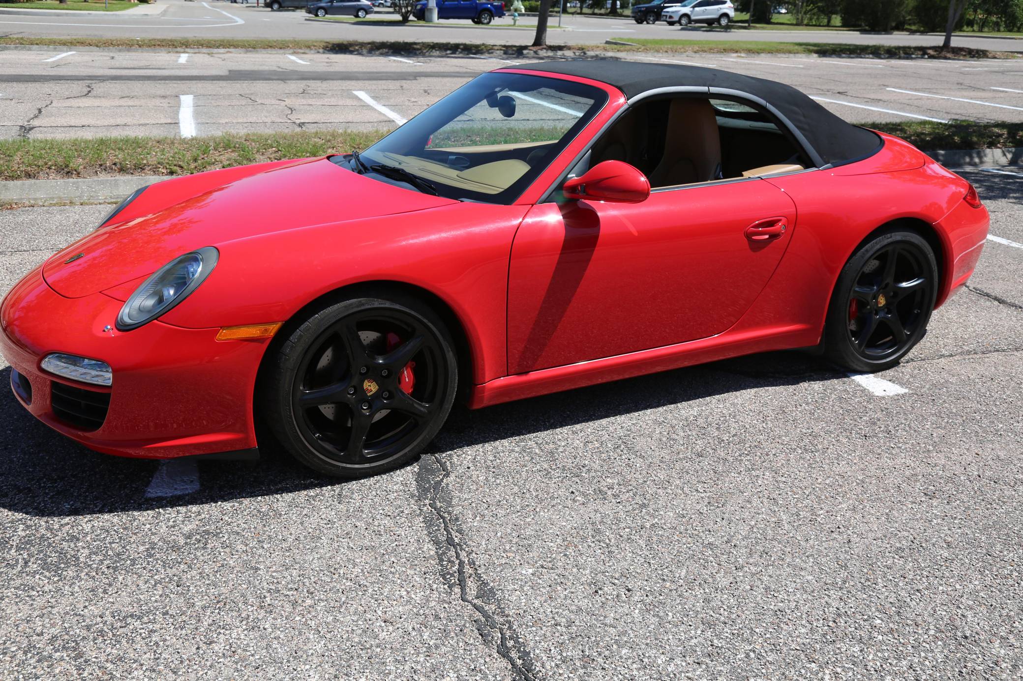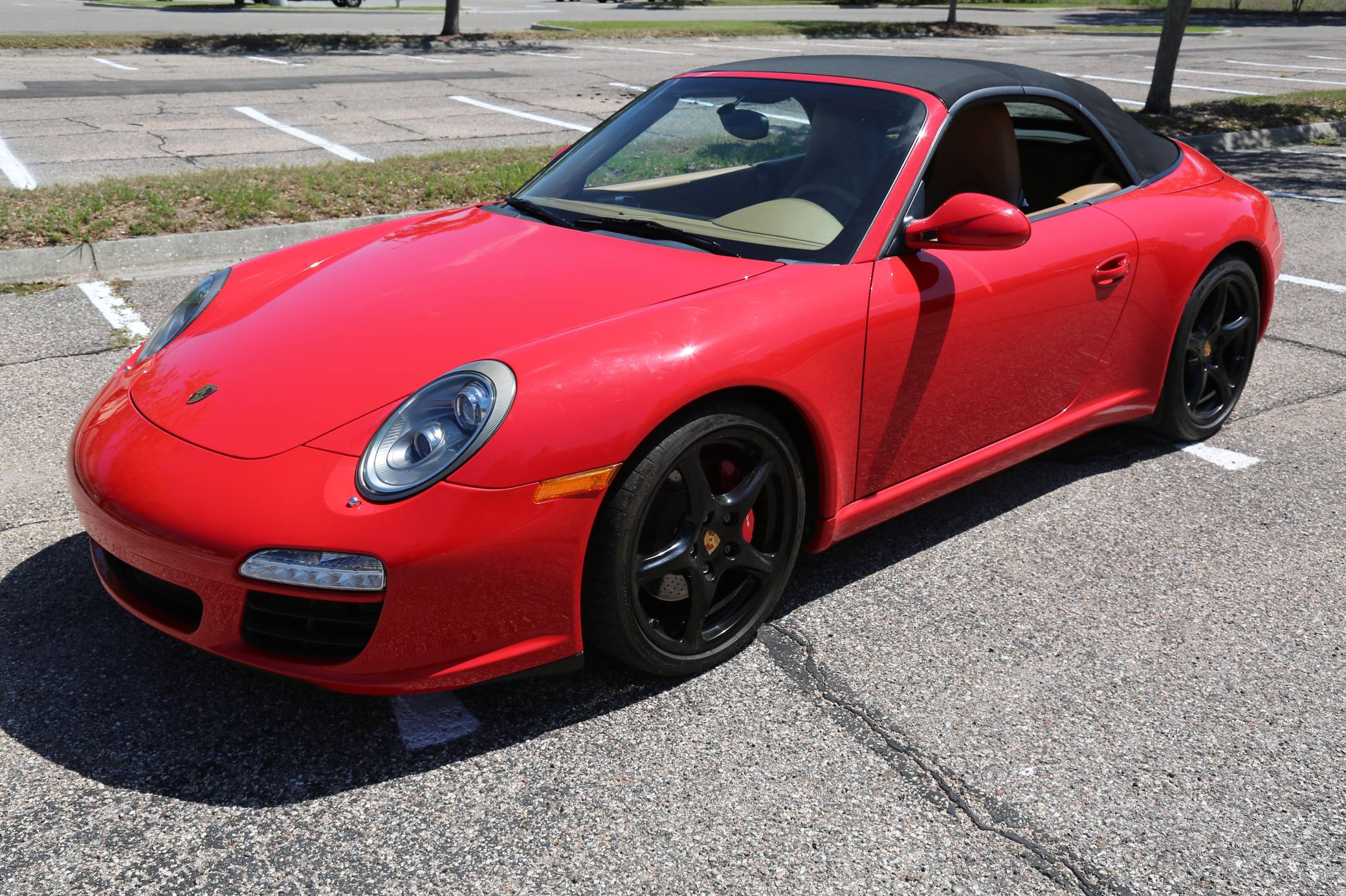 THIS… is a 2010 Porsche 911 Carrera S Cabriolet, finished in Guards Red with a black soft top and a Sand Beige interior. This 911 is equipped with the desirable 6-speed manual transmission, and its odometer currently displays about 48,600 miles. Factory equipment includes 19-inch Carrera Classic wheels, a power-retractable soft top, leather upholstery, power-adjustable heated front seats, a navigation system, a Bose sound system, and more as listed below. Modifications reported by the seller are limited to a Tubi exhaust system. The 997-generation 911 launched in 2005 with a more powerful flat-6 than the outgoing model, oval headlights, and an upgraded interior. It successfully combined retro and modern design cues in a water-cooled 911, and today it presents a compelling package for enthusiasts in the market for a modern Porsche. A mid-cycle refresh for the 2009 model year included a change to direct fuel injection and the elimination of the intermediate shaft bearing along with updated styling inside and out. Power comes from a 3. 8-liter flat-6, rated at 385 horsepower and 310 lb-ft of torque. Output is sent to the rear wheels via a 6-speed manual transmission.