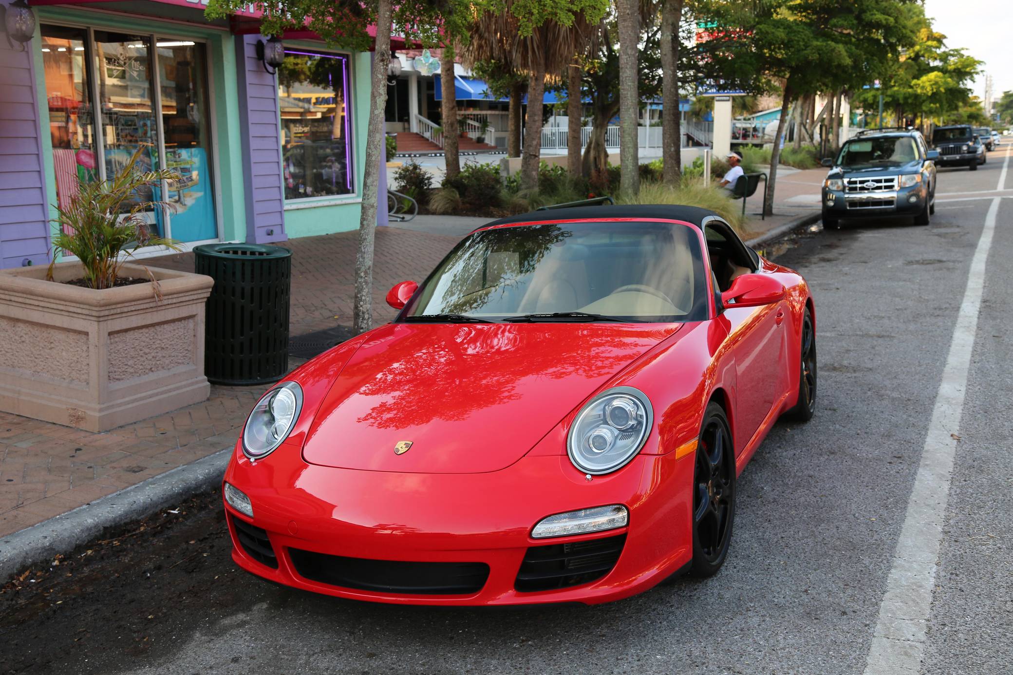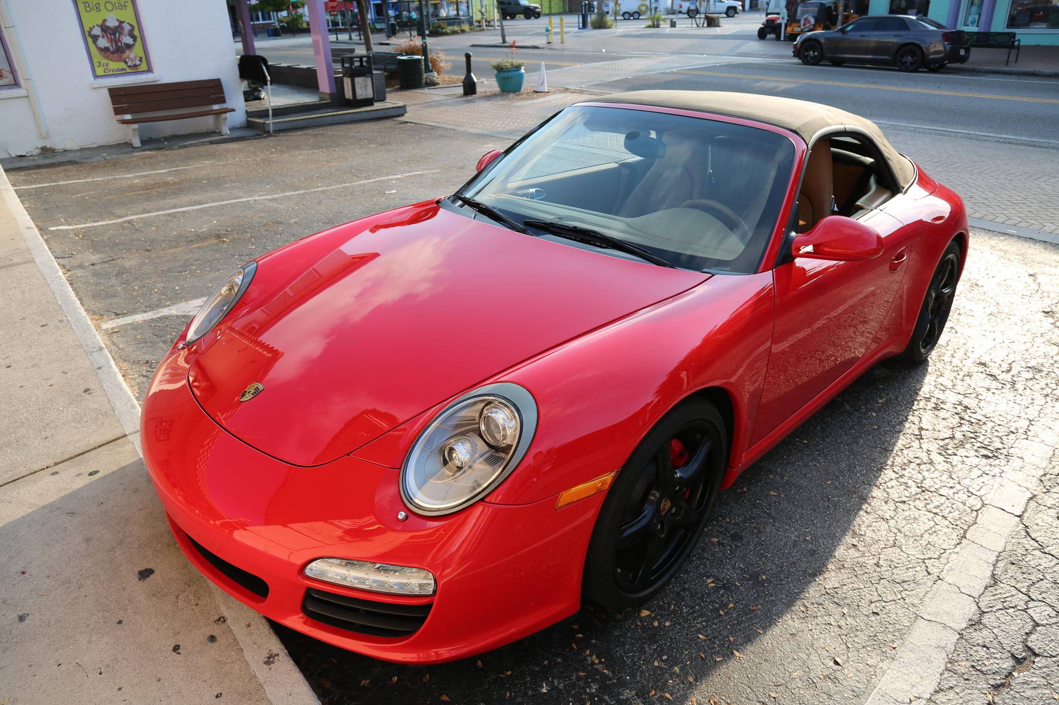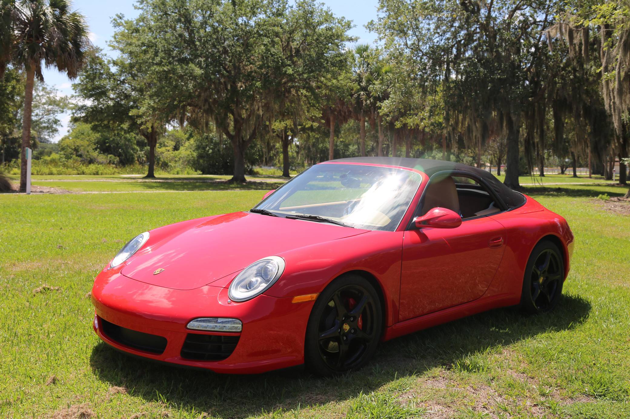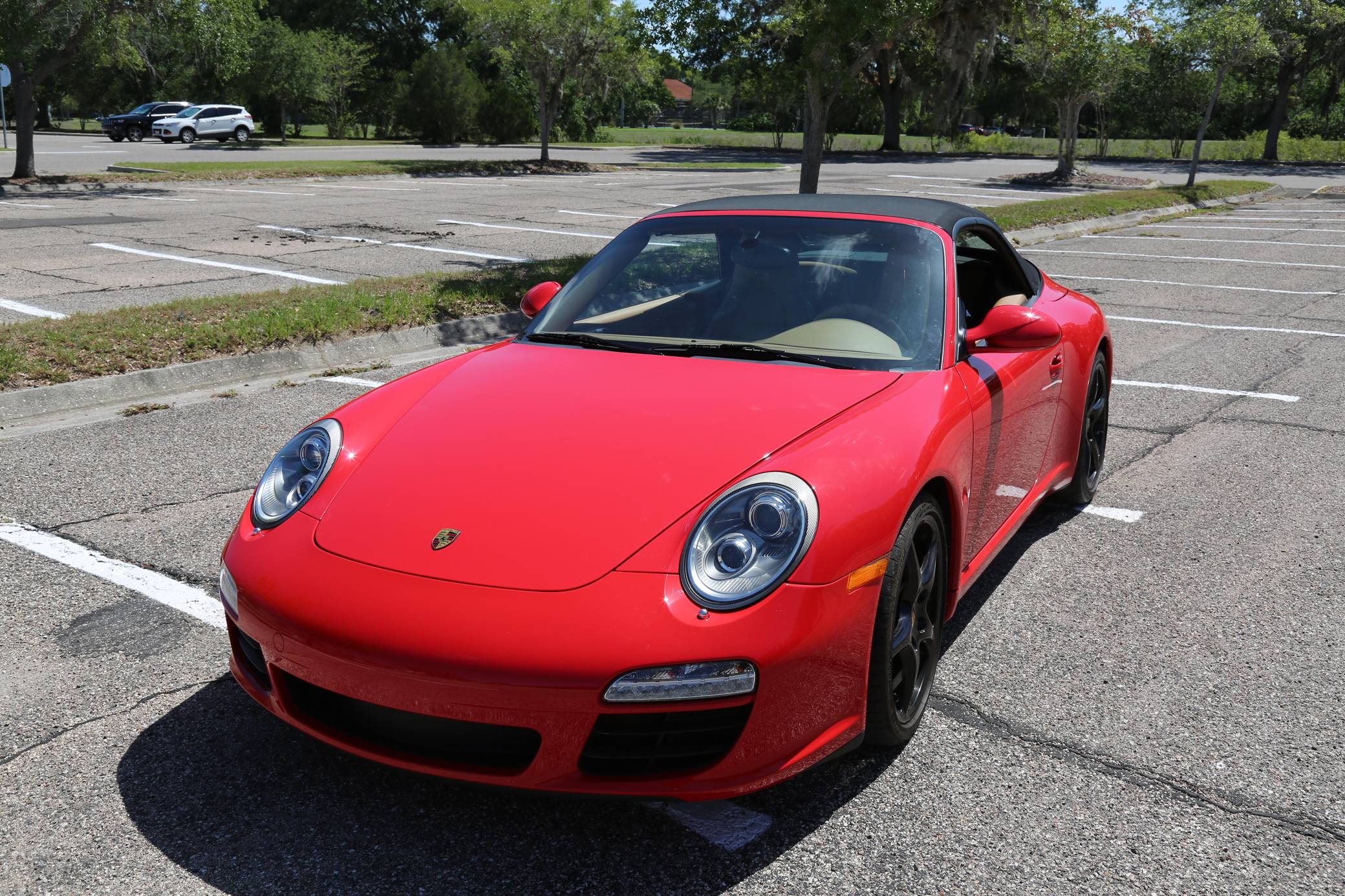 THIS… is a 2010 Porsche 911 Carrera S Cabriolet, finished in Guards Red with a black soft top and a Sand Beige interior. This 911 is equipped with the desirable 6-speed manual transmission, and its odometer currently displays about 48,600 miles. Factory equipment includes 19-inch Carrera Classic wheels, a power-retractable soft top, leather upholstery, power-adjustable heated front seats, a navigation system, a Bose sound system, and more as listed below. Modifications reported by the seller are limited to a Tubi exhaust system. The 997-generation 911 launched in 2005 with a more powerful flat-6 than the outgoing model, oval headlights, and an upgraded interior. It successfully combined retro and modern design cues in a water-cooled 911, and today it presents a compelling package for enthusiasts in the market for a modern Porsche. A mid-cycle refresh for the 2009 model year included a change to direct fuel injection and the elimination of the intermediate shaft bearing along with updated styling inside and out. Power comes from a 3. 8-liter flat-6, rated at 385 horsepower and 310 lb-ft of torque. Output is sent to the rear wheels via a 6-speed manual transmission.