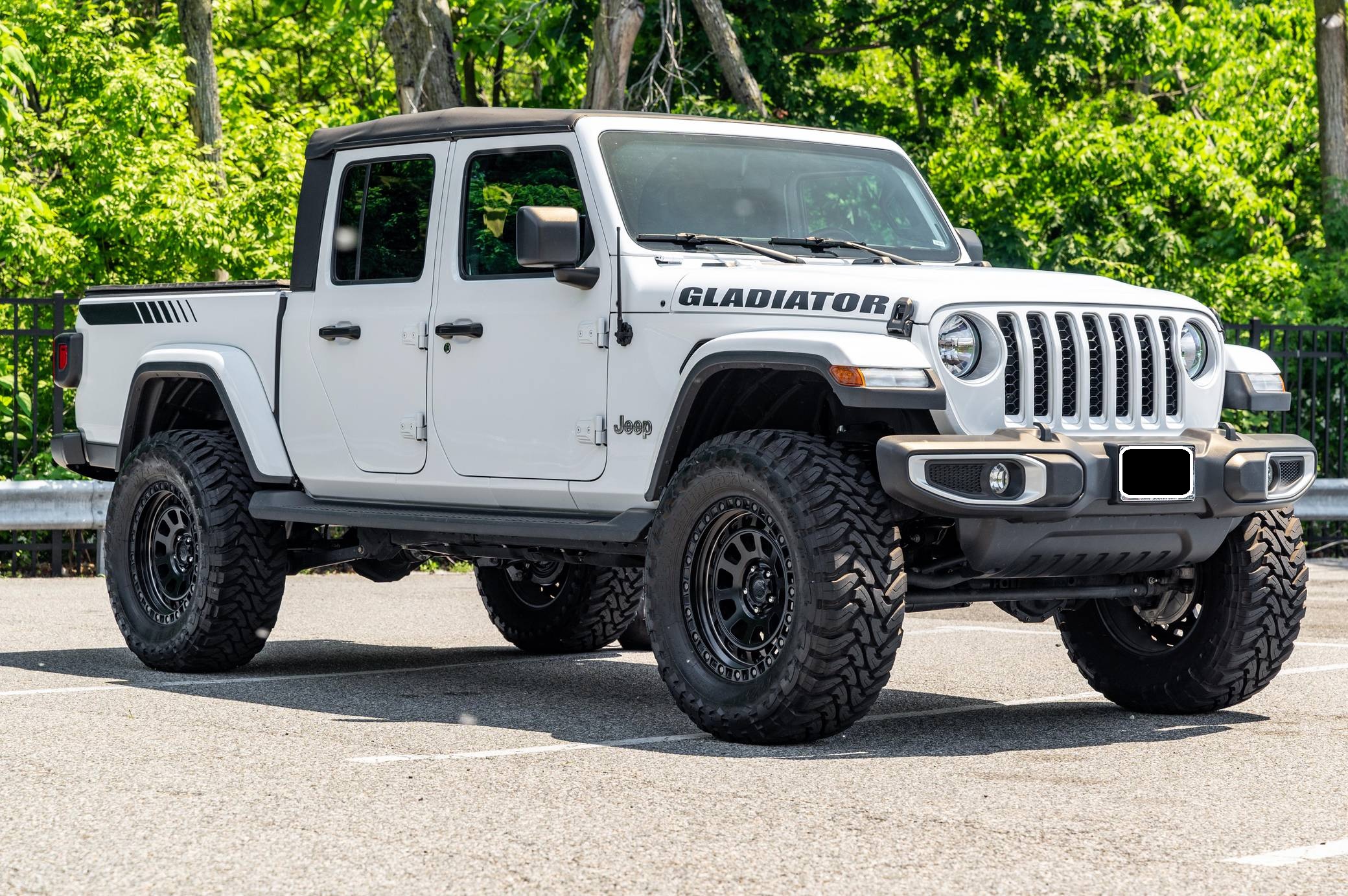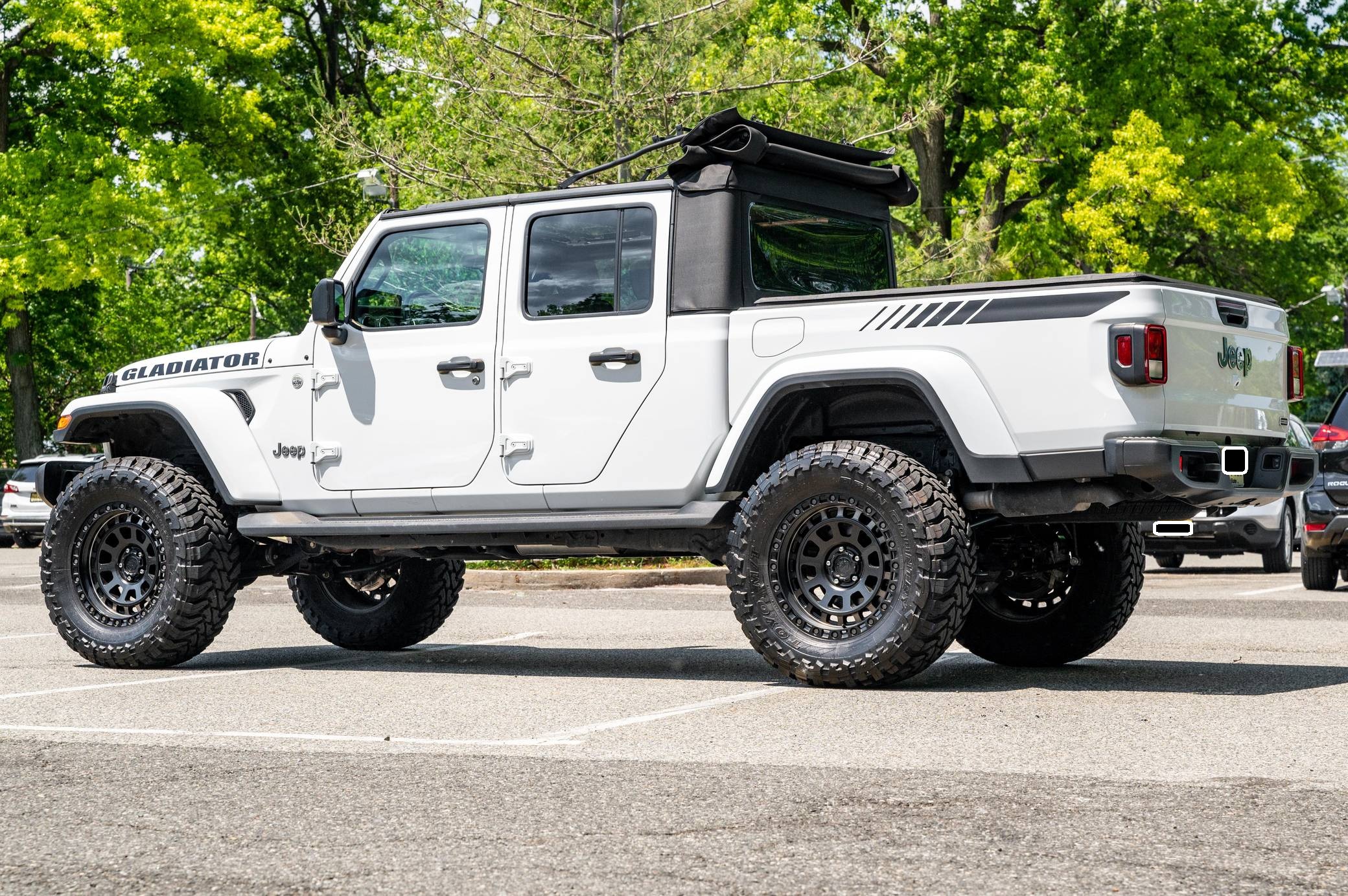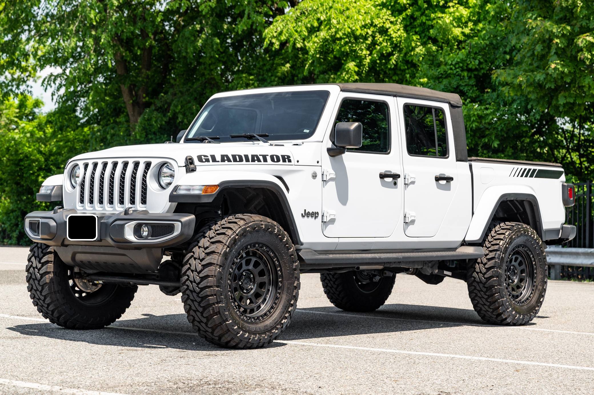 2020 Jeep Gladiator Overland 4x4, finished in Bright White clearcoat with a black soft top and a black interior. This Gladiator features the desirable 6-speed manual transmission. 73 axle ratio, fuel tank and transfer case skid plates, front fog lights, body-colored fender flares, side steps, a black Sunrider soft top, cloth upholstery, lockable rear-seat storage, a Uconnect 4 infotainment system with a 7-inch touchscreen display and Apple CarPlay and Android Auto compatibility, and an 8-speaker sound system. Modifications reported by the seller include 20-inch American Outlaw wheels with Toyo Open Country M/T tires (size 37x13. 50 R20 LT), a 4-inch lift, and Fox shocks. Jeep returned to the pickup segment after a long hiatus when it released the Gladiator for 2020. Offered only with four doors, it’s closely related to the fourth-generation Wrangler so it offers heritage-laced styling, body-on-frame construction, and excellent off-road capacity. It’s still sold new in 2022. Power comes from a 3. 6-liter V6, rated at 285 horsepower and 260 lb-ft of torque. Output is sent to all four wheels via a 6-speed manual transmission and Command-Trac part-time 4-wheel-drive system with a 2-speed transfer case.