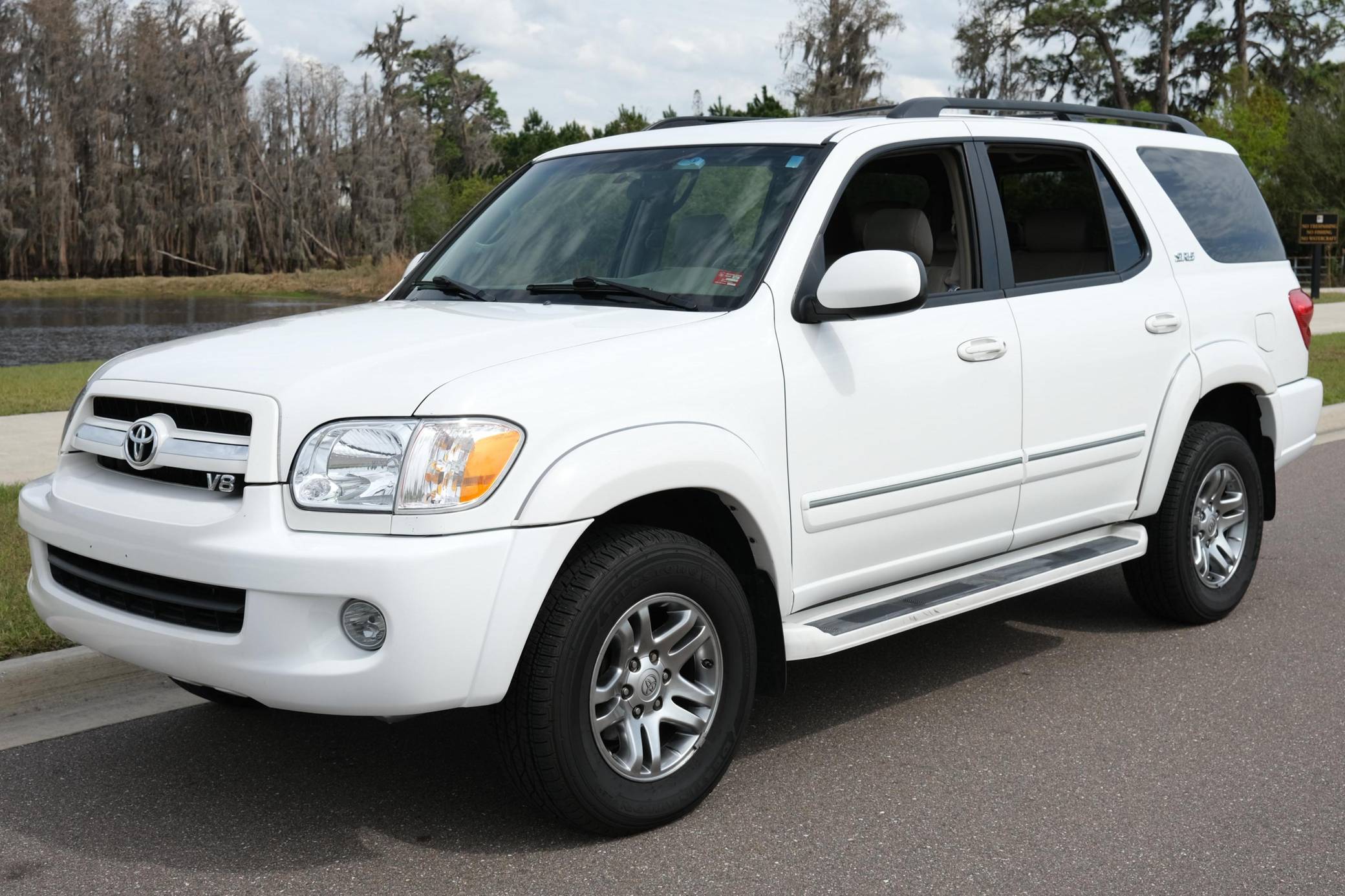 THIS. . . is a 2006 Toyota Sequoia SR5 4x4, finished in Natural White with a tan interior. Factory equipment includes 17-inch alloy wheels, automatic climate control, a locking center differential, an electronically-controlled 2-speed transfer case, cruise control, leather upholstery, heated front seats, and more detailed below. Modifications to this Sequoia are limited to a SAIS bypass kit from Hewitt Technologies, a Sony double-din touchscreen radio, Pioneer speakers, and a hardwired USB port. Based on the Toyota Tundra pickup truck, the Sequoia was the first full-sized Japanese SUV offered in North America and was intended to compete with the Ford Expedition and Chevrolet Suburban. These first-generation Sequoias were introduced in September 2000 for the 2001 model year and were produced until November 2007. Power comes from a 4. 7-liter "i-Force" V8, which produces 273 horsepower and 315 lb-ft of torque. The engine features VVT-i variable valve timing and sends power to the rear or all four wheels through a 5-speed automatic transmission and 2-speed 4WD transfer case.