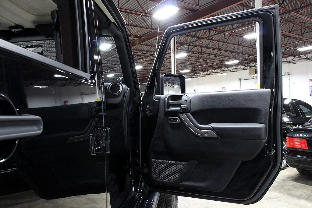 This is a 2-owner 2012 Jeep Wrangler Sahara Unlimited 4x4. It offers a 3.6L VVT V6, automatic transmission, and shift-on-the-fly 4x4. This rugged off-roader is loaded up very nicely with the Sahara trim line with power steering, power brakes with 4-wheel discs, power windows, power locks, power seats, navigation, cruise control, steering wheel audio controls, hill decent system, and a lift-off hardtop for those sunny days. The Wrangler is known for its off-road capabilities and with a 2” body lift, 18” wheels, 33” Nitto Terra Grapplers, and a front off-road bumper, it is now even more capable of taking you where you want to go when the pavement ends. With less than 40,000 miles, this Wrangler is barely broken in. It has been a well maintained machine by a local shop in Wixom, MI and the black paint and black interior show very well as it remains in great condition. It comes with the original books and keys as well as the original wheels and tires. If the current lift and wheel combo does not suit your needs/taste, the consignor is willing to take it back to stock, requiring just a couple of hours to do.