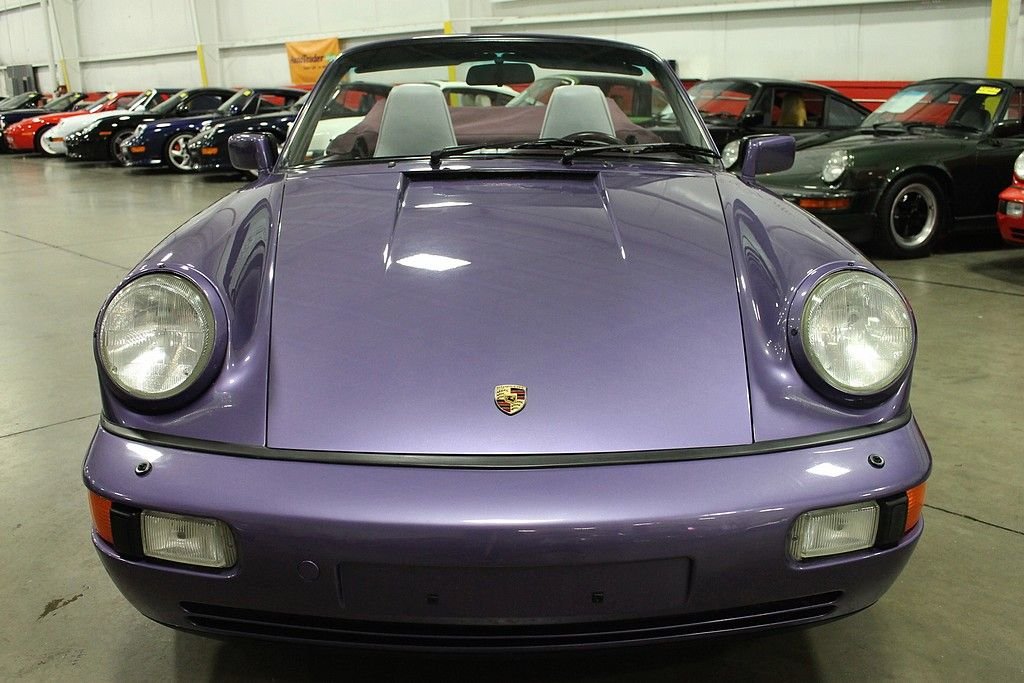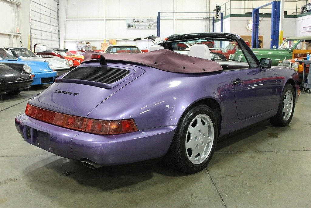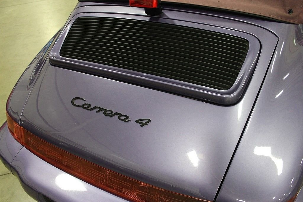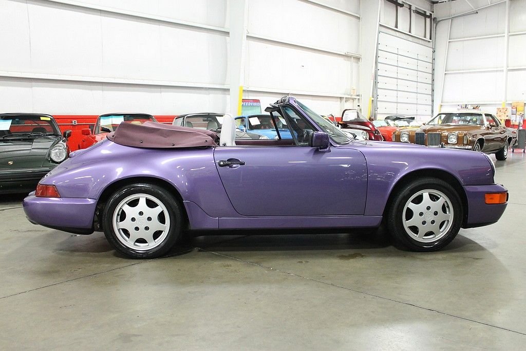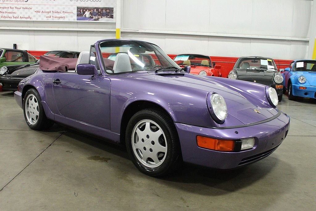 “Reliable, steady on all surfaces, and with the performance and handling you expect on a Porsche” That was the buzz when Porsche released its latest and greatest version of the 911 in 1989, the Carrera 964. Based with many innovation technologies form the 959, this would be a very important car for Porsche since the world economy was undergoing recession and the company could not rely on its image alone. It was launched as the Carrera 4, indicating all-wheel drive, a decision that surprised many but demonstrated the company's commitment to engineering. The chassis was redesigned overall, coil springs, ABS brakes and power steering made their debut with the 964 as well as a new speed activated rear spoiler preserving the purity of the lines when the Porsche is at rest. The 1991 Porsche 911 / 964 Carrera 4 Cabriolet offered here was special ordered via Porsche's Paint-to-Sample program and delivered new at, Automobiles E. Lauzon, Inc., Montreal, Quebec. Porsches Paint-to-Sample option allowed customers to special order their 911 from the Porsche Factory in any color and hue that the customer desired. All that was needed was some patience and the willingness to pay a healthy premium for the option. The two owner car offered here was delivered dressed in Violet Blue Metallic (Veilchenblaumetallic) over two tone light Grey and Magenta leather interior. Other options include: Heated seats, headlight washers, sport seats and automatic speed control. Since, the car has been garaged kept, conservatively driven, carefully maintained and kept in a detailed state. The car remained in the caring hands of its original French Canadian owner until 2004 when it was purchased by a collector in Ohio who showed the car the same appreciation until our recent acquisition. Today, this two owner 911 remains in excellent condition cosmetically and mechanically having only been driven 47423 miles since new. Out test drive revealed a C4 911 behaving like a C4 911. Pulls strong in every gear, smooth shifting, sure footed handling and excellent braking. The interior is very clean showing very little wear, the paint and body show excellent and the wheels are near perfect. The care comes complete with original books, original key card, original tools, both option stickers and original keys. It is no secret that air-cooled Porsche's have become a global commodity, not as a fad, but as an appreciation of artful design combined with quality of engineering. The 964 Carrera 4 embodies that statement as Porsche needed something fresh for its 911 to succeed the beloved Carrera's of the 80's. Porsche also always appreciated offering its customers exactly what they wanted. The Paint-to-Sample option was just one way that Porsche would allow an individual to personalize their car from the factory. As the Marquee continues to gain value and demand attention of collectors around the world, the special order, often one off, Paint-to-sample cars, will remain at the top of the heap when it comes to value and collectability.
