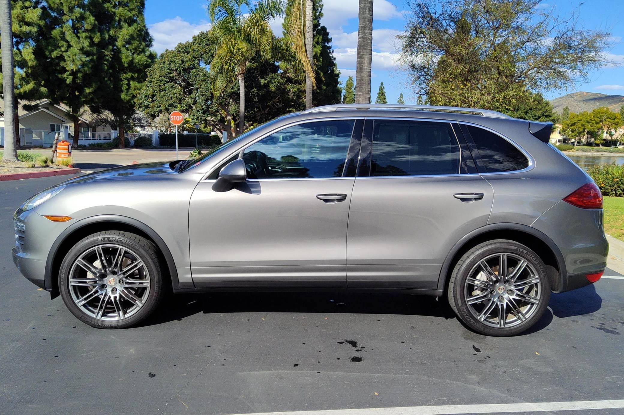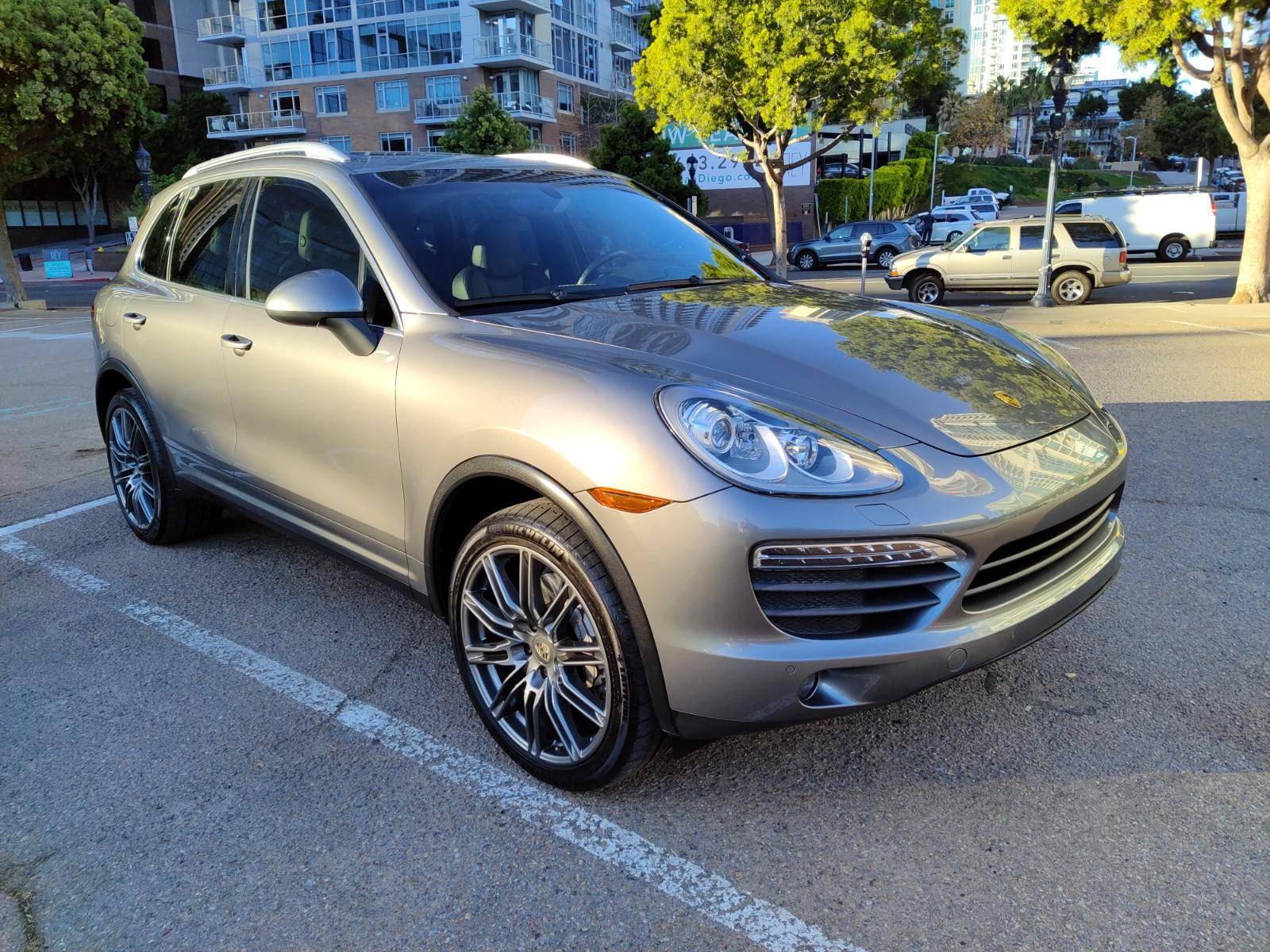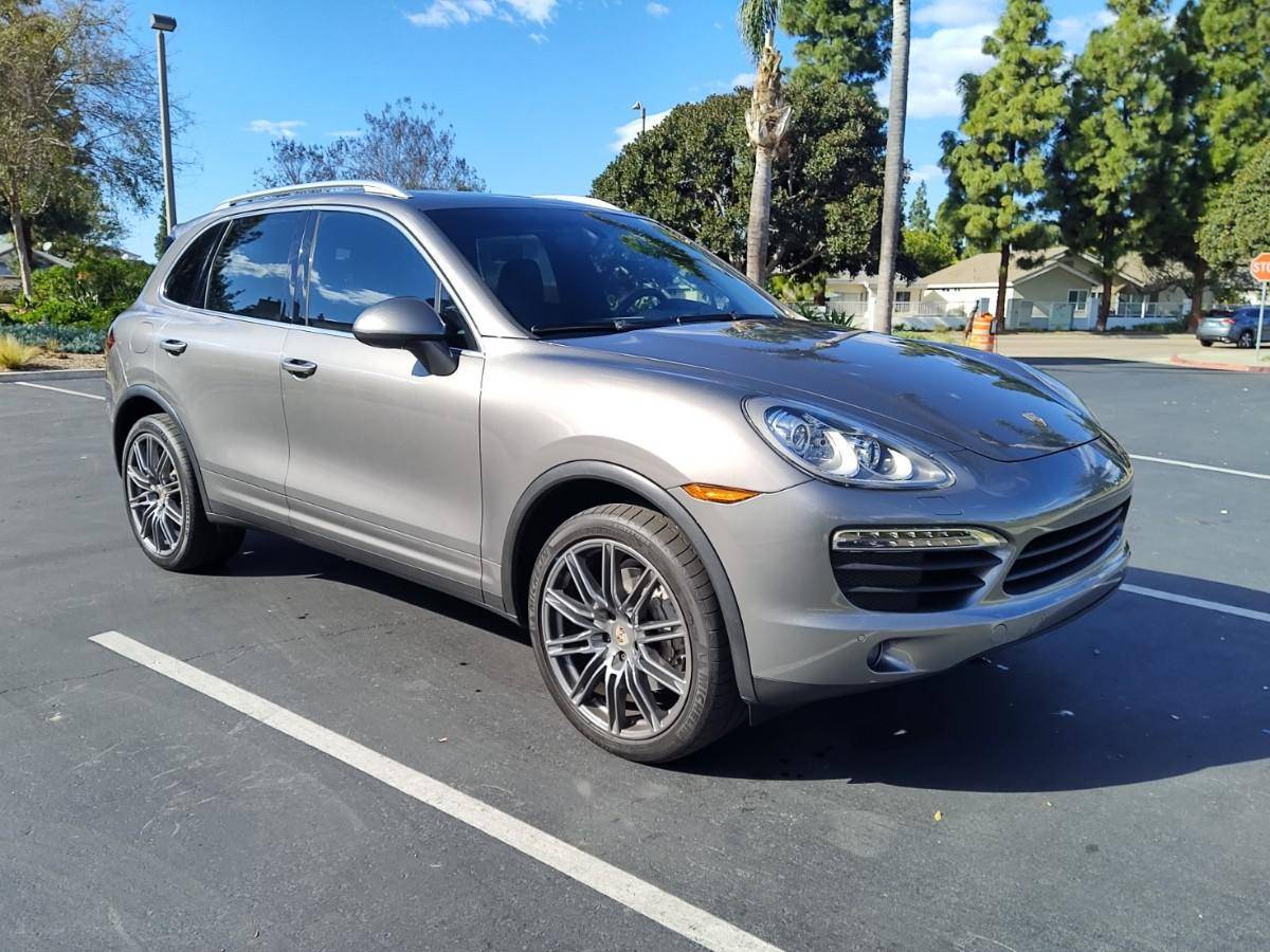 2013 Porsche Cayenne S, finished in Meteor Grey Metallic with a black interior. Factory equipment includes 21-inch wheels, bi-xenon headlights with Porsche Dynamic Lighting System, power-operated panorama sunroof, leather upholstery, power-adjustable and heated front seats, navigation system, and more as listed below. No modifications have been reported by the seller. Released for the 2011 model year, the second-generation Cayenne (called "958" internally) was slightly bigger and significantly lighter than its predecessor. It offered a smoother ride thanks to additional technology and luxury features, it was just as capable off-road, and critics agreed it was noticeably sportier than the first-generation model. Production ended in 2017. Power comes from a 4. 8-liter V8, rated at 400 horsepower and 369 lb-ft of torque. Output is sent to all four wheels via an 8-speed automatic transmission.
