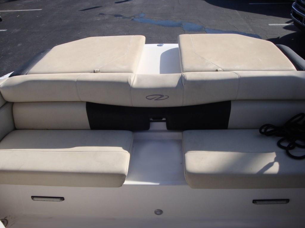 This used 2009 Regal 2100 features a Cobra Marine VHF, a Ritchie compass, a 12V plug, a Kenwood Commander audio unit, a tinted windscreen, and a helm chair. Other features include a Bimini top, bow anchor storage, bow seating, in-deck storage, marine cockpit speakers, a port-side companion seat with a glove box, stainless drink holders, LED courtesy lights, navigation lights, stainless cleats, bow scuff plate, and lifting eye, electric horn, a transom bench seat, and a swim platform with a ladder.