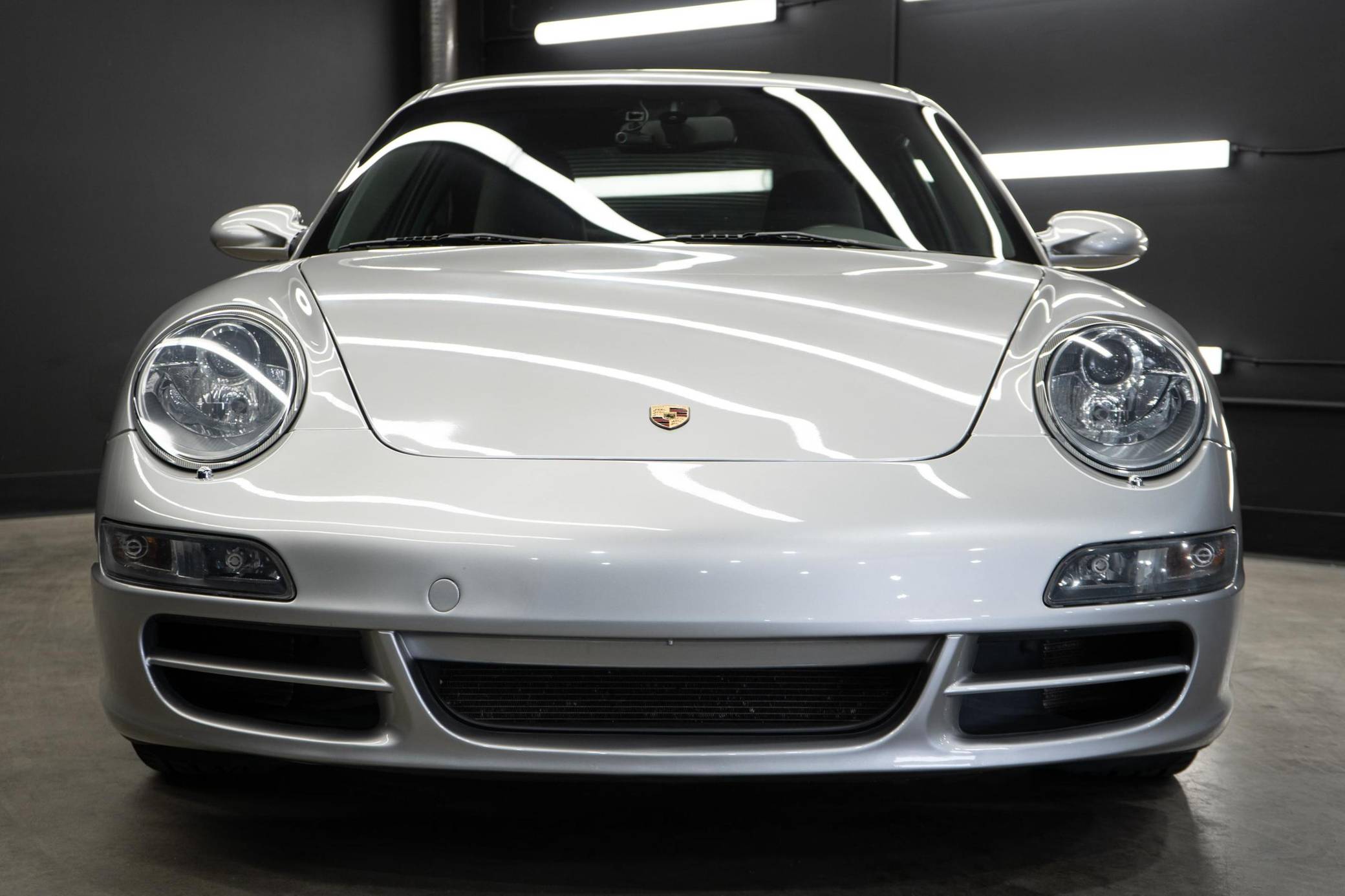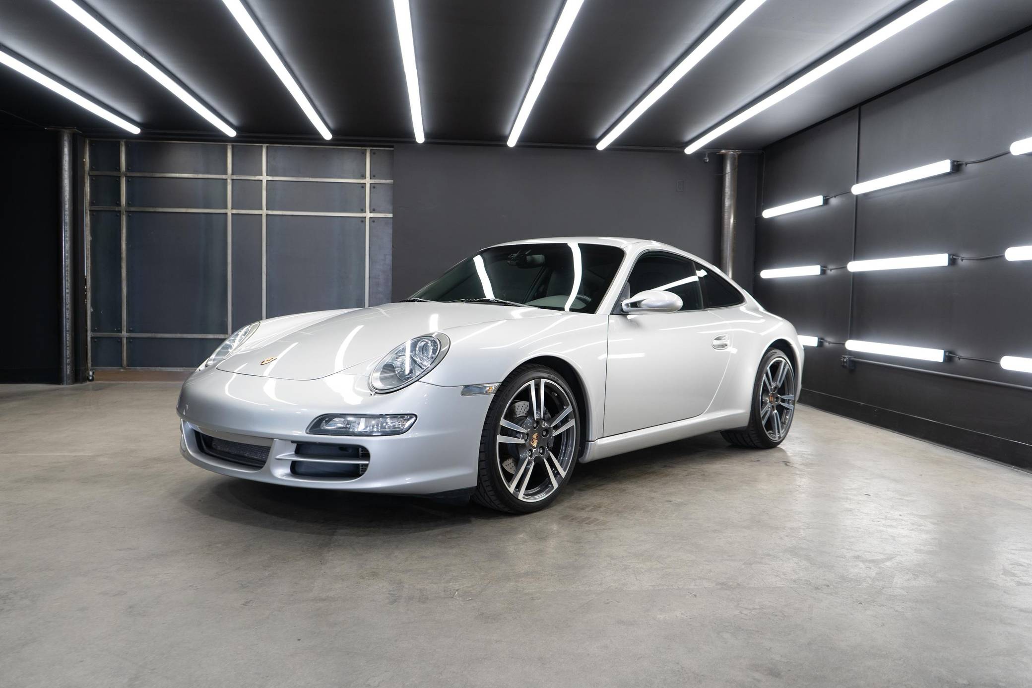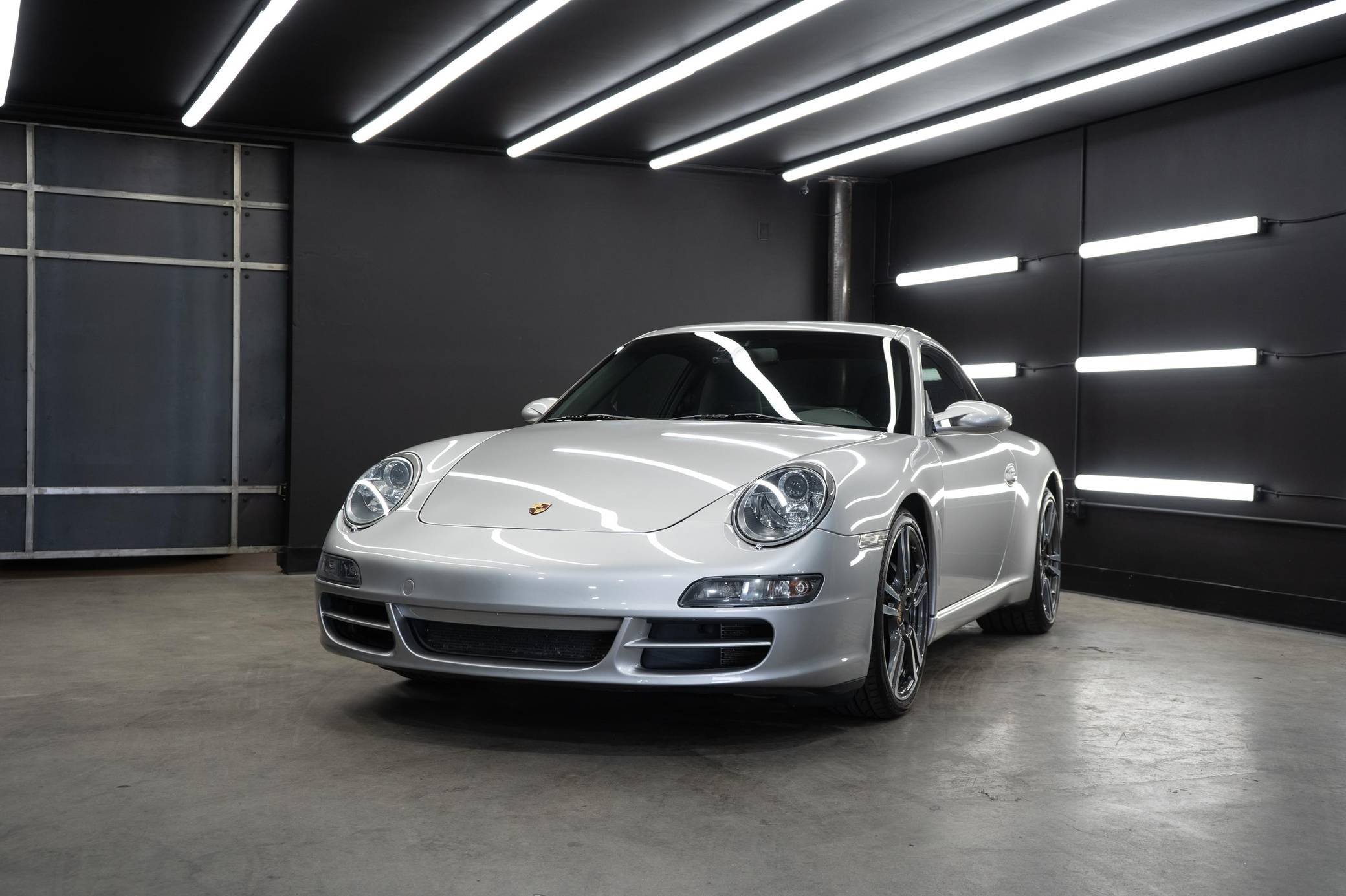 THIS… is a 2006 Porsche 911 Carrera Coupe, finished in Arctic Silver Metallic with a Stone Grey interior. Factory equipment includes the Sport Chrono Package Plus, a retractable rear spoiler, bi-xenon headlights, a power sunroof, leather upholstery, heated front seats, automatic climate control, and more as detailed below. Modifications include a set of 19-inch 997 Turbo II wheels, tinted windows, clear side marker lights, and a Kenwood head unit. The 997-generation 911 launched for 2005 with a more powerful flat-6 than the outgoing model, oval headlights, and an upgraded interior. By combining retro and modern design cues in a water-cooled 911, it was instantly beloved among enthusiasts — and it presents a compelling package for those looking for a smaller and lighter 911 from the modern era. Power comes from a 3. 6-liter flat-6, rated at 325 horsepower and 273 lb-ft of torque. The engine spins the rear wheels via a 5-speed automatic transmission.