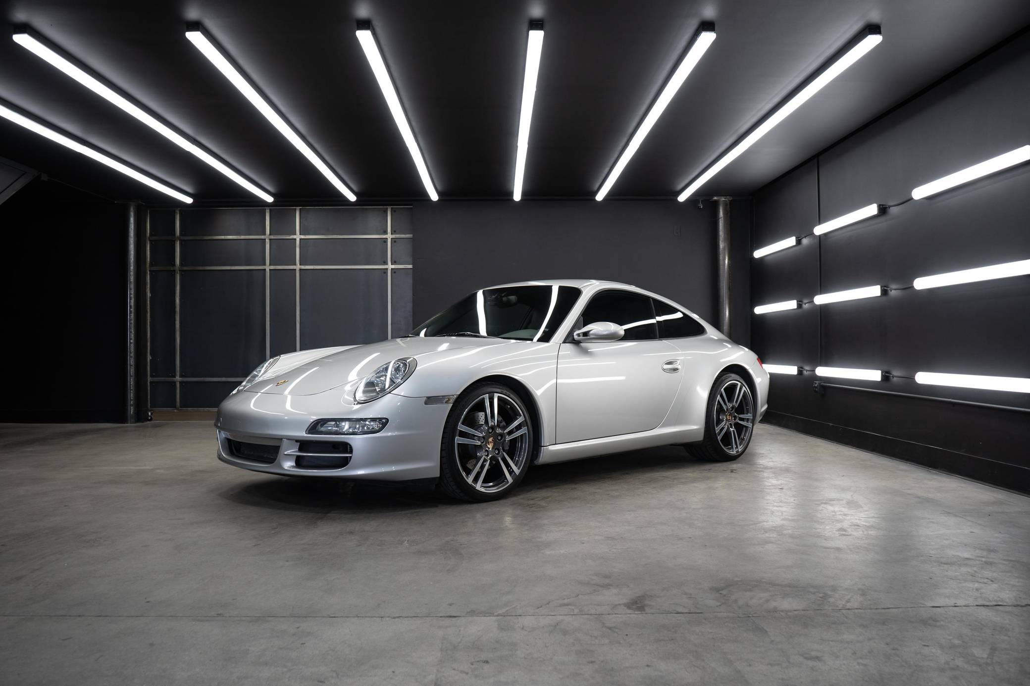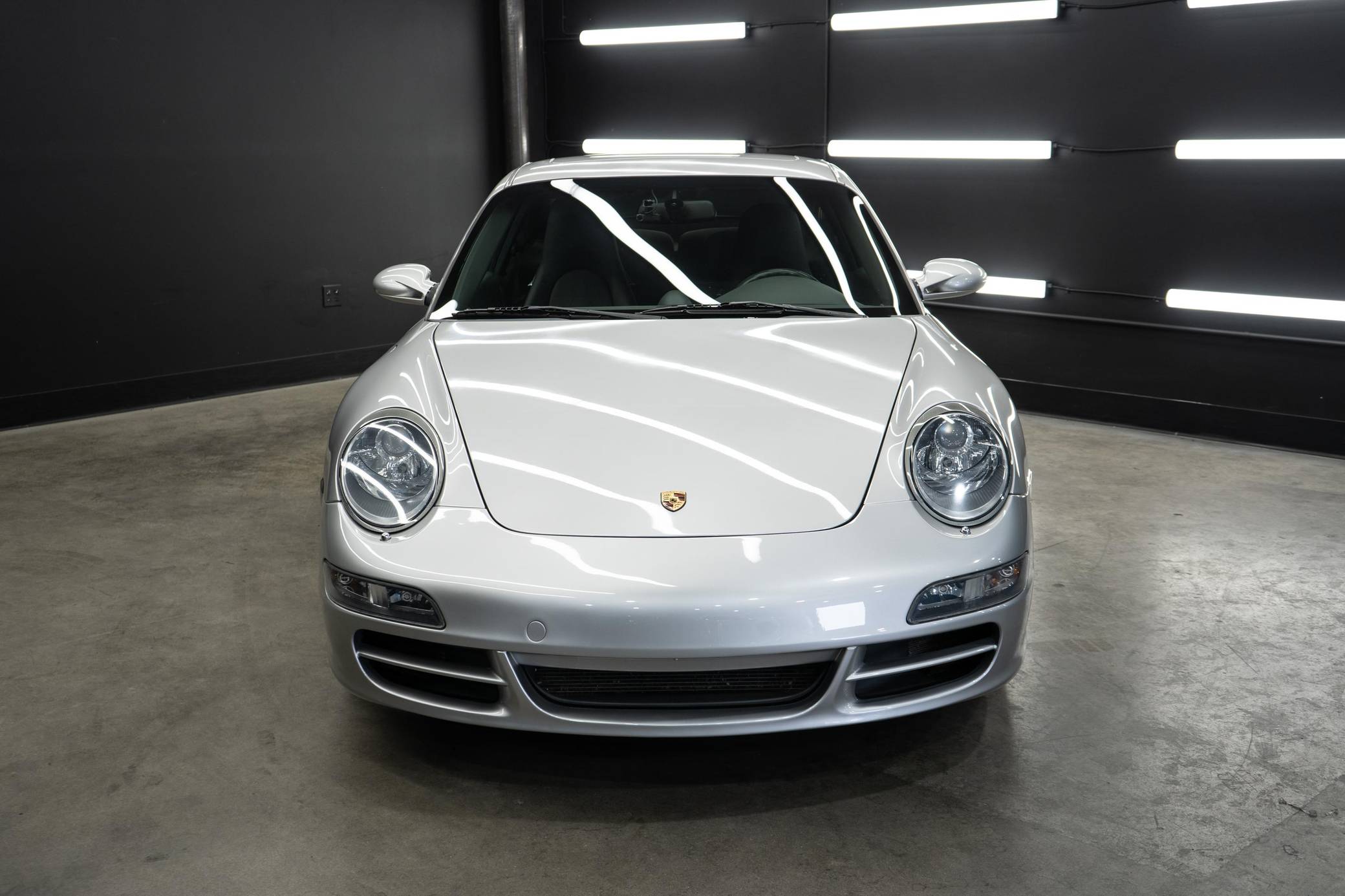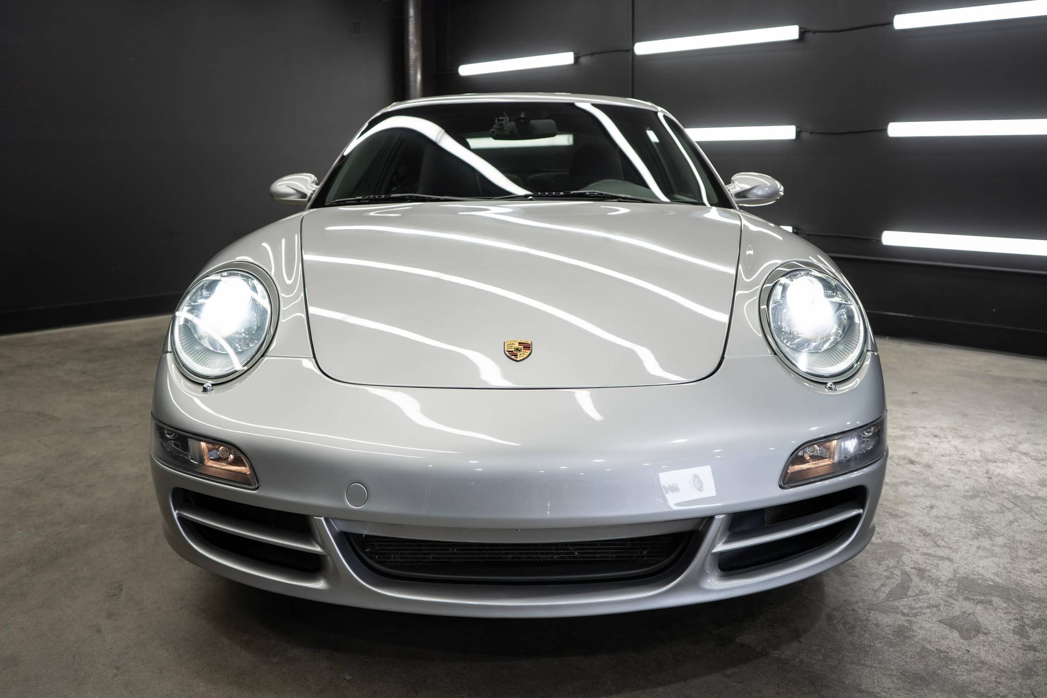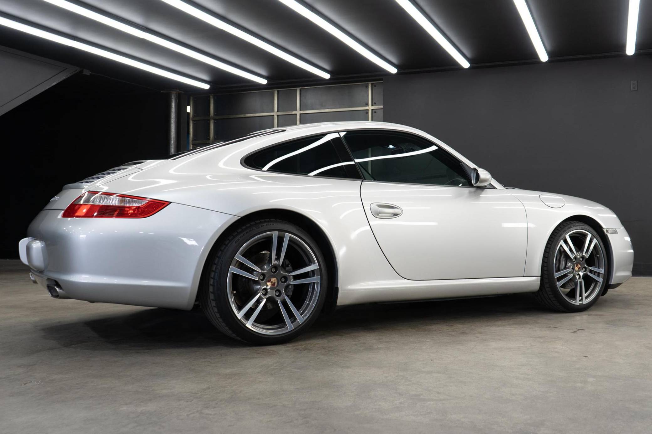 THIS… is a 2006 Porsche 911 Carrera Coupe, finished in Arctic Silver Metallic with a Stone Grey interior. Factory equipment includes the Sport Chrono Package Plus, a retractable rear spoiler, bi-xenon headlights, a power sunroof, leather upholstery, heated front seats, automatic climate control, and more as detailed below. Modifications include a set of 19-inch 997 Turbo II wheels, tinted windows, clear side marker lights, and a Kenwood head unit. The 997-generation 911 launched for 2005 with a more powerful flat-6 than the outgoing model, oval headlights, and an upgraded interior. By combining retro and modern design cues in a water-cooled 911, it was instantly beloved among enthusiasts — and it presents a compelling package for those looking for a smaller and lighter 911 from the modern era. Power comes from a 3. 6-liter flat-6, rated at 325 horsepower and 273 lb-ft of torque. The engine spins the rear wheels via a 5-speed automatic transmission.