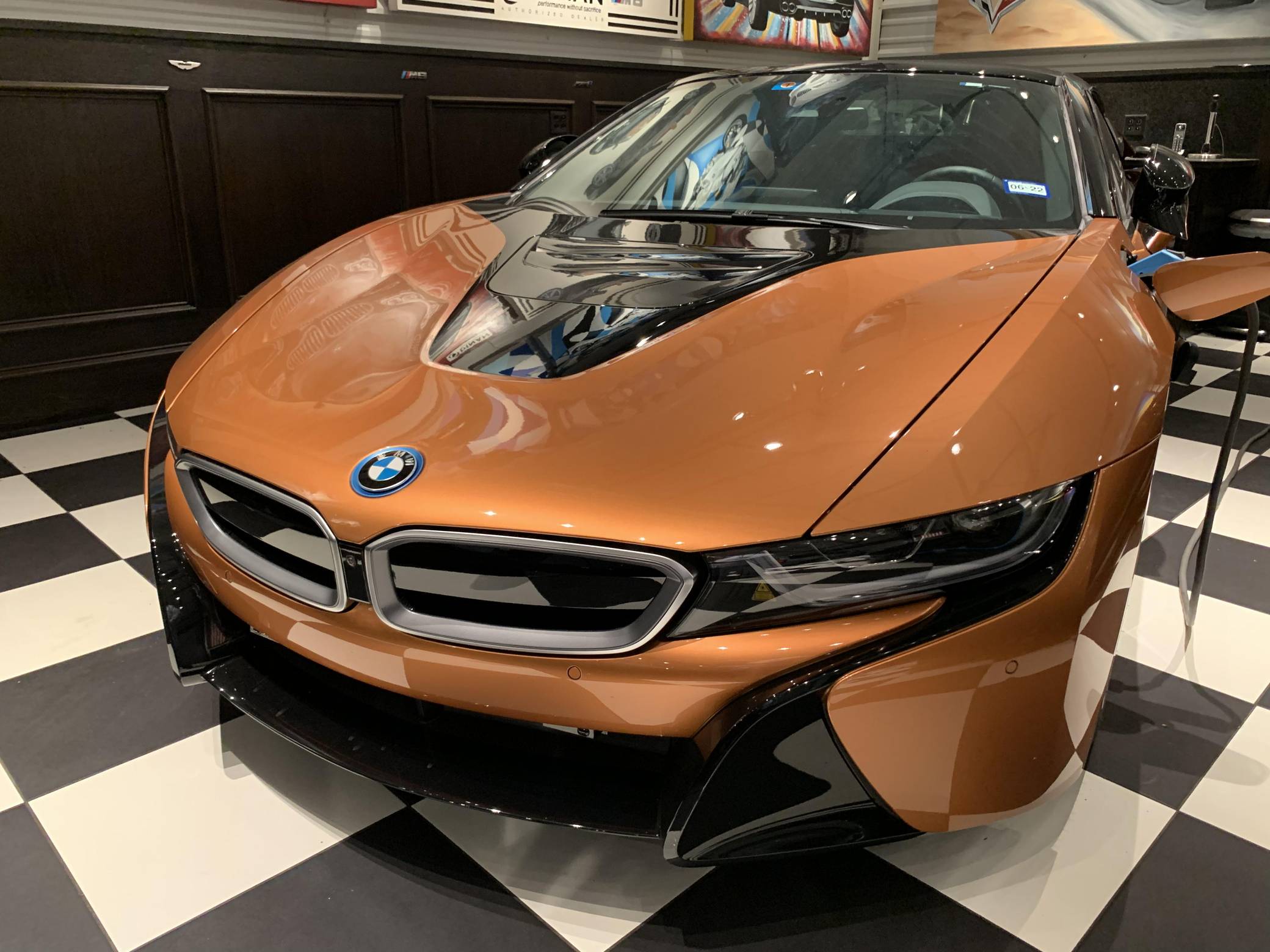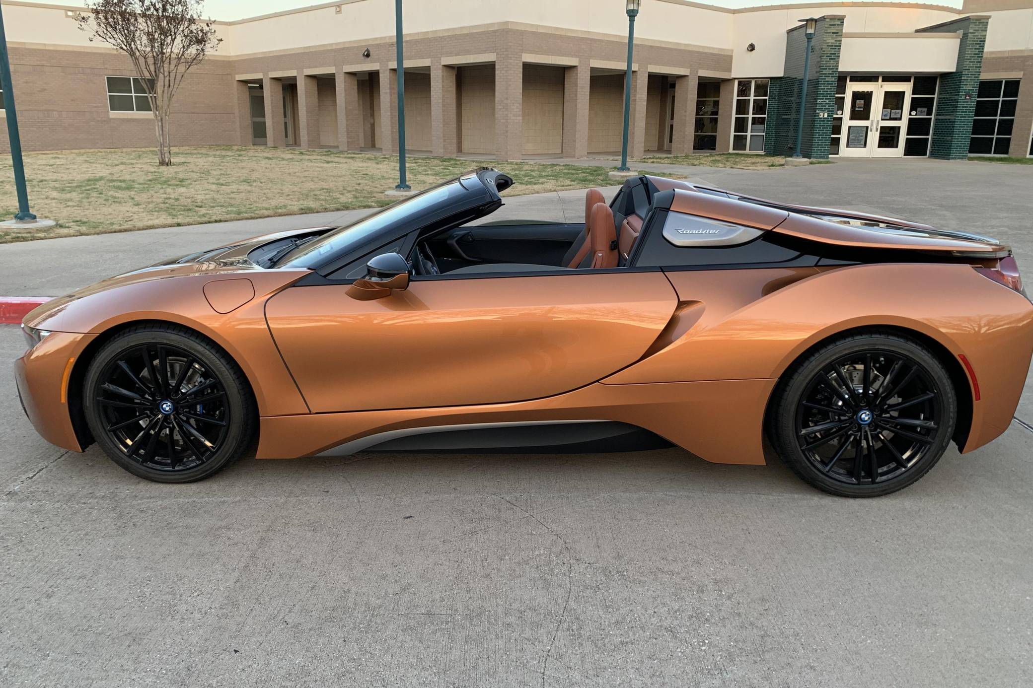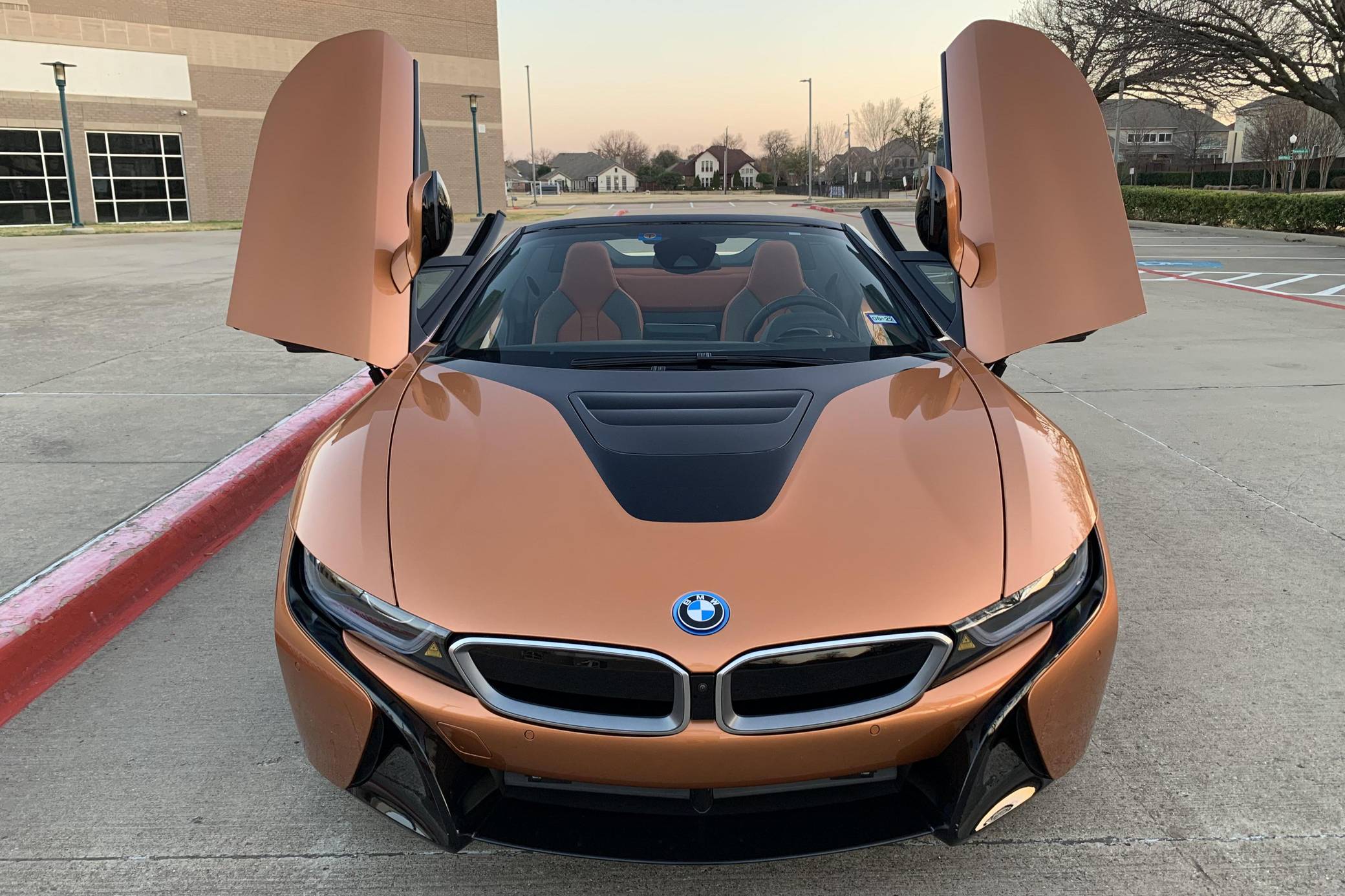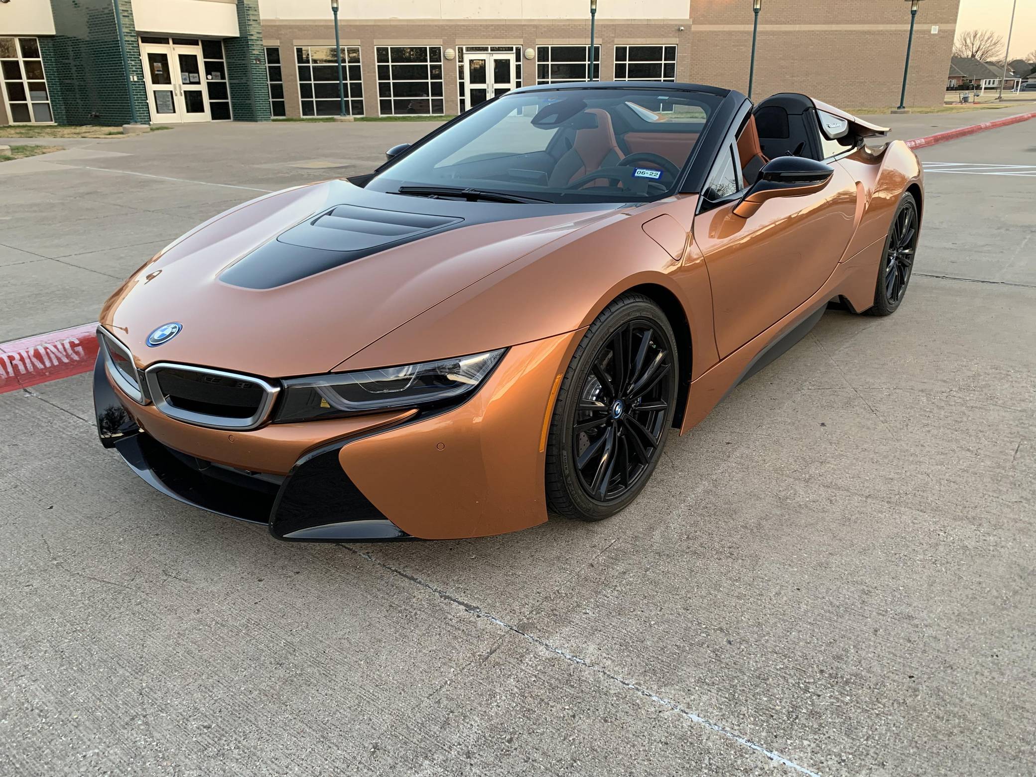 THIS… is a 2019 BMW i8 Roadster, finished in E-Copper and Frozen Grey Metallic with a black soft top and an E-Copper interior. The odometer currently displays approximately 1,000 miles. Factory equipment on this i8 Roadster includes the Lights package (laser light headlights), 20-inch Style 516 wheels, leather and cloth upholstery, heated and power-adjustable front seats, Comfort Access System, a head-up display, Park Distance Control (PDC), navigation system, a Harman/Kardon sound system, among others listed below. Modifications reported by the seller include paint protection on the front panels, window tint, and an Escort 9500 with mirror display. The Benoit Jacob-designed BMW i8 was introduced for the 2014 model year and was marketed as the flagship of BMW's "i" electric fleet. The hybrid-electric sports car is built on a carbon-fiber tub and combines pure concept-car looks with plenty of technology under the skin, which remains impressive to this day. For 2019, BMW launched the i8 Roadster as a 2-seater convertible, alongside the updated i8. These models came with a bigger battery pack for a longer EV driving range, as well as slightly more power out of the plug-in hybrid powertrain. Power comes from a gasoline-electric plug-in hybrid powertrain, which consists of a 1. 5-liter turbocharged 3-cylinder engine, 2 electric motors, and an 11. 6 kilowatt-hour lithium-ion battery pack. The system is rated at 369 horsepower and 420 lb-ft of torque. The internal combustion engine sends power to the rear wheels through a 6-speed automatic transmission, while the electric motor drives the front wheels through a 2-speed transmission.