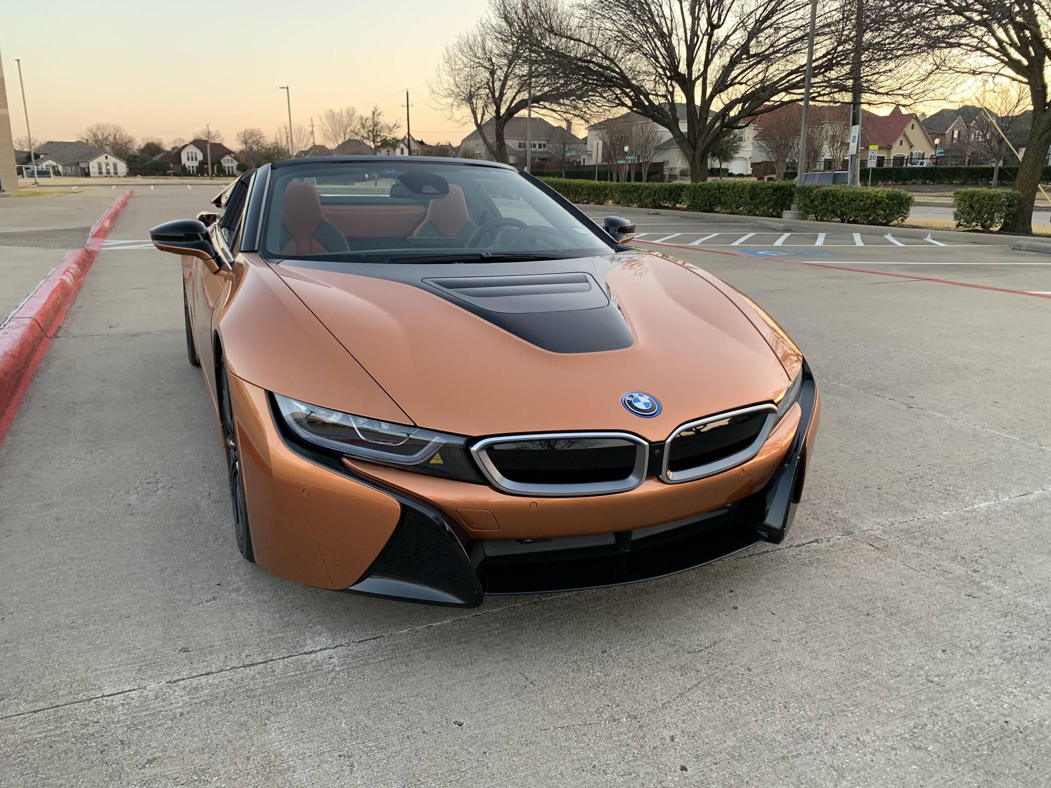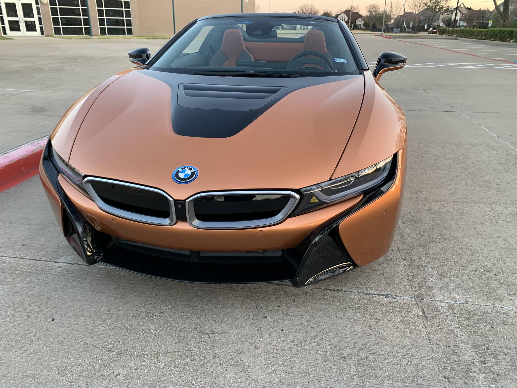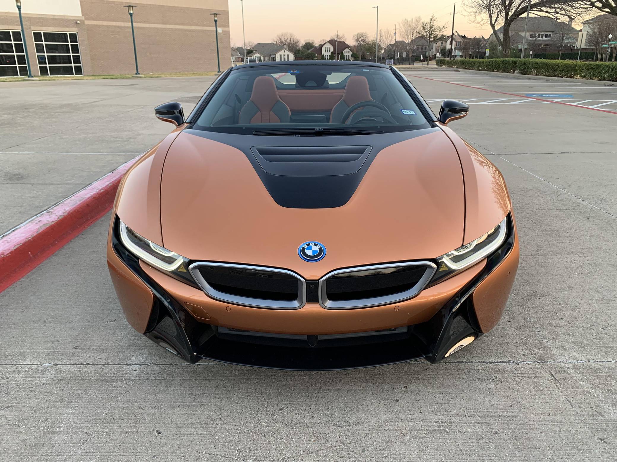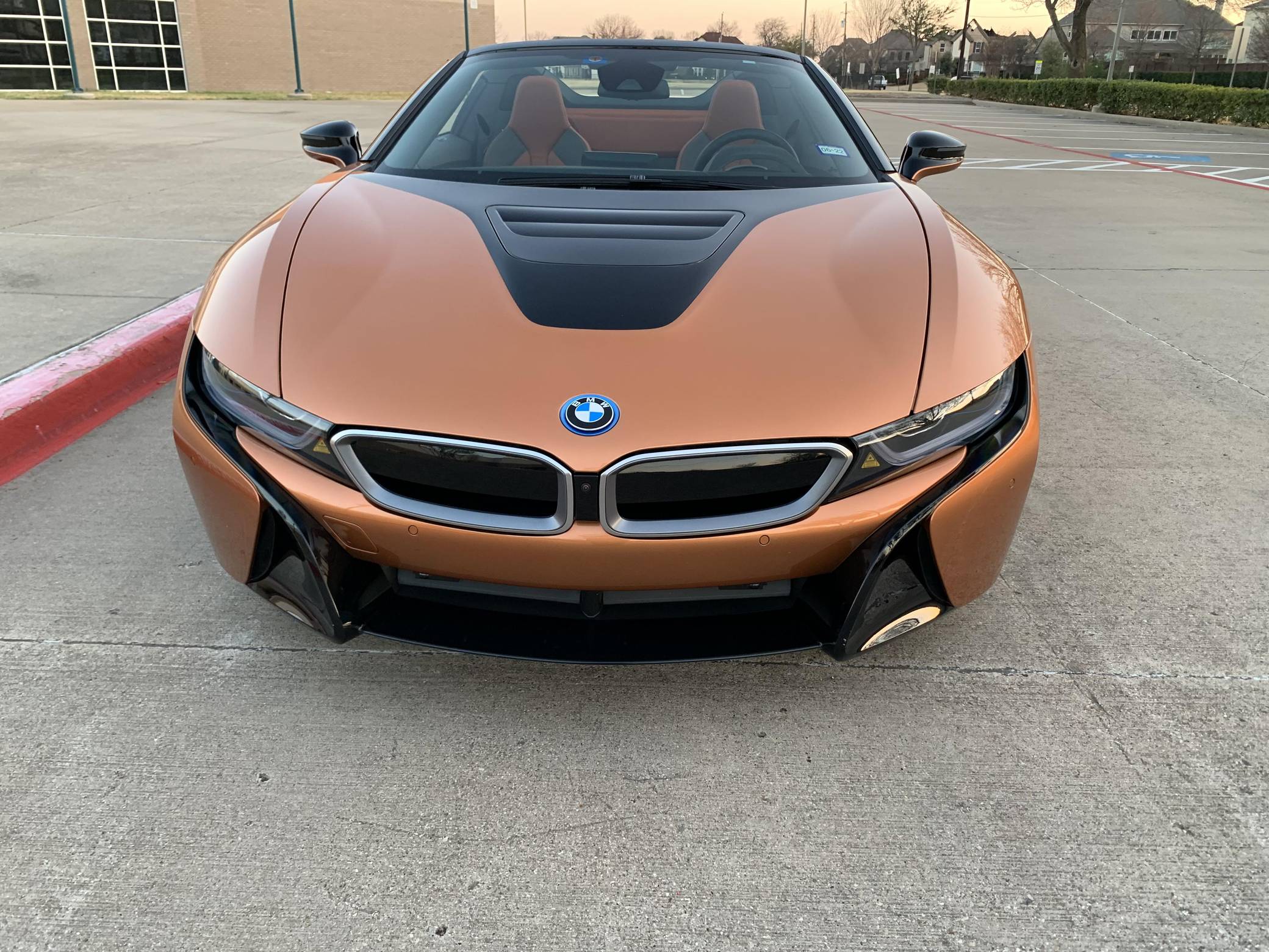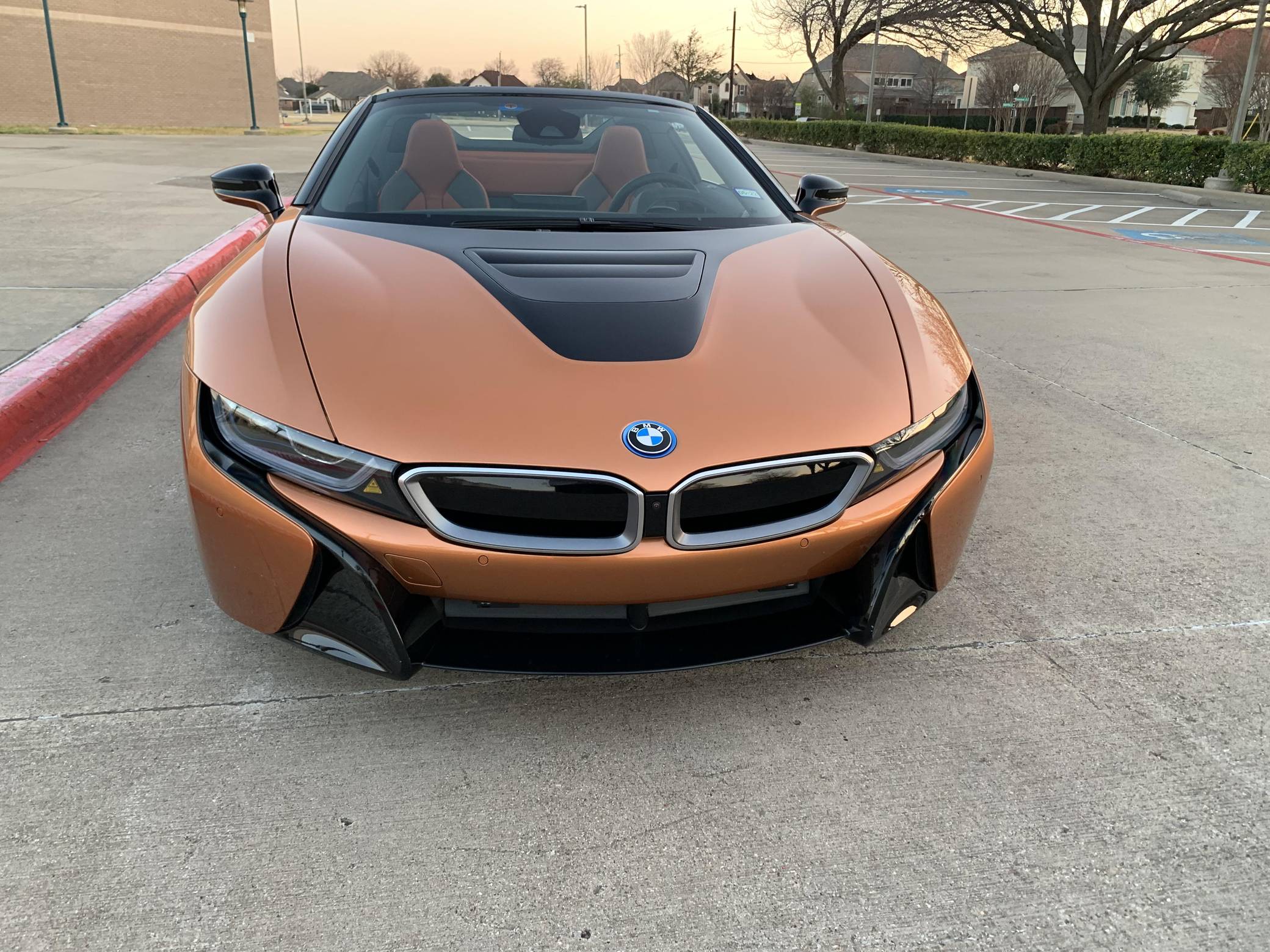 THIS… is a 2019 BMW i8 Roadster, finished in E-Copper and Frozen Grey Metallic with a black soft top and an E-Copper interior. The odometer currently displays approximately 1,000 miles. Factory equipment on this i8 Roadster includes the Lights package (laser light headlights), 20-inch Style 516 wheels, leather and cloth upholstery, heated and power-adjustable front seats, Comfort Access System, a head-up display, Park Distance Control (PDC), navigation system, a Harman/Kardon sound system, among others listed below. Modifications reported by the seller include paint protection on the front panels, window tint, and an Escort 9500 with mirror display. The Benoit Jacob-designed BMW i8 was introduced for the 2014 model year and was marketed as the flagship of BMW's "i" electric fleet. The hybrid-electric sports car is built on a carbon-fiber tub and combines pure concept-car looks with plenty of technology under the skin, which remains impressive to this day. For 2019, BMW launched the i8 Roadster as a 2-seater convertible, alongside the updated i8. These models came with a bigger battery pack for a longer EV driving range, as well as slightly more power out of the plug-in hybrid powertrain. Power comes from a gasoline-electric plug-in hybrid powertrain, which consists of a 1. 5-liter turbocharged 3-cylinder engine, 2 electric motors, and an 11. 6 kilowatt-hour lithium-ion battery pack. The system is rated at 369 horsepower and 420 lb-ft of torque. The internal combustion engine sends power to the rear wheels through a 6-speed automatic transmission, while the electric motor drives the front wheels through a 2-speed transmission.