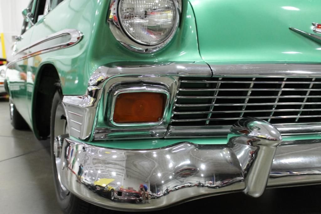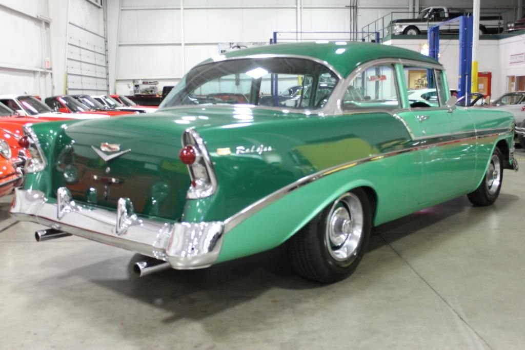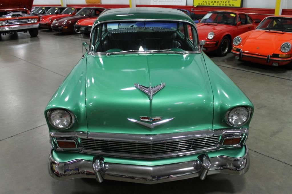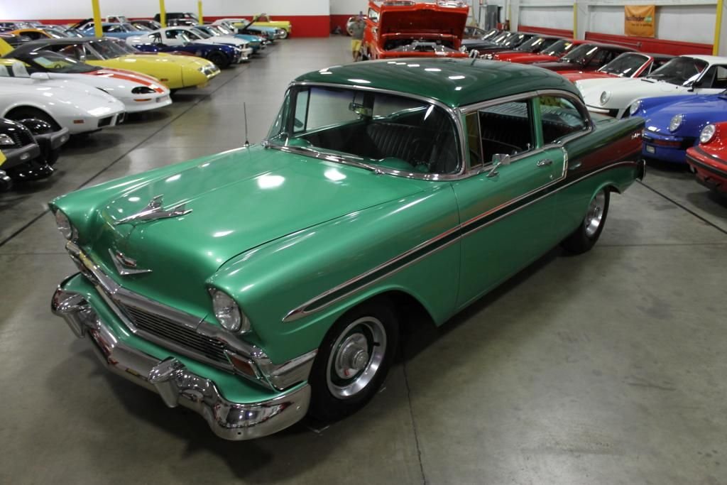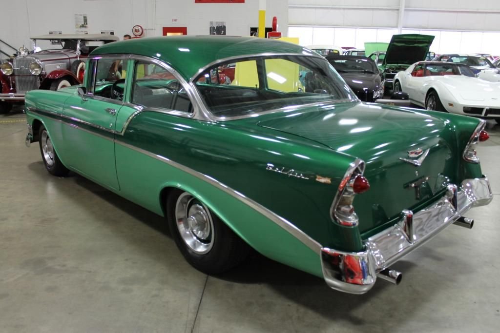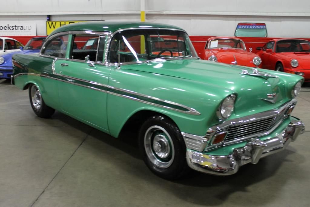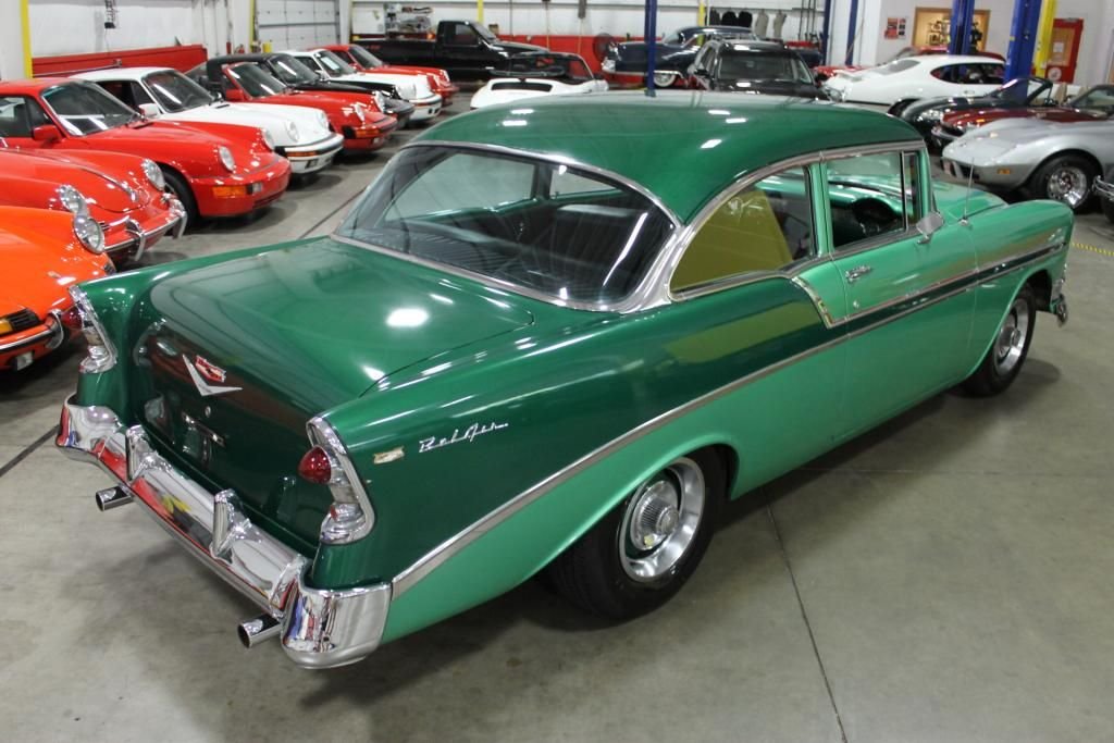 It is our pleasure to present this well restored and maintained 1956 Chevrolet Bel Air 2-Door, finished in a unique two-tone green color palette. This car has mainly been used for local weekend car shows, remains a great driver, and is offered here in excellent cosmetic condition. The Small Block 350 V8 engine is mated to a 3-Speed Powerglide Automatic transmission with a B&M floor shifter and H.O. ignition. The interior is finished with black seats and green accented trim. The dash has been refurbished and remains highly original. This is a great collector car that you can continue to enjoy behind the wheel.