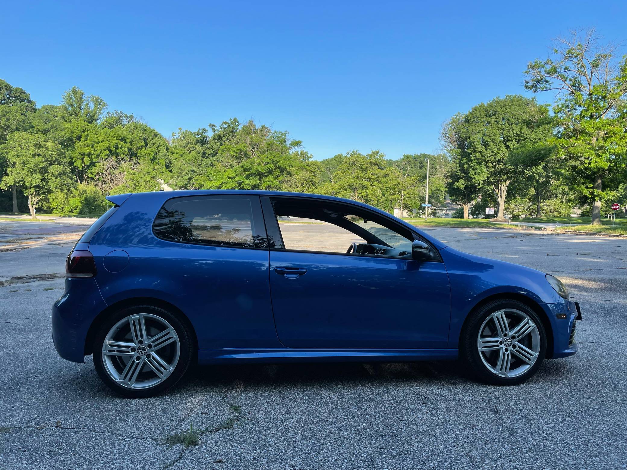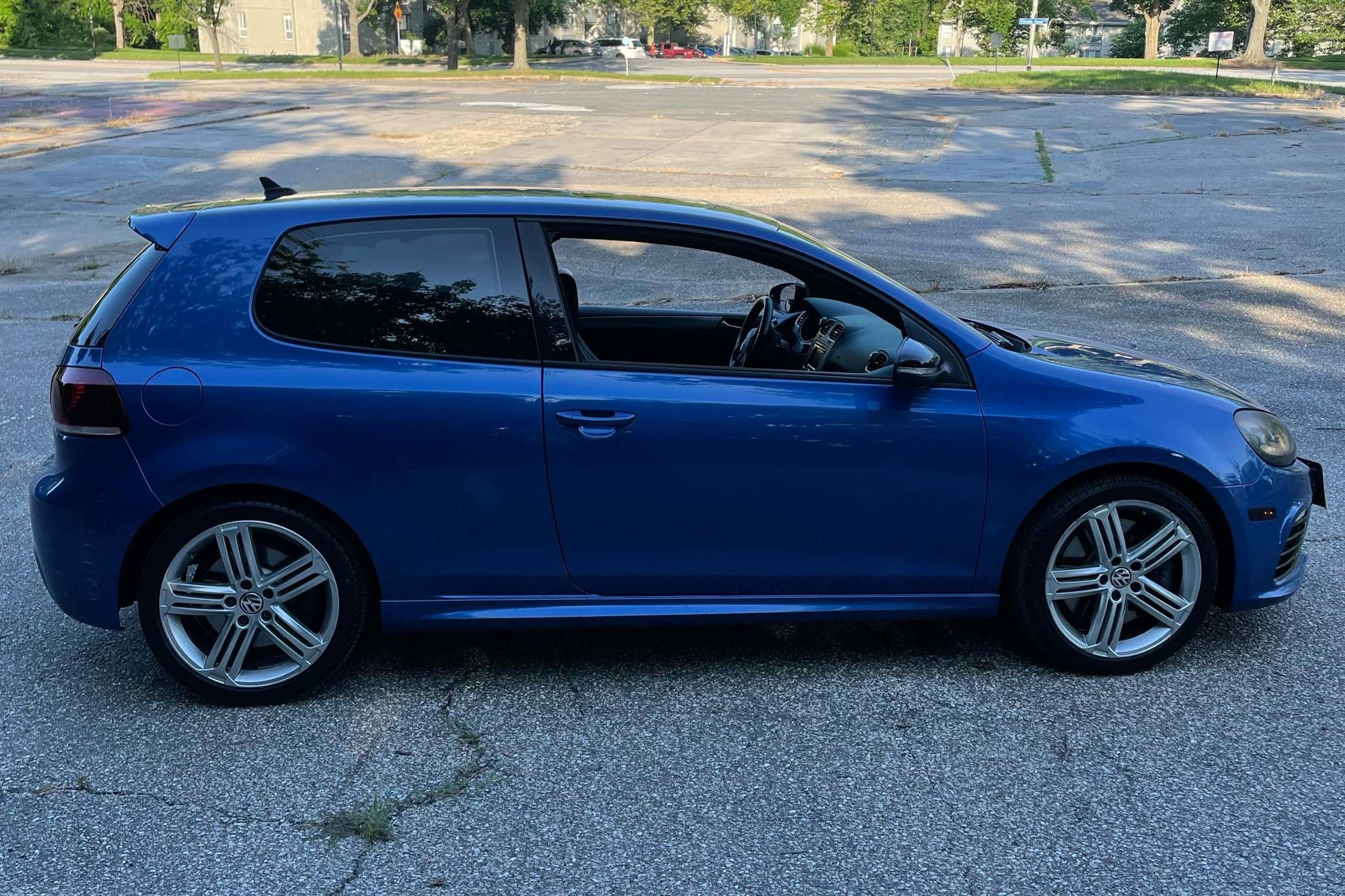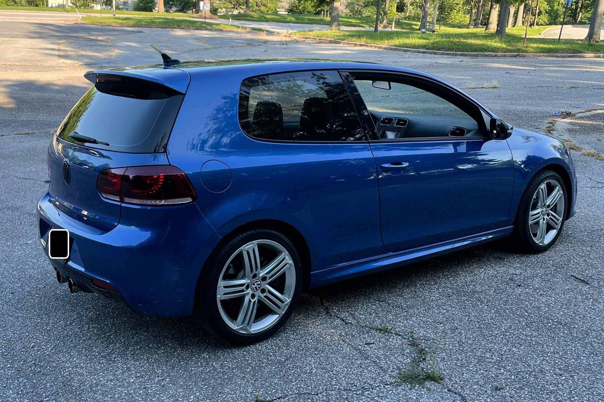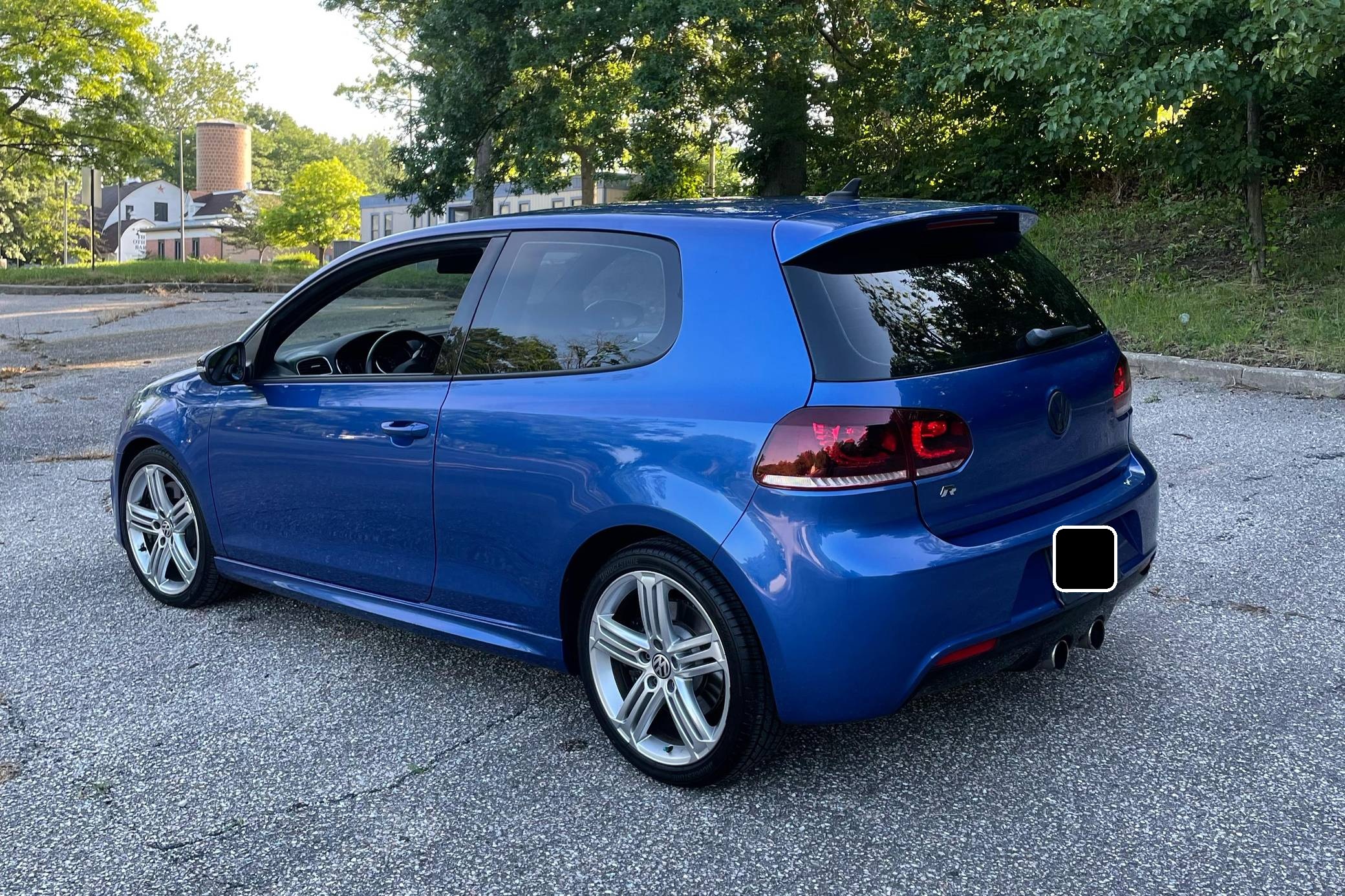 2012 Volkswagen Golf R, finished in Rising Blue Metallic with a Titan Black interior. This Golf R features the desirable 6-speed manual transmission. According to the build sheet provided in the gallery, factory equipment includes 18-inch "Talladega" alloy wheels, dual tailpipes, sport suspension, a power sunroof, heated and power-adjustable front sport seats, and cruise control. Modifications reported by the seller include an APR Stage 1 ECU tune, an ECS adjustable short shifter kit, LED taillights, tinted windows and exterior lights, and black VW badges. Volkswagen introduced the Golf R for the 2012 model year as the quickest and most powerful series-produced evolution of the sixth-generation Golf. Putting a powerful engine and all-wheel drive in a humble Golf was a formula that worked beautifully. R owners enjoyed impressive performance, sharp handling, and the versatility of a hatchback with split-folding rear seats. Power comes from an 2. 0-liter turbocharged inline-4 engine, rated at 256 horsepower and 243 lb-ft of torque in stock form. APR claims that its Stage 1 ECU tune increases those figures up to 310 horsepower and 311 lb-ft of torque, but a dyno sheet was not provided to confirm. Power is sent to all four wheels via a 6-speed manual transmission and Volkswagen's Haldex 4Motion all-wheel-drive system.