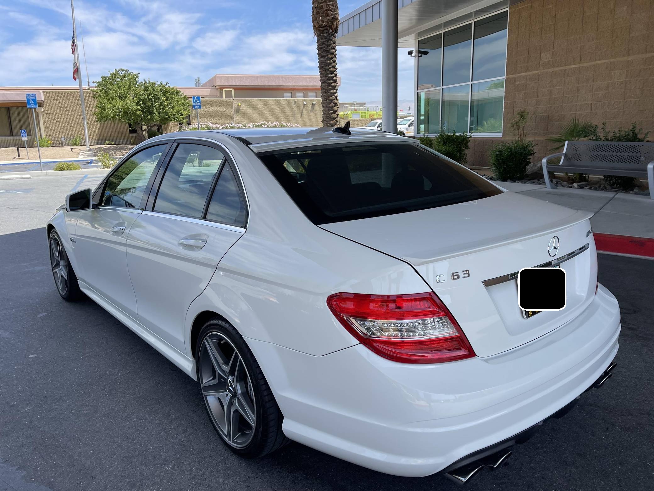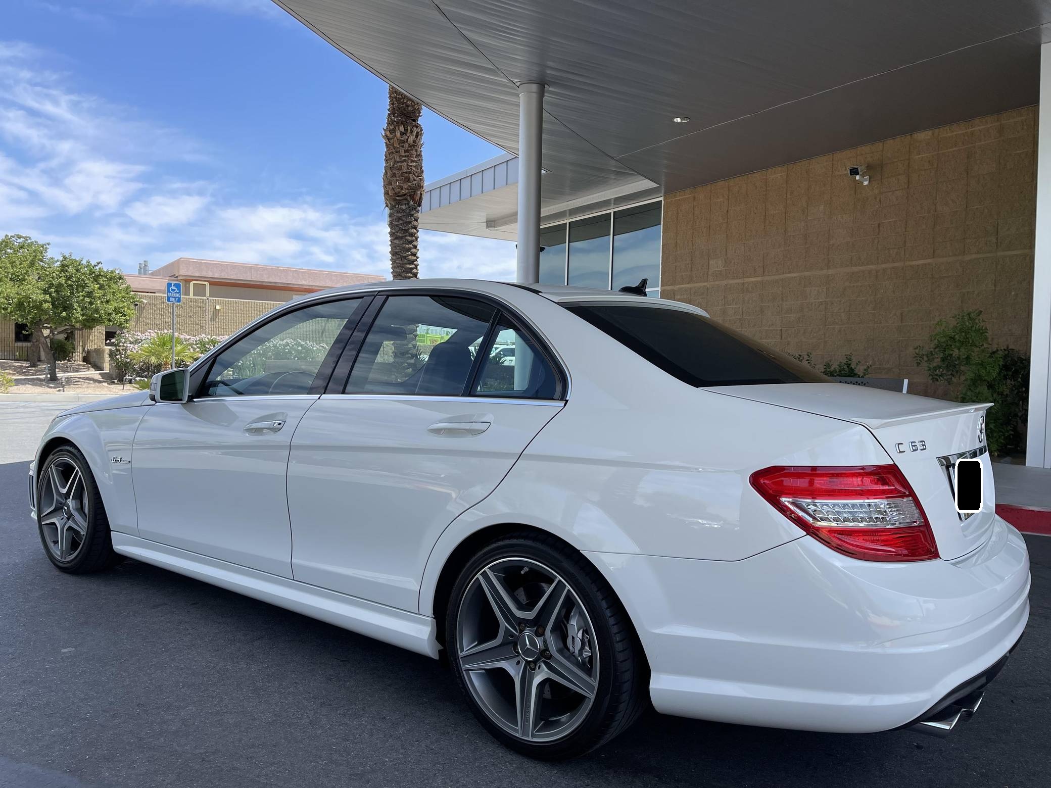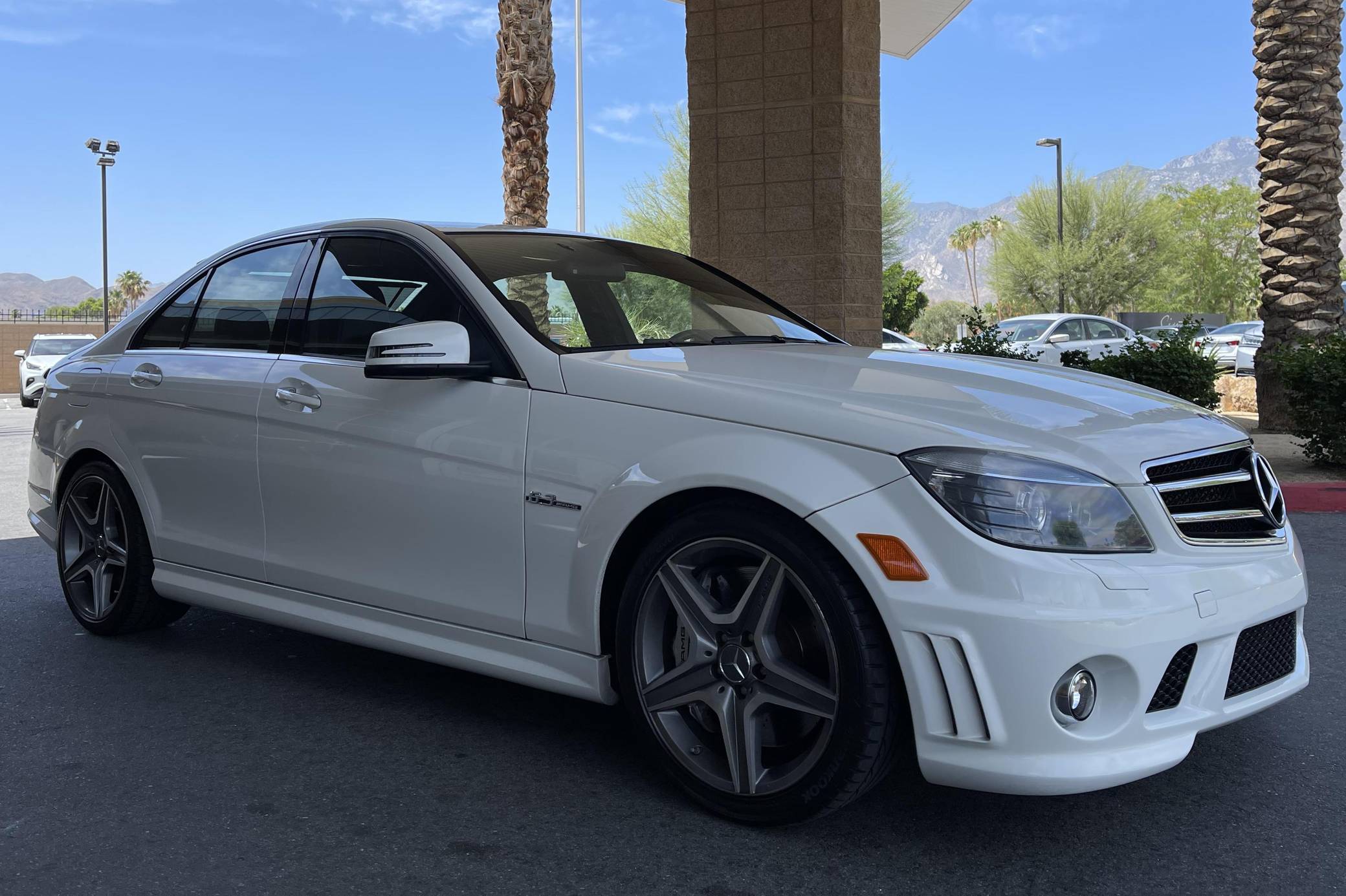 2010 Mercedes-Benz C63 AMG, finished in Arctic White with a black interior. Factory equipment includes the Premium II, AMG Leather, and Multimedia packages, 18-inch AMG wheels, a power sunroof, carbon fiber interior trim, heated front sport seats, and a Harman/Kardon surround sound system. The seller reports no modifications. Mercedes-Benz developed the W204-generation C-Class with a fire-breathing AMG variant in mind from the get-go. Wider and lower than the standard C-Class, the C63 relied on AMG's naturally-aspirated V8 and a long list of chassis upgrades to lure enthusiasts out of BMW and Audi showrooms. Its subtle exterior design allowed it to fly under the radar. Power comes from a 6. 2-liter "M156" V8, rated at 451 horsepower and 443 lb-ft of torque. Output is sent to the rear wheels via a 7-speed automatic transmission.