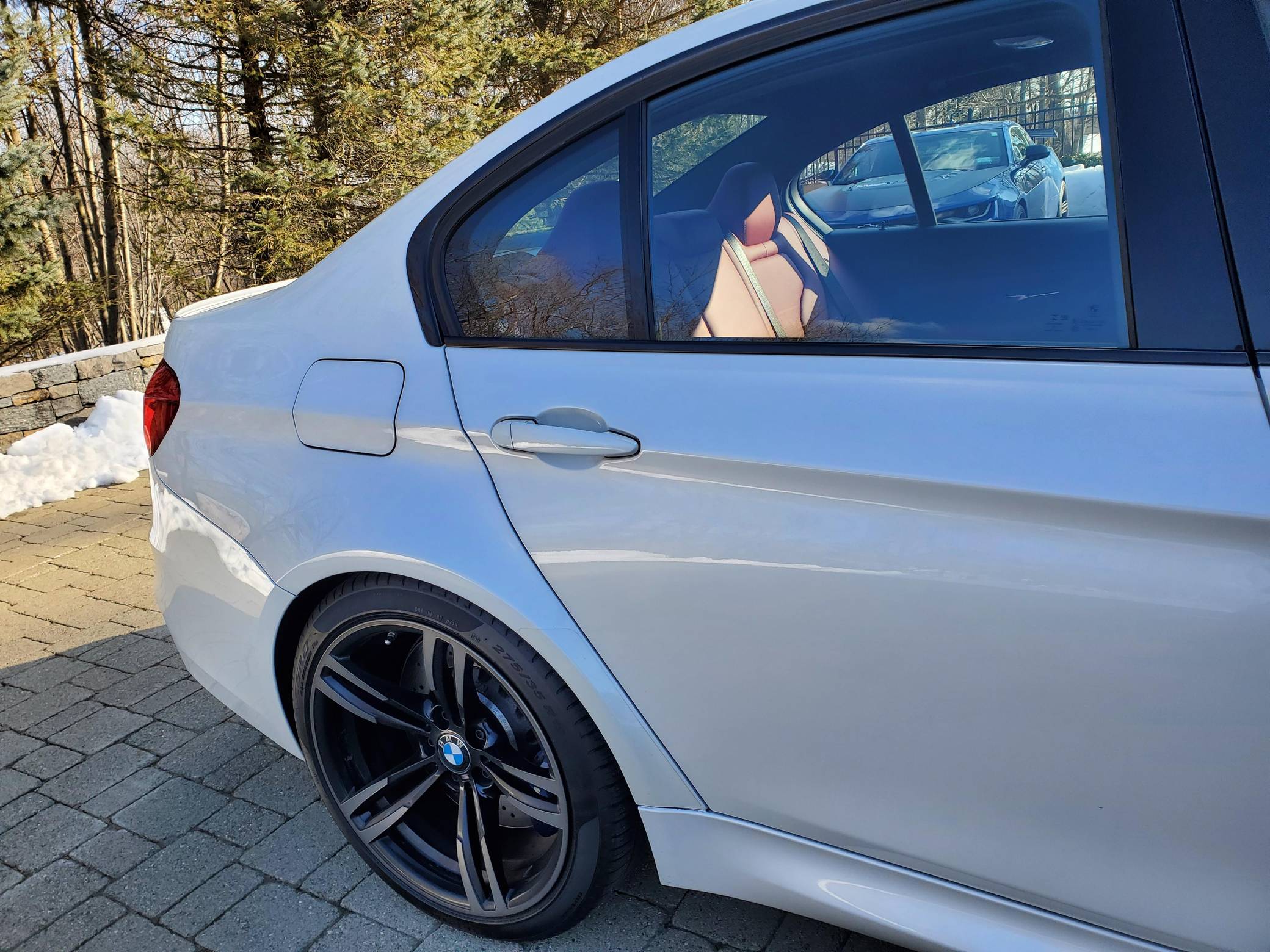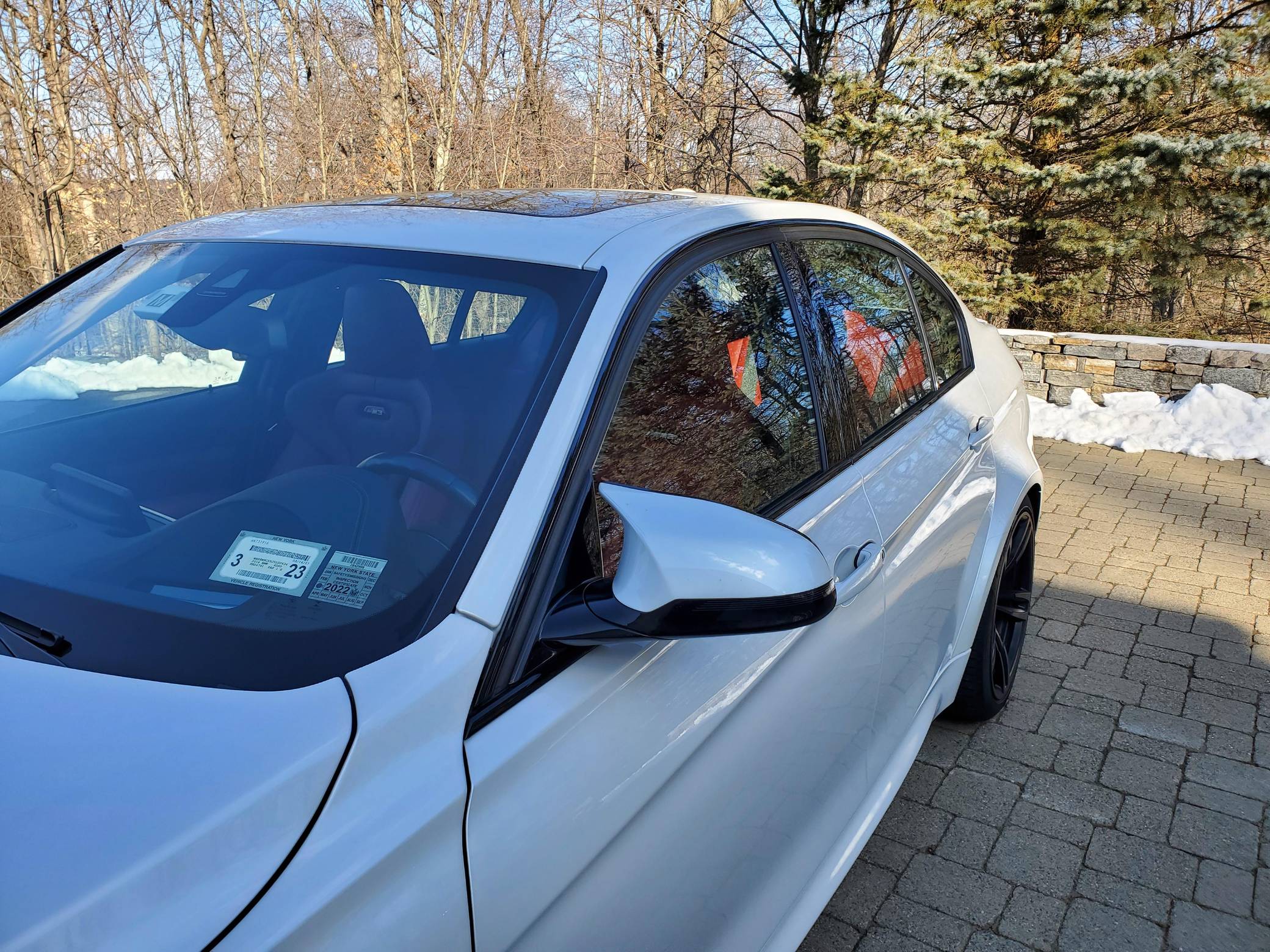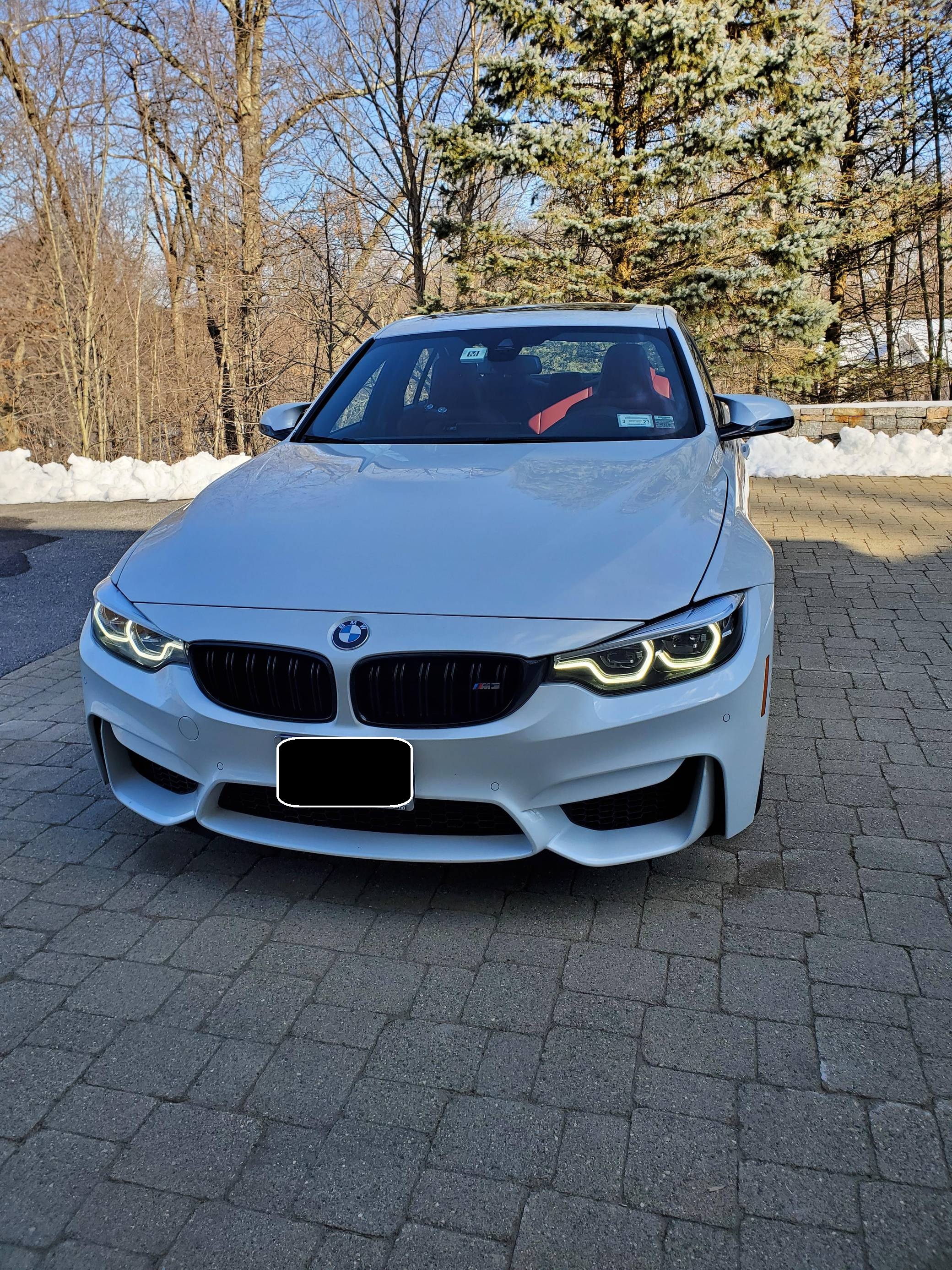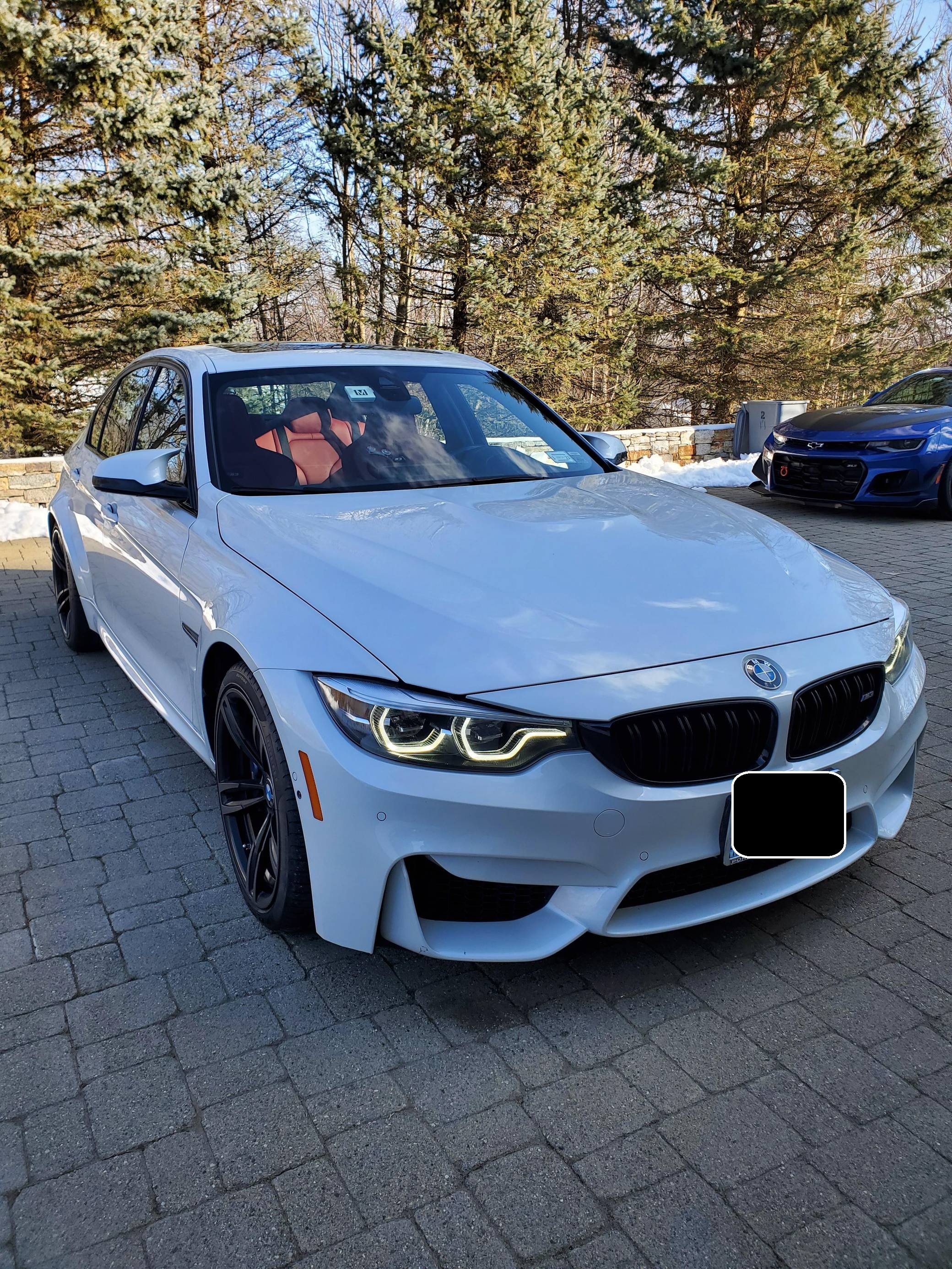 THIS. . . is a 2018 BMW M3, finished in Mineral White Metallic with a Sakhir Orange and black interior. This BMW's odometer displays about 24,700 miles. Factory equipment includes the Competition, Executive, Driver Assistance Plus, and Lighting packages, 19-inch Style 437M wheels, an adaptive M suspension system, carbon fiber interior trim, heated and power-adjustable front seats, heated rear seats, and a navigation system. This M3's build sheet is shown in the gallery, and the seller reports no modifications. BMW's fifth-generation M3 went on sale for the 2015 model year. Based on the "F30" 3 Series, and called "F80" internally, it swapped its predecessor's V8 for a twin-turbocharged straight-6 and picked up more horsepower and a lot more torque along the way. It wore a muscular-looking exterior design and M added a carbon fiber roof panel to keep weight in check. Production ended in 2018. Power comes from a 3. 0-liter twin-turbocharged straight-6, rated at 444 horsepower and 406 lb-ft of torque. Called "S55" internally, it spins the rear wheels via a 7-speed automatic transmission.