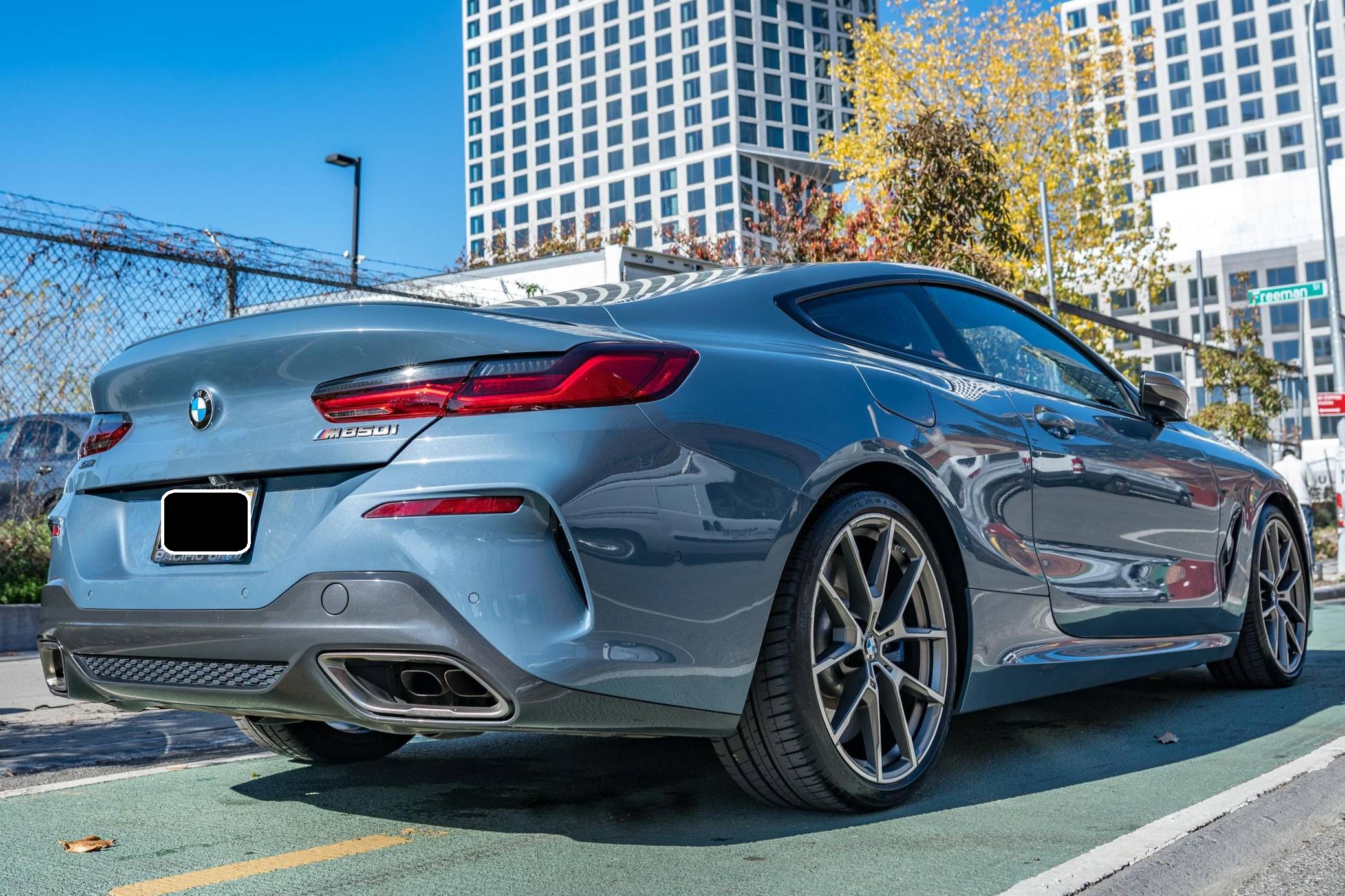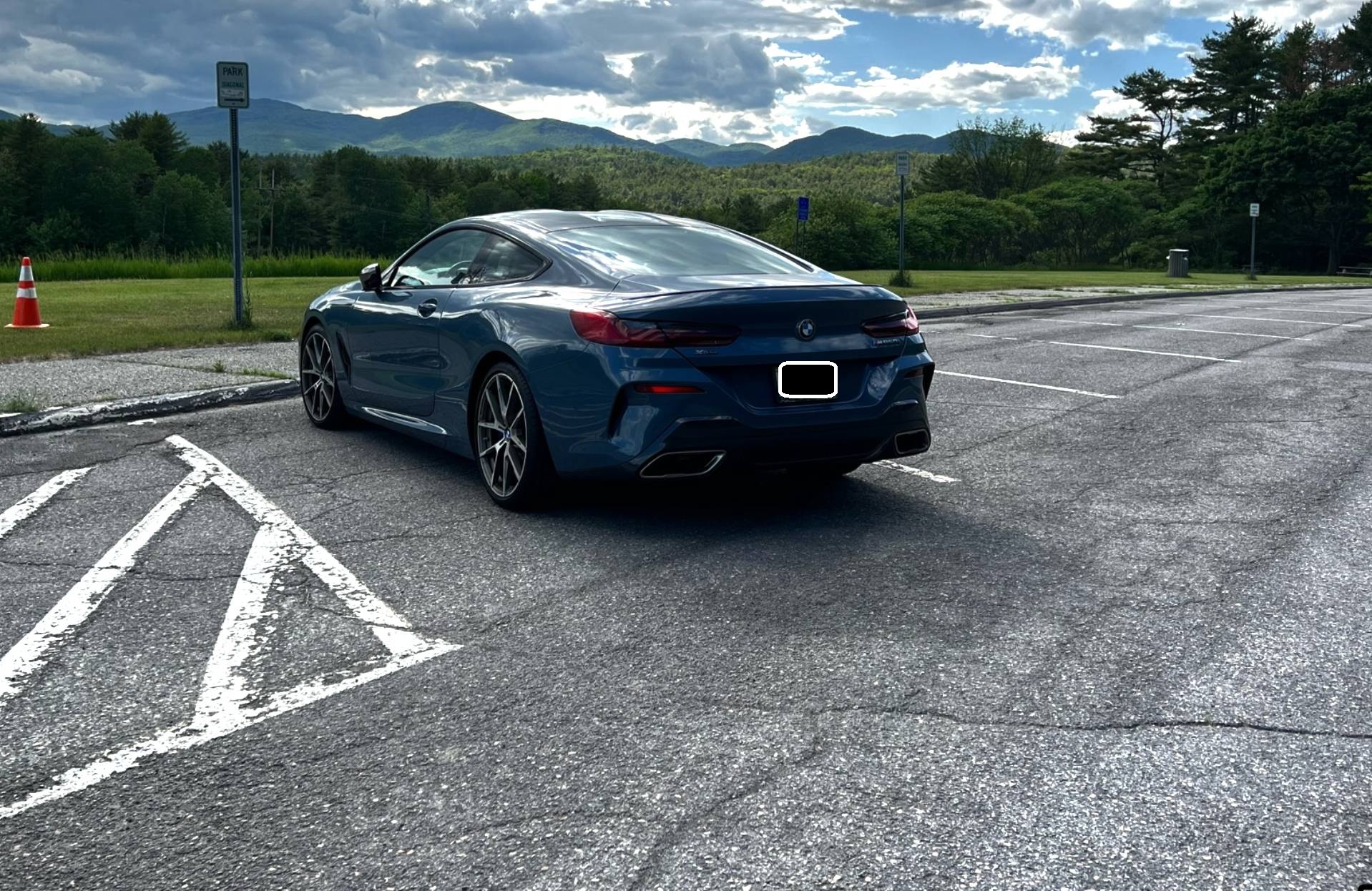 THIS. . . is a 2019 BMW M850i xDrive Coupe, finished in Barcelona Blue Metallic with a Tartufo and black interior. The odometer currently displays approximately 9,100 miles. Factory equipment includes the Drivers Assistance Pro and Comfort Seating packages, 20-inch Style 728M wheels, Icon adaptive LED headlights, an M carbon roof, Merino leather upholstery, heated and power-adjustable front seats, automatic climate control, glass controls, soft-close doors, a Bowers & Wilkins sound system, and a navigation system, among others listed below. The seller reports no modifications. BMW resurrected the 8 Series nameplate for 2019, nearly 20 years after the "E31" was discontinued. The new "G15" generation continues the 8 Series tradition with its long, sweeping body lines on the outside and the latest and greatest luxury features BMW has to offer on the inside. Propelling the 8 Series to the modern age is a combination of powerful turbocharged engines and an available xDrive all-wheel drive system. Power comes from an "N63" 4. 4-liter twin-turbocharged V8 engine, rated at 523 horsepower and 553 lb-ft of torque. Output is sent to all four wheels via an 8-speed automatic transmission and BMW's xDrive all-wheel drive system.