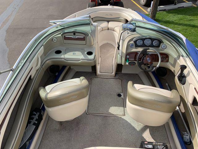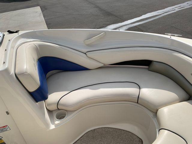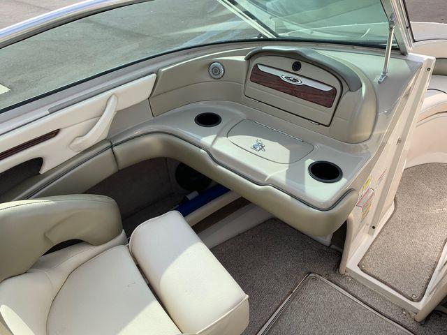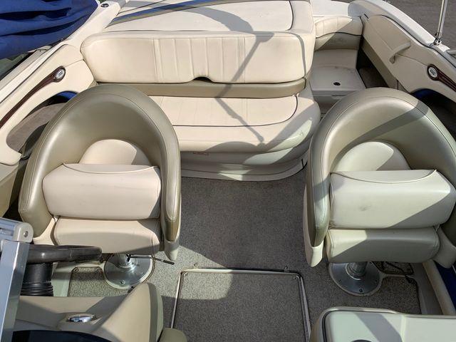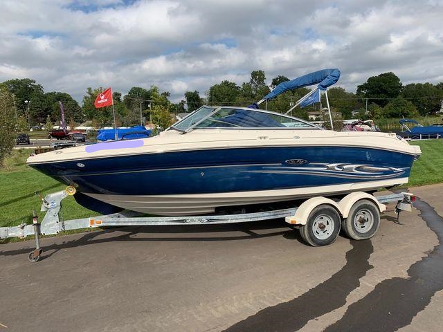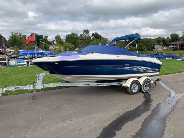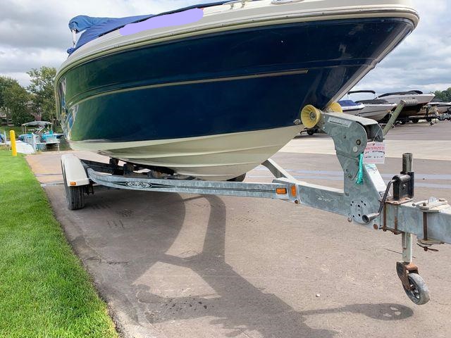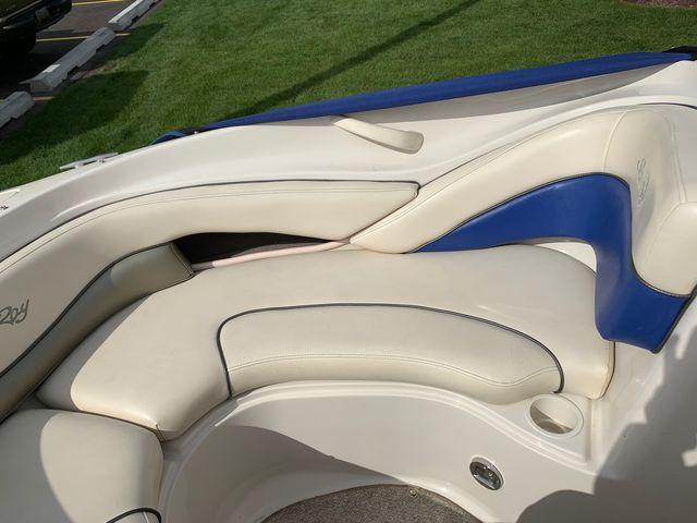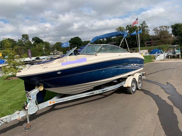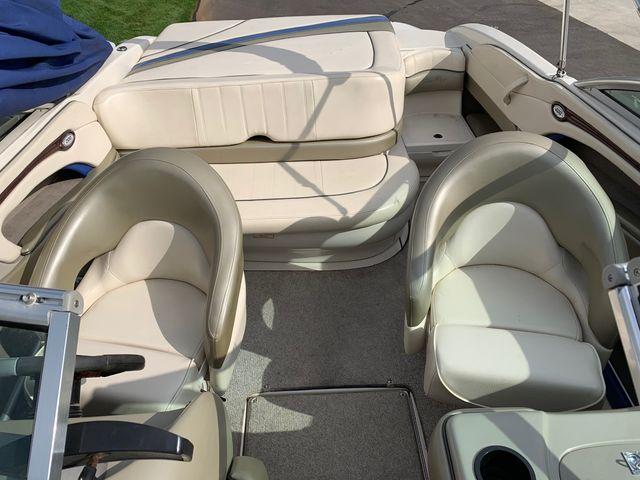 Nice boat. Fuel-injected 220 hp gives you all the power you need for towing sports or high-speed cruising. The Interior is in great shape. Trailer and covers all included. BIMINI TOP, BOW COVER, COCKPIT COVER, ANCHOR W/LINES, FENDER W/LINES, SKI TOW, SNAP OUT CARPET, SS PROP, WALK-THROUGH WINDSHIELD, 12 VOLT SYSTEM, BATTERY, BATTERY SWITCH, AM/FM, CD PLAYER, COMPASS, DEPTH SOUNDER, BILGE BLOWER, BILGE PUMP, FRESHWATER COOLING SYSTEM, MANUAL FIRE SYSTEM, POWER TRIM, SIDE CONTROLS, UNDERWATER EXHAUST.
