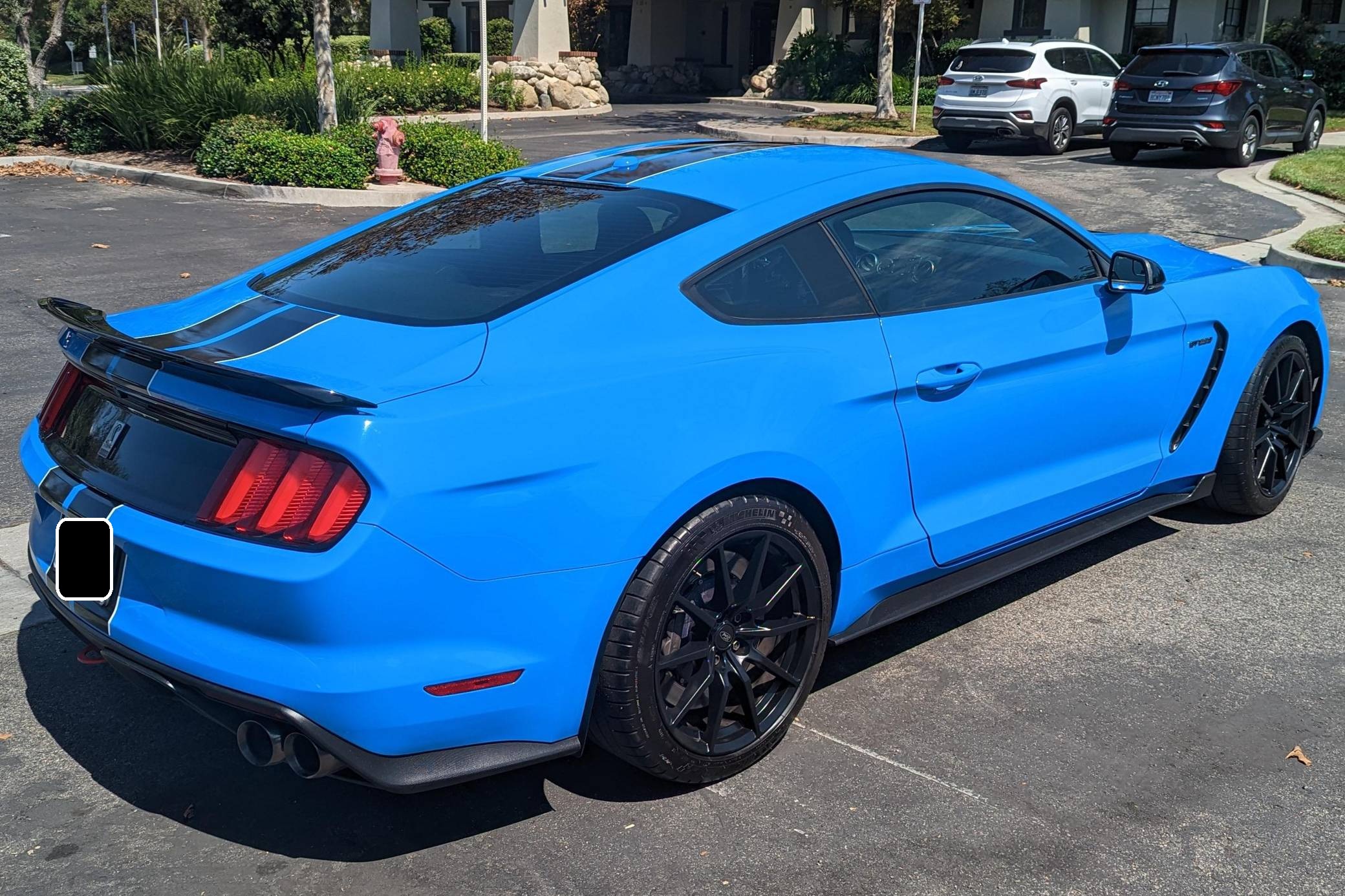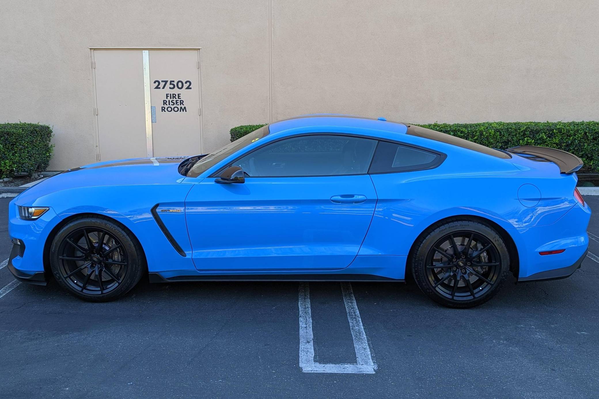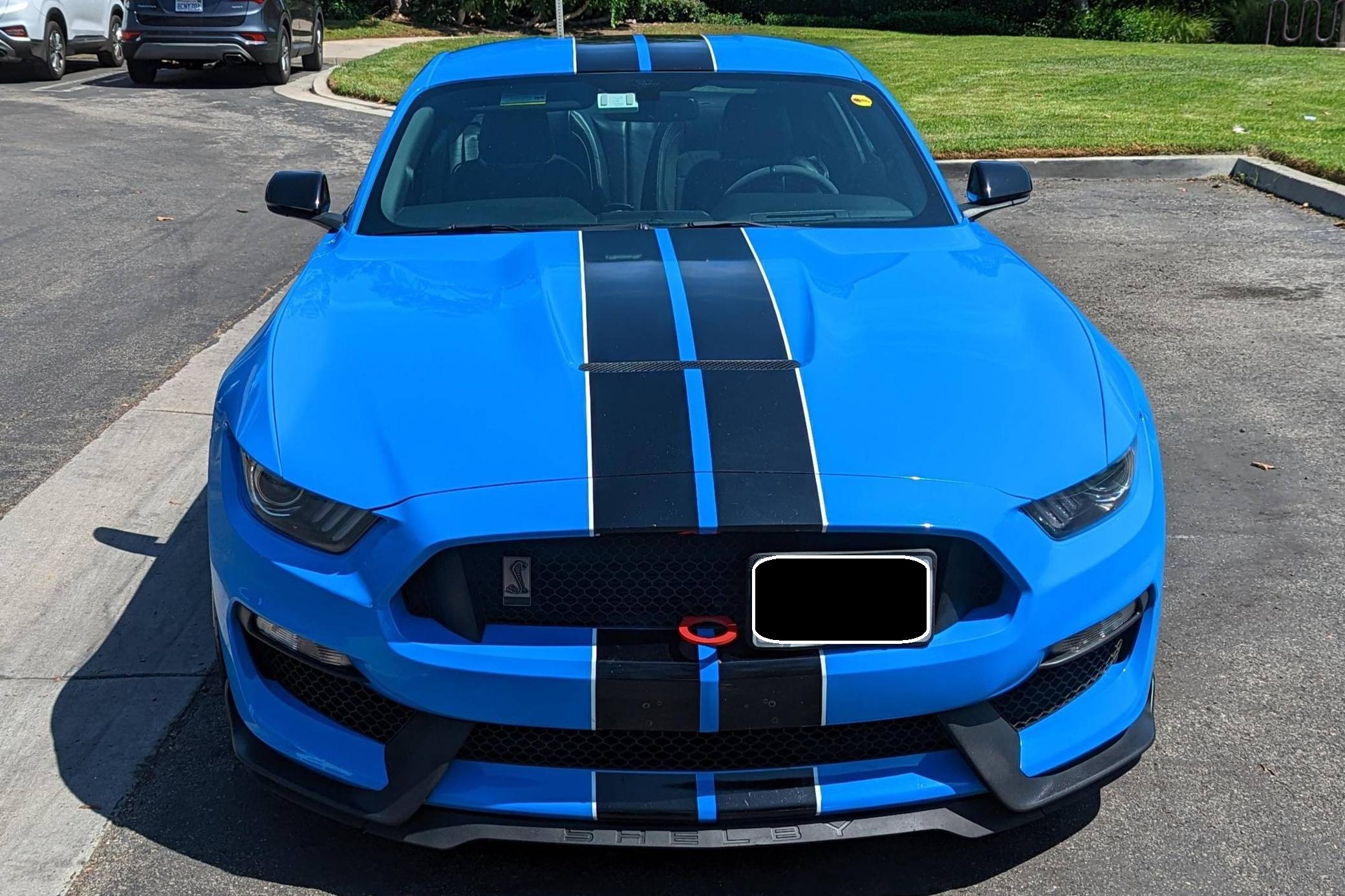 THIS. . . is a 2017 Ford Mustang Shelby GT350, finished in Grabber Blue with an Ebony interior. A partial list of notable equipment includes the Convenience Package, 19-inch wheels, Brembo brakes, quad-tip dual exhaust, a MagneRide damping system, Torsen limited-slip differential, HID headlights, a rear spoiler, and an Alcantara-wrapped steering wheel. Modifications include a DSC Sport suspension controller, GiroDisc 2-piece brake rotors, Ford Performance air filter and oil catch cans, and Steeda chassis jacking rails. The track-oriented Shelby GT350 variant of the "S550" Ford Mustang is notable for its "Voodoo" V8 engine which employs a flat-plane crank and a unique crankpin configuration and firing order. It also has upgraded aerodynamics, a revised suspension, and various lightweight components that result in a highly competent muscle car. Power comes from a 5. 2-liter "Voodoo" V8 engine, rated at 526 horsepower and 429 lb-ft of torque. Output is sent to the rear wheels via a 6-speed manual transmission.