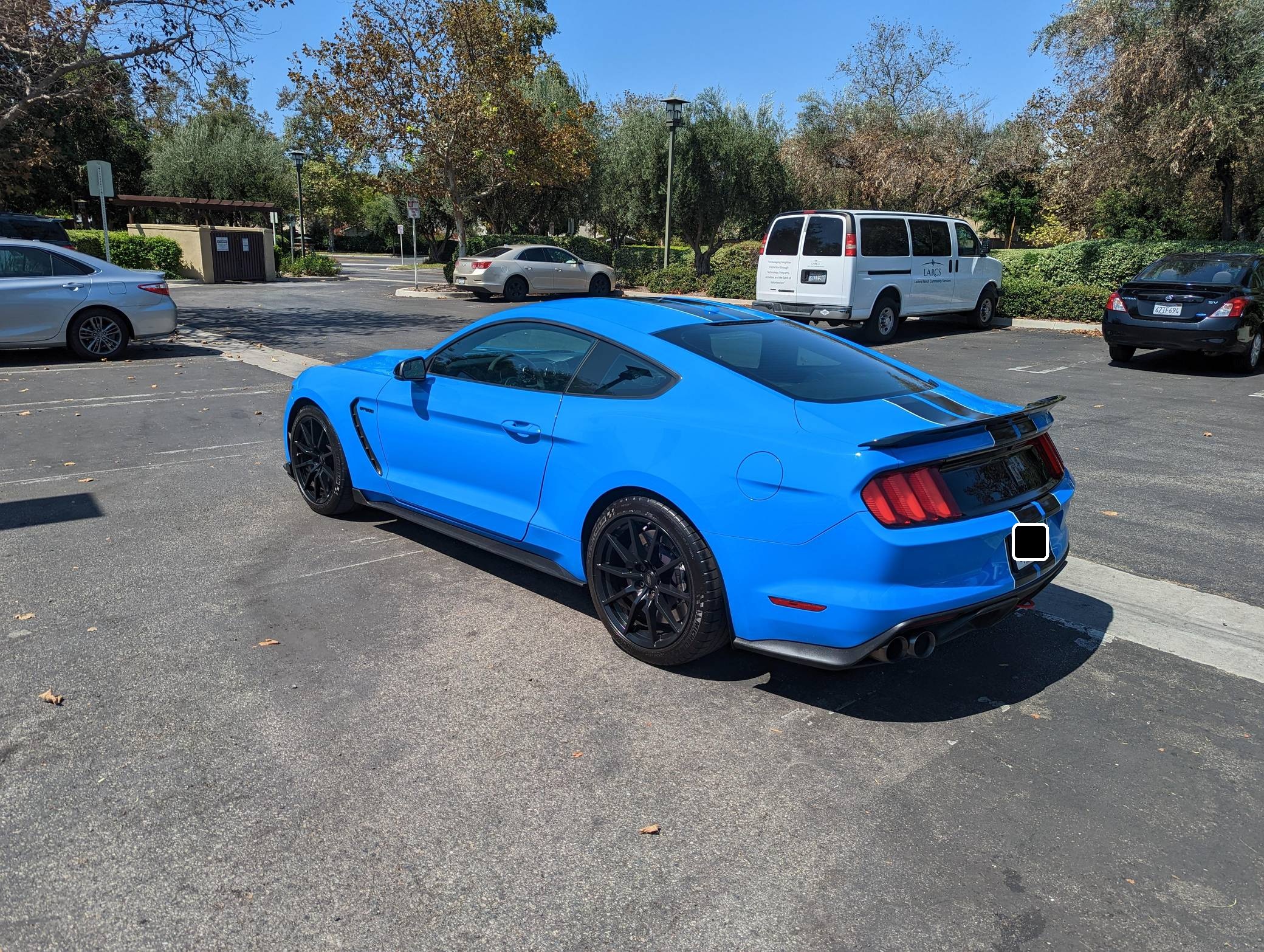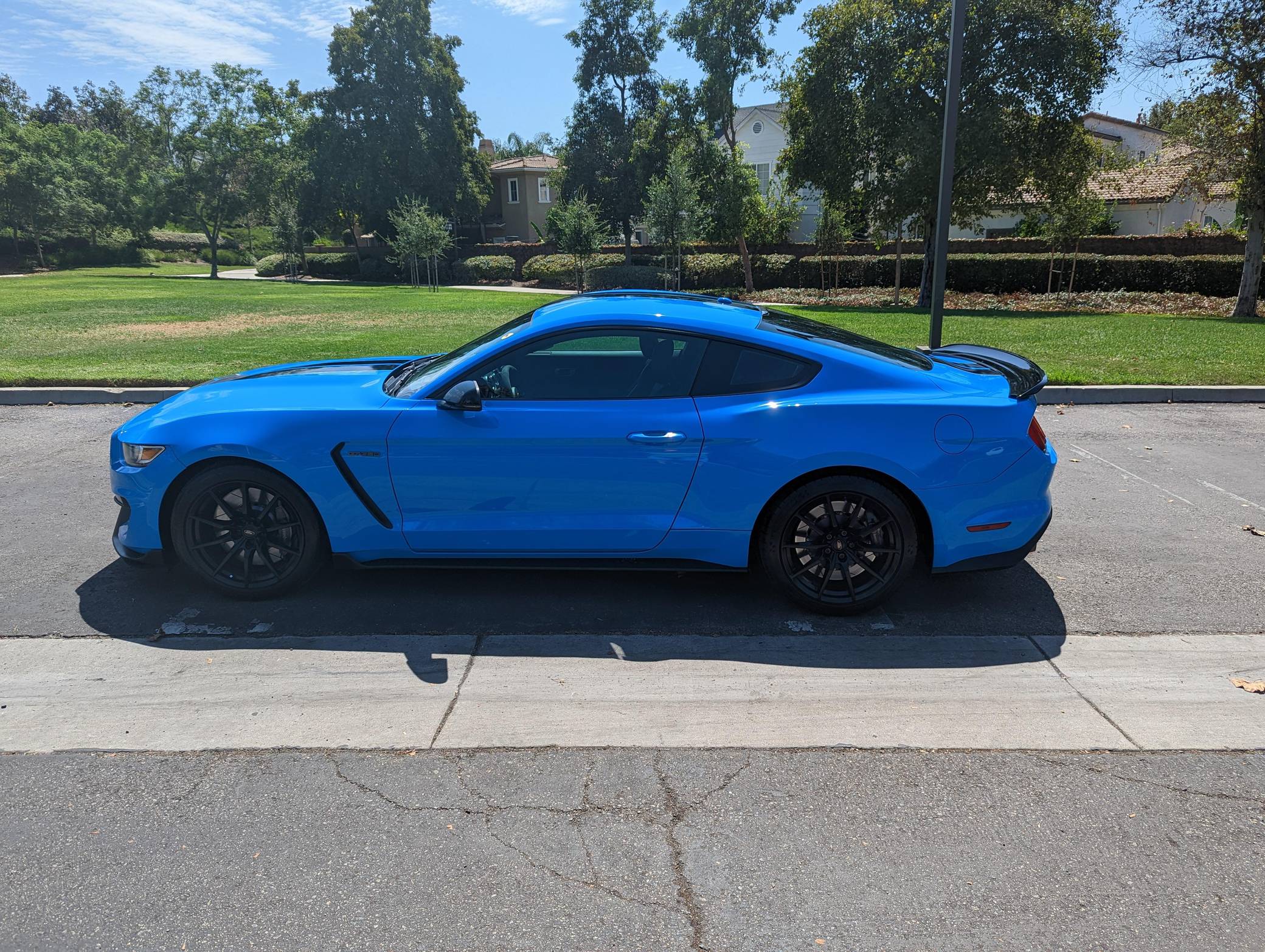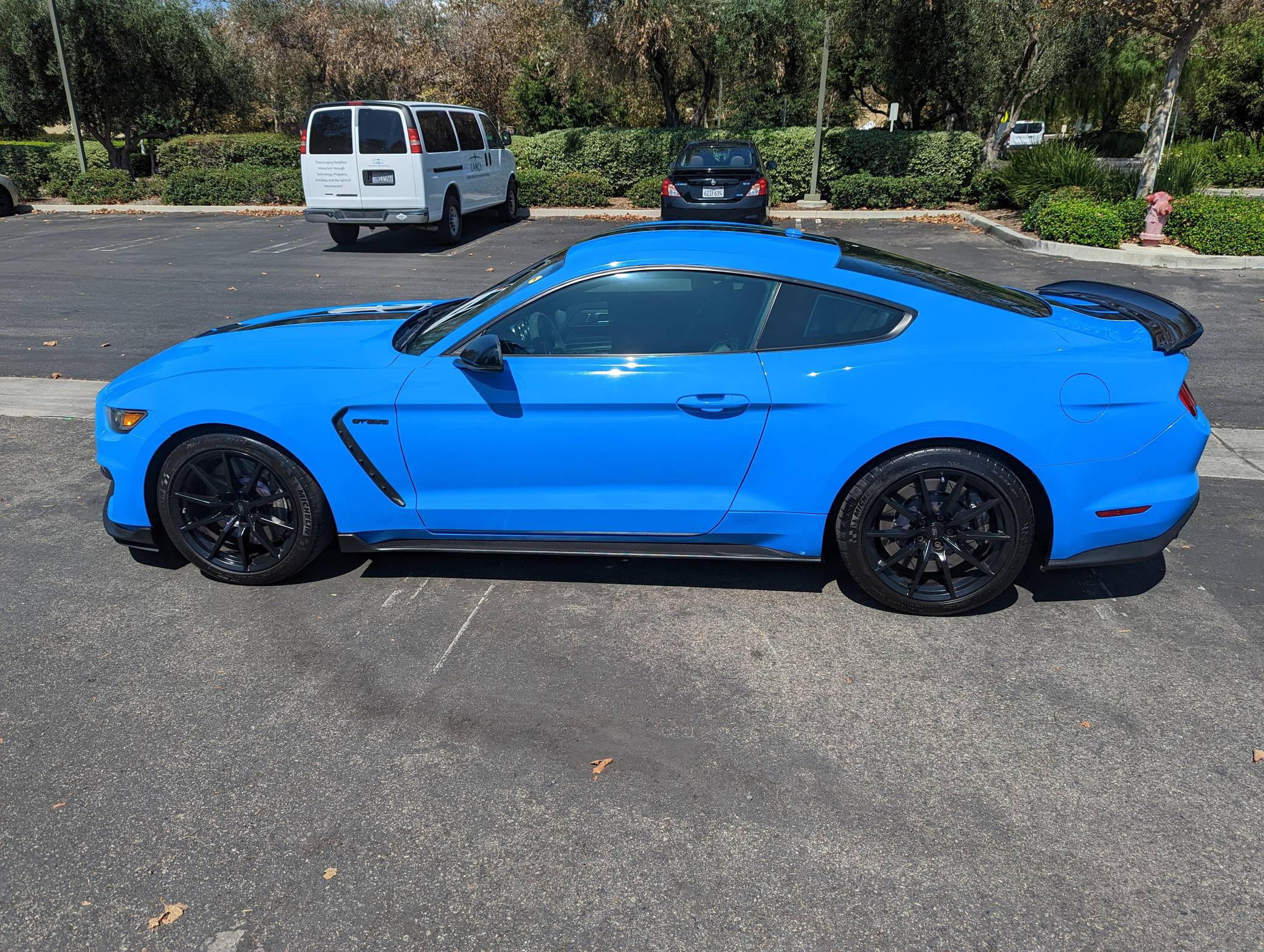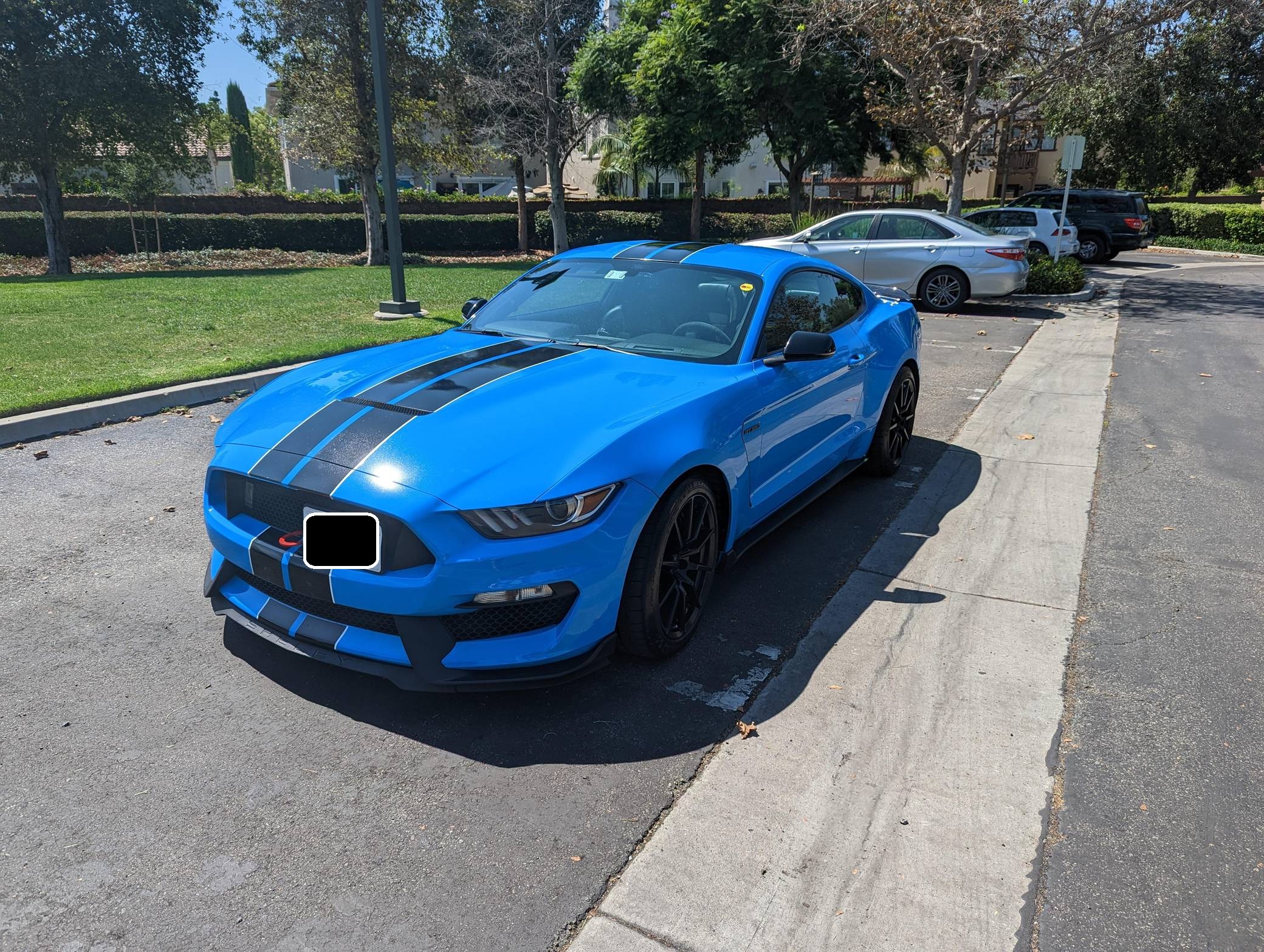 THIS. . . is a 2017 Ford Mustang Shelby GT350, finished in Grabber Blue with an Ebony interior. A partial list of notable equipment includes the Convenience Package, 19-inch wheels, Brembo brakes, quad-tip dual exhaust, a MagneRide damping system, Torsen limited-slip differential, HID headlights, a rear spoiler, and an Alcantara-wrapped steering wheel. Modifications include a DSC Sport suspension controller, GiroDisc 2-piece brake rotors, Ford Performance air filter and oil catch cans, and Steeda chassis jacking rails. The track-oriented Shelby GT350 variant of the "S550" Ford Mustang is notable for its "Voodoo" V8 engine which employs a flat-plane crank and a unique crankpin configuration and firing order. It also has upgraded aerodynamics, a revised suspension, and various lightweight components that result in a highly competent muscle car. Power comes from a 5. 2-liter "Voodoo" V8 engine, rated at 526 horsepower and 429 lb-ft of torque. Output is sent to the rear wheels via a 6-speed manual transmission.