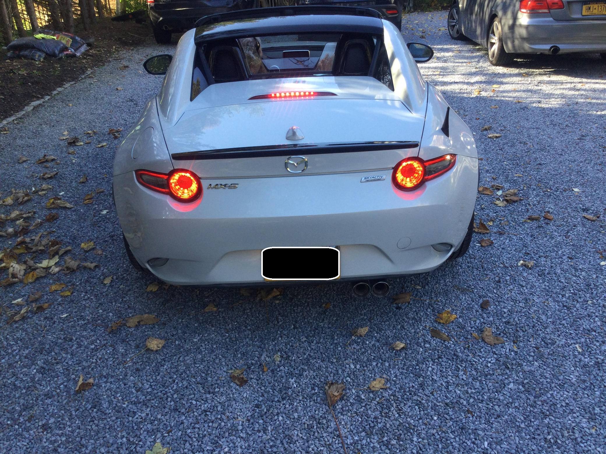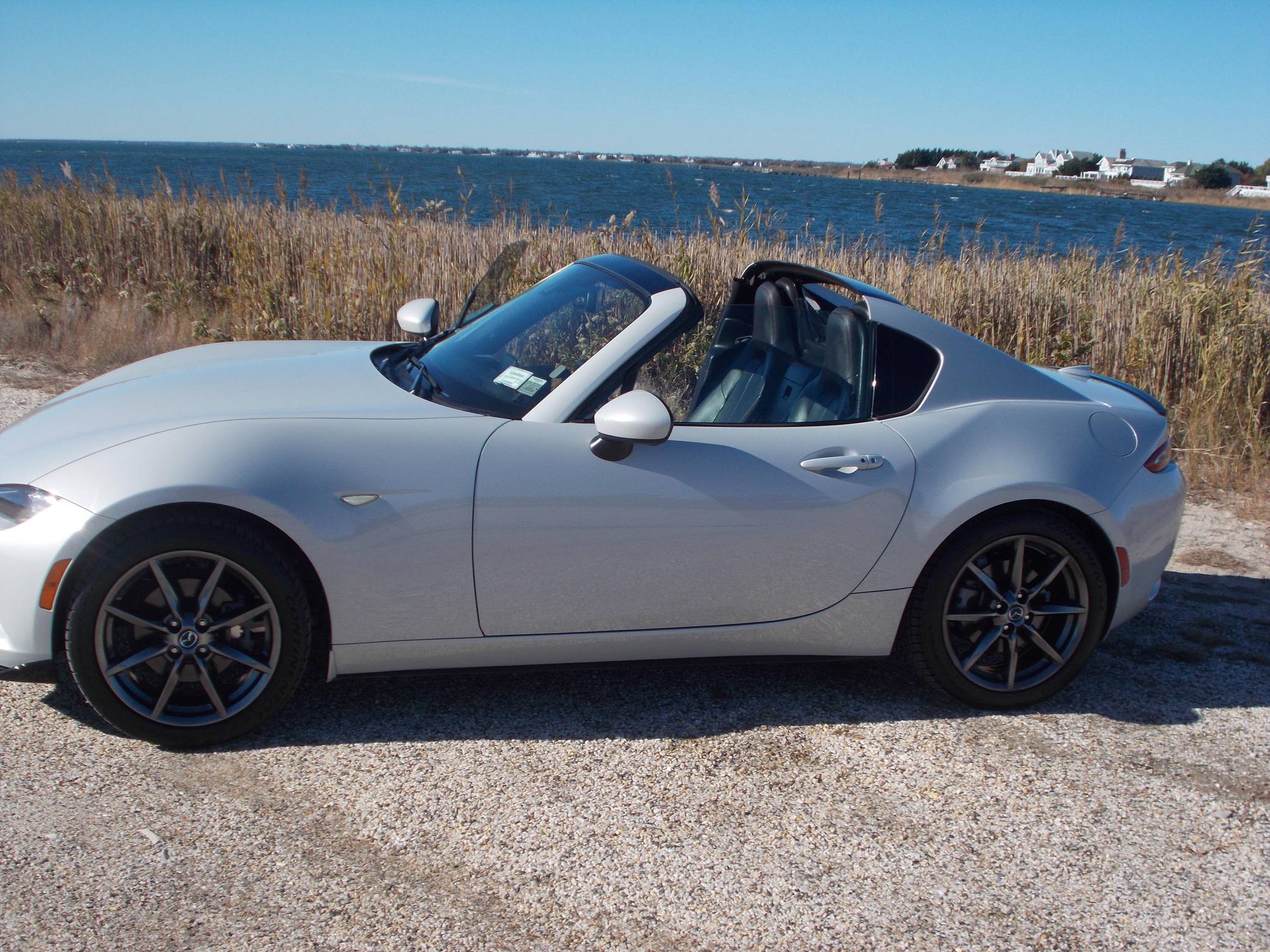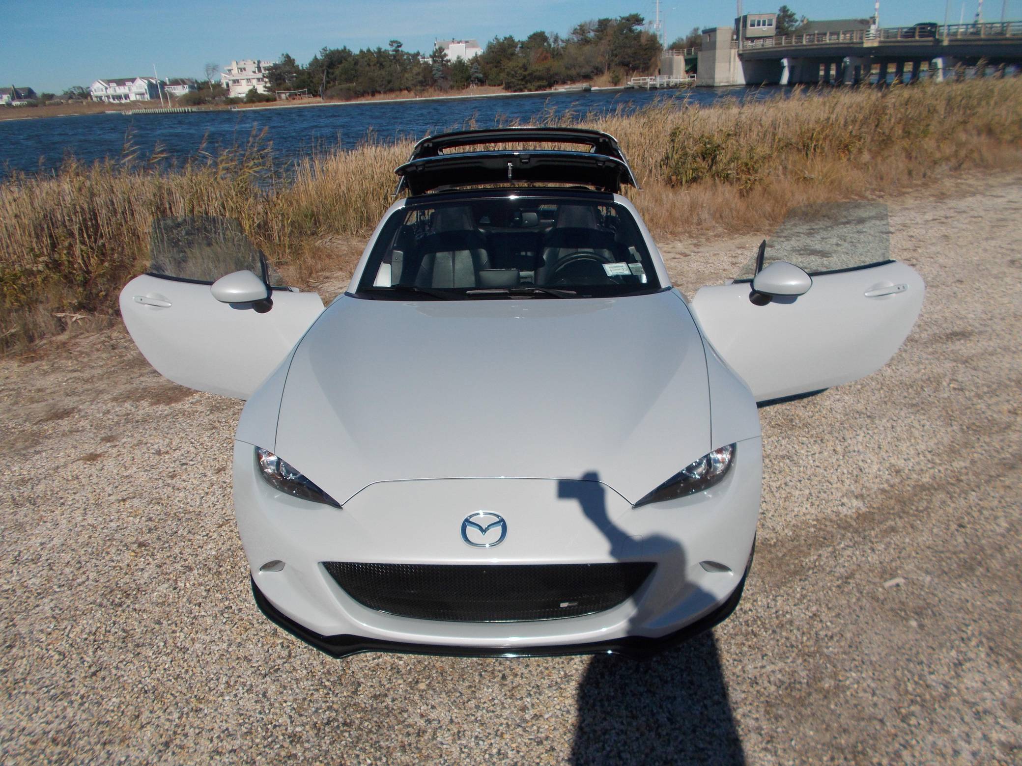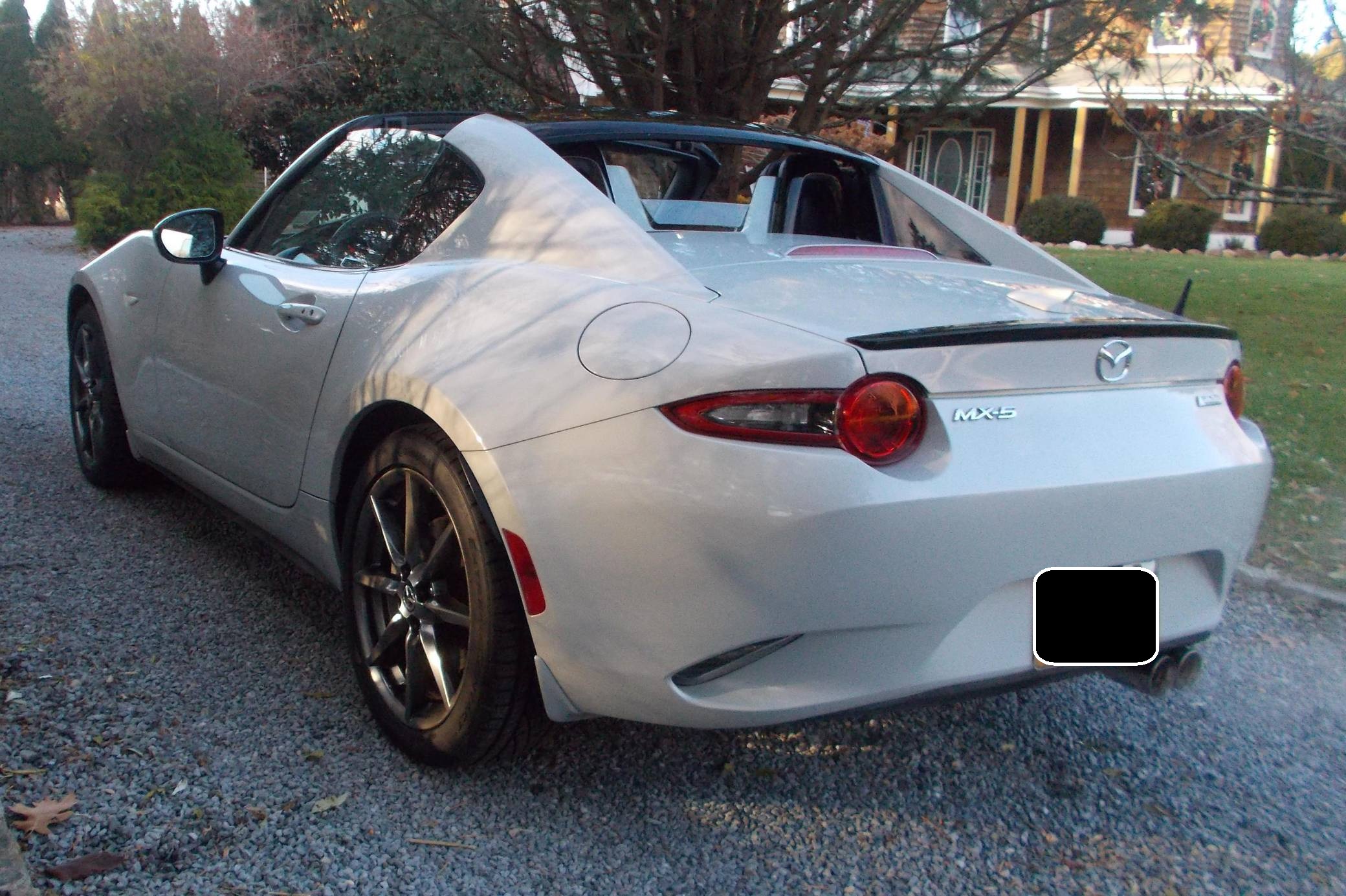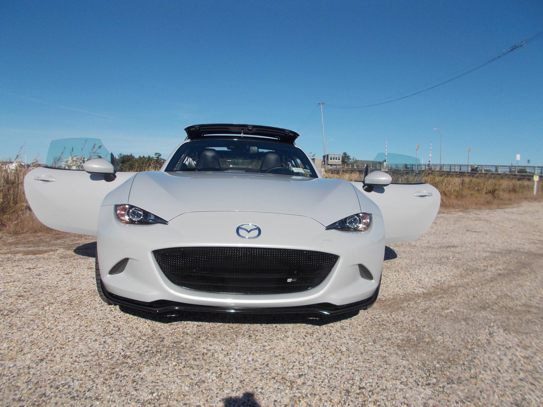 THIS… is a 2017 Mazda MX-5 Miata RF Grand Touring, finished in Ceramic Metallic with a black interior. This Miata features the desirable 6-speed manual transmission, and its odometer currently displays approximately 22,200 miles. Factory equipment includes a power-retractable hardtop, leather-trimmed and heated sport seats, keyless entry, a lane departure warning system, Bluetooth connectivity, and a 9-speaker Bose sound system. Modifications to this Miata are extensive, and the full list is detailed below. include an Edelbrock E-Force supercharger, a RoadsterSport Super-Q exhaust system, Progress front and rear sway bars, and a CravenSpeed short throw shifter. The "Retractable Fastback" or "RF" version of the "ND" Miata debuted in 2016 with a power-operated hardtop panel that disappears into the trunk area, as well as distinctive flying buttresses that alter the car's side profile. RF models were divided into two trims Club and Grand Touring trims with the Club trim being positioned as the sportier choice and the Grand Touring a more luxury-oriented option. Power comes from a 2. 0-liter inline-4 engine, rated at 155 horsepower and 148 lb-ft of torque in stock form. With the aftermarket supercharger and tune performed to this Miata, the seller estimates that it currently produces around 225 wheel horsepower, but a dyno sheet was not provided to confirm. Output is sent to the rear wheels via a 6-speed manual transmission.