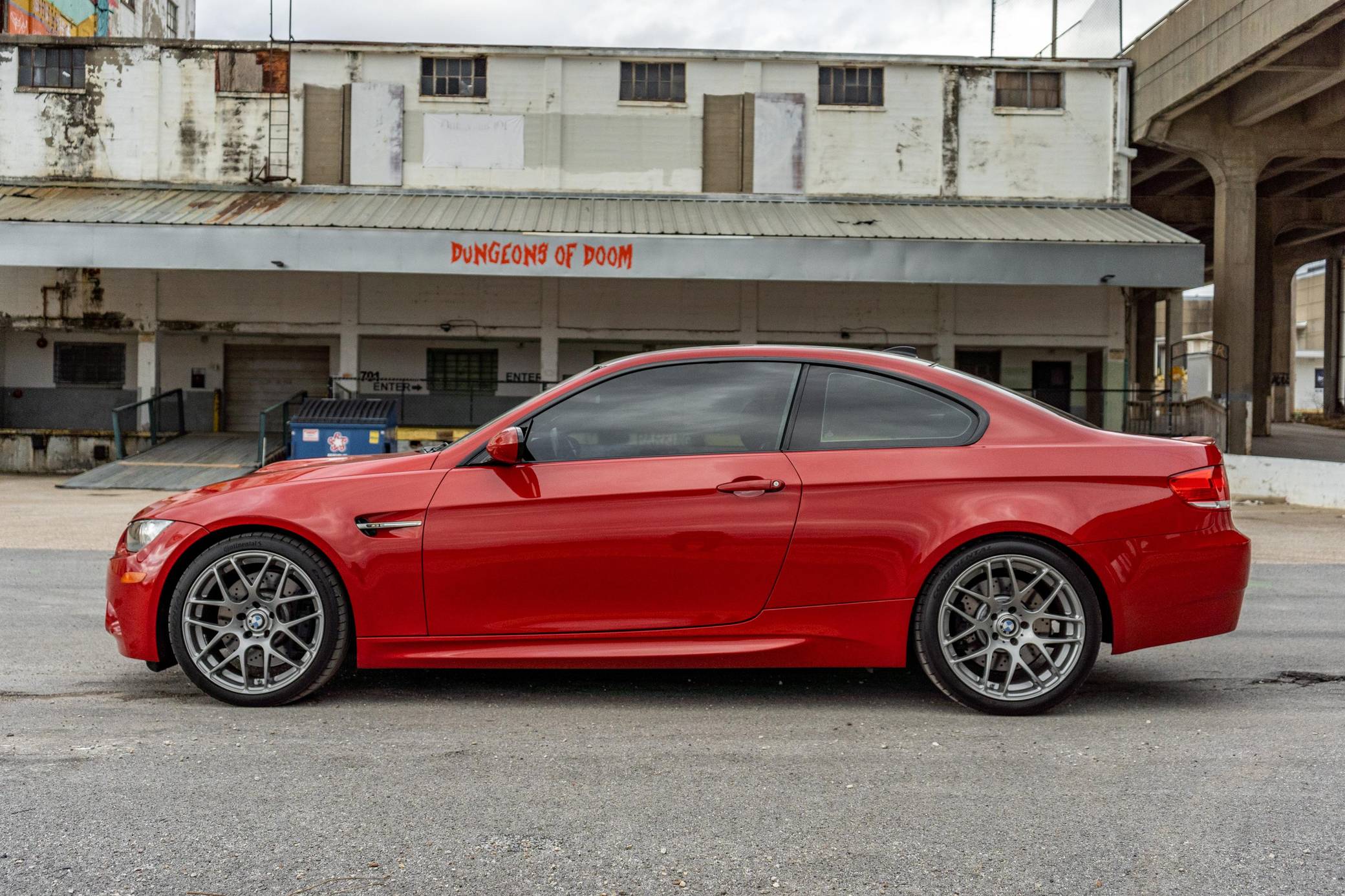 THIS. . . is a 2008 BMW M3 Coupe, finished in Melbourne Red Metallic with a black interior. This M3 features the desirable 6-speed manual transmission, and its odometer currently displays about 55,800 miles. Factory equipment includes adaptive xenon headlights, a carbon fiber roof panel, Novillo extended leather upholstery, power-adjustable and heated front seats, a power rear sunshade, Comfort Access keyless entry, Park Distance Control (PDC), and an enhanced premium sound system. Modifications reported by the seller are limited to 19-inch VMR V710 wheels, a short shifter kit, and tinted windows. BMW engineers had to balance horsepower and weight as they developed the first and only M3 equipped with a V8 engine. Released for 2008, and based on the E90-generation 3 Series, it won over skeptical enthusiasts by offering performance that approached supercar levels in a practical, daily-drivable, and relatively subtle package. Sedan, coupe, and convertible variants were offered. Power comes from a 4. 0-liter "S65" V8, rated at 414 horsepower and 295 lb-ft of torque. Output is sent to the rear wheels via a 6-speed manual transmission.