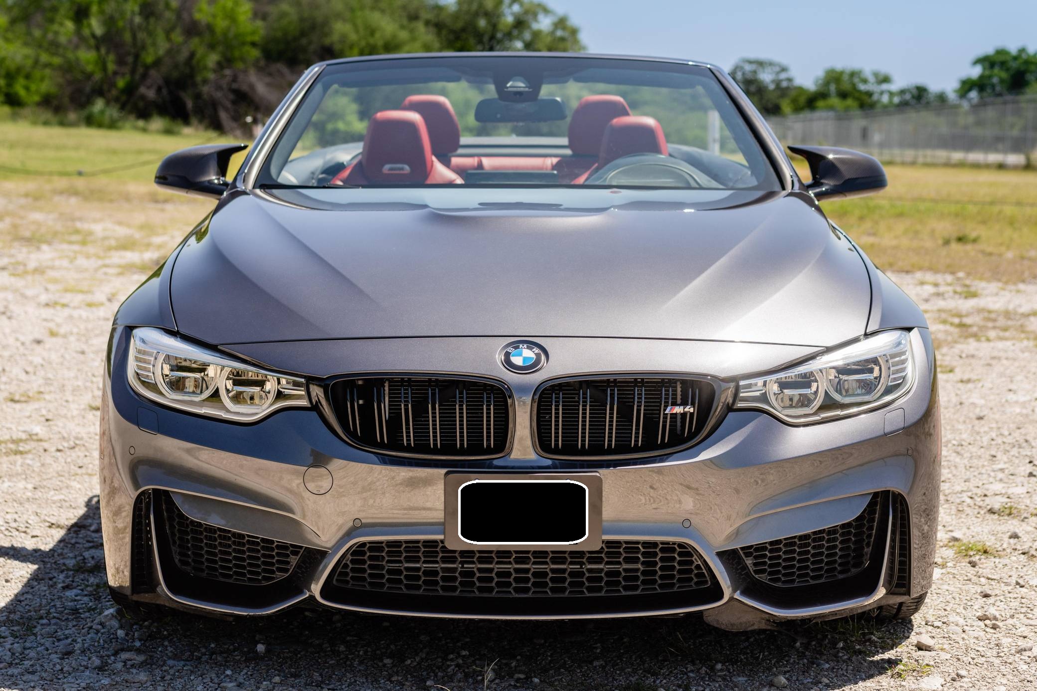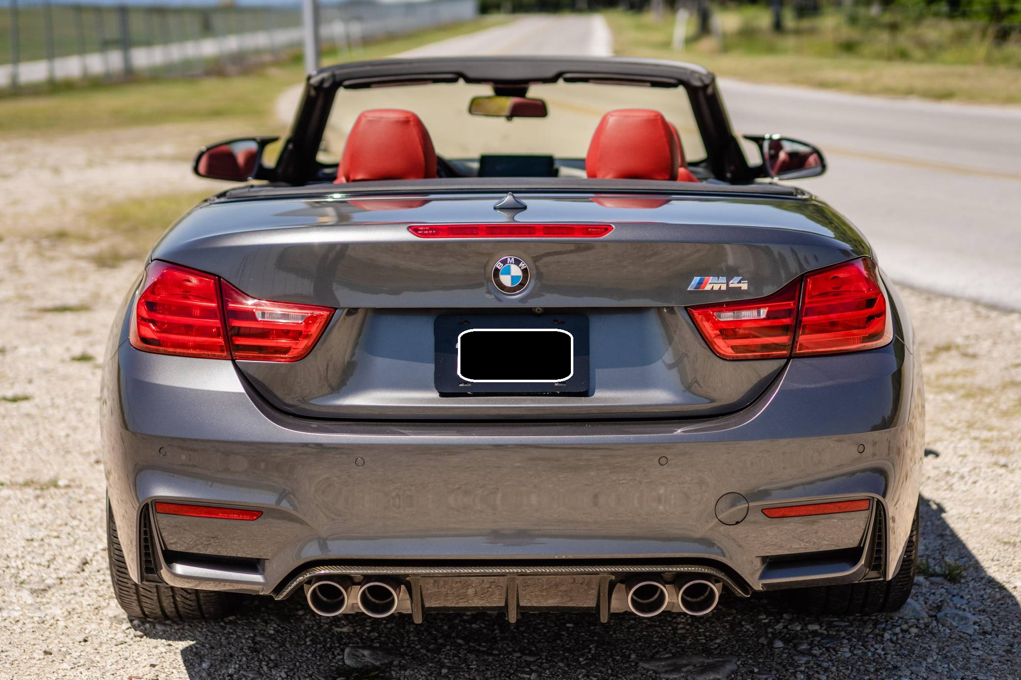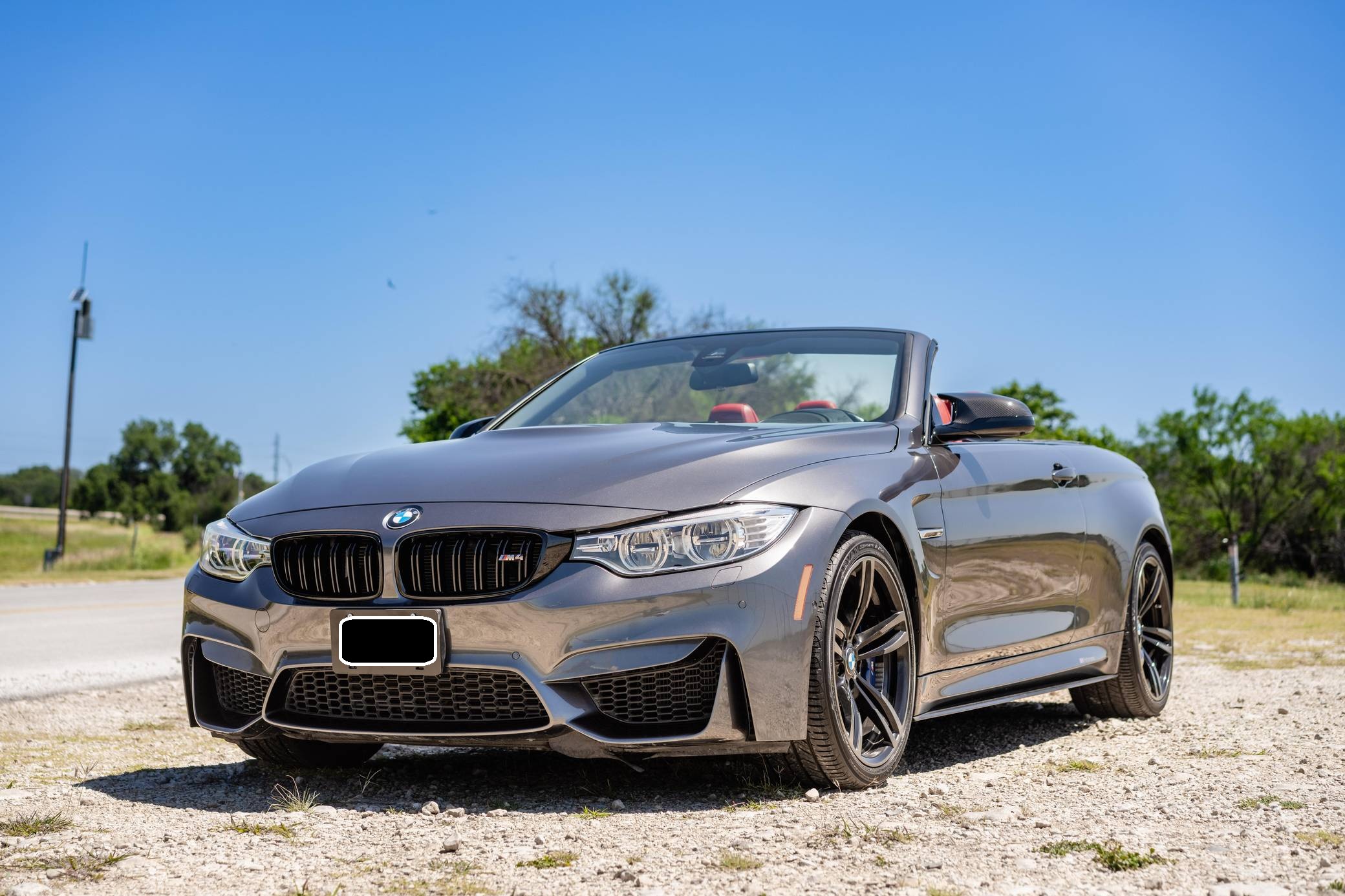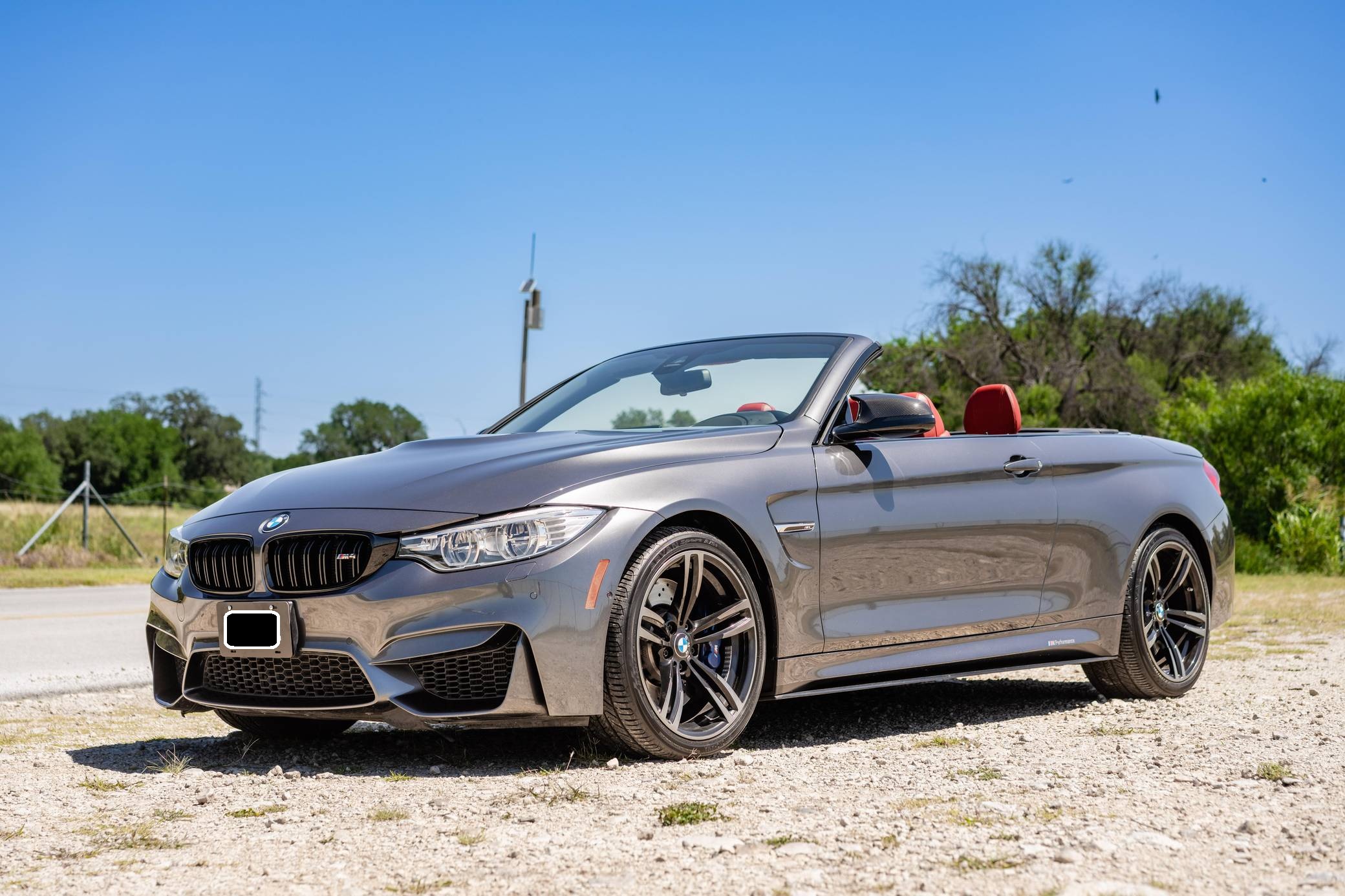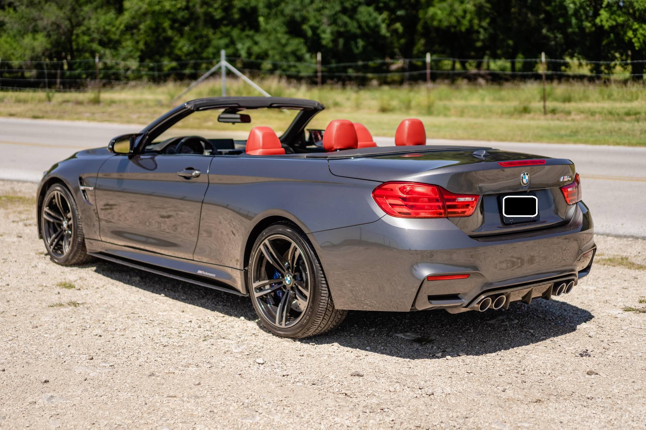2016 BMW M4 Convertible, finished in Mineral Gray Metallic with a body-colored power hardtop and a Sakhir Orange and black interior. This BMW's odometer displays about 19,000 miles. It's equipped with the Driver Assistance Plus, Executive, and Lighting packages, 19-inch "Style 437M" wheels, black kidney grilles, carbon fiber door mirror caps, a power-operated hardtop, carbon fiber interior trim, heated and power-adjustable front seats, a wind deflector, a Harman Kardon surround sound system, and a navigation system, among other features. The seller reports no modifications. 2015 was the first model year for the M4, which took the torch from the two-door M3. BMW surfed the downsizing wave sweeping across the industry by replacing the naturally-aspirated V8 with a twin-turbocharged straight-6, and a significant torque increase accompanied the new engine. Chopping off two cylinders and replacing metal bits with carbon fiber components allowed BMW to make the M4 up to 176 pounds lighter than the M3 it replaced. Production ended in 2020. Power comes from a 3. 0-liter turbocharged straight-6, rated at 425 horsepower and 406 lb-ft of torque. Called "S55" internally, it spins the rear wheels via a 7-speed automatic transmission.