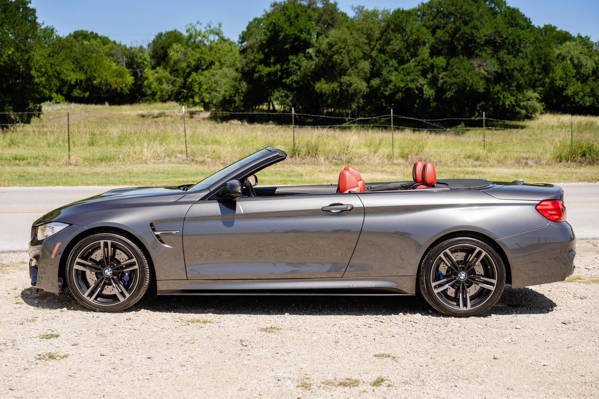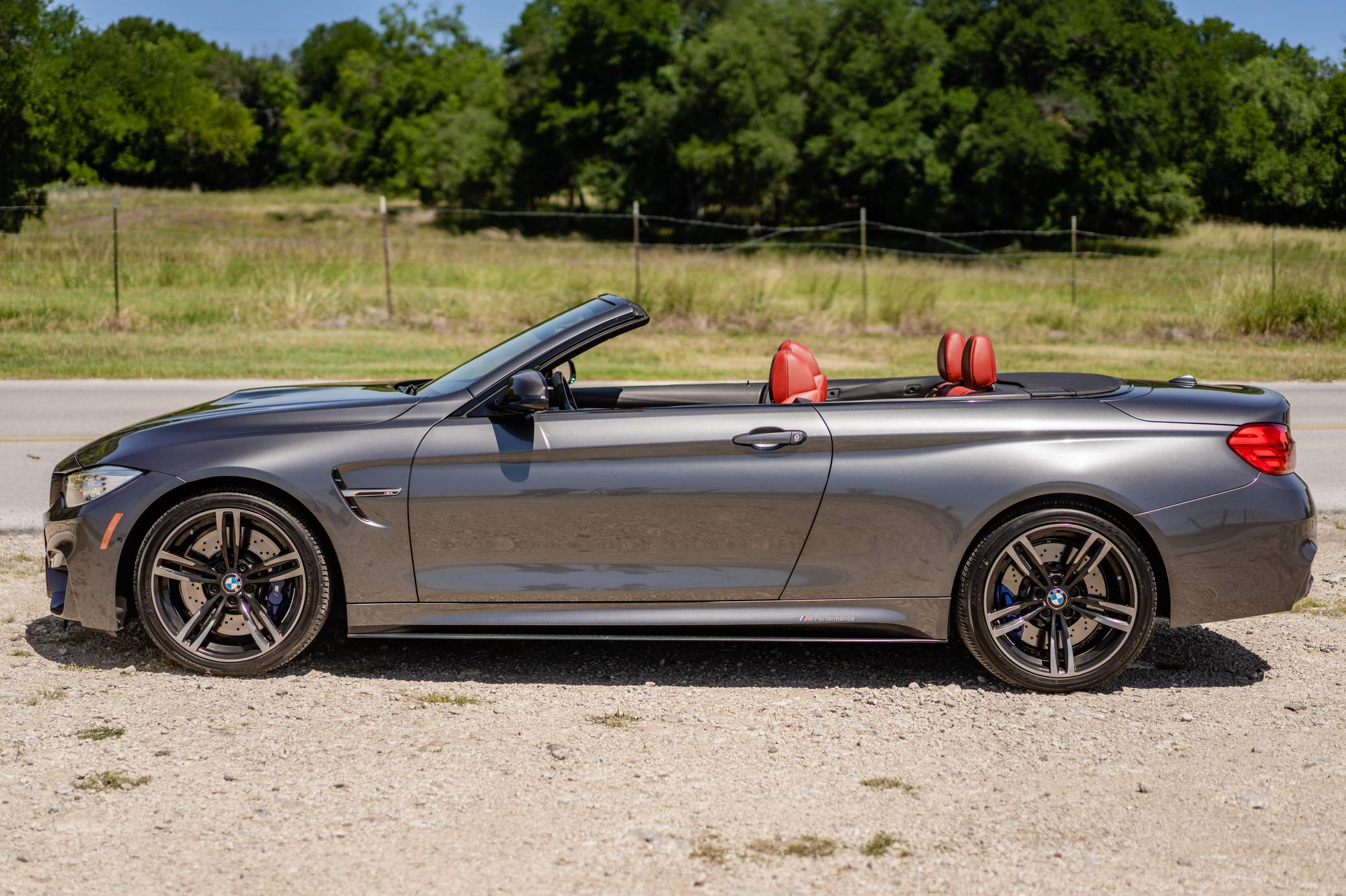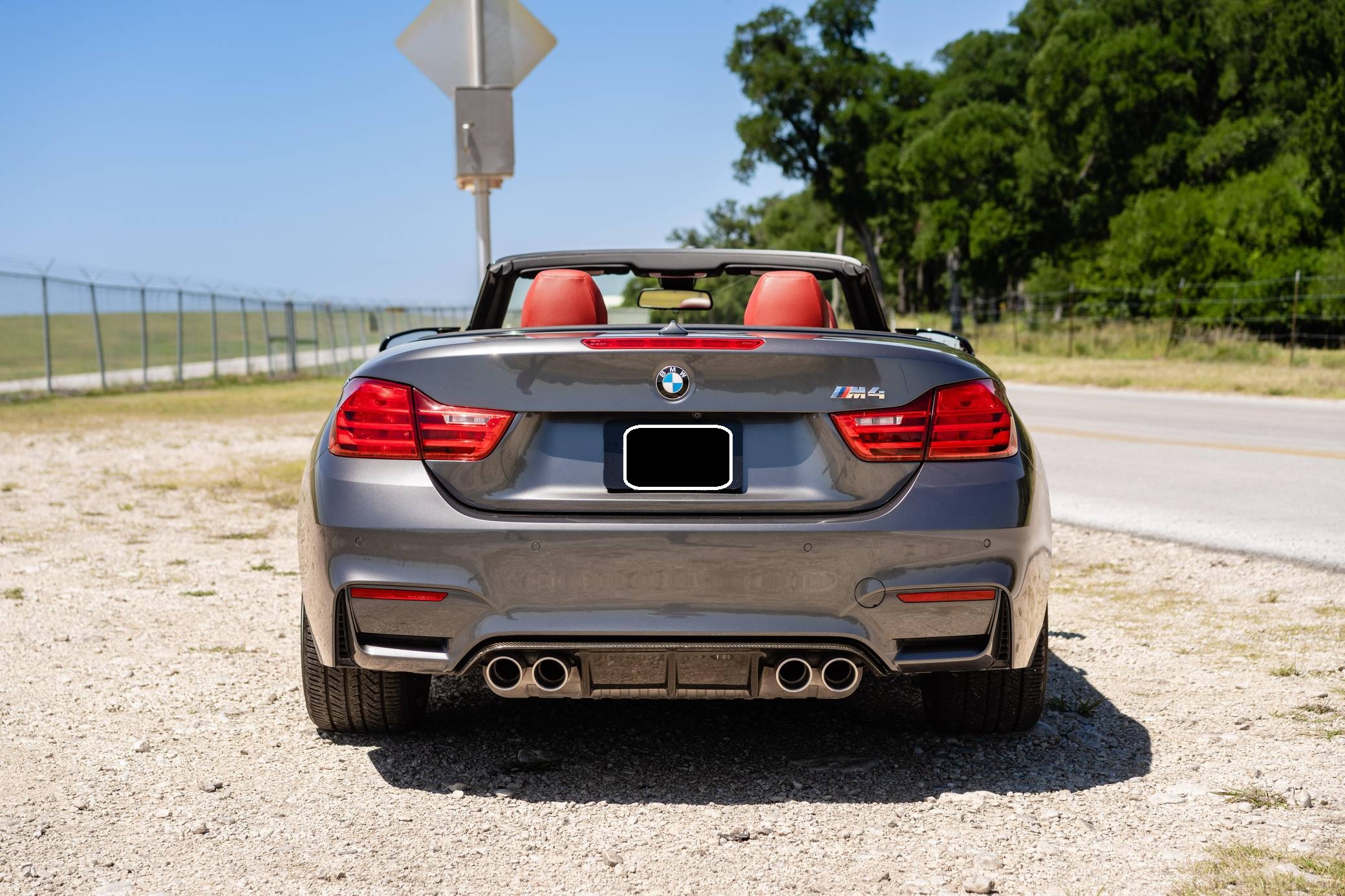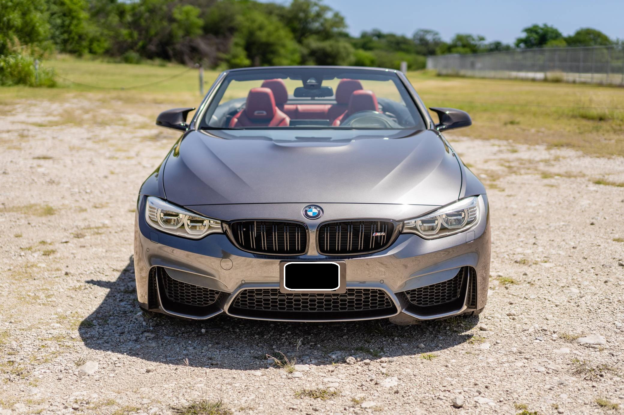 2016 BMW M4 Convertible, finished in Mineral Gray Metallic with a body-colored power hardtop and a Sakhir Orange and black interior. This BMW's odometer displays about 19,000 miles. It's equipped with the Driver Assistance Plus, Executive, and Lighting packages, 19-inch "Style 437M" wheels, black kidney grilles, carbon fiber door mirror caps, a power-operated hardtop, carbon fiber interior trim, heated and power-adjustable front seats, a wind deflector, a Harman Kardon surround sound system, and a navigation system, among other features. The seller reports no modifications. 2015 was the first model year for the M4, which took the torch from the two-door M3. BMW surfed the downsizing wave sweeping across the industry by replacing the naturally-aspirated V8 with a twin-turbocharged straight-6, and a significant torque increase accompanied the new engine. Chopping off two cylinders and replacing metal bits with carbon fiber components allowed BMW to make the M4 up to 176 pounds lighter than the M3 it replaced. Production ended in 2020. Power comes from a 3. 0-liter turbocharged straight-6, rated at 425 horsepower and 406 lb-ft of torque. Called "S55" internally, it spins the rear wheels via a 7-speed automatic transmission.