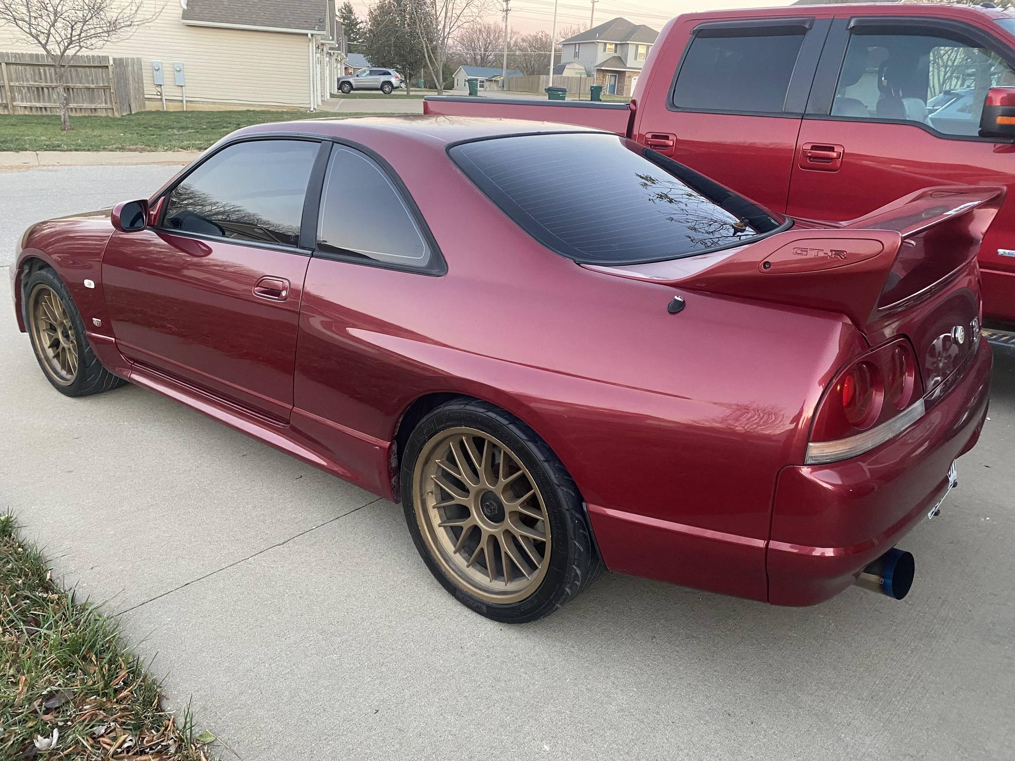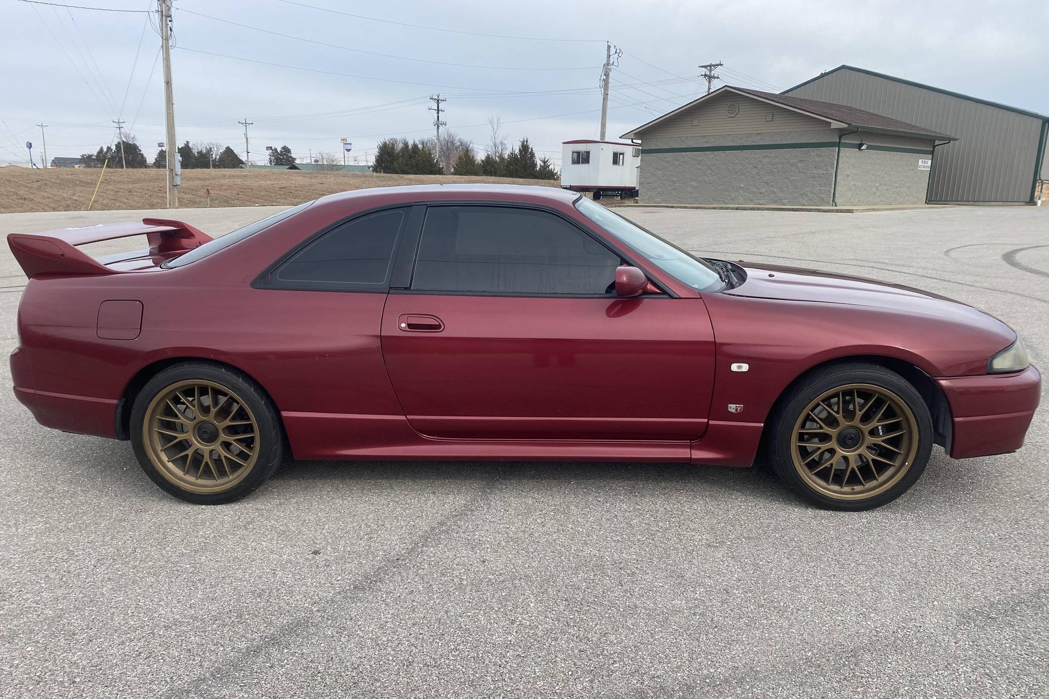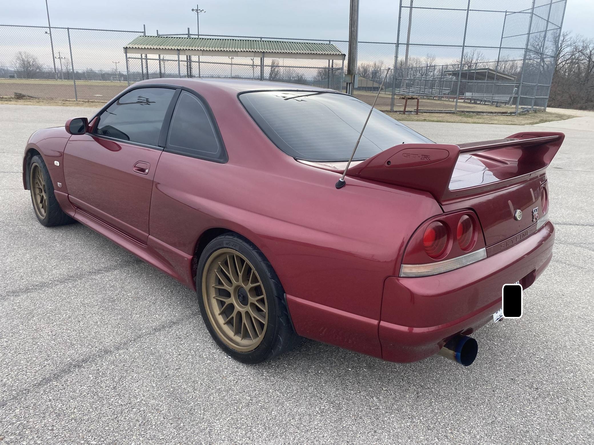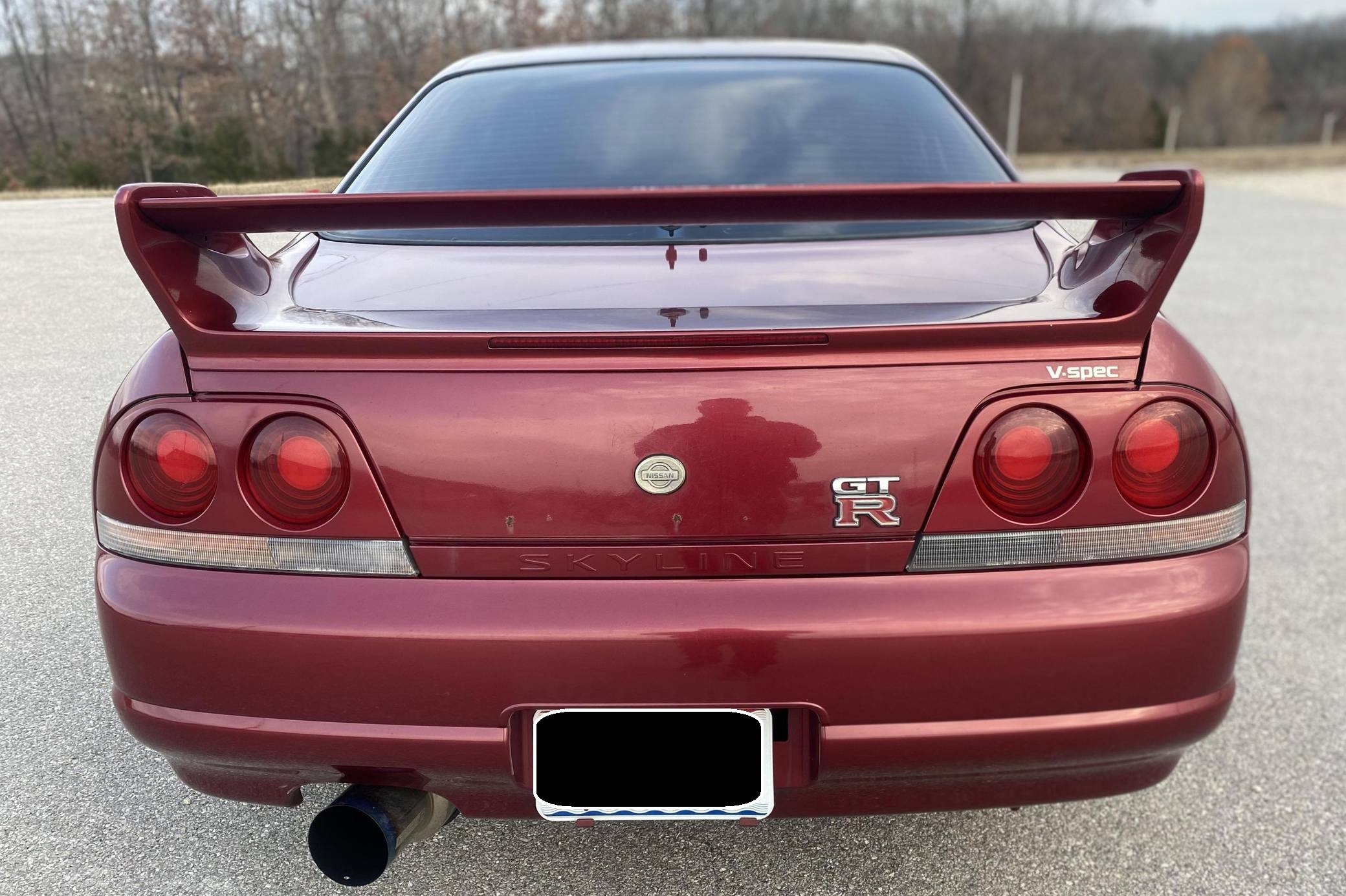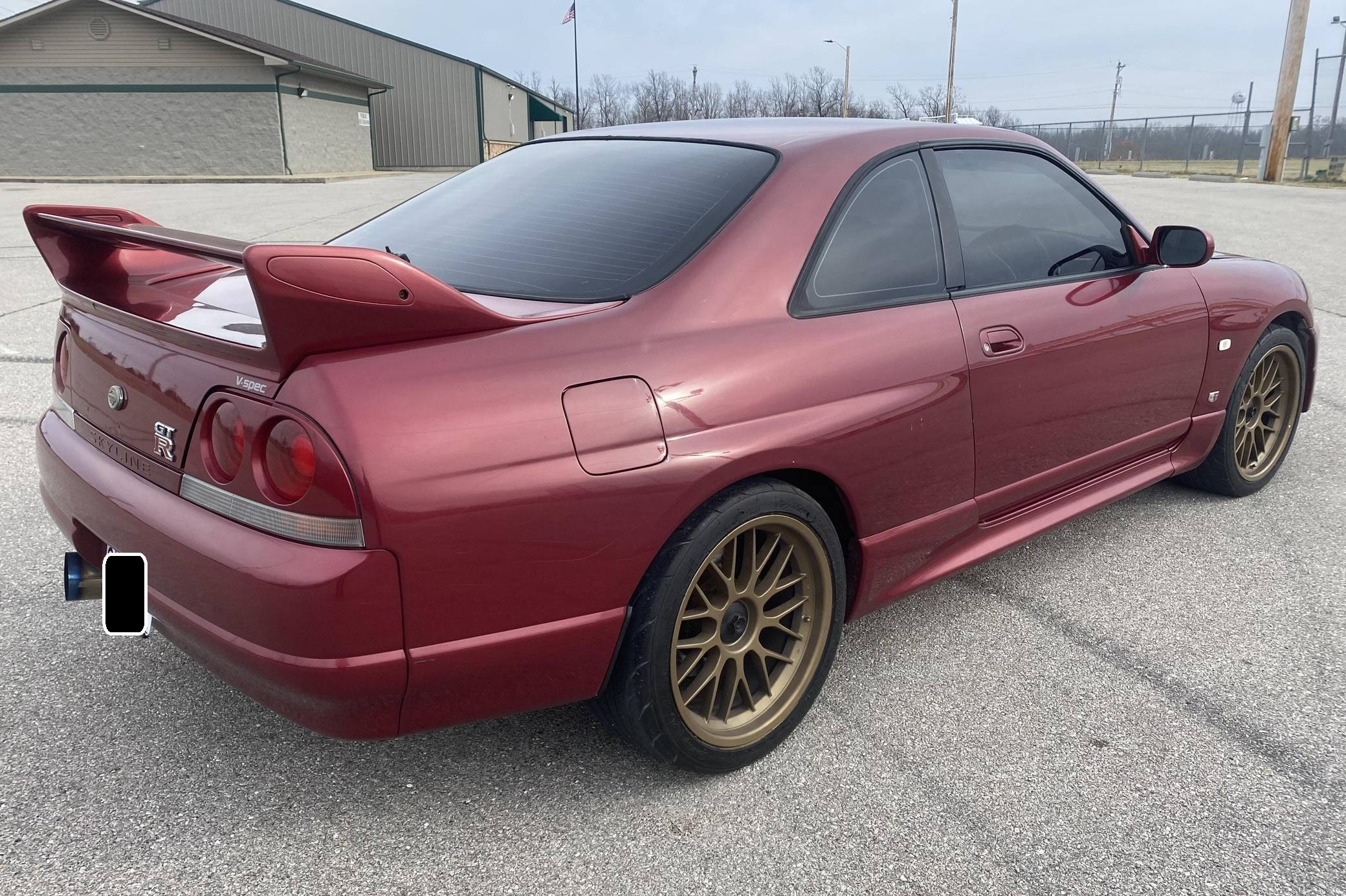 THIS. . . is a 1995 Nissan Skyline GT-R V-Spec, finished in red with a grey interior. Said to be imported from Japan in 2020, it's equipped with a metric instrument cluster, and the odometer shows about 120,200 kilometers, which represents approximately 74,700 miles. This Skyline GT-R comes equipped with a 5-speed manual transmission. Factory equipment includes Brembo brake calipers, a HICAS rear-wheel steering system, fog lights, cloth upholstery, and automatic climate control, among others listed below. Modifications reported by the seller include 18-inch Interspeed wheels, an A'PEXi Apex power commander, a Power Enterprise boost controller and gauge, a Power Enterprise radiator, a Power Enterprise intake, Öhlins suspension, HKS intercooler piping, a Tomei exhaust, aftermarket fog lights, a Nismo shift knob, a MOMO steering wheel, and a Kenwood head unit. The ninth-generation Skyline was introduced in 1993, and the range-topping GT-R model was renowned for its impressive power and exceptional handling, aided by its all-wheel drive system and available rear-wheel steering. Power comes from a 2. 6-liter twin-turbocharged straight-6, rated at 276 horsepower and 271 lb-ft of torque. This engine may be making more power as a result of the modifications, though a dyno sheet is not included. It spins the four wheels via a 5-speed manual transmission and ATTESSA all-wheel drive system.