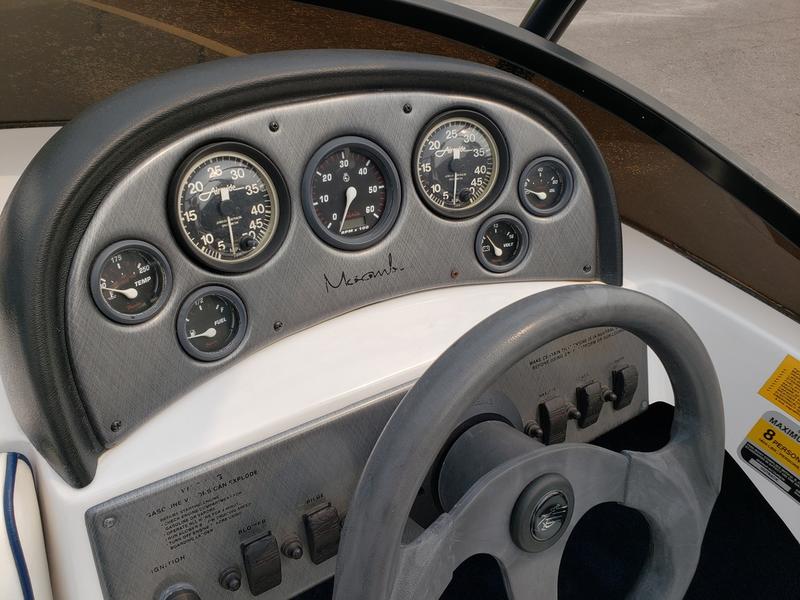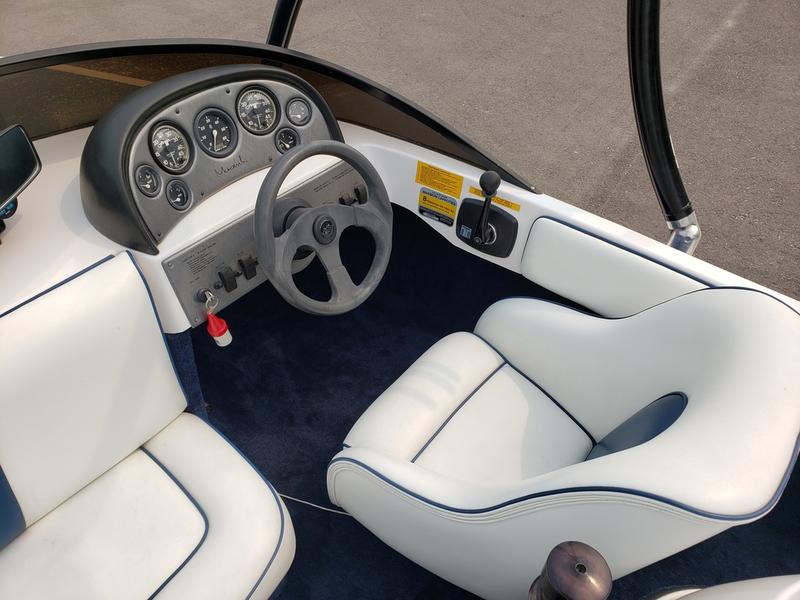 Very cool and unique little ski boat. Navy and white exterior, navy and white interior, and navy carpet flooring. 325 HP Indmar engine, tower with tower speakers, sound system, small swim platform, closed bow, beautiful condition, Gulfside single axle trailer.