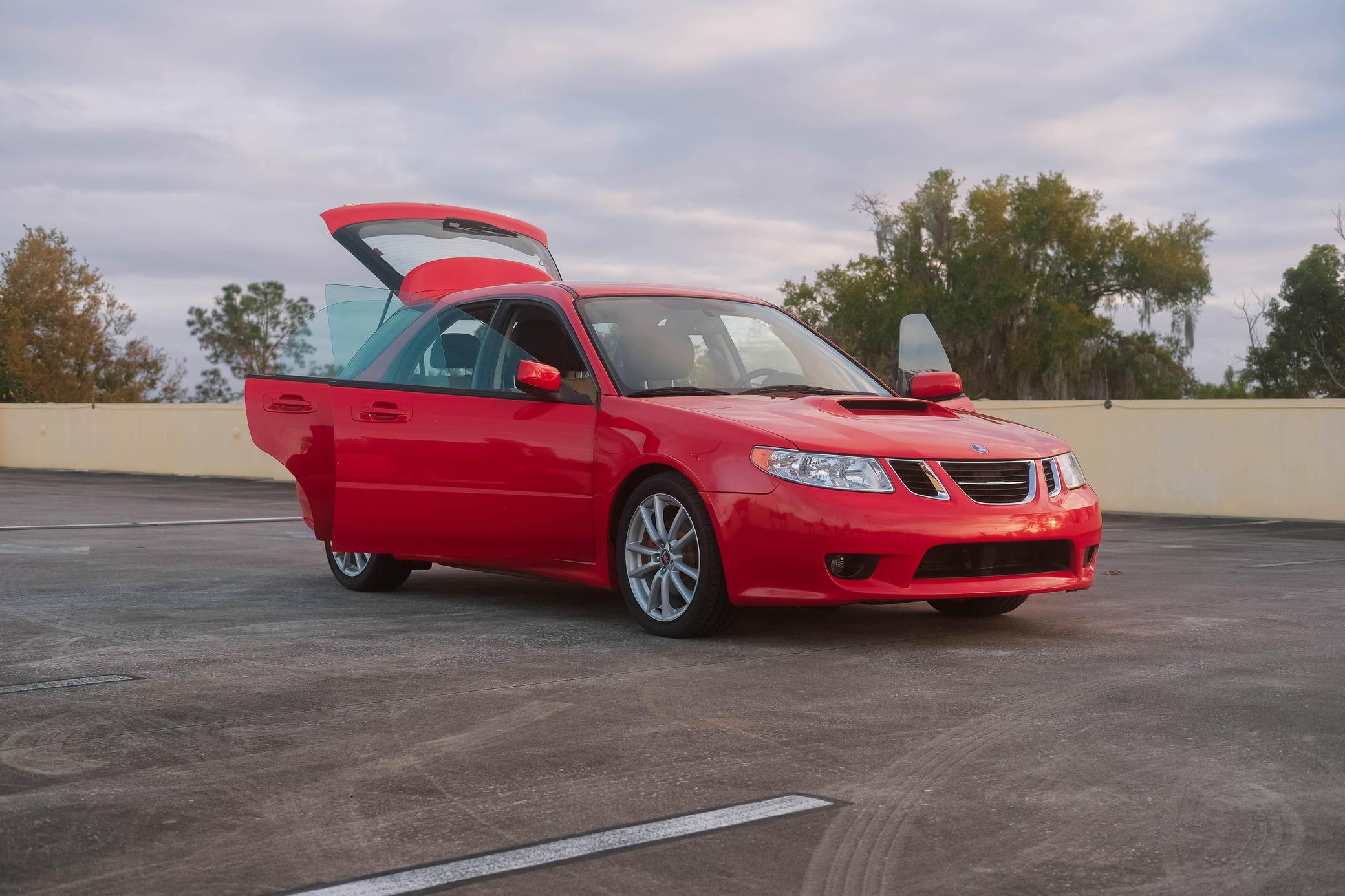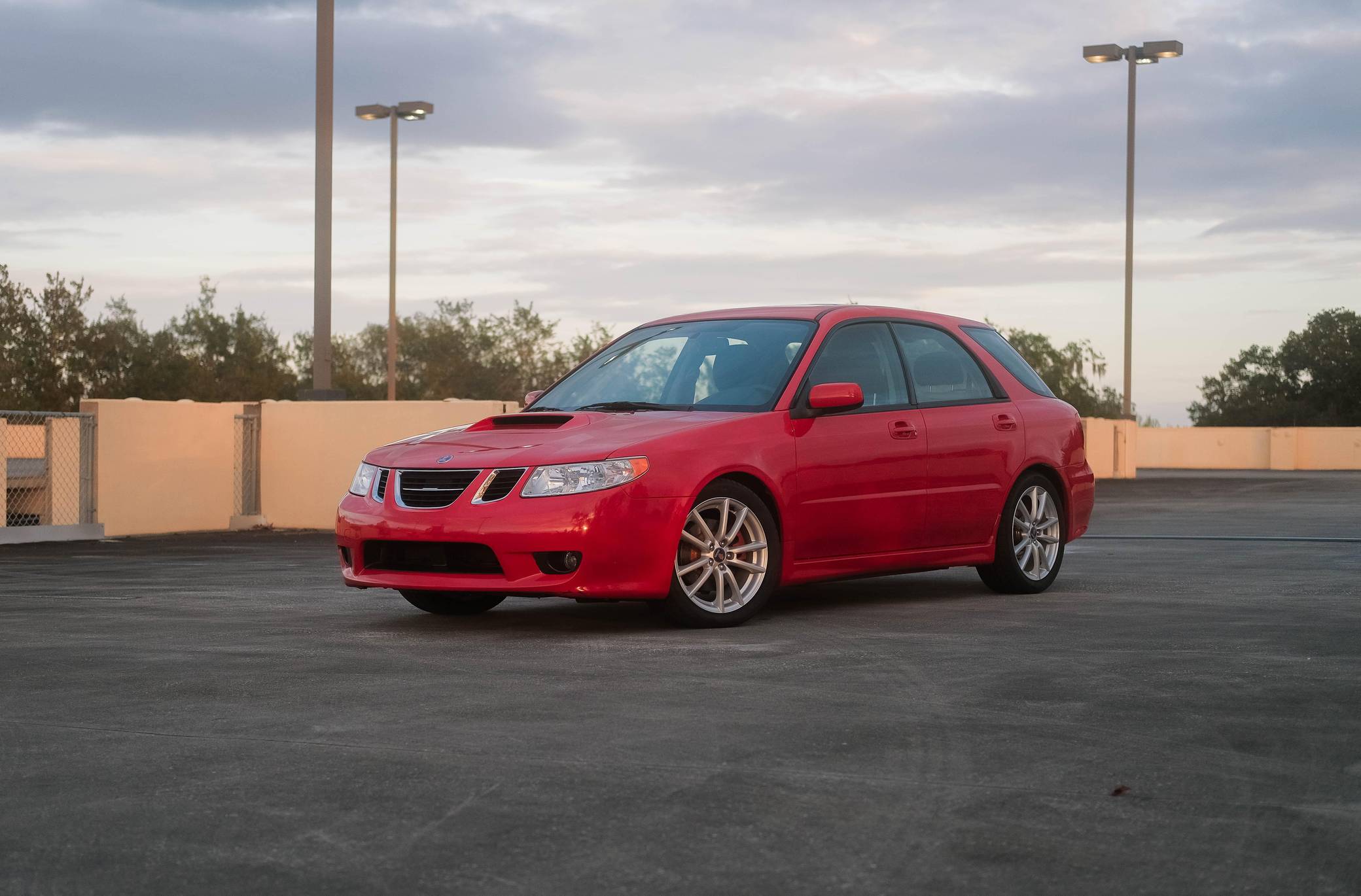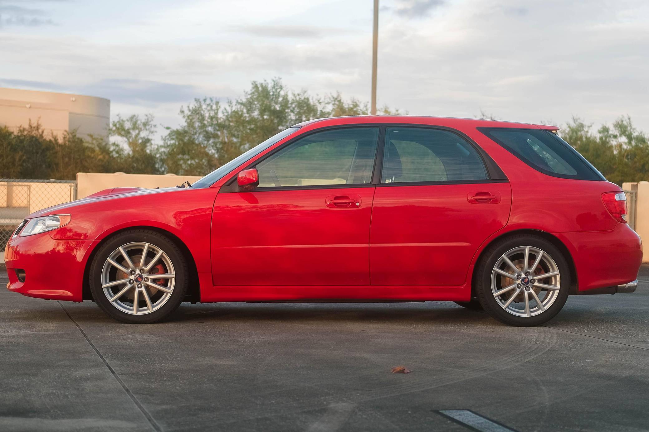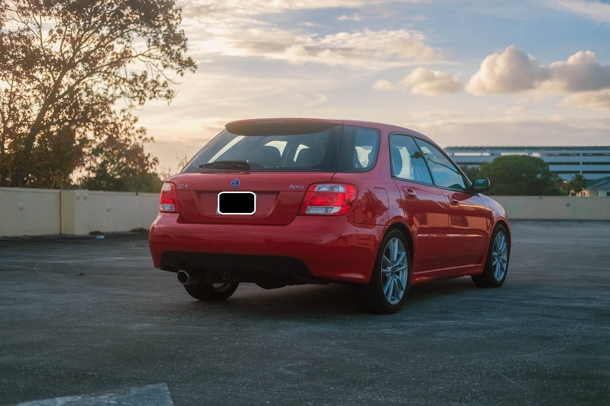 2006 Saab 9-2X Aero, finished in Brilliant Red with a Black and Parchment interior. This 9-2X is equipped with a 6-speed manual transmission swapped from the Subaru WRX STI. Modifications reported by the seller include a 6-speed manual transmission, drive shaft, pink springs, control arms, cat-back exhaust, and rear diffuser all from a 2005 Subaru WRX STI. Additional modifications include a Subaru H6 rear brake conversion, Driveshaft Shop conversion axles, a Spiider DCCD, KYB shocks, Whiteline sway bars, an Exedy clutch and flywheel, and more as detailed below. Service documents in the photo gallery note that the timing belt and water pump were replaced in September 2021 at 19,000 miles. Launched for the 2005 model year, the 9-2X was a badge-engineered Subaru Impreza created to give Saab an entry into the premium small car segment. Linear models (later called 2. 5i) were closely related to the Impreza, but the range-topping Aero was a WRX in Swedish clothes. Production ended in 2006, and Saab chose not to replace the hatchback. Saab sold 10,346 units of the 9-2X for 2005 and 2006, according to forum Saab92x. 1,832 were 2006s, and 235 of those were Aero models with a manual transmission. Power for this 9-2X comes from a turbocharged 2. 5-liter flat-4, rated at 230 horsepower and 235 lb-ft. of torque from the factory. Due to the modifications performed to this 9-2X, it may produce more power, but a dyno sheet was not provided to confirm. Output is sent to all four wheels via a 6-speed manual transmission and a Subaru-developed permanent all-wheel-drive system.