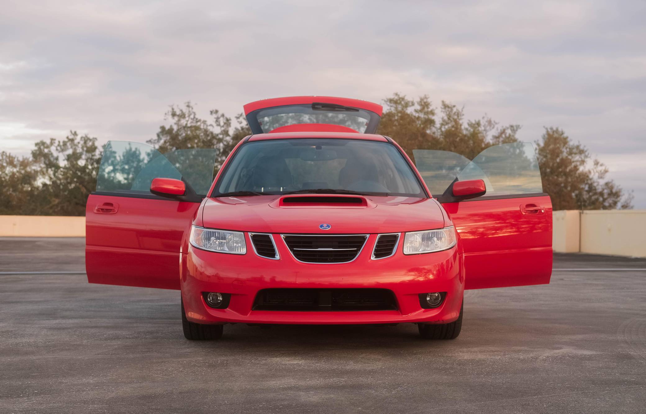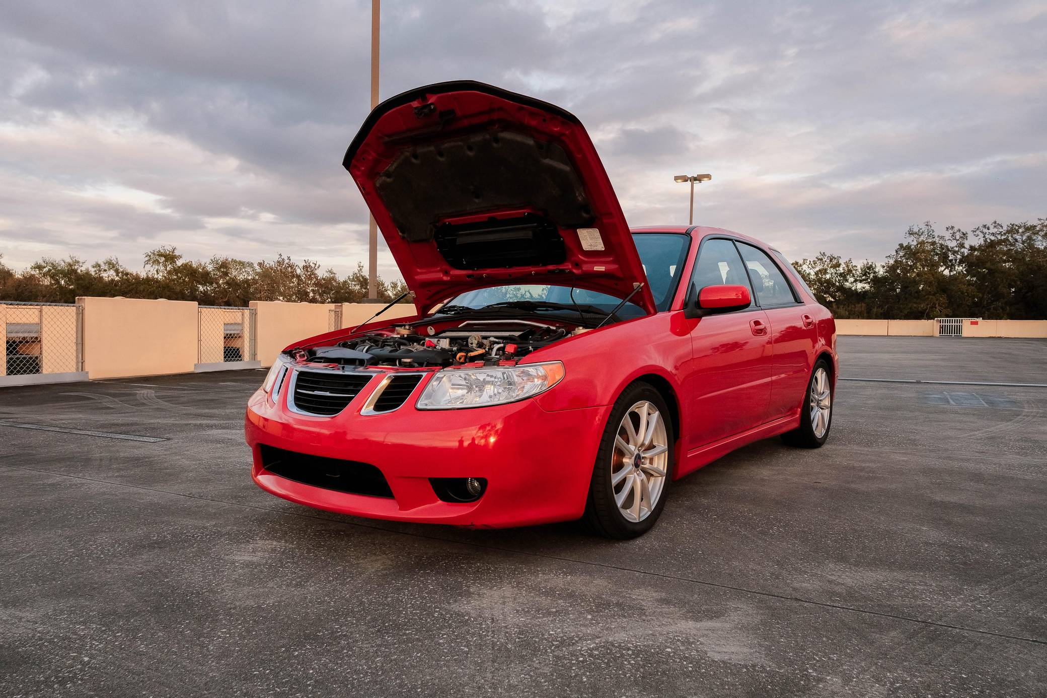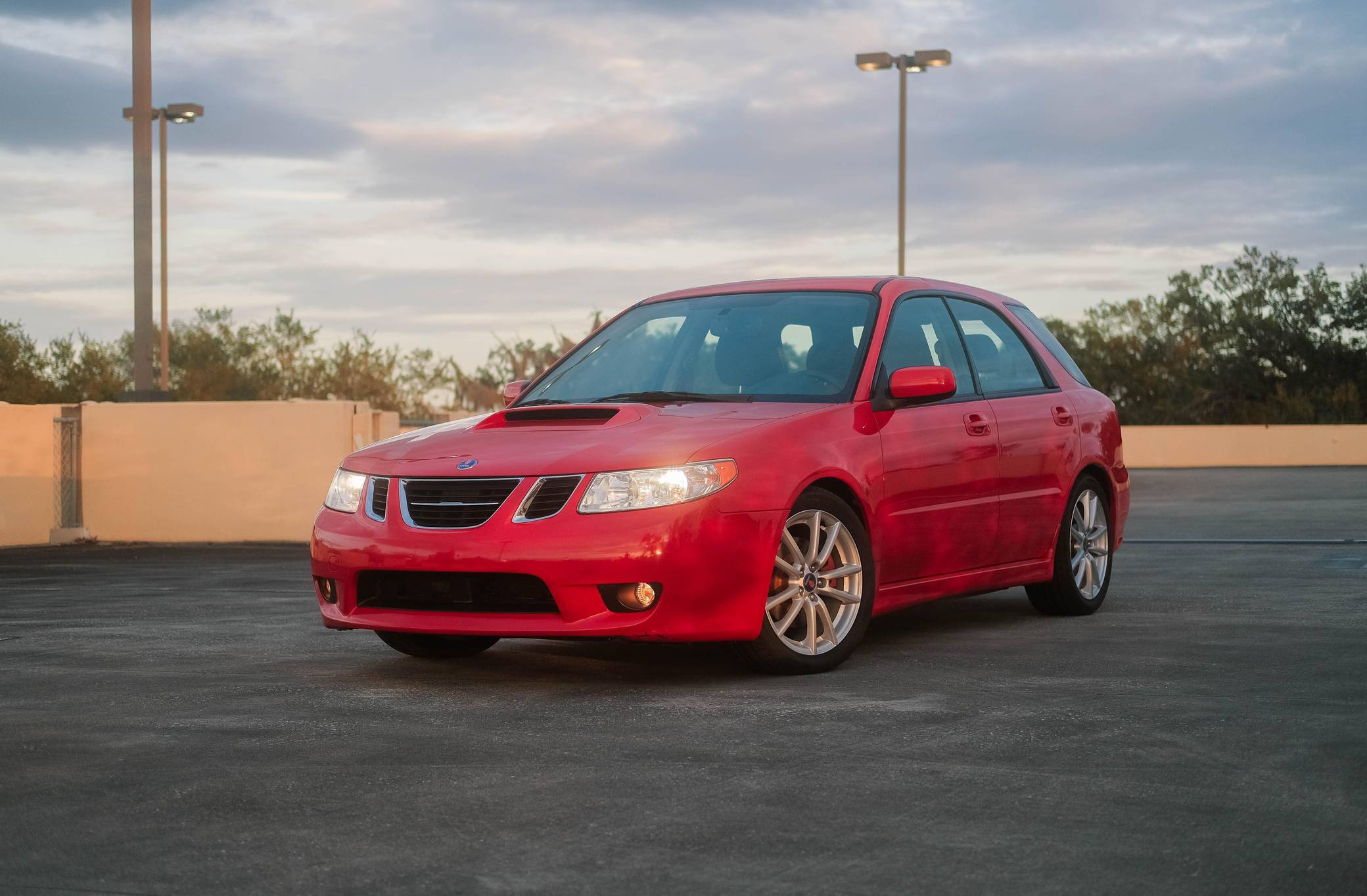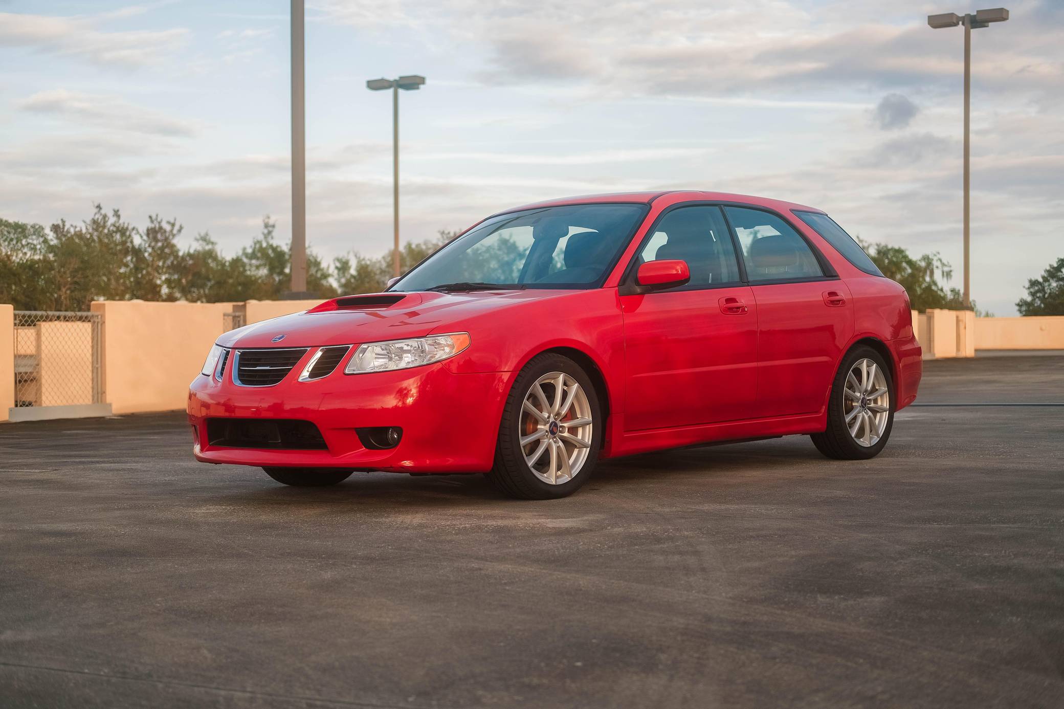2006 Saab 9-2X Aero, finished in Brilliant Red with a Black and Parchment interior. This 9-2X is equipped with a 6-speed manual transmission swapped from the Subaru WRX STI. Modifications reported by the seller include a 6-speed manual transmission, drive shaft, pink springs, control arms, cat-back exhaust, and rear diffuser all from a 2005 Subaru WRX STI. Additional modifications include a Subaru H6 rear brake conversion, Driveshaft Shop conversion axles, a Spiider DCCD, KYB shocks, Whiteline sway bars, an Exedy clutch and flywheel, and more as detailed below. Service documents in the photo gallery note that the timing belt and water pump were replaced in September 2021 at 19,000 miles. Launched for the 2005 model year, the 9-2X was a badge-engineered Subaru Impreza created to give Saab an entry into the premium small car segment. Linear models (later called 2. 5i) were closely related to the Impreza, but the range-topping Aero was a WRX in Swedish clothes. Production ended in 2006, and Saab chose not to replace the hatchback. Saab sold 10,346 units of the 9-2X for 2005 and 2006, according to forum Saab92x. 1,832 were 2006s, and 235 of those were Aero models with a manual transmission. Power for this 9-2X comes from a turbocharged 2. 5-liter flat-4, rated at 230 horsepower and 235 lb-ft. of torque from the factory. Due to the modifications performed to this 9-2X, it may produce more power, but a dyno sheet was not provided to confirm. Output is sent to all four wheels via a 6-speed manual transmission and a Subaru-developed permanent all-wheel-drive system.