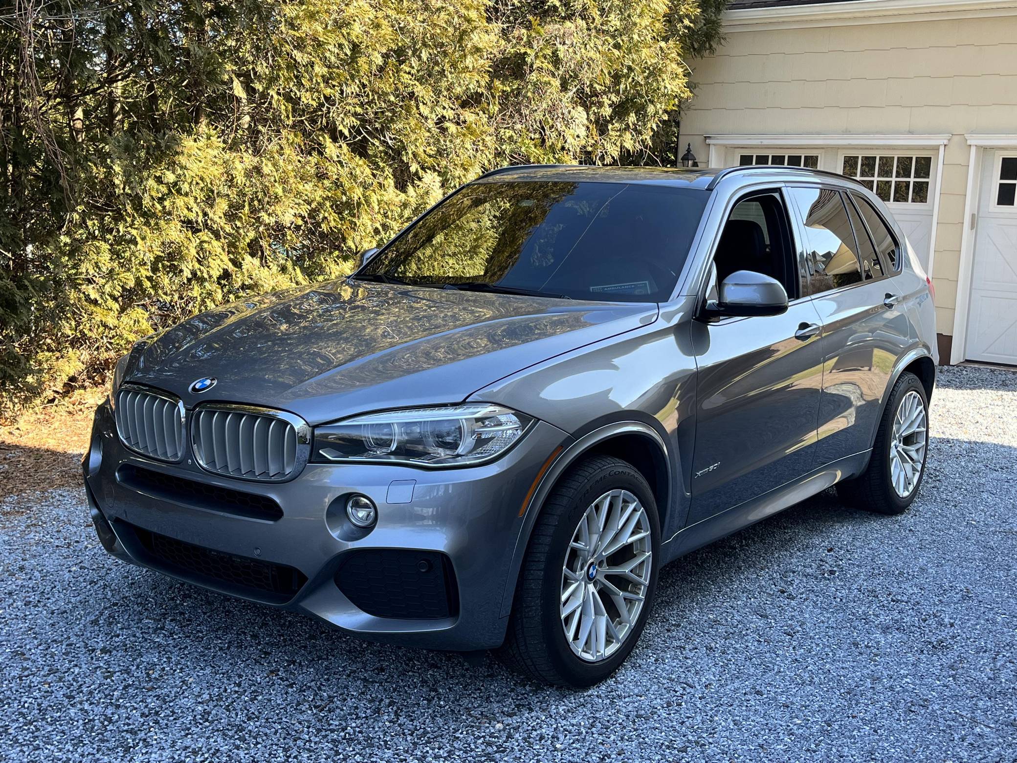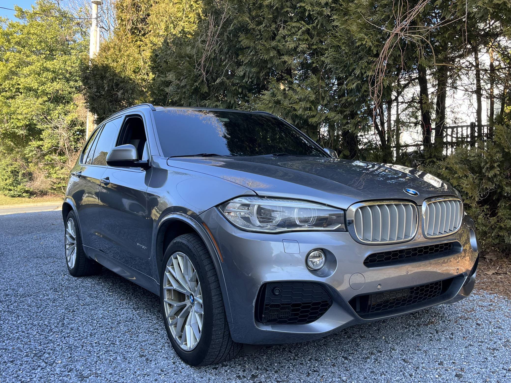 2014 BMW X5 xDrive50i, finished in Space Grey Metallic with a black interior. According to the build sheet provided in the gallery, factory equipment includes the M Sport, Executive, Cold Weather, and Driver Assistance Plus packages, adaptive xenon headlights, a panoramic sunroof, heated comfort front seats, rear-door window sunshades, a Harman/Kardon sound system, and more as listed below. Modifications reported by the seller are limited to 20-inch wheels and tinted windows. Called F15 internally, BMW's third-generation X5 rode on an updated version of its predecessor's underpinnings, but it was slightly larger inside and out. Of course, it retained the unique split tailgate that provides a small bench seat. Inside, the technological leap included a widescreen display with the automaker's latest infotainment software. The F15 X5 model was produced until 2018 when the fourth-generation G05 X5 replaced it. Power comes from an "N63" twin-turbocharged 4. 4-liter V8, rated at 445 horsepower and 480 lb-ft of torque. Output is sent to all 4 wheels via an 8-speed automatic transmission and BMW’s permanent xDrive all-wheel drive system.