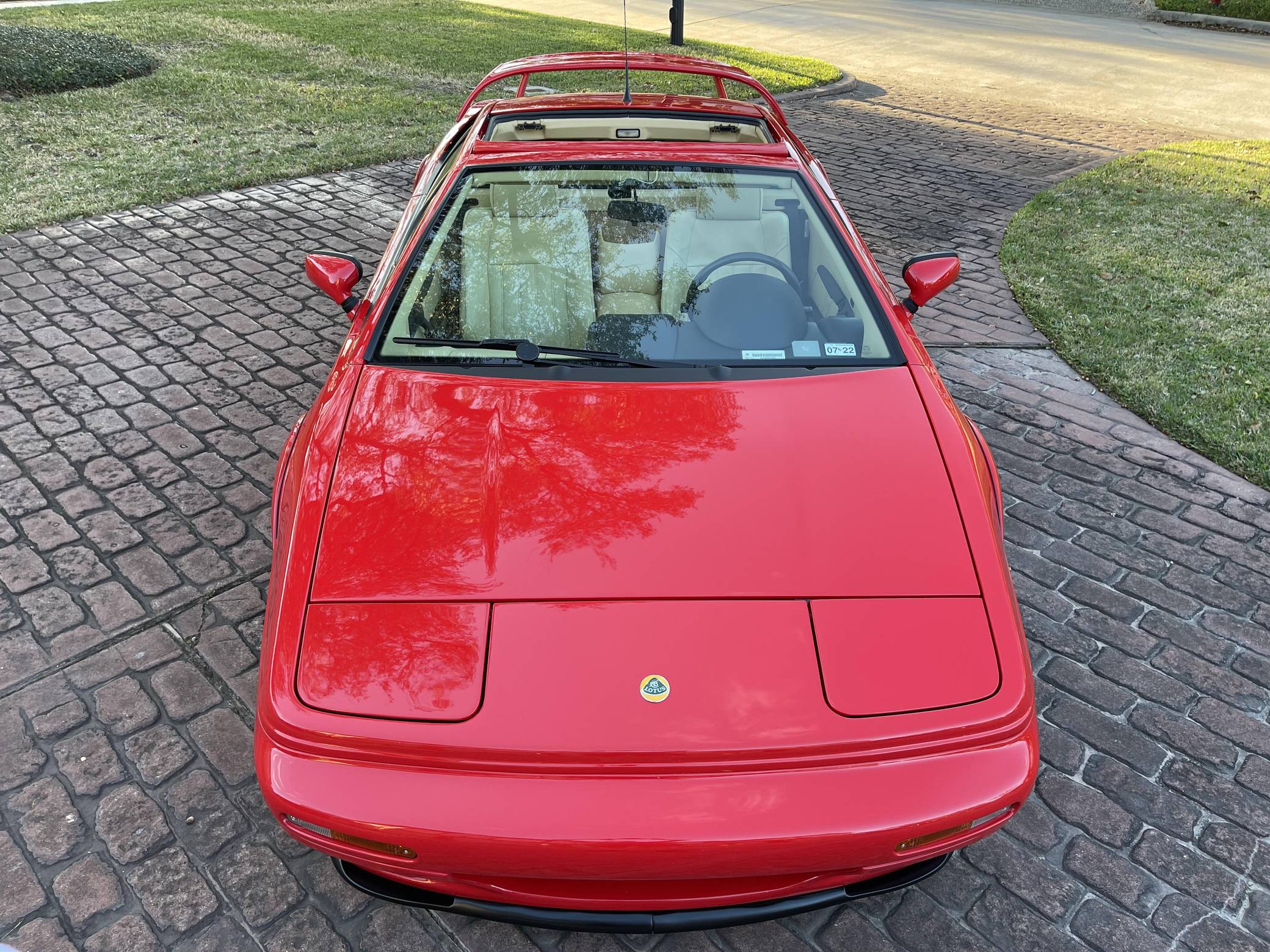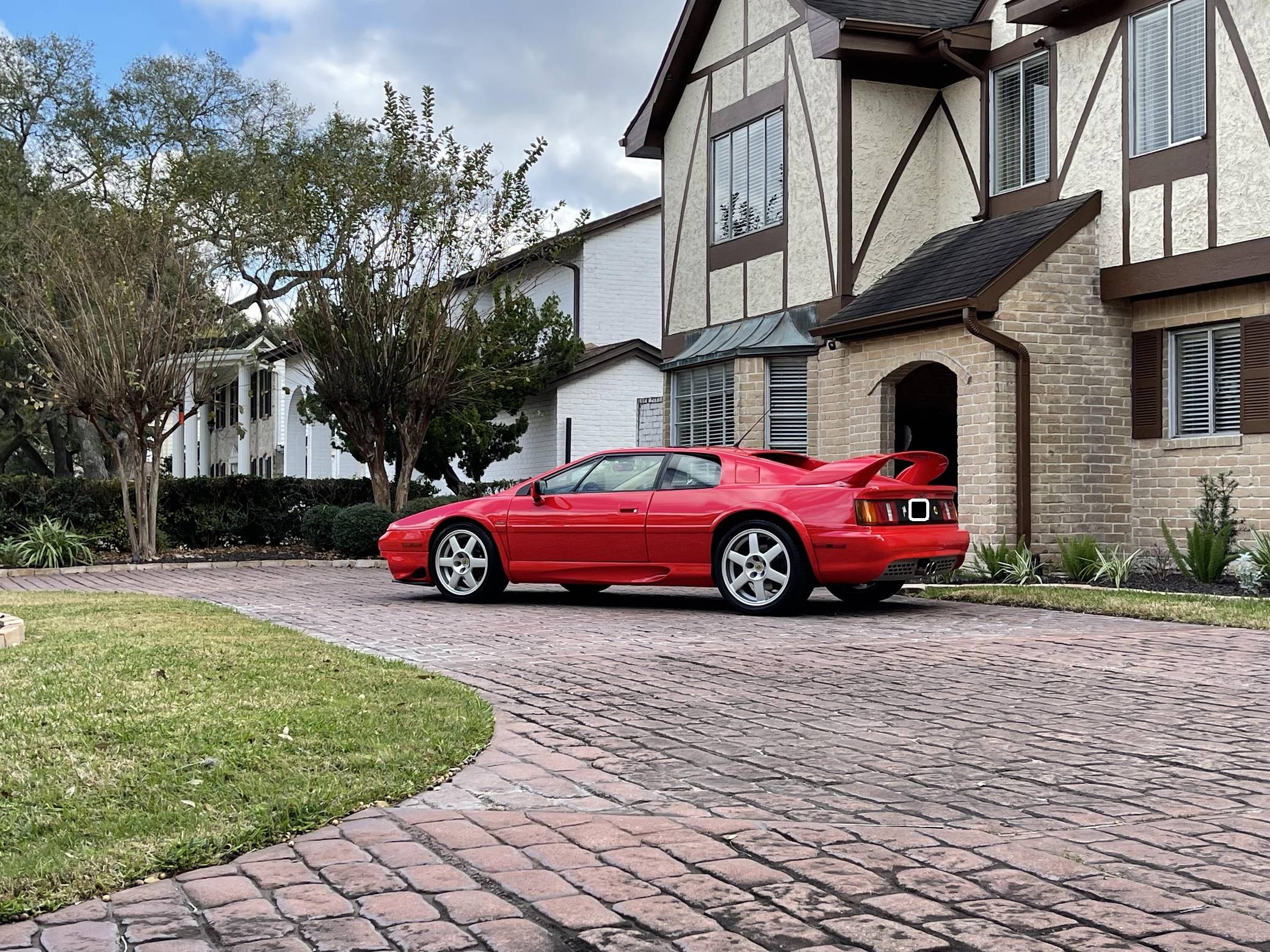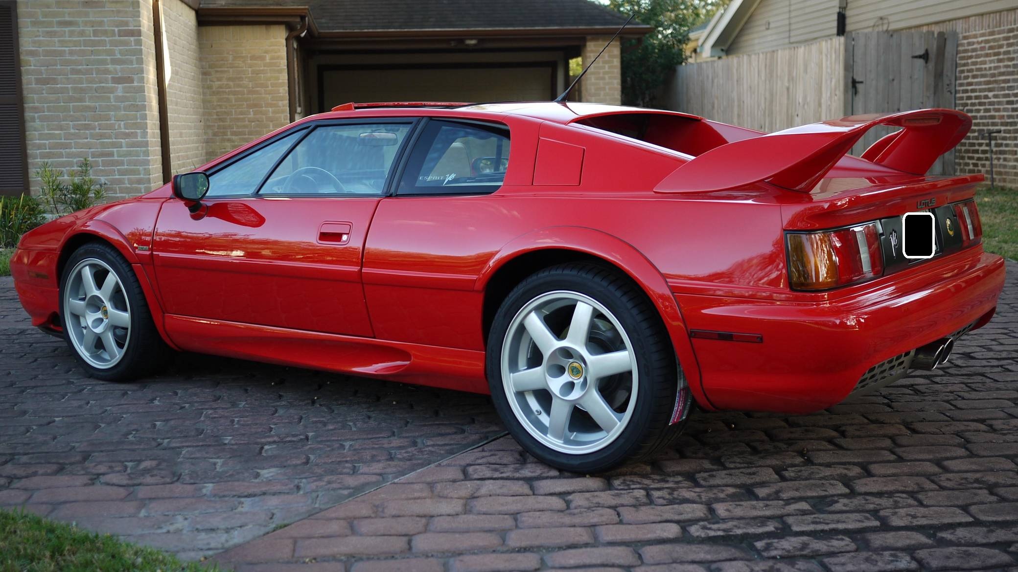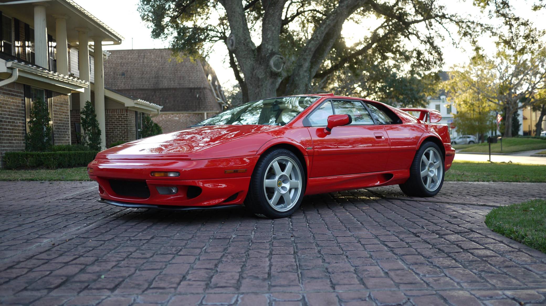 1998 Lotus Esprit V8, finished in Calypso Red with a Magnolia interior. The odometer currently indicates about 36,700 miles. It's equipped with dual fuel tanks, 17-inch front and 18-inch rear wheels, a removable glass roof panel, leather upholstery, sport seats, an Alpine sound system, and more as detailed below. Modifications reported by the seller include the installation of a factory center-outlet exhaust used on the 2004 Lotus Esprit V8 Final Edition, an upgraded three-core radiator with Spal fans, a PUK Red Race ECU upgrade (factory ECU chips included), and ductless ceramic brake pads. Lotus released the Esprit in 1976 and made numerous design and mechanical updates to the model over the next 28 years. Peter Stevens gave it a less angular exterior design in 1988, power steering was made standard in 1994, and the 1997 model year brought a twin-turbocharged V8 (the first in the Esprit's history) that was designed in-house. Production ended in 2004, and only a small handful were shipped to North America. Power comes from a 3. 5-liter twin-turbocharged V8, rated at 350 horsepower and 295 lb-ft of torque in stock form. Due to the modifications performed to this Esprit, it may make more power, but a dyno sheet was not provided to confirm. Mid-mounted, it spins the rear wheels via a 5-speed manual transaxle.
