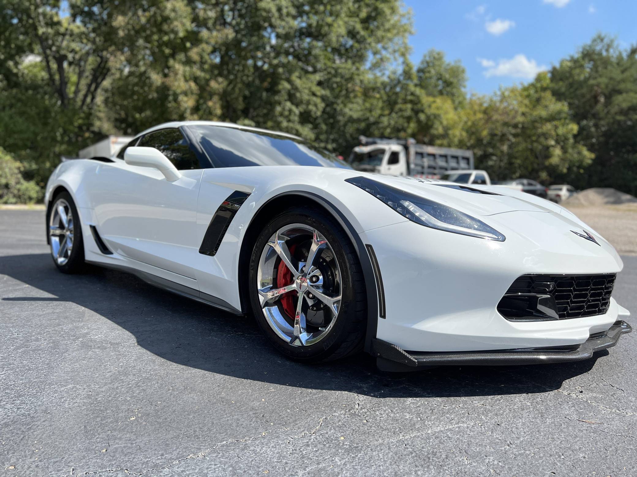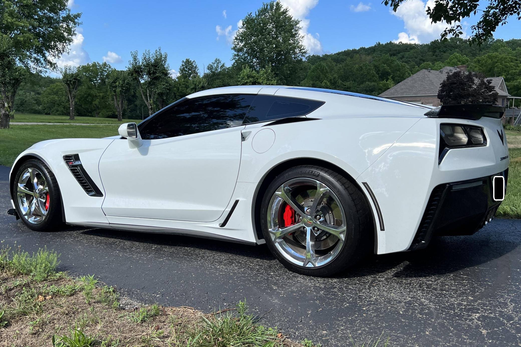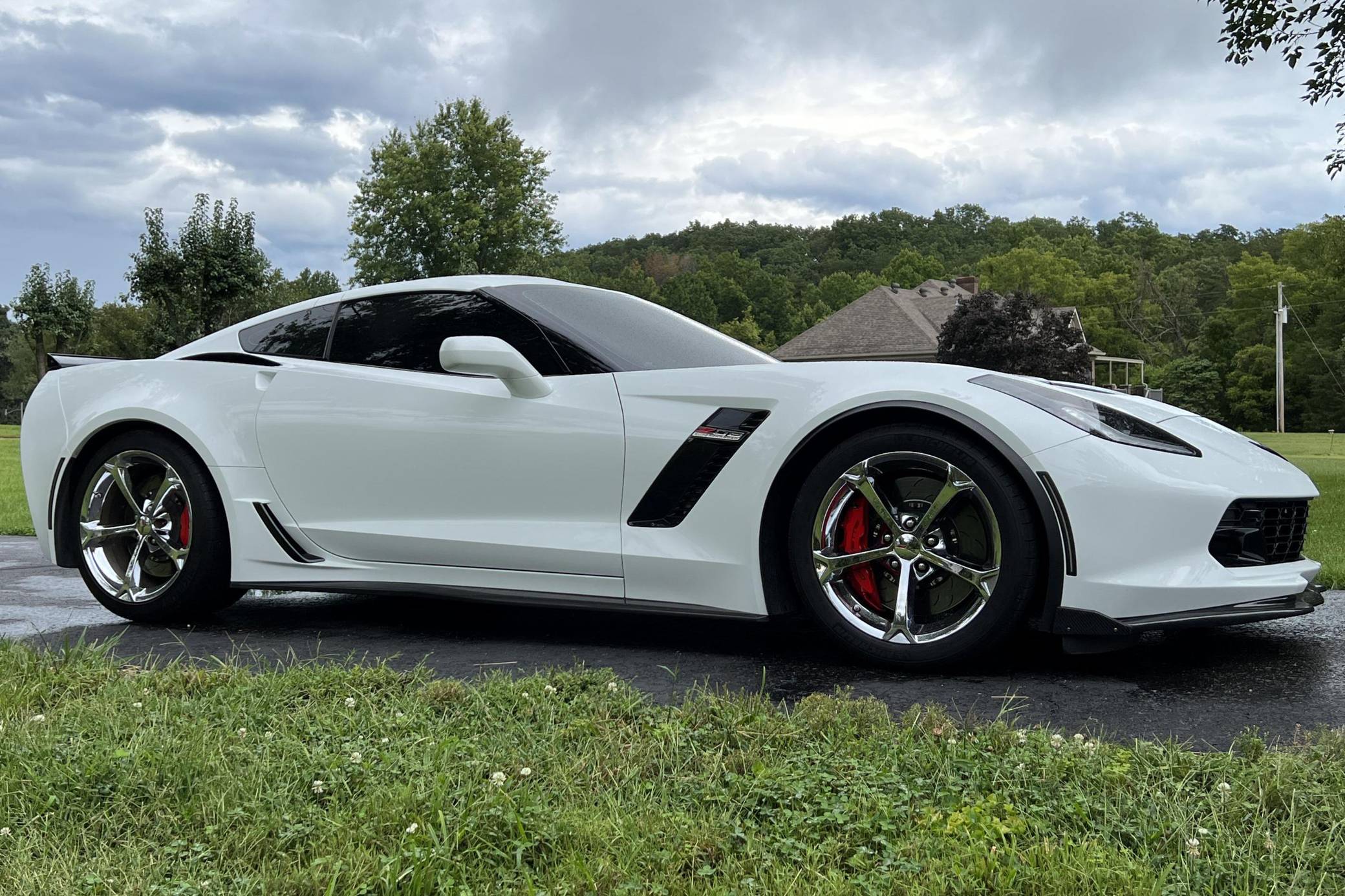 THIS. . . is a 2017 Chevrolet Corvette Z06 Coupe, finished in Arctic White with an Adrenaline Red interior. The odometer currently indicates approximately 43,200 miles. Factory equipment includes 19-inch front and 20-inch rear wheels, a performance exhaust system, an electronic limited-slip differential, Magnetic Selective Ride Control, a removable roof panel, leather upholstery, heated, ventilated, and power-adjustable GT seats, dual-zone automatic climate control, a 10-speaker Bose sound system, front curb view parking cameras, and a backup camera. Modifications reported by the seller are limited to an ECU tune, a vinyl hood decal, and tinted windows. Chevrolet launched the seventh-generation Corvette (colloquially called "C7") for the 2014 model year. Offered as a coupe and as a convertible, it offered a more user-friendly interior, a sharper-looking exterior design, and, significantly, the then-new "LT1" small-block V8. The Z06 model arrived for 2015 with a supercharged V8, carbon fiber body panels to keep weight in check, wider rear fenders, and several chassis upgrades. It was also the first Z06 available with an automatic transmission. Power comes from an "LT4" 6. 2-liter supercharged V8, rated at 650 horsepower and 650 lb-ft of torque. Output is sent to the rear wheels via an 8-speed automatic transmission.