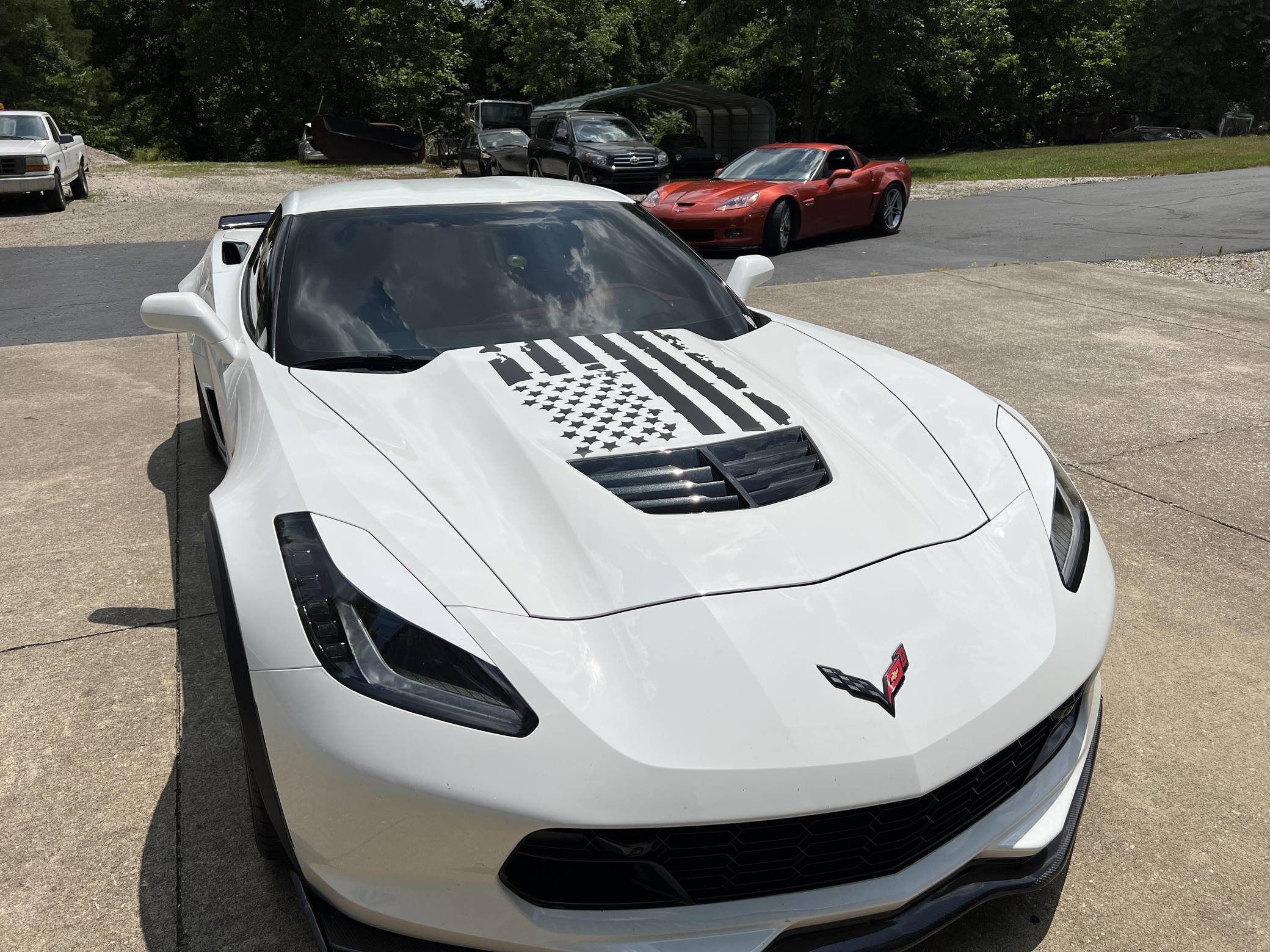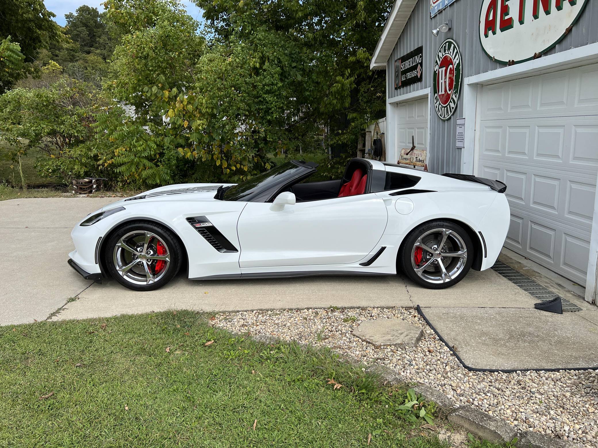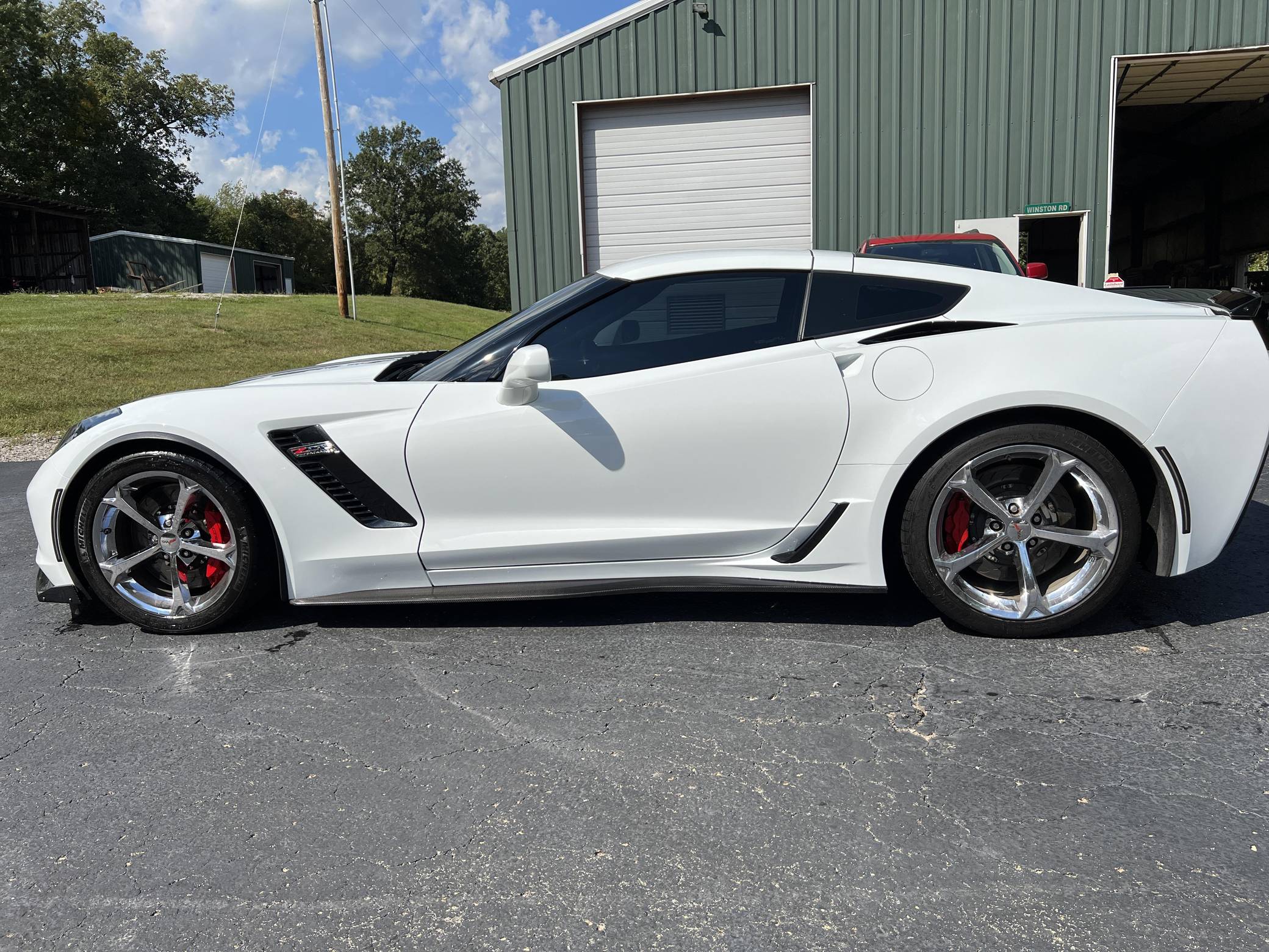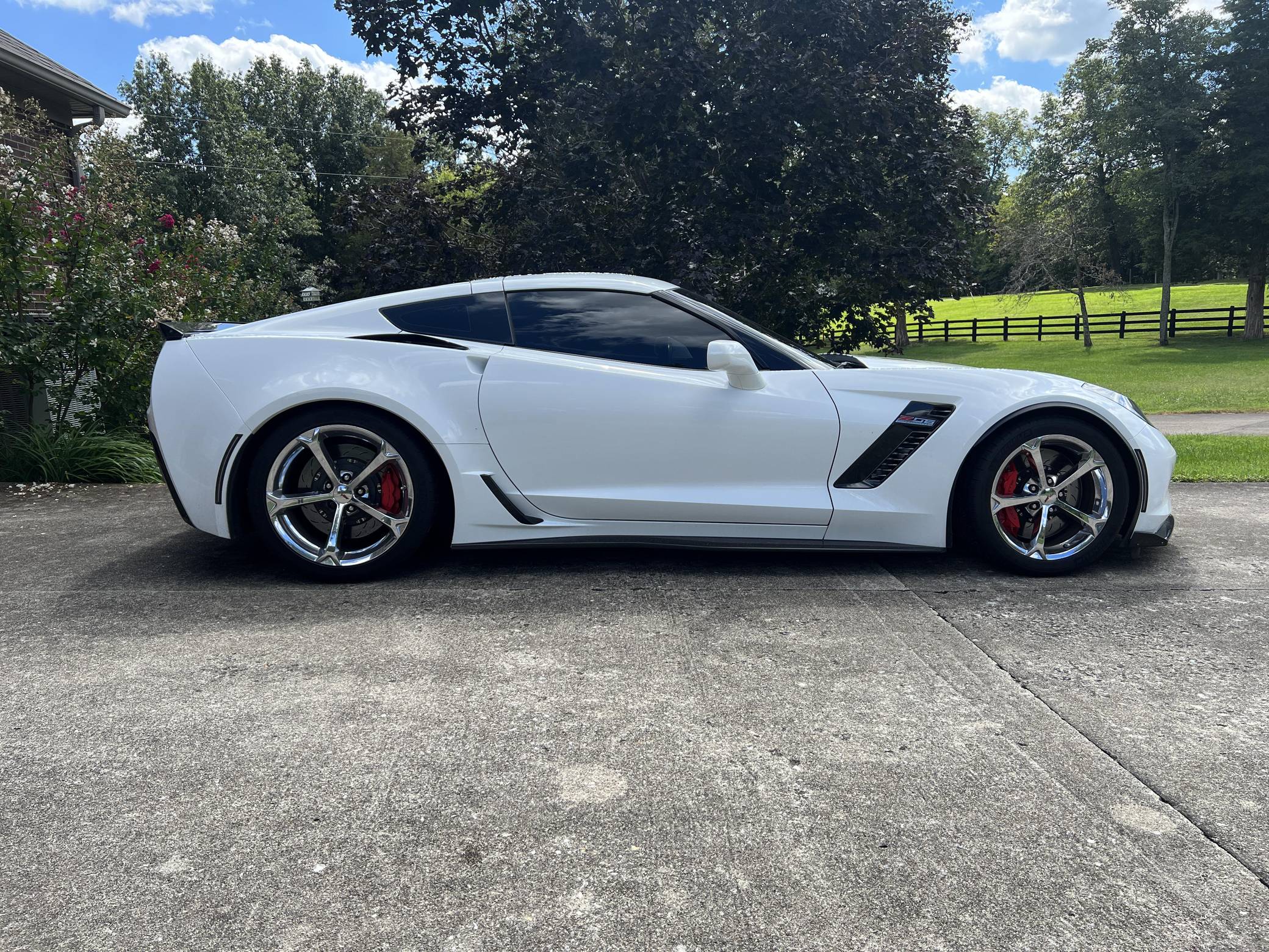 THIS. . . is a 2017 Chevrolet Corvette Z06 Coupe, finished in Arctic White with an Adrenaline Red interior. The odometer currently indicates approximately 43,200 miles. Factory equipment includes 19-inch front and 20-inch rear wheels, a performance exhaust system, an electronic limited-slip differential, Magnetic Selective Ride Control, a removable roof panel, leather upholstery, heated, ventilated, and power-adjustable GT seats, dual-zone automatic climate control, a 10-speaker Bose sound system, front curb view parking cameras, and a backup camera. Modifications reported by the seller are limited to an ECU tune, a vinyl hood decal, and tinted windows. Chevrolet launched the seventh-generation Corvette (colloquially called "C7") for the 2014 model year. Offered as a coupe and as a convertible, it offered a more user-friendly interior, a sharper-looking exterior design, and, significantly, the then-new "LT1" small-block V8. The Z06 model arrived for 2015 with a supercharged V8, carbon fiber body panels to keep weight in check, wider rear fenders, and several chassis upgrades. It was also the first Z06 available with an automatic transmission. Power comes from an "LT4" 6. 2-liter supercharged V8, rated at 650 horsepower and 650 lb-ft of torque. Output is sent to the rear wheels via an 8-speed automatic transmission.